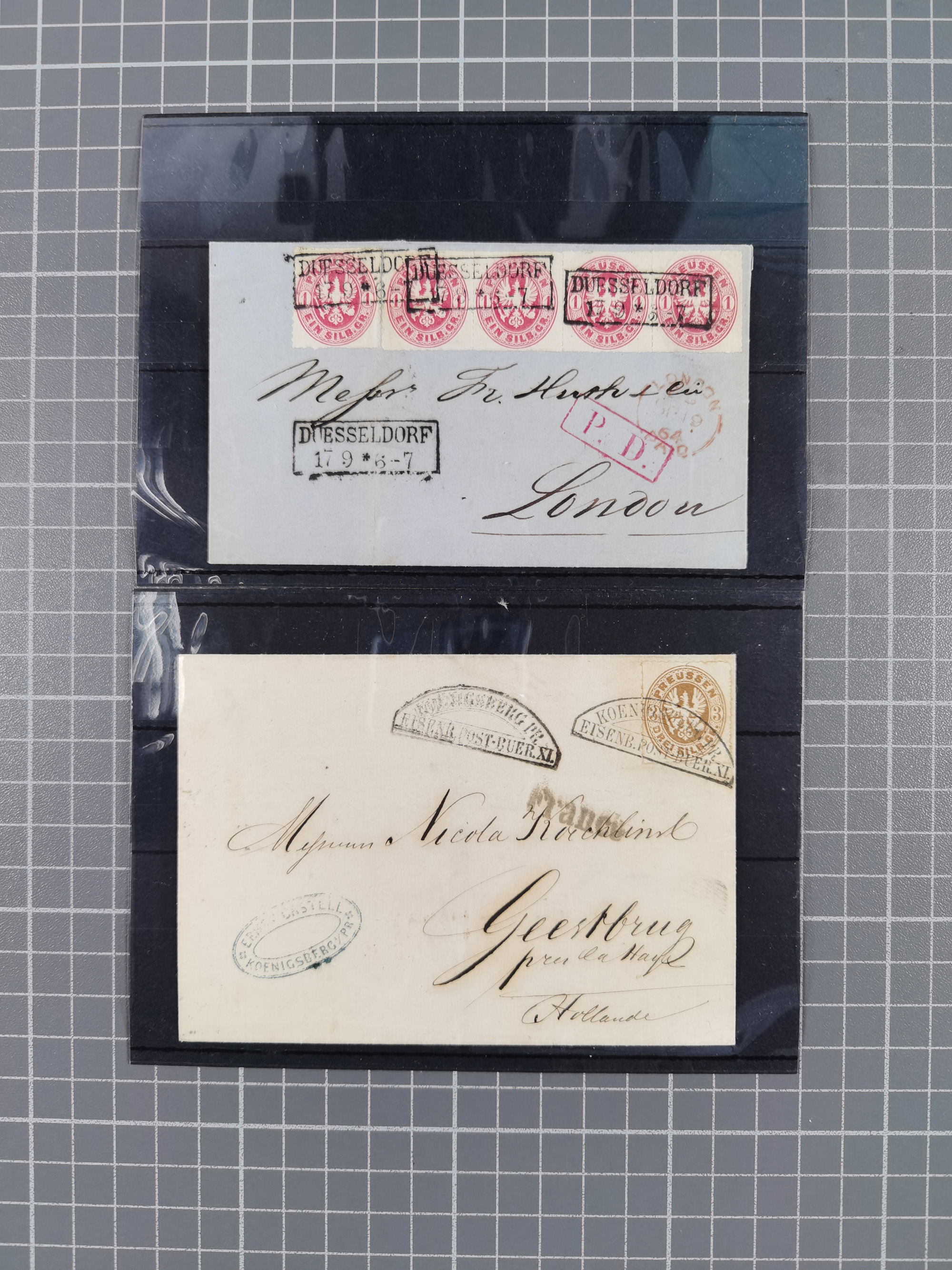 1850/67, kleiner Sammlungsbestand mit Marken, Briefstücken, Einheiten und rund 180 Briefen und Ganzsachen, dabei kleine Nummernstempel-Sammlung (viel Rheinprovinz), Mi. 2a im 5er-Streifen (Attest Flemming BPP) und 7b II auf Brief (Attest Kastaun BPP)