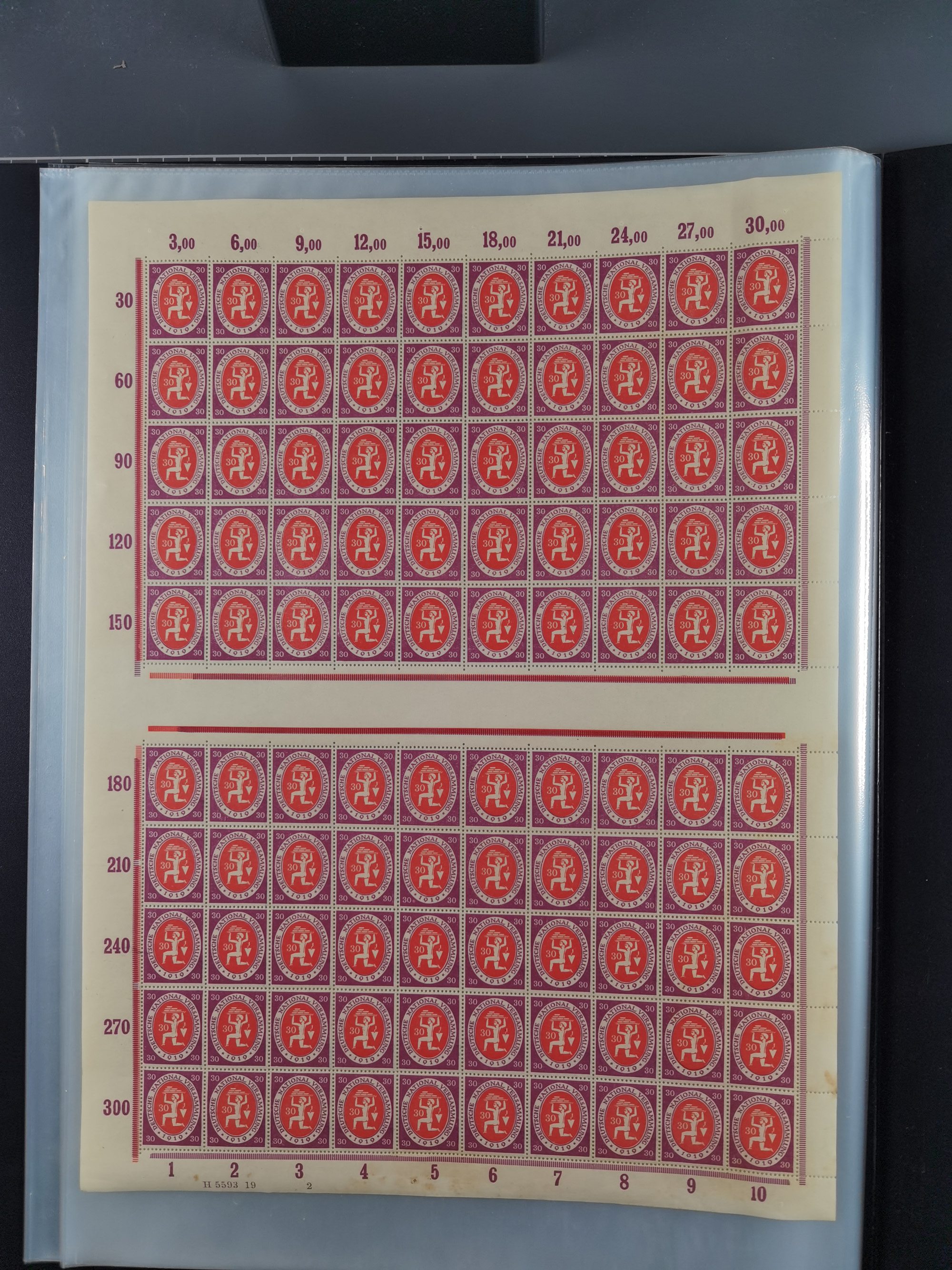 1919/23, meist postfrische Sammlung mit über 200 Bögen, bis auf wenige aufgetrennte Exemplare in kpl. Bogen, dabei auch etwas OPD I, Mi.-Nr. 260 im kpl. Bogen, etc., gute Erhaltung, teils mit üblichen Einschränkungen