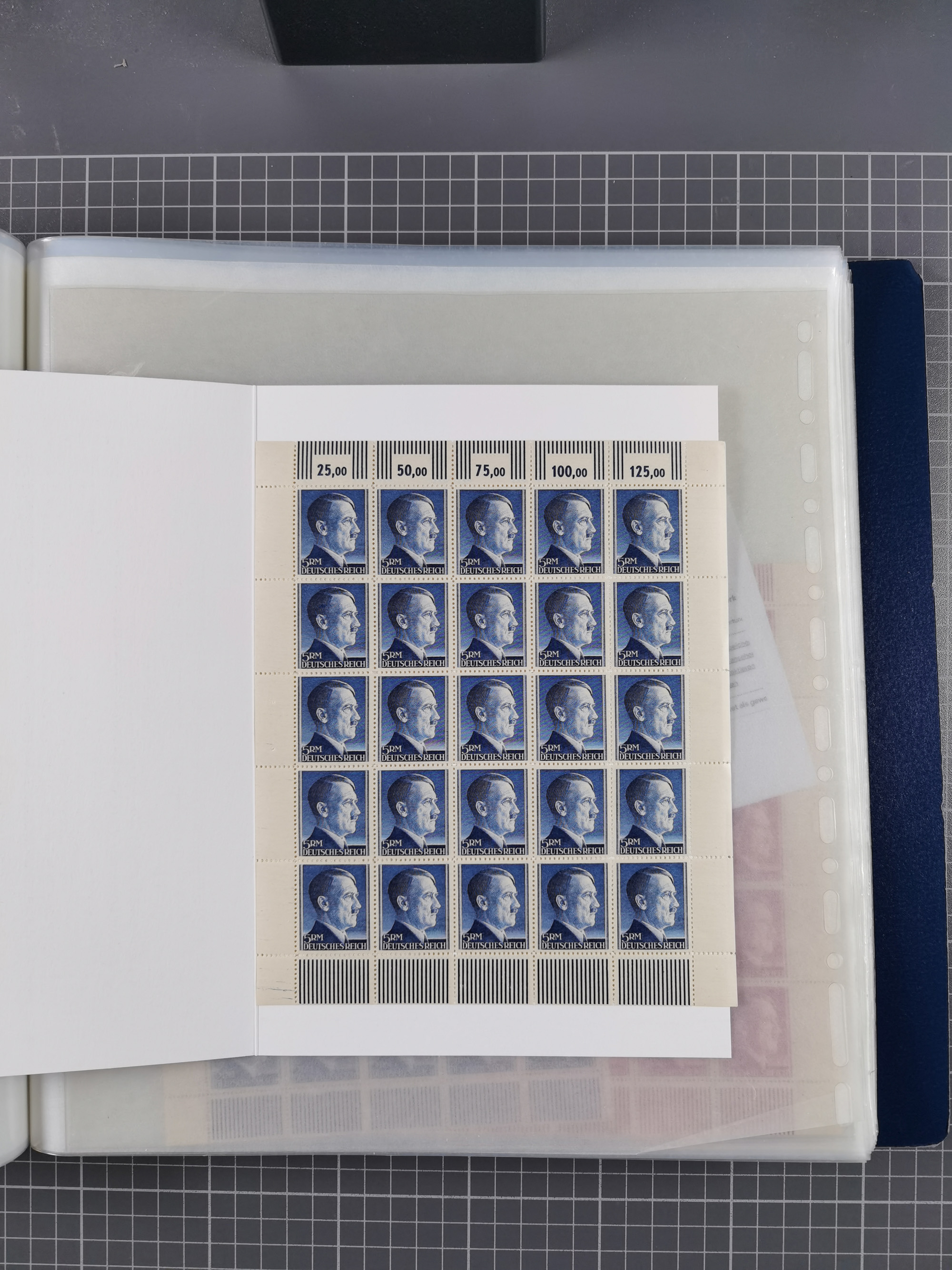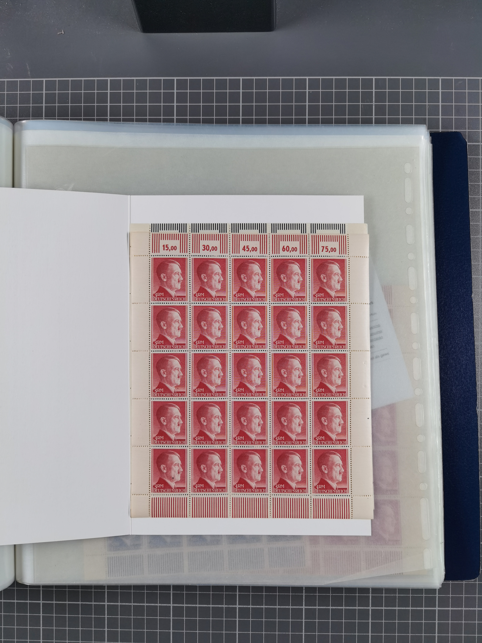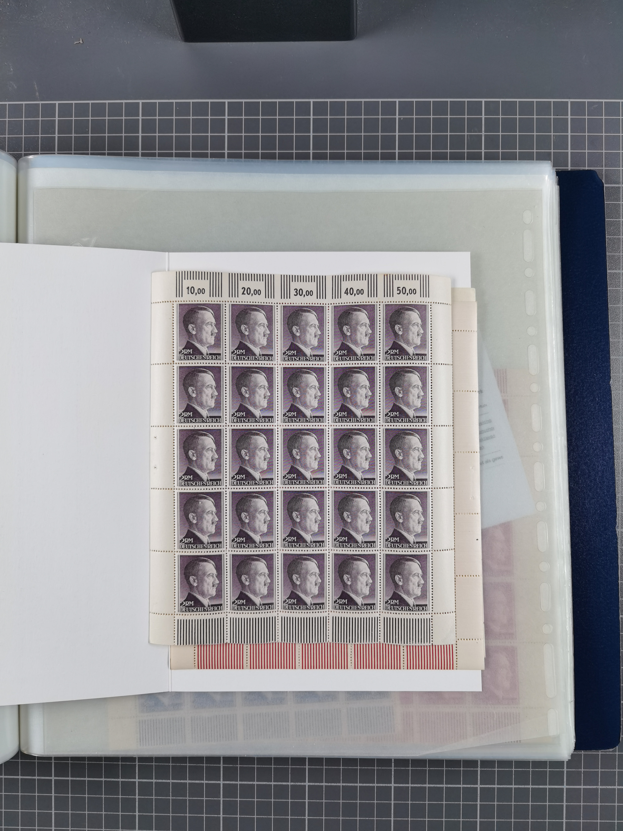 1933/45, meist postfrische Sammlung im Lindner-Falzlosalbum komplett mit vielen Besonderheiten. Mi. 482-495 postfrisch, Höchstwerte sign. A. Schlegel BPP, Mi. 496-98 ungebraucht, Mi. 507 postfrisch, Befund Schlegel BPP, Block 2 postfrisch (1 mm erhöht sign. Schlegel BPP), Mi. 529-539 x und Viererblock 539 y je postfrisch mit Attest Schlegel BPP, Bl. 3 Attest A. Schlegel BPP, Mi. 586 Y ungebraucht, Attest Oechsner BPP, Mi. 587 U ungebraucht, Attest H.-D. Schlegel BPP, Block 6z postfrisch, sign. Schlegel BPP, Mi. 641 x postfrisch, sign. D. Schlegel BPP, Mi. 659 x postfrisch, Befund Oechsner BPP, Mi. 671 x und 672 y sign., Mi. 814 Phasenabzug und Abzug vom Urstempel je postfrisch, viele Plattenfehler wie 909 I und 910 I und II je sign. A. Schlegel BPP.