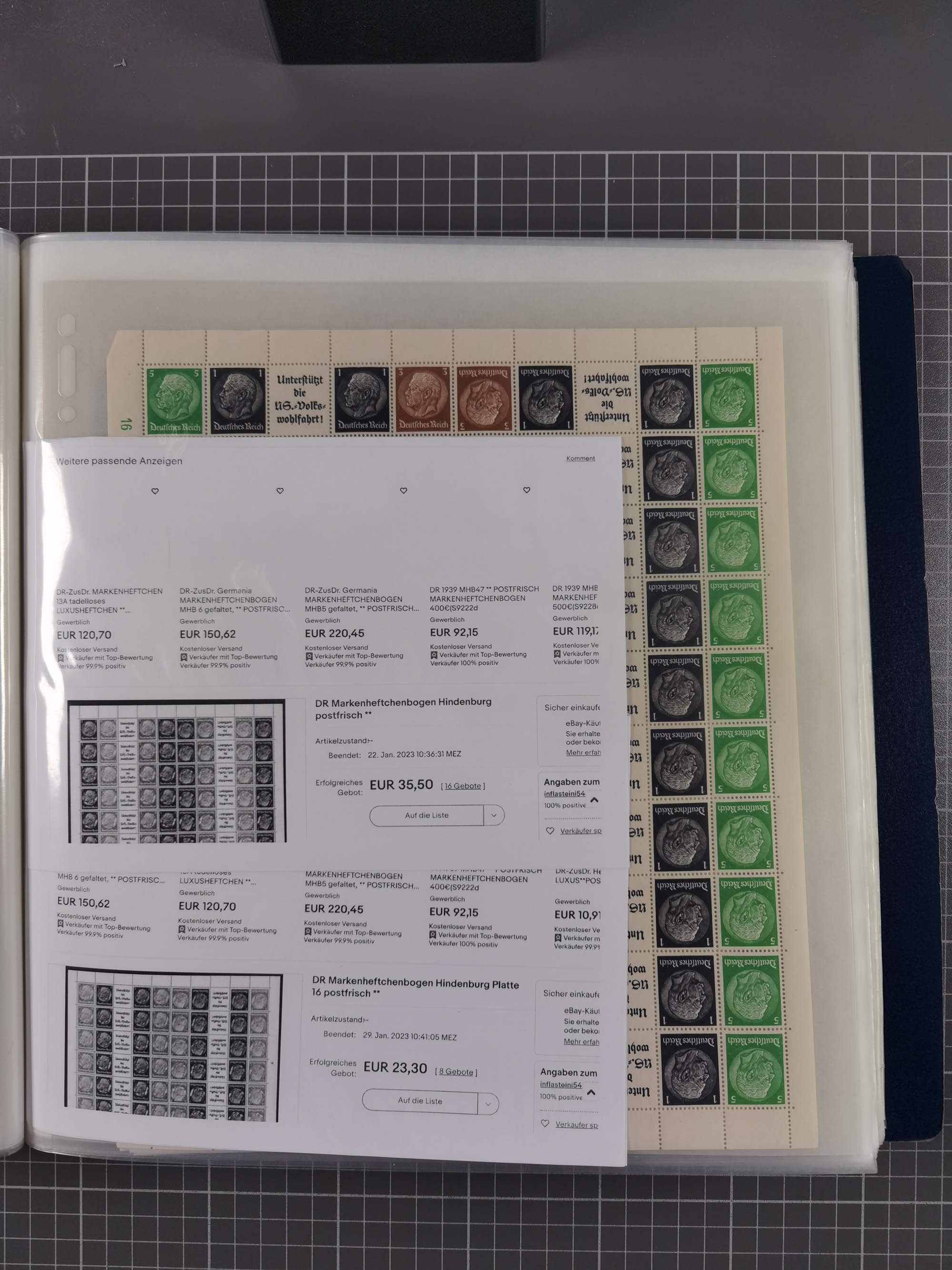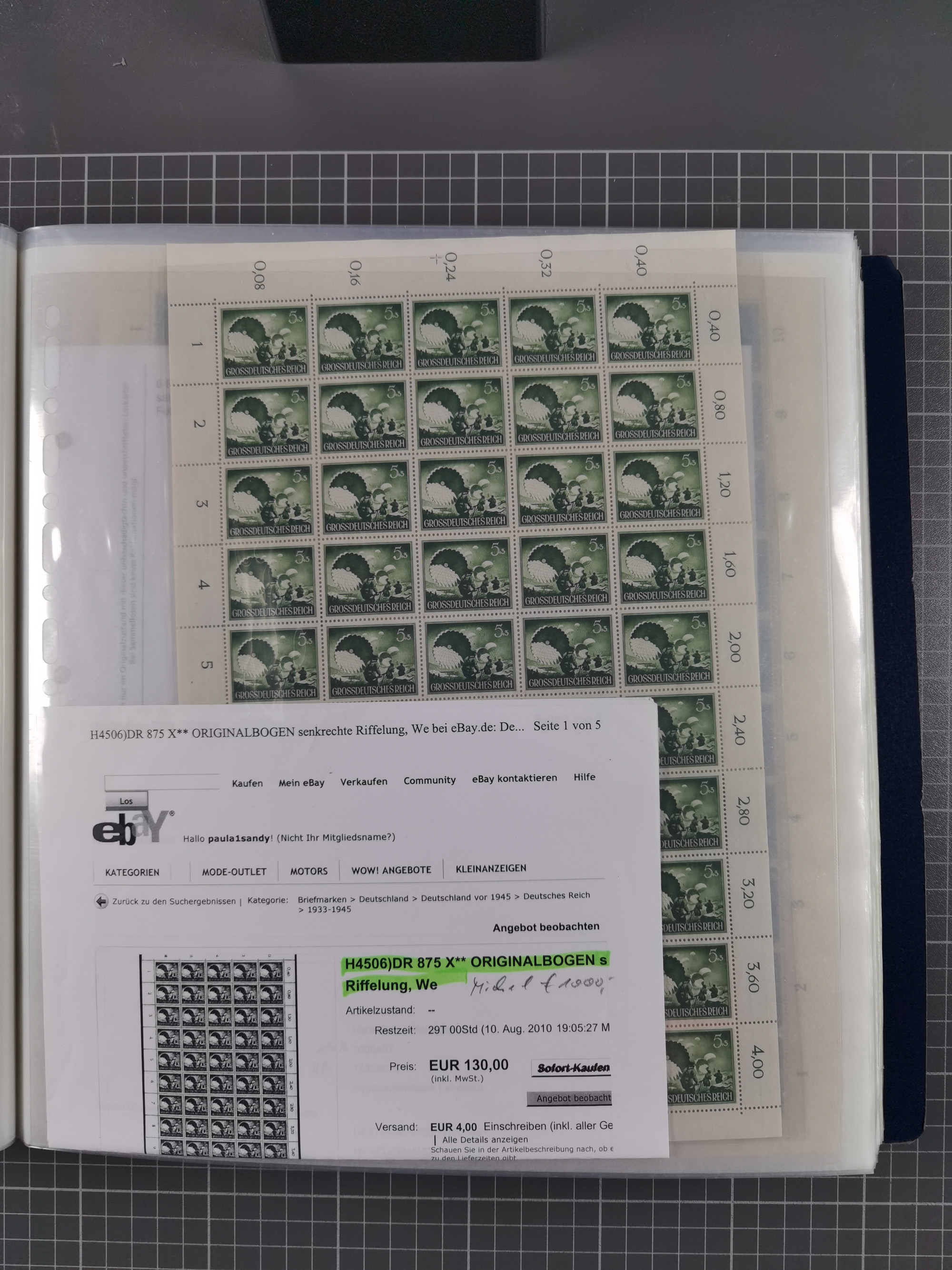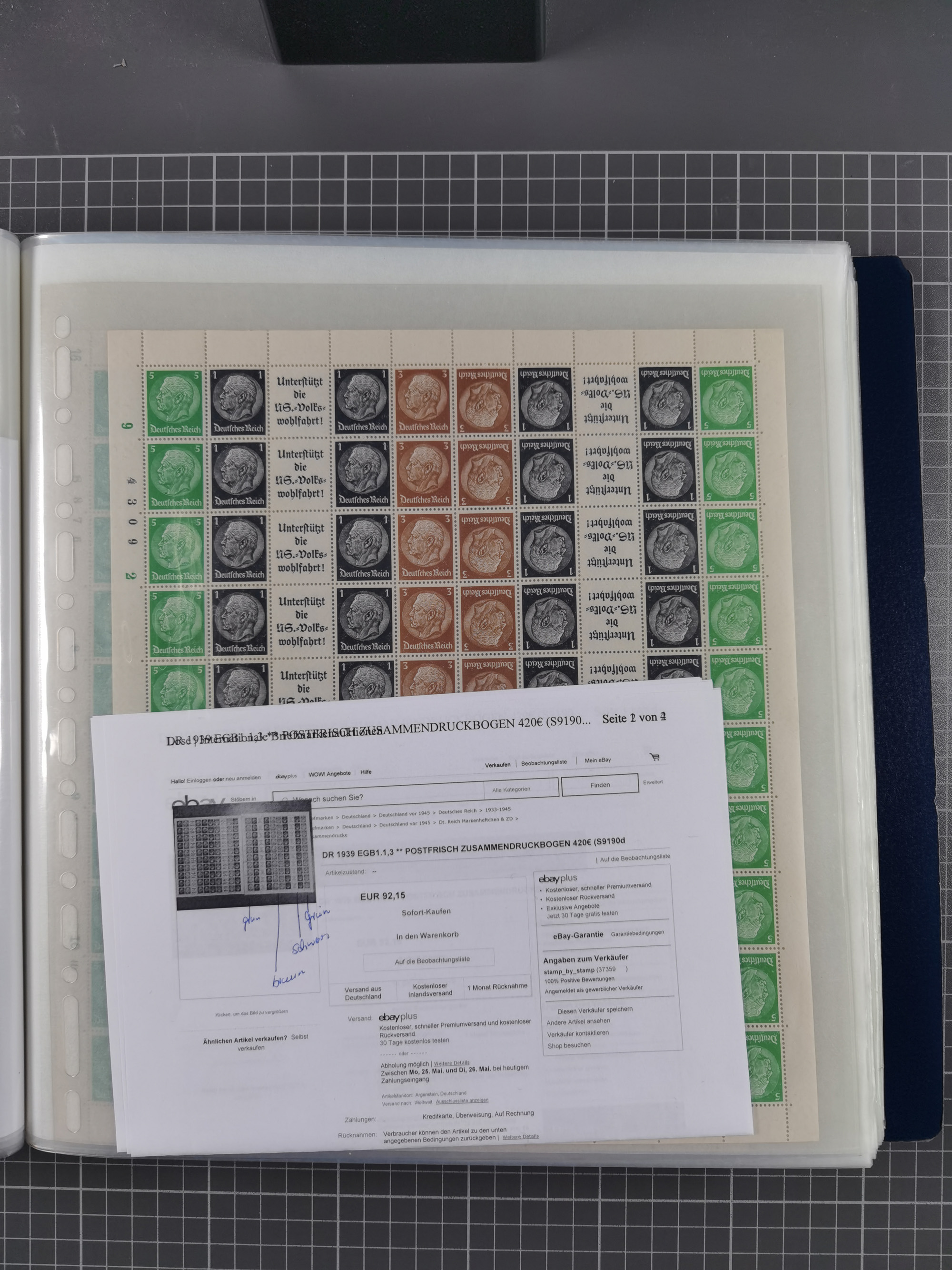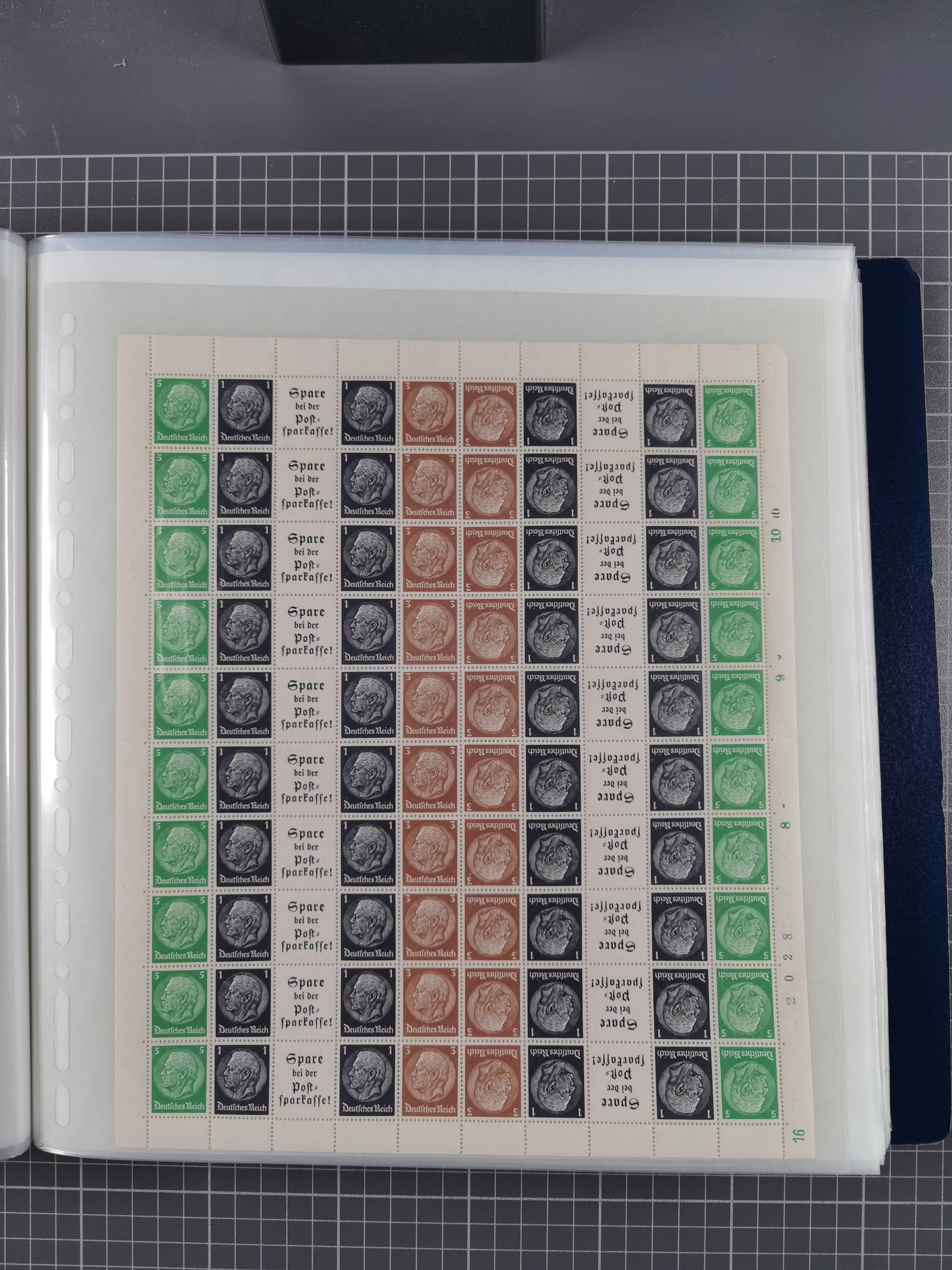 1933/45, meist postfrische Sammlung im Lindner-Falzlosalbum komplett mit vielen Besonderheiten. Mi. 482-495 postfrisch, Höchstwerte sign. A. Schlegel BPP, Mi. 496-98 ungebraucht, Mi. 507 postfrisch, Befund Schlegel BPP, Block 2 postfrisch (1 mm erhöht sign. Schlegel BPP), Mi. 529-539 x und Viererblock 539 y je postfrisch mit Attest Schlegel BPP, Bl. 3 Attest A. Schlegel BPP, Mi. 586 Y ungebraucht, Attest Oechsner BPP, Mi. 587 U ungebraucht, Attest H.-D. Schlegel BPP, Block 6z postfrisch, sign. Schlegel BPP, Mi. 641 x postfrisch, sign. D. Schlegel BPP, Mi. 659 x postfrisch, Befund Oechsner BPP, Mi. 671 x und 672 y sign., Mi. 814 Phasenabzug und Abzug vom Urstempel je postfrisch, viele Plattenfehler wie 909 I und 910 I und II je sign. A. Schlegel BPP.