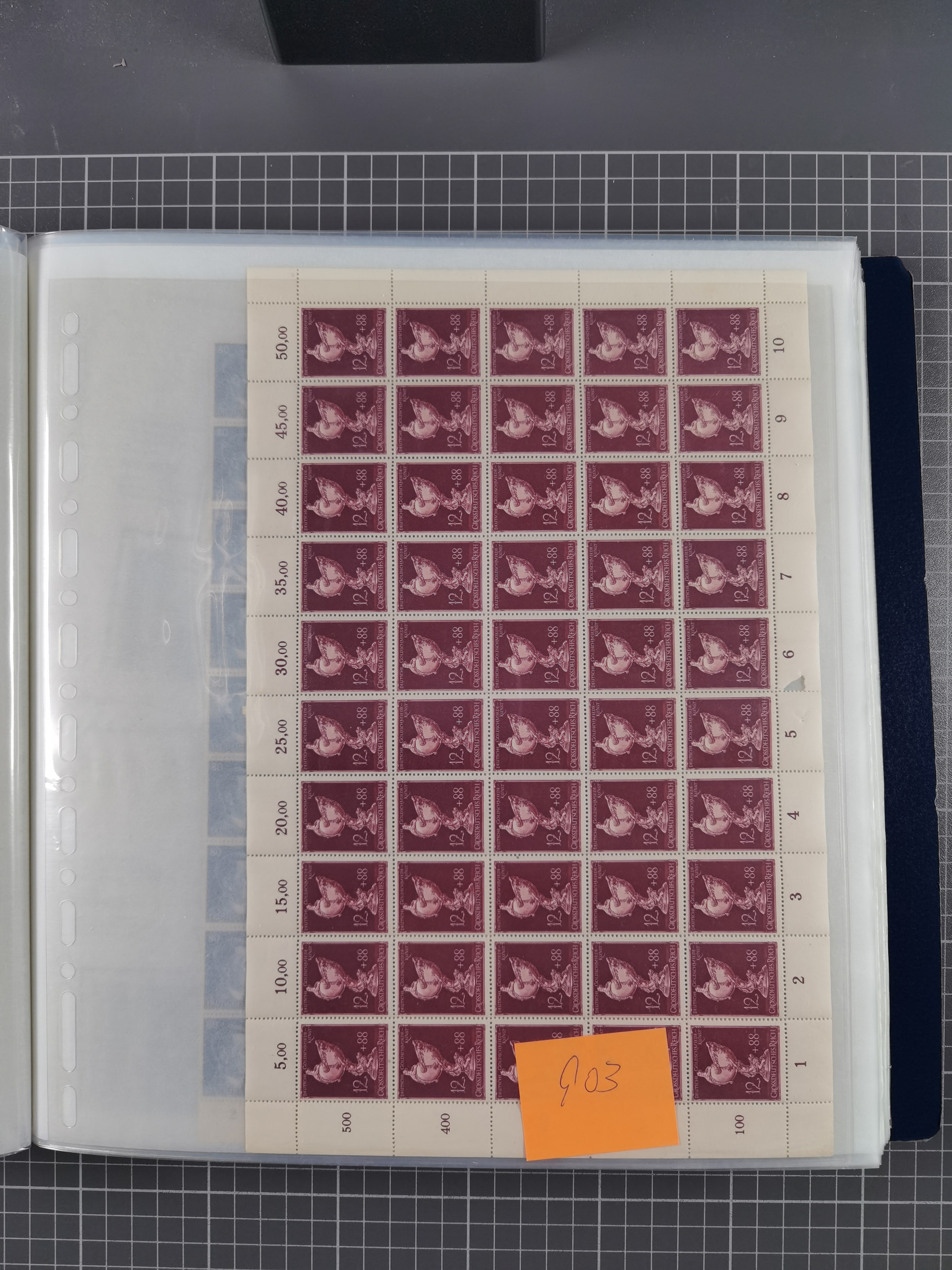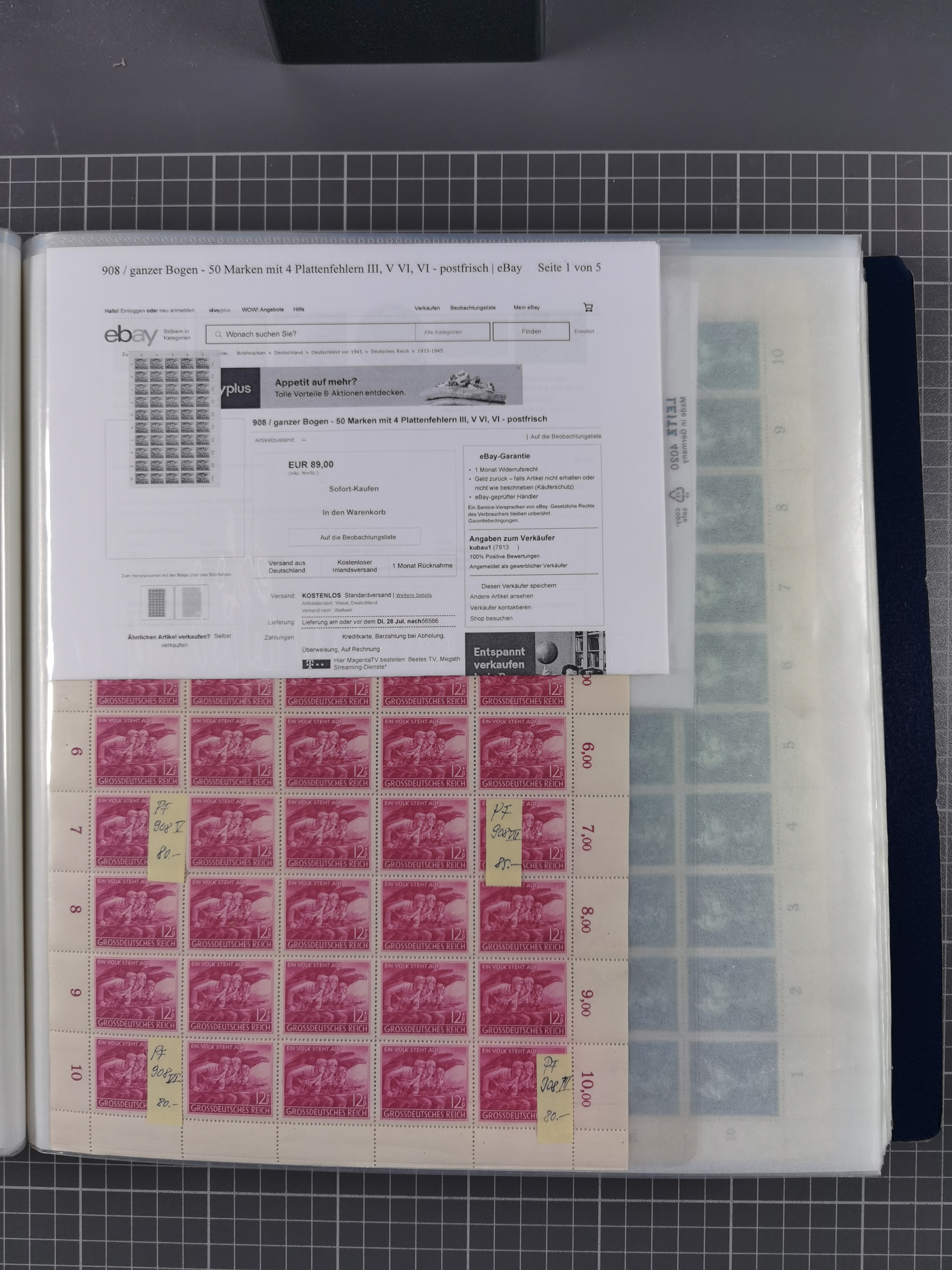 1912/45, kleine Partie Bogen, dabei Mi. I, 110b mit Plattenfehler I, 909-910, Einheitsgeberbogen, etc.