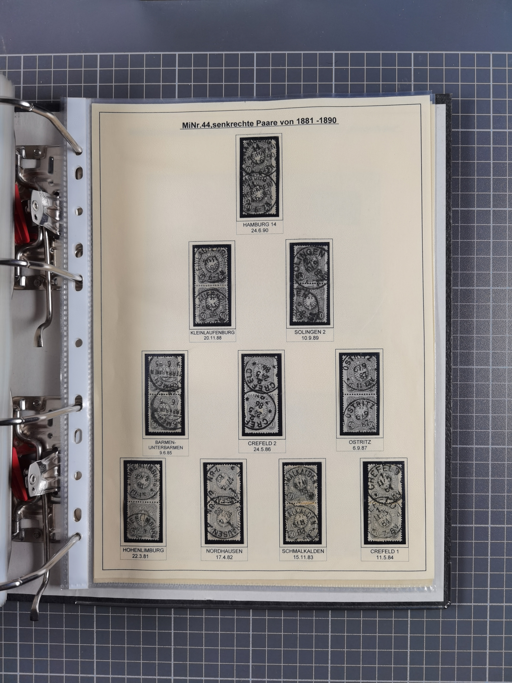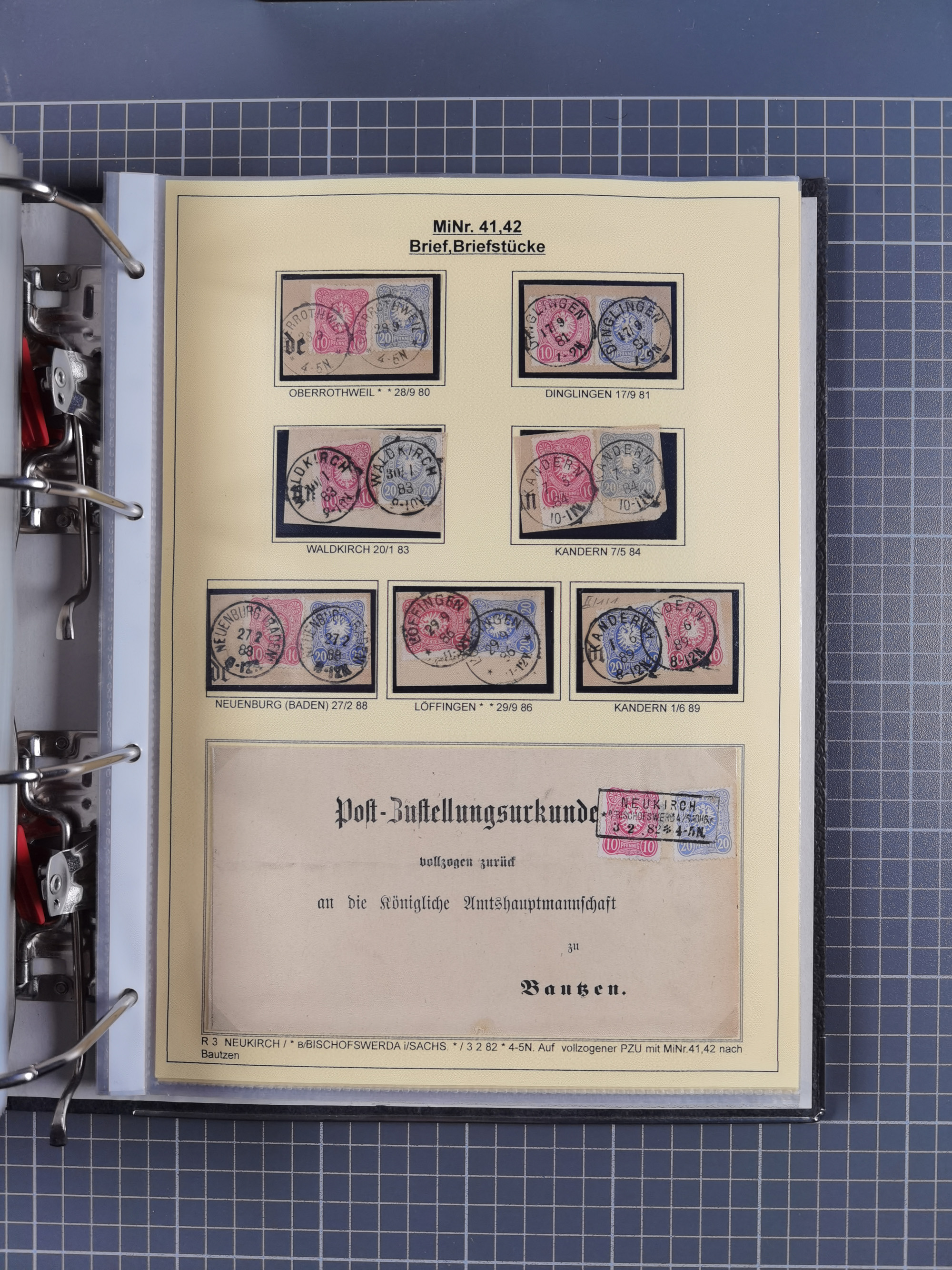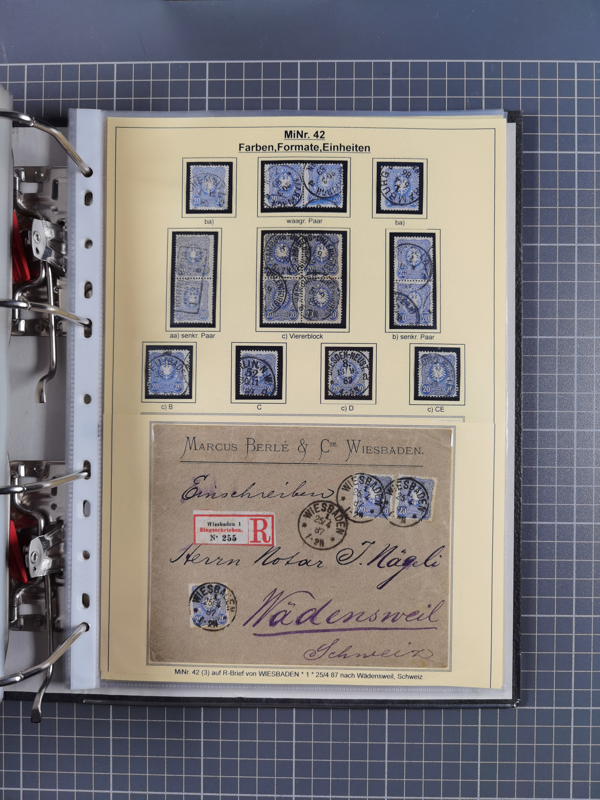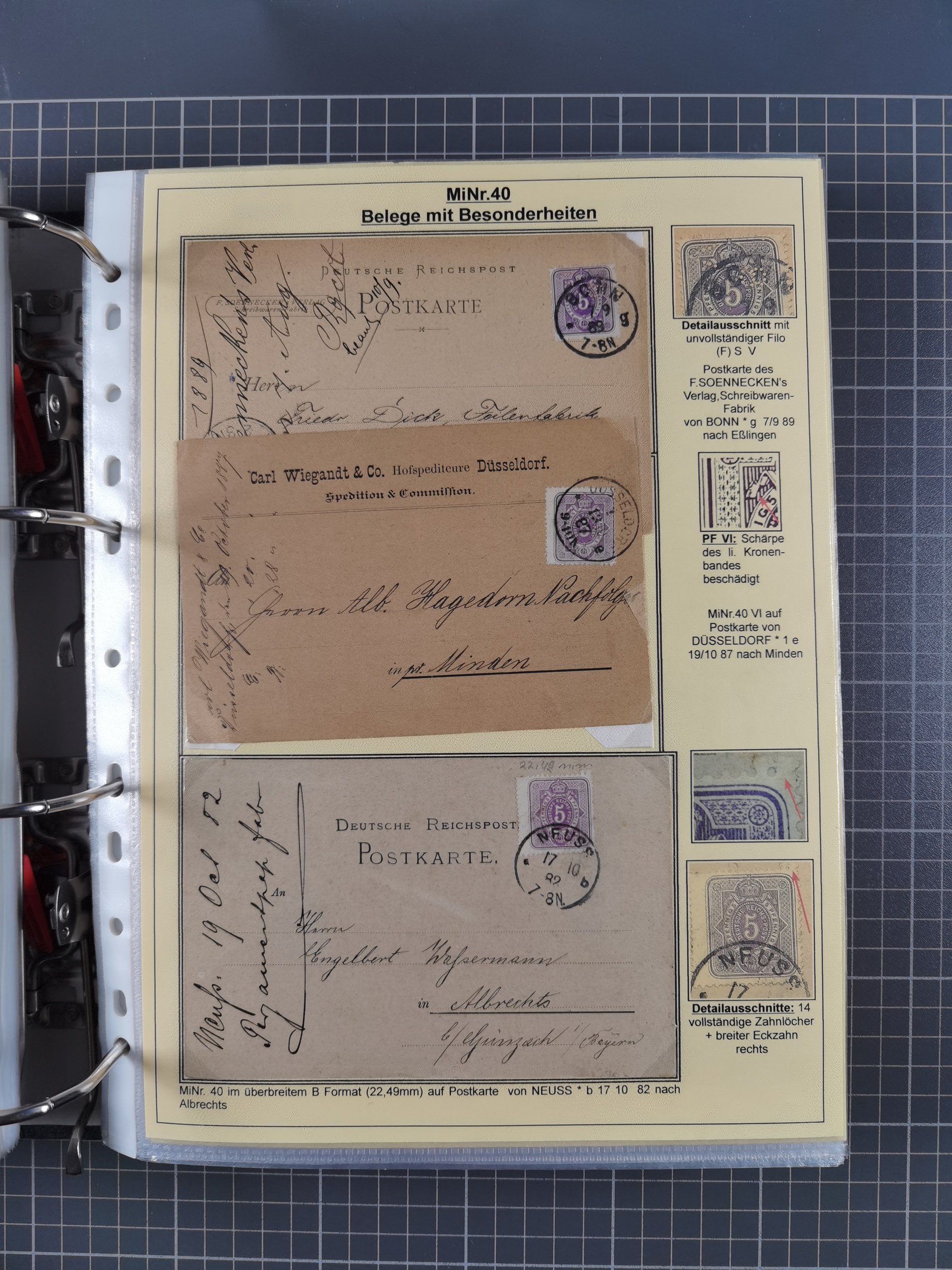 1889/1900, gestempelte Spezialsammlung “Krone/Adler”, mit Marken und über 150 Briefen, Karten und Formularen, dabei u.a. lose Zwischenstegpaare, Farbnuancen, dabei u.a. Postzustellungsurkunde, Auslandsrückschein mit 20 Pfg., Bücherzettel, Wertbriefe, Rohrpost, Ganzsachenausschnitte auf Briefen verwendet, Abarten mit u.a. Mi.-Nr. 50I-IV, etc., teils signiert, meist gute Erhaltung