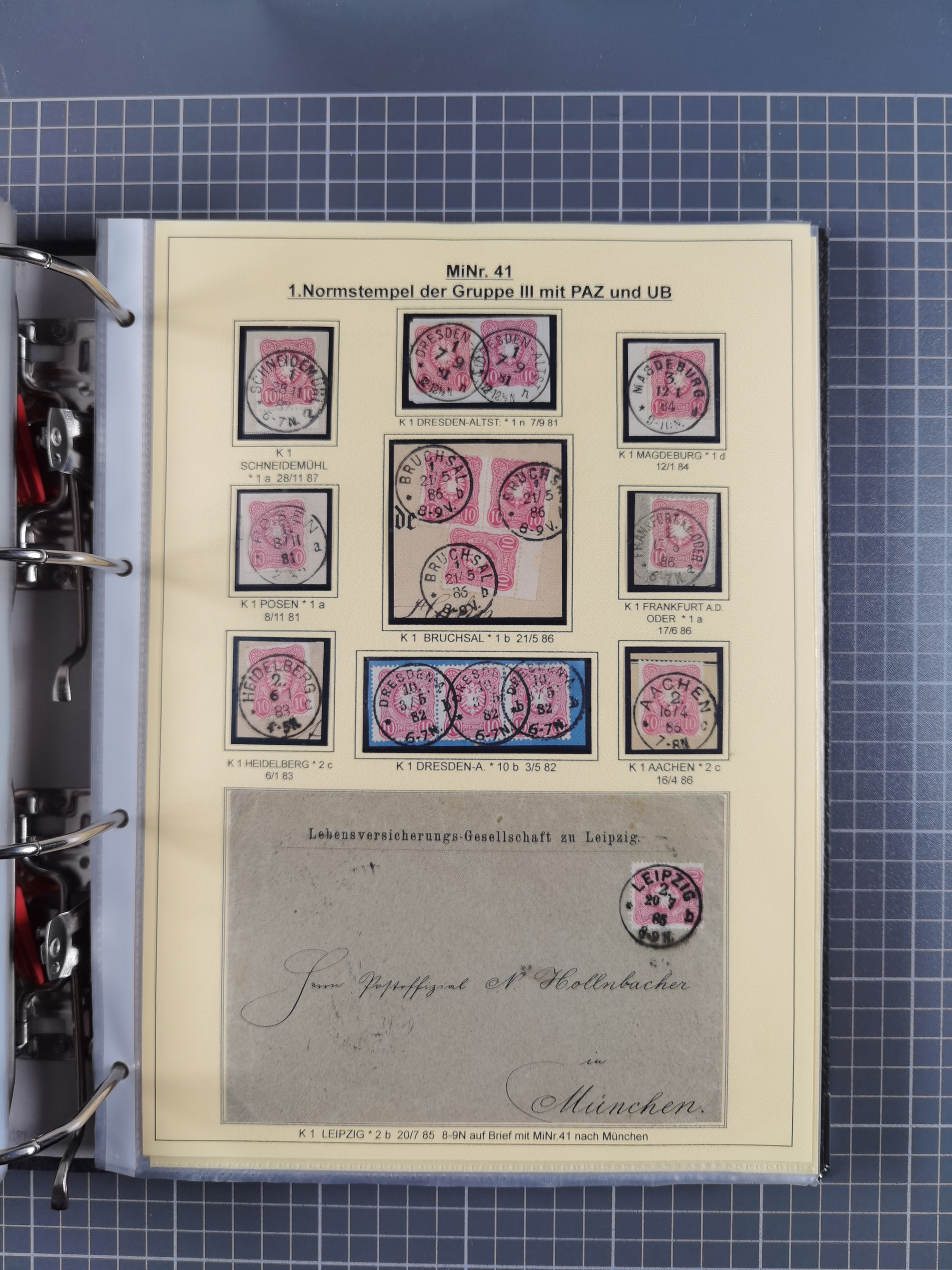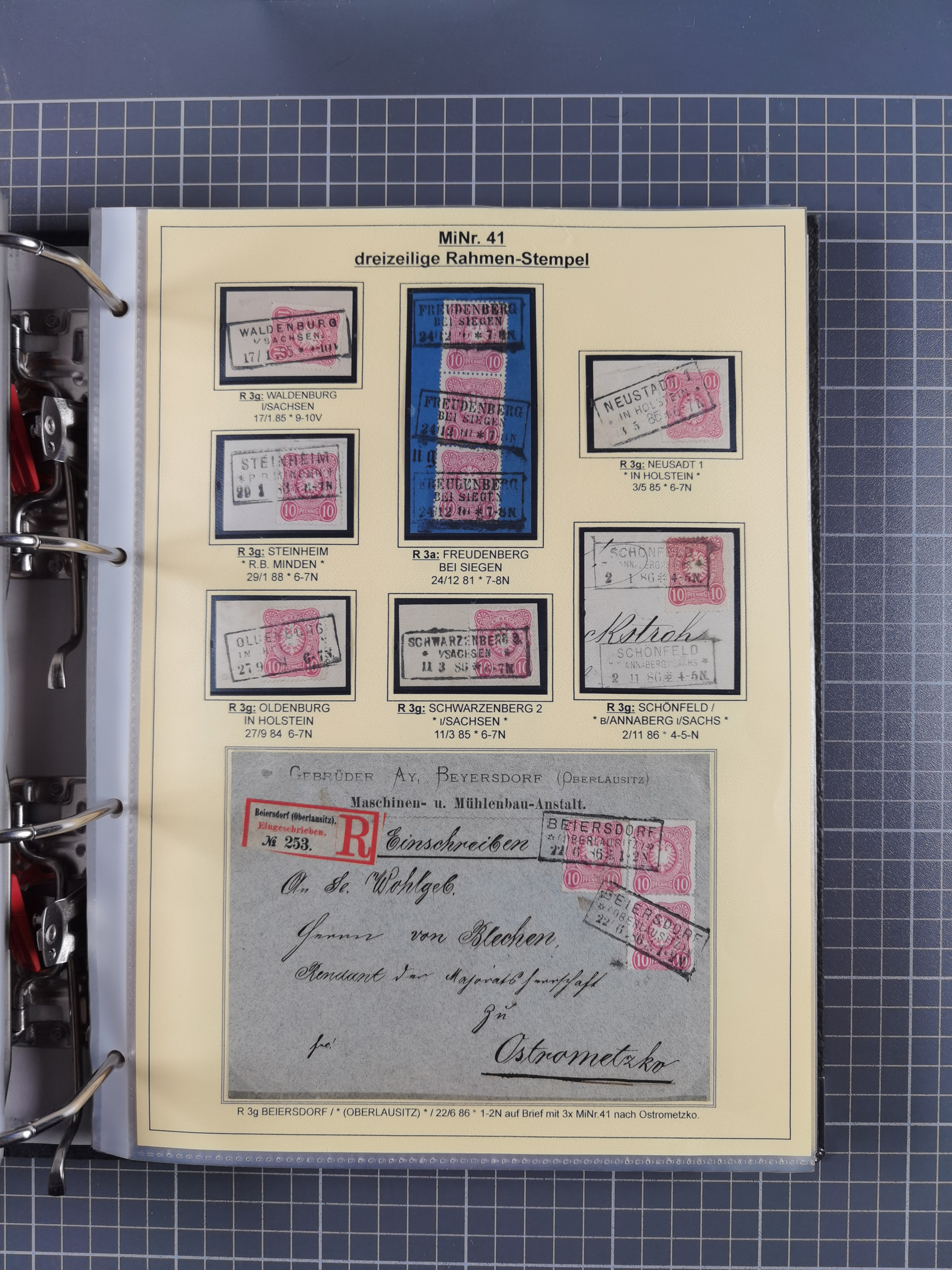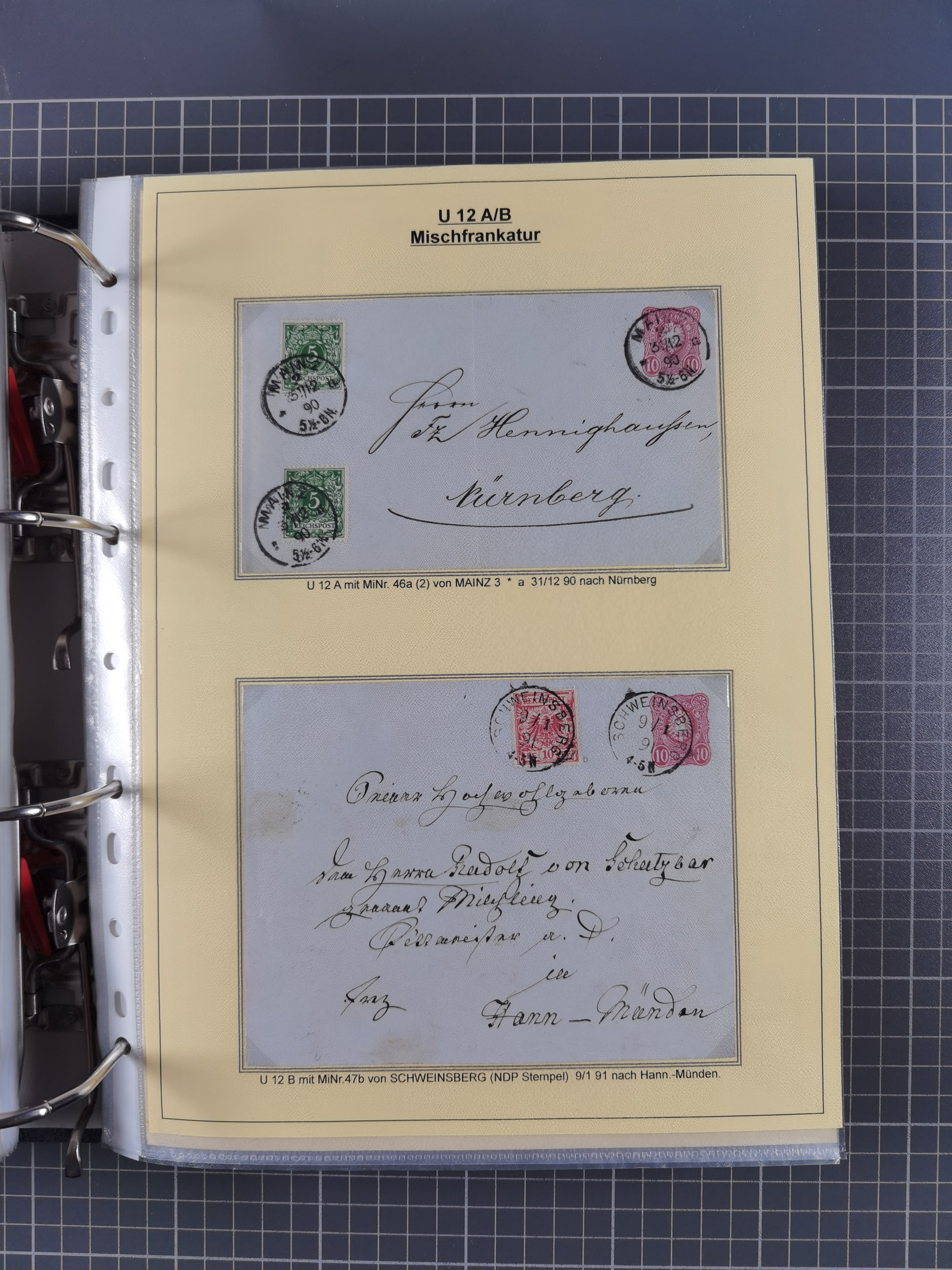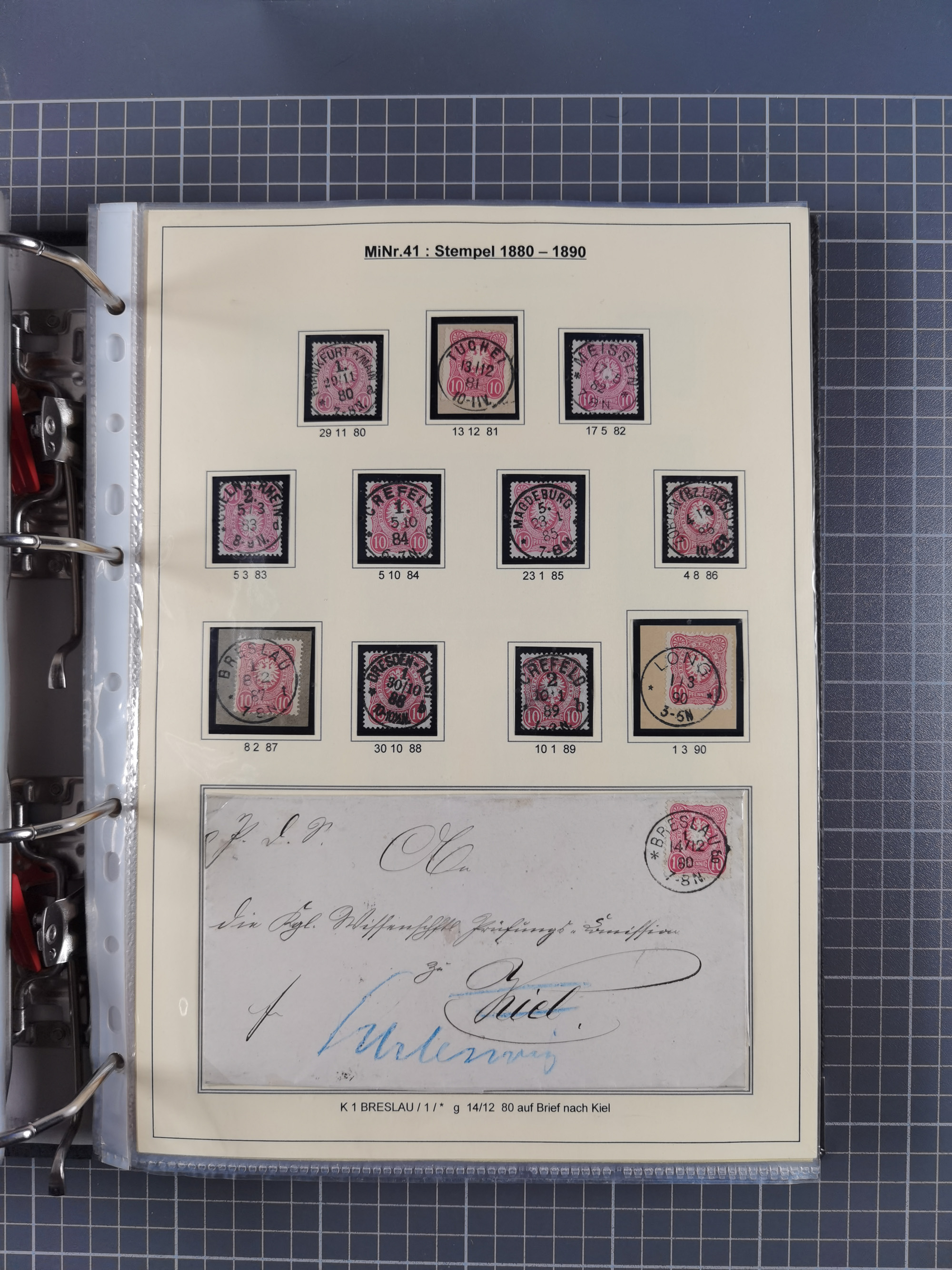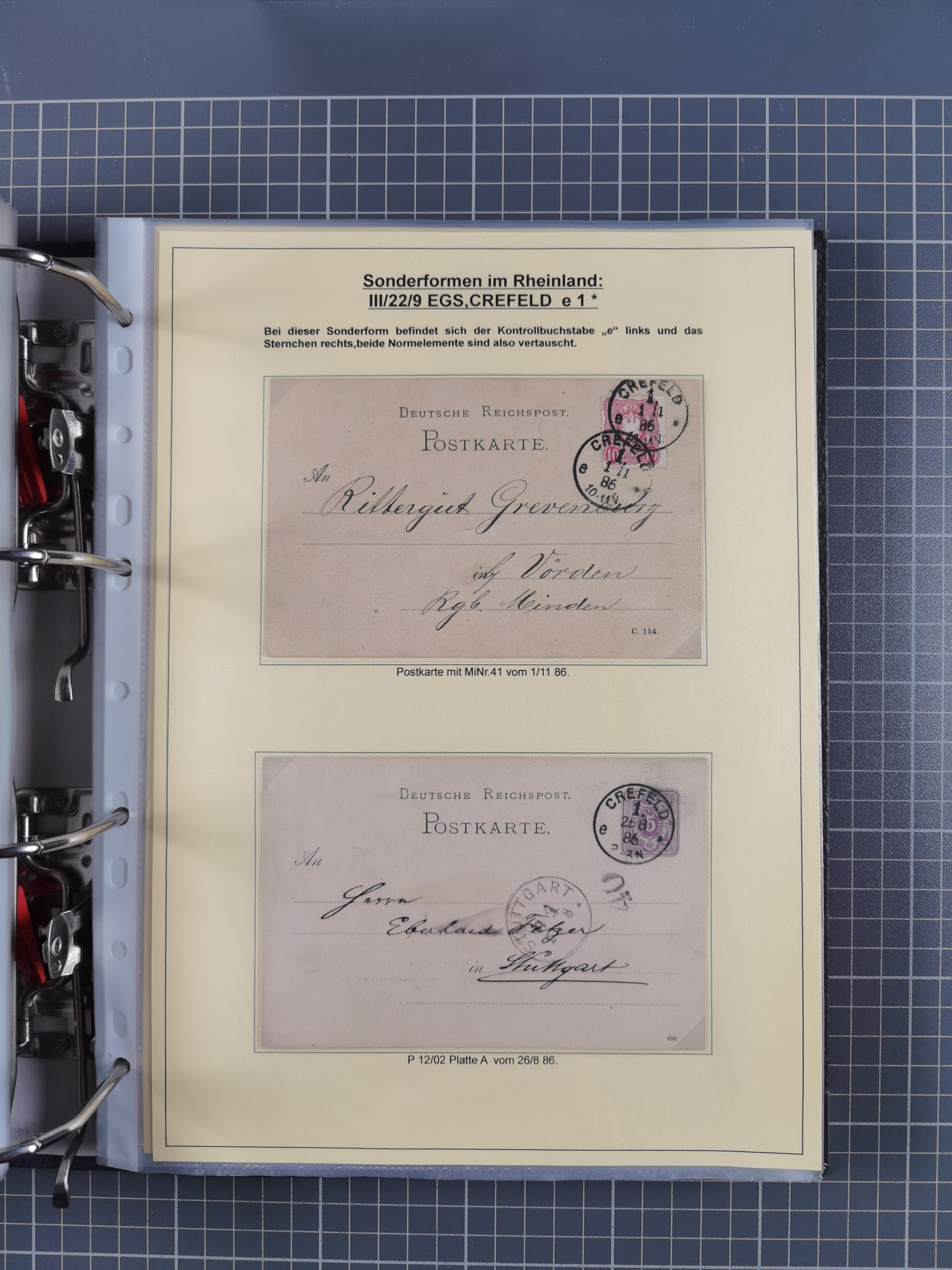 1889/1900, gestempelte Spezialsammlung “Krone/Adler”, mit Marken und über 150 Briefen, Karten und Formularen, dabei u.a. lose Zwischenstegpaare, Farbnuancen, dabei u.a. Postzustellungsurkunde, Auslandsrückschein mit 20 Pfg., Bücherzettel, Wertbriefe, Rohrpost, Ganzsachenausschnitte auf Briefen verwendet, Abarten mit u.a. Mi.-Nr. 50I-IV, etc., teils signiert, meist gute Erhaltung