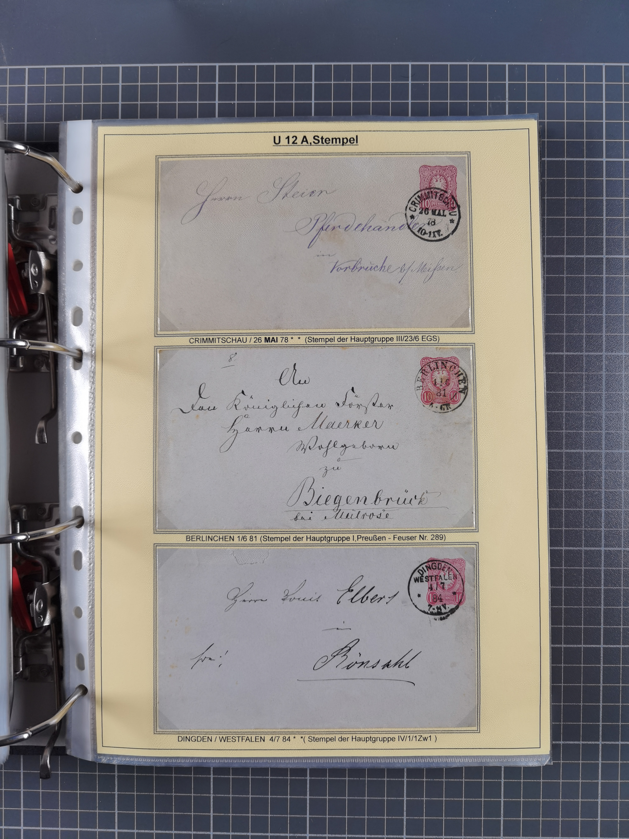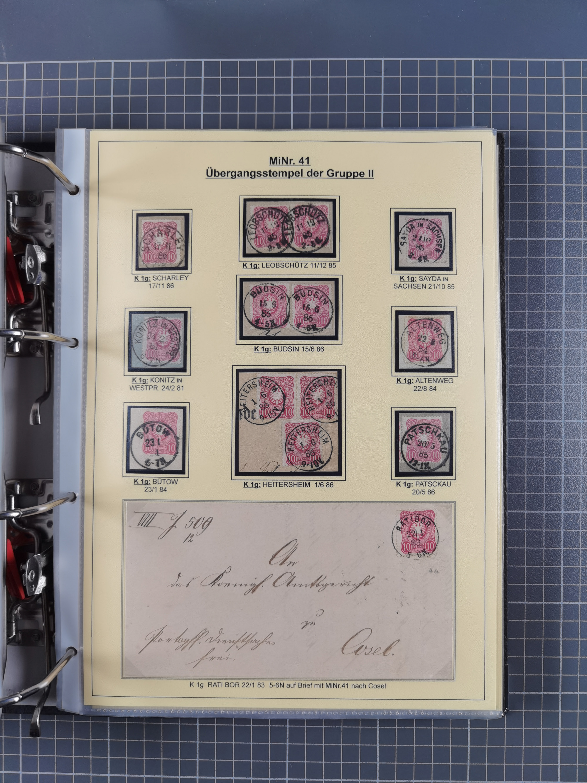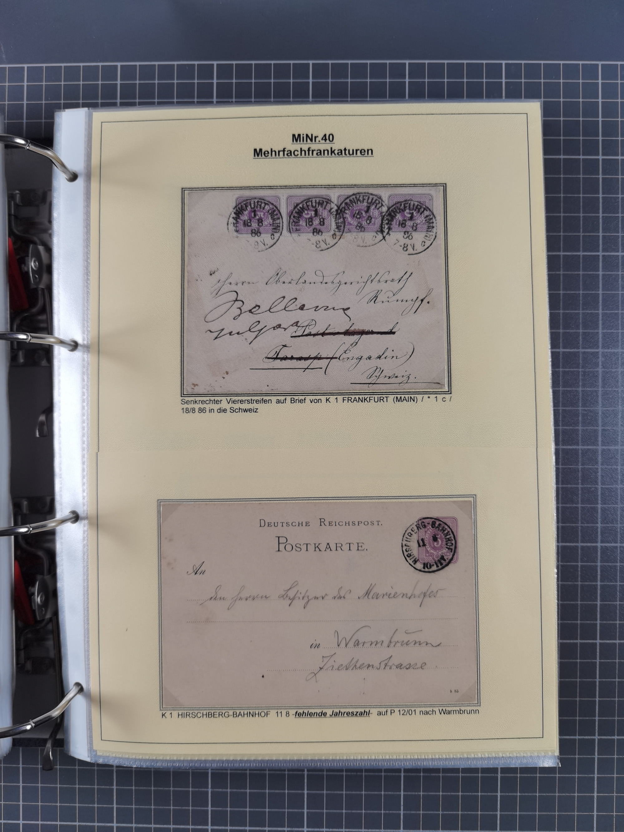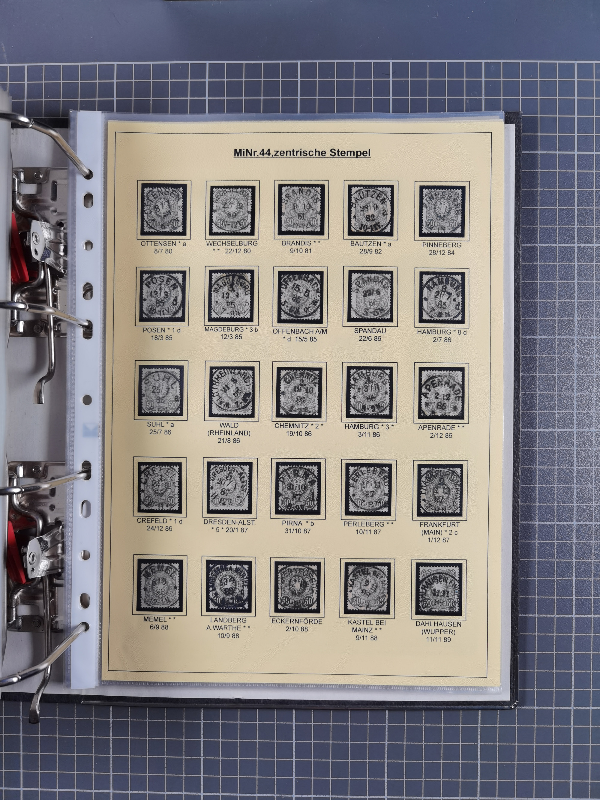 1889/1900, gestempelte Spezialsammlung “Krone/Adler”, mit Marken und über 150 Briefen, Karten und Formularen, dabei u.a. lose Zwischenstegpaare, Farbnuancen, dabei u.a. Postzustellungsurkunde, Auslandsrückschein mit 20 Pfg., Bücherzettel, Wertbriefe, Rohrpost, Ganzsachenausschnitte auf Briefen verwendet, Abarten mit u.a. Mi.-Nr. 50I-IV, etc., teils signiert, meist gute Erhaltung