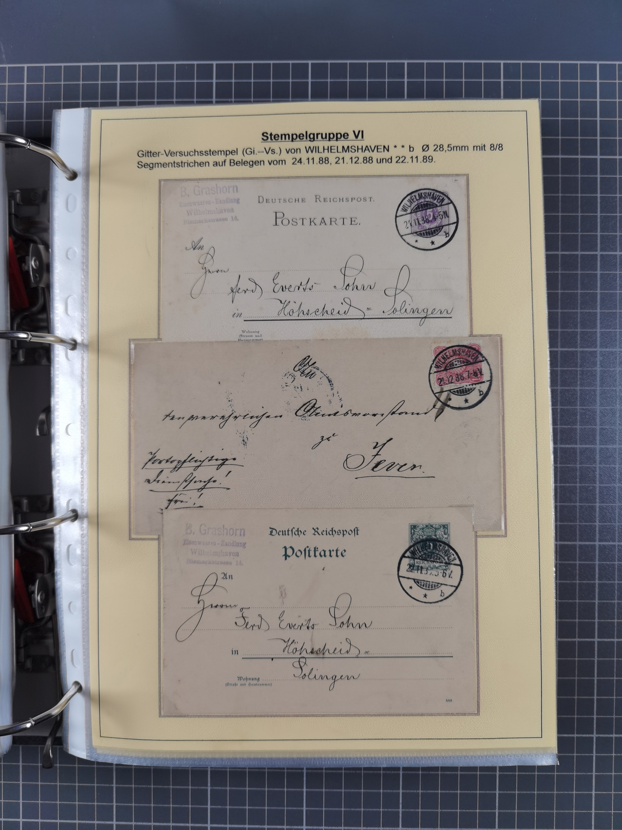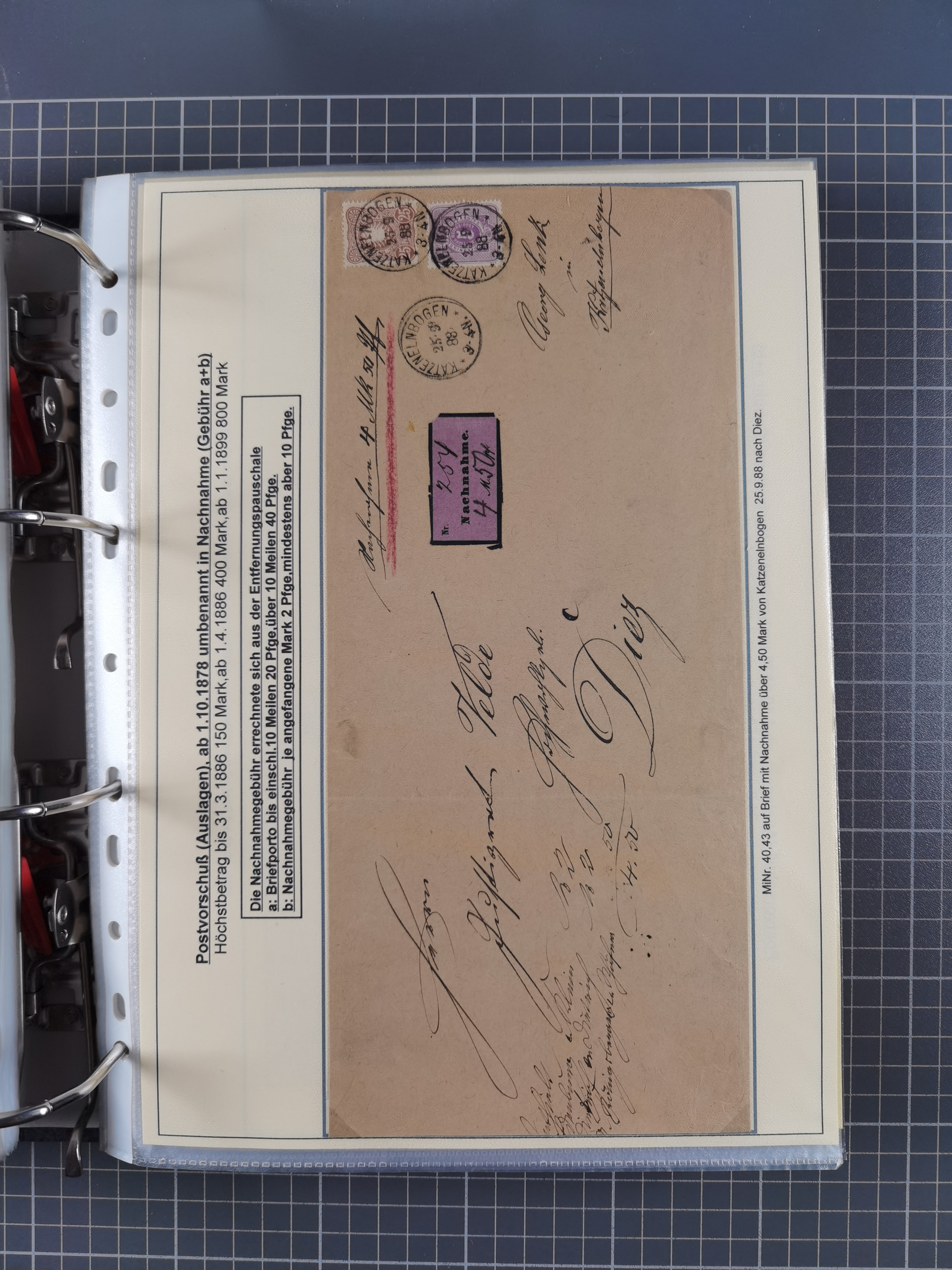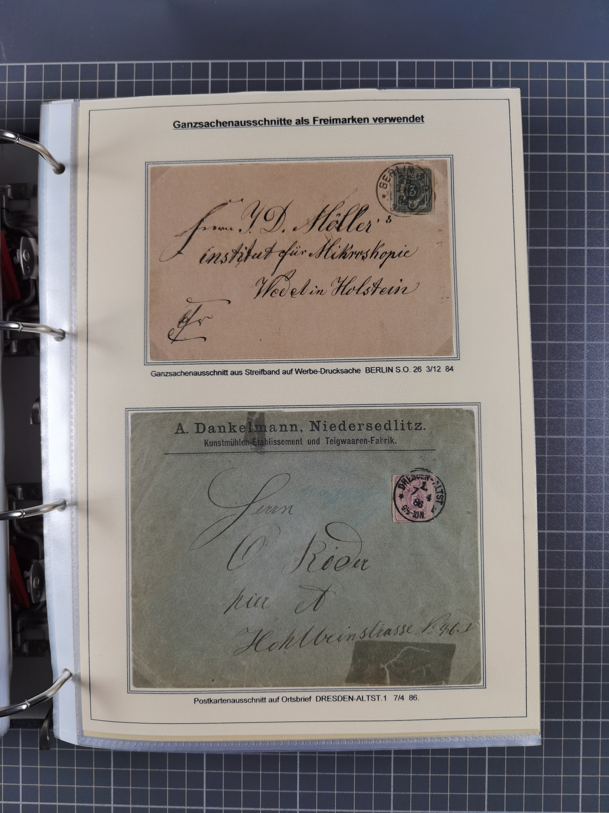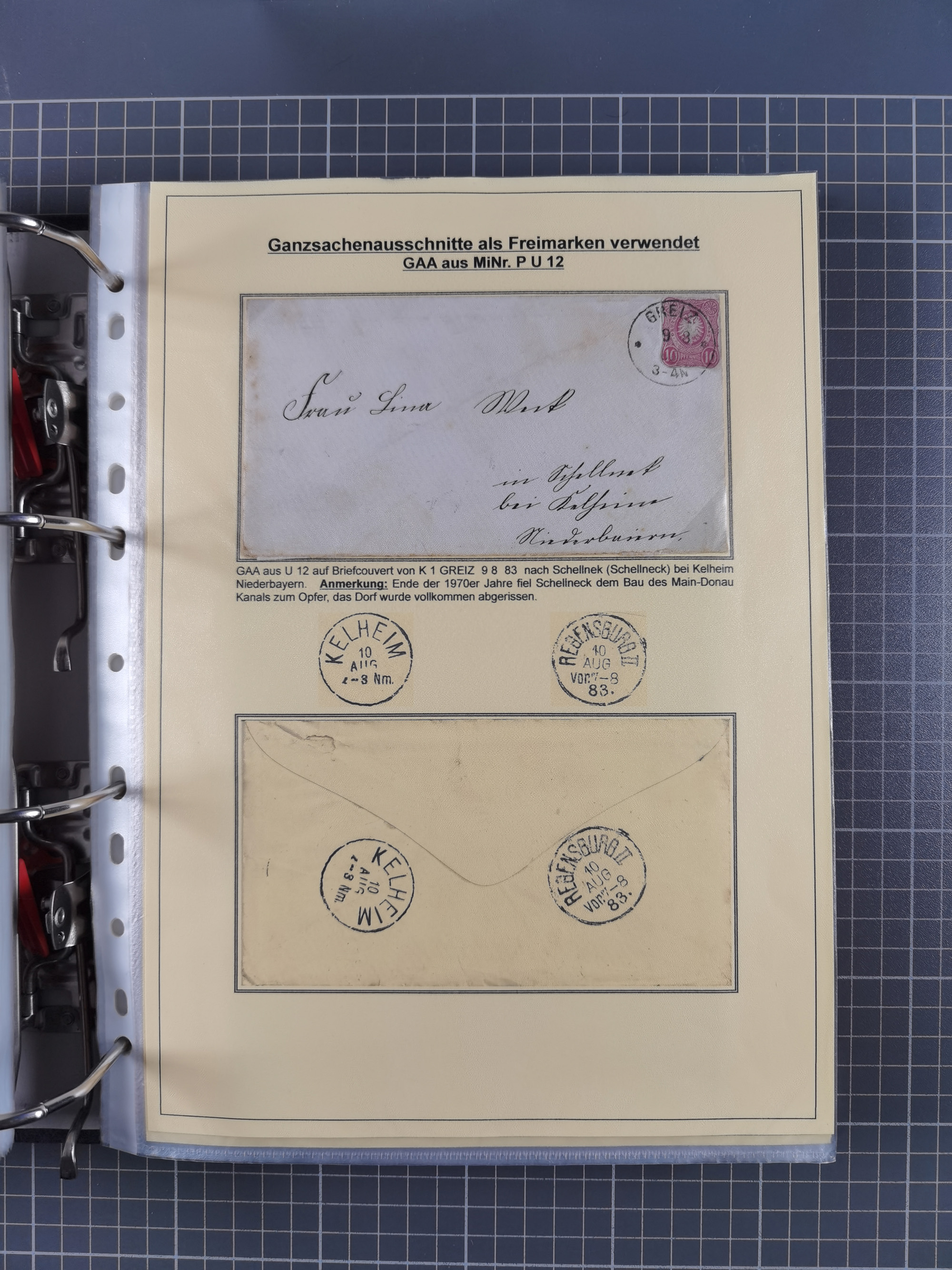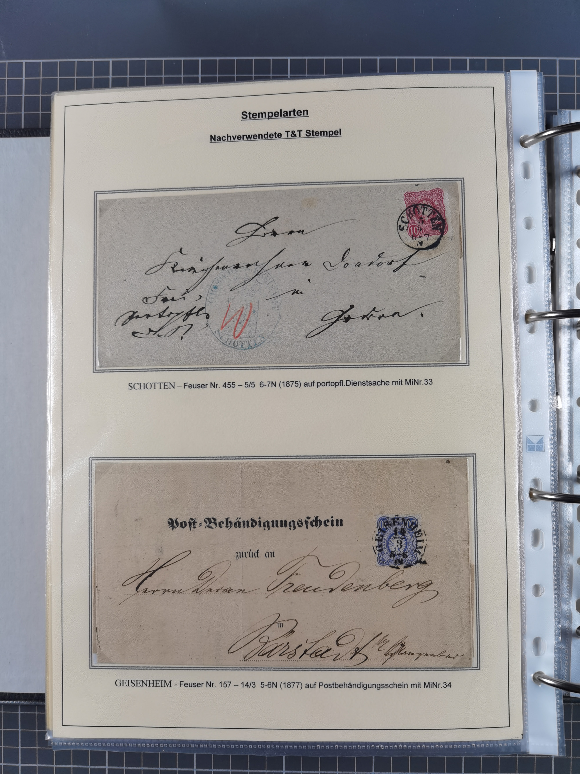1889/1900, gestempelte Spezialsammlung “Krone/Adler”, mit Marken und über 150 Briefen, Karten und Formularen, dabei u.a. lose Zwischenstegpaare, Farbnuancen, dabei u.a. Postzustellungsurkunde, Auslandsrückschein mit 20 Pfg., Bücherzettel, Wertbriefe, Rohrpost, Ganzsachenausschnitte auf Briefen verwendet, Abarten mit u.a. Mi.-Nr. 50I-IV, etc., teils signiert, meist gute Erhaltung