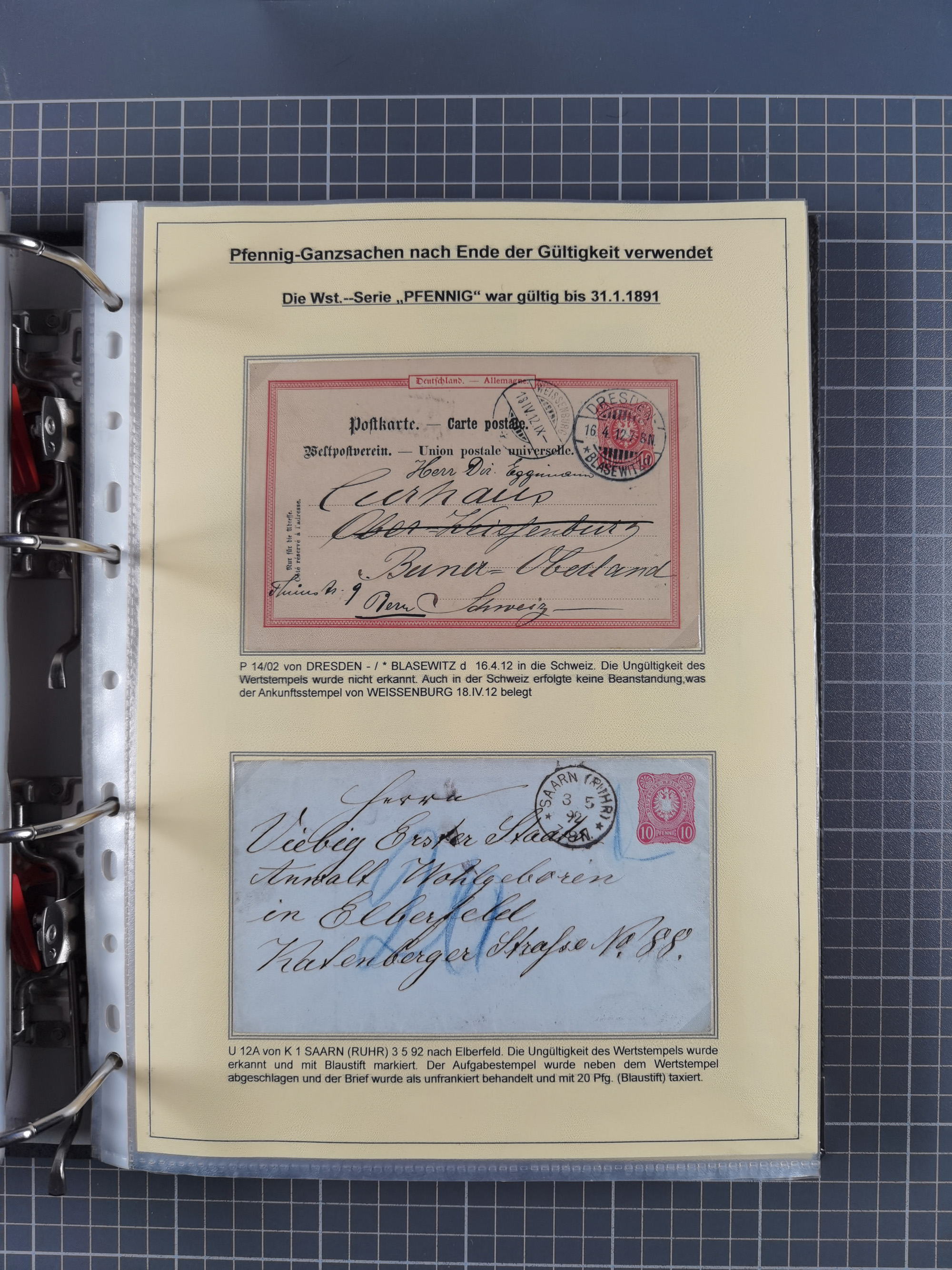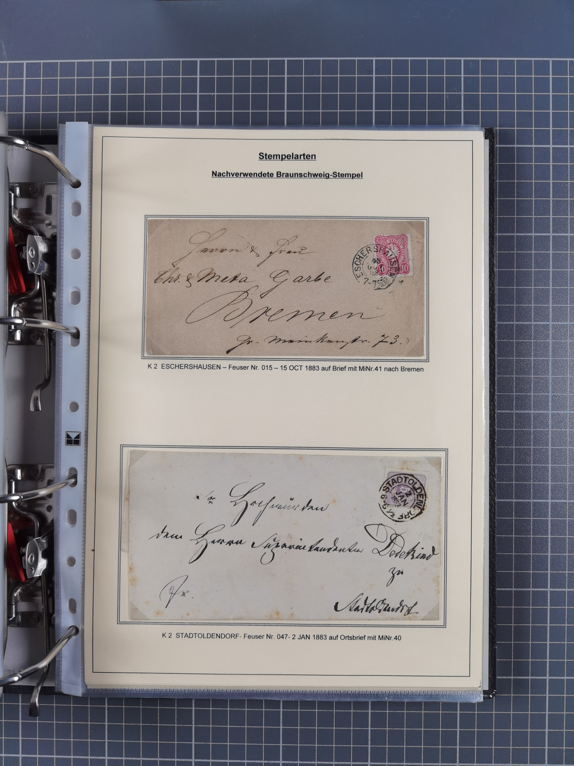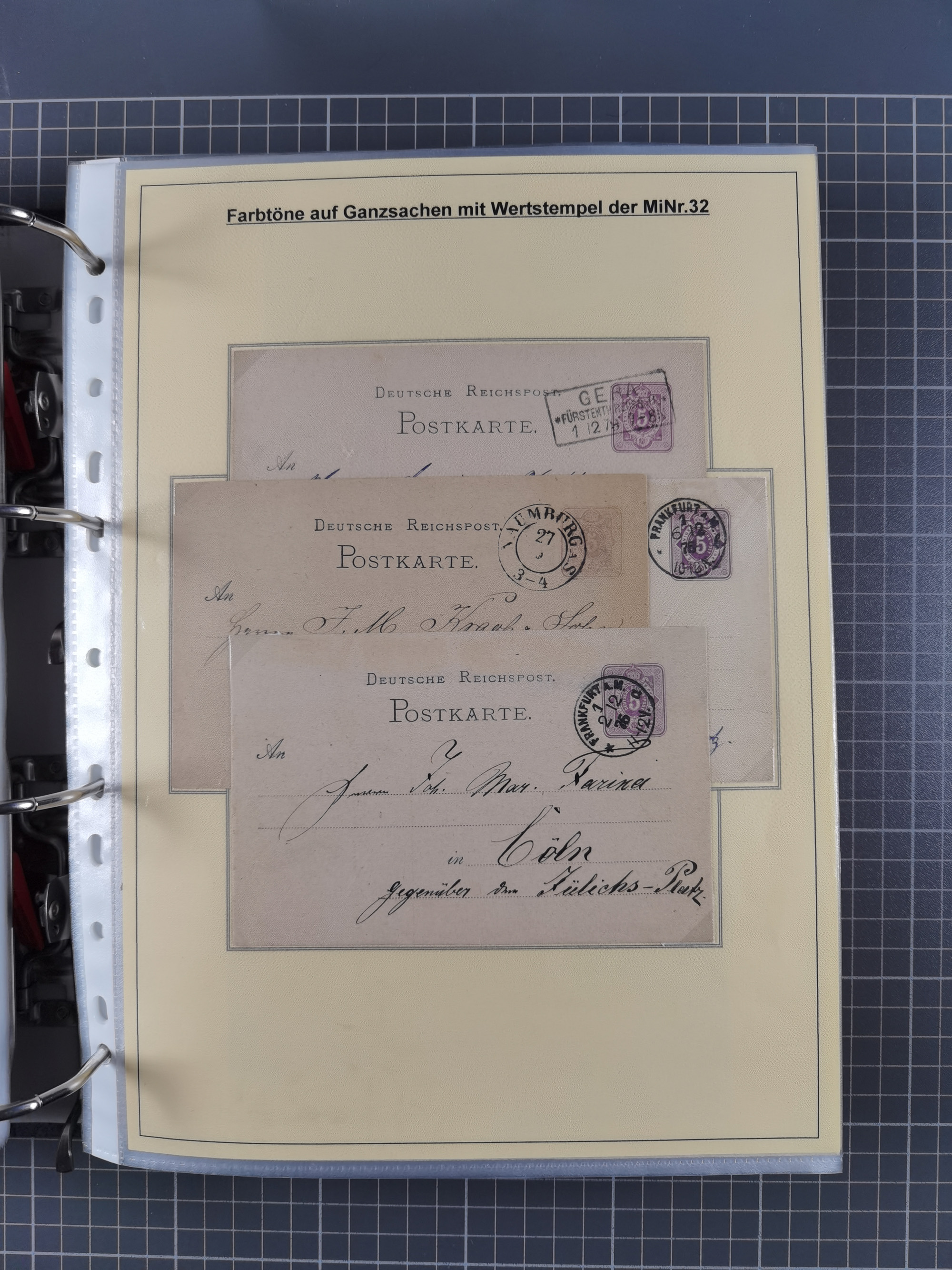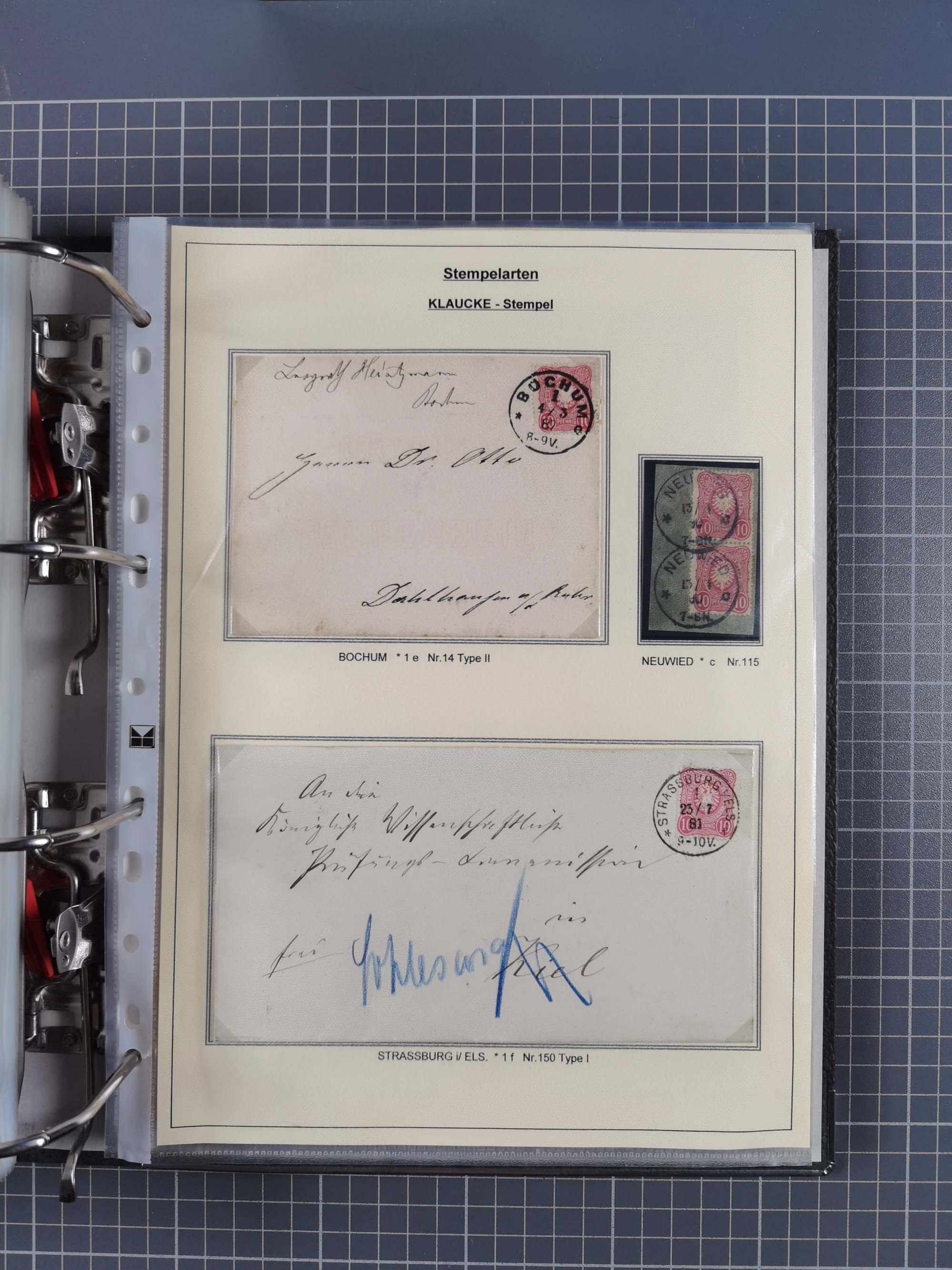 1875/89, gestempelte Spezialsammlung “Pfennig/-e” mit etwas über 130 Briefen und Karten, ab Brustschilde in Pfennigwährung verwendet, dabei Plattenfehler, Farben und Nuancen, FZL, Briefe mit Klaucke-Stempel, Versuchsstempel, weiterverwendete Stempel, MiF mit Brustschild auf beschnittener Vorderseite, Recipisse, Wertbriefe, Ganzsachenausschnitte auf Briefen verwendet, etc., teils signiert, meist gute Erhaltung