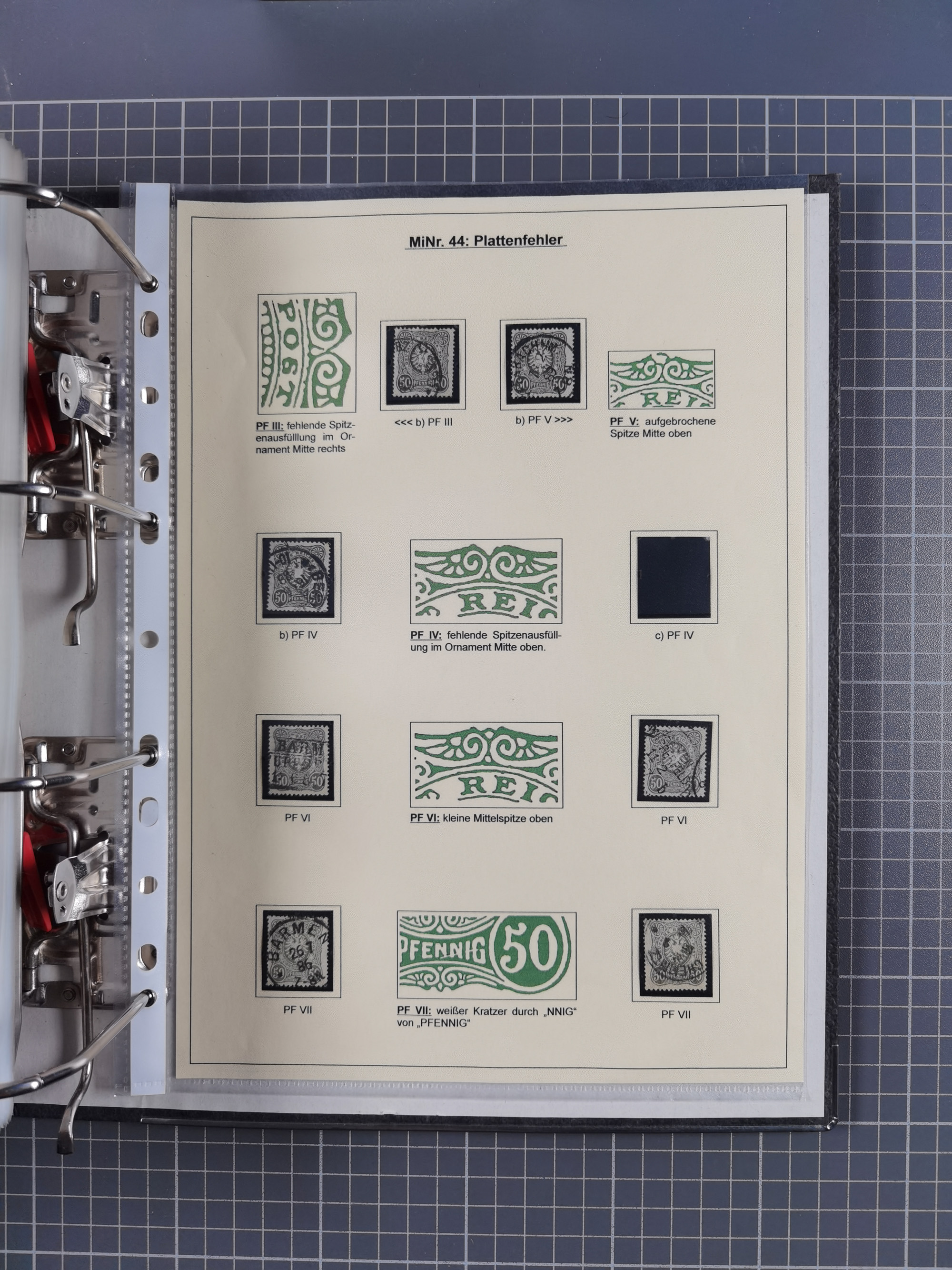 1920, meist postfrischer Bestand mit Mi.-Nr. 115 in 12 verschiedenen Bogen mit HAN “4891.20” mit geschlossener “4”, Plattenfehler XI, XV-XVII, unterschiedliche Farben, ein Bogen sign. Infla Berlin f, ein Bogen mit leichten Anhaftungen, einige leicht fleckig bzw. Randfehler