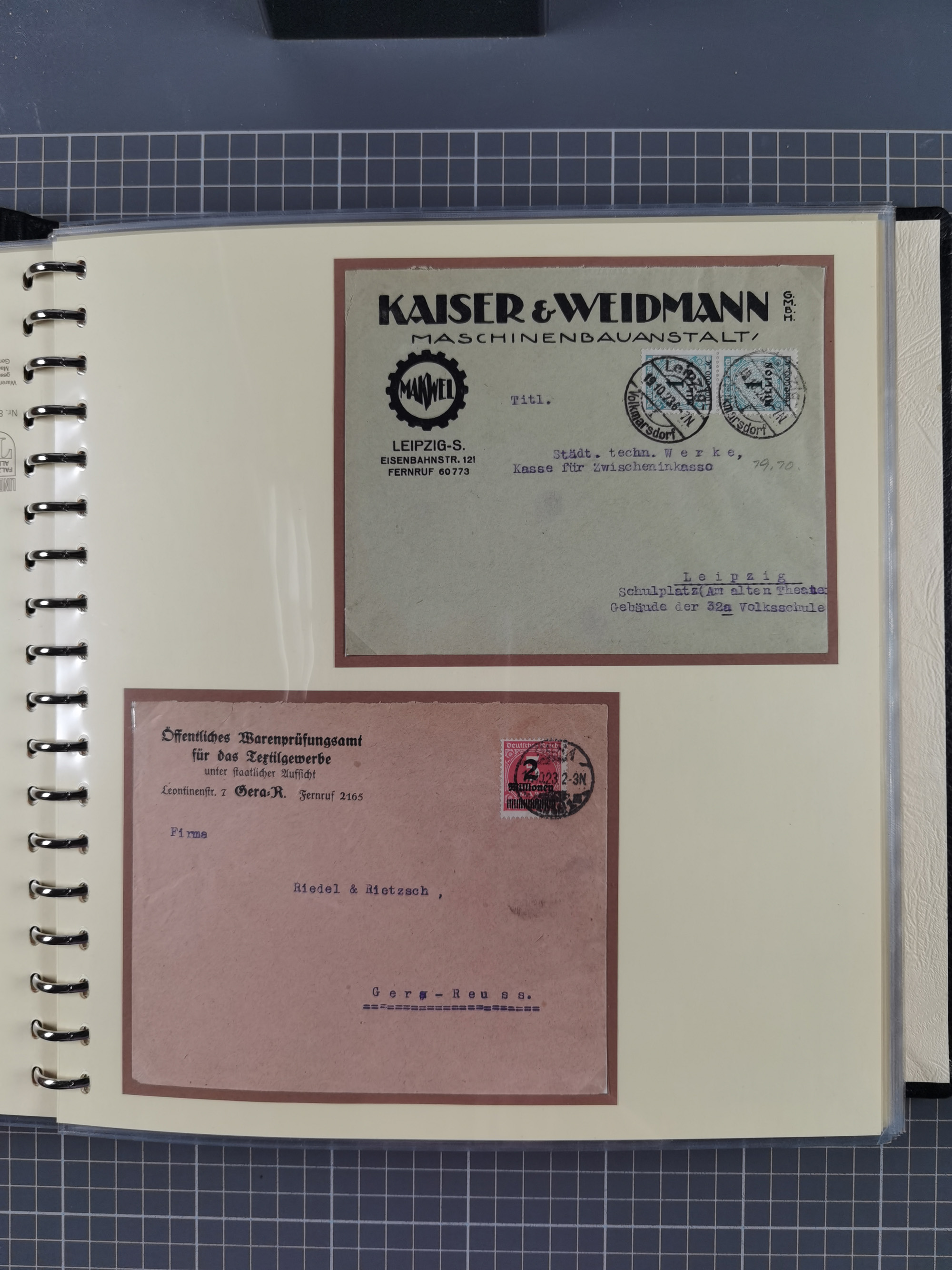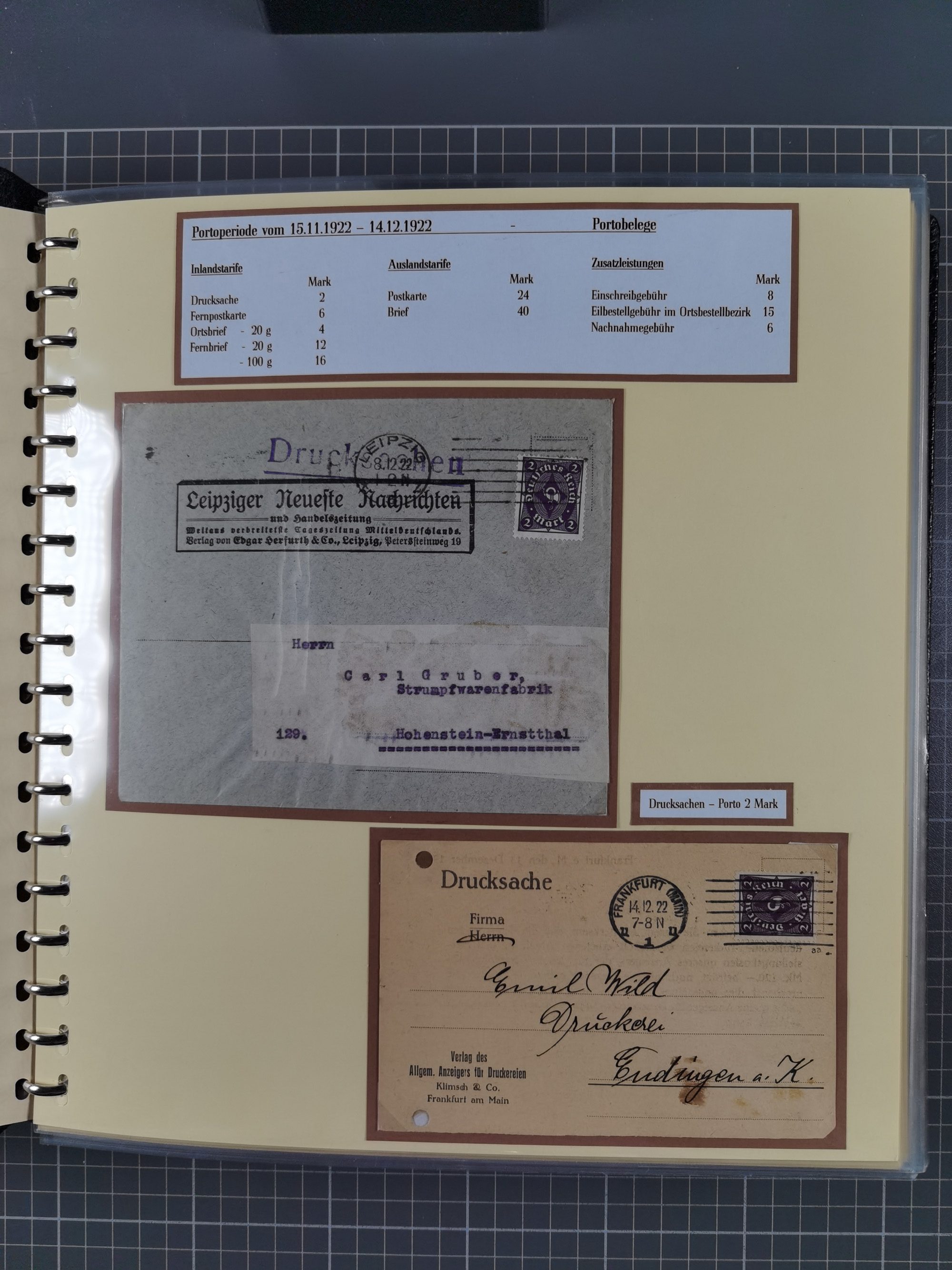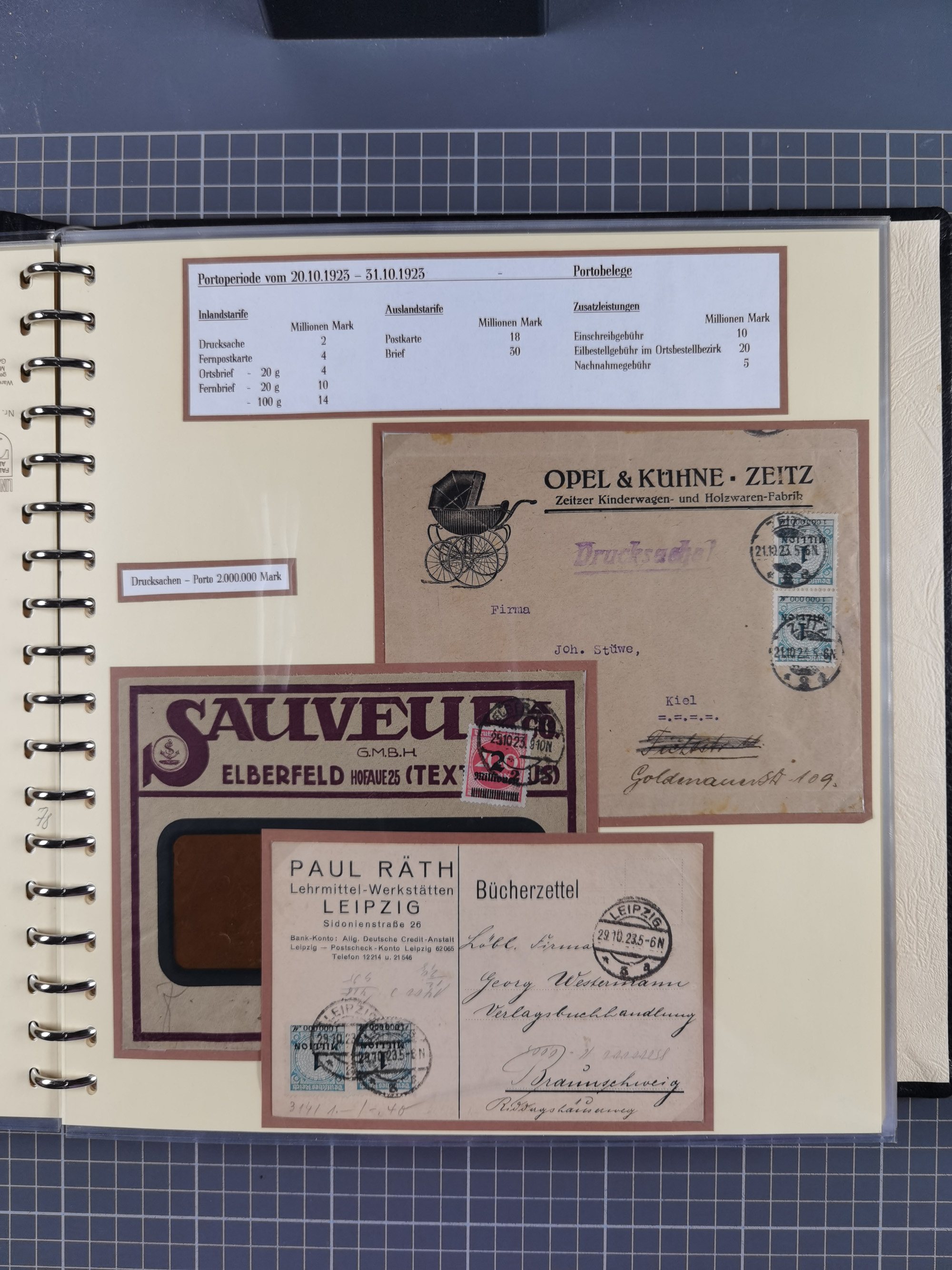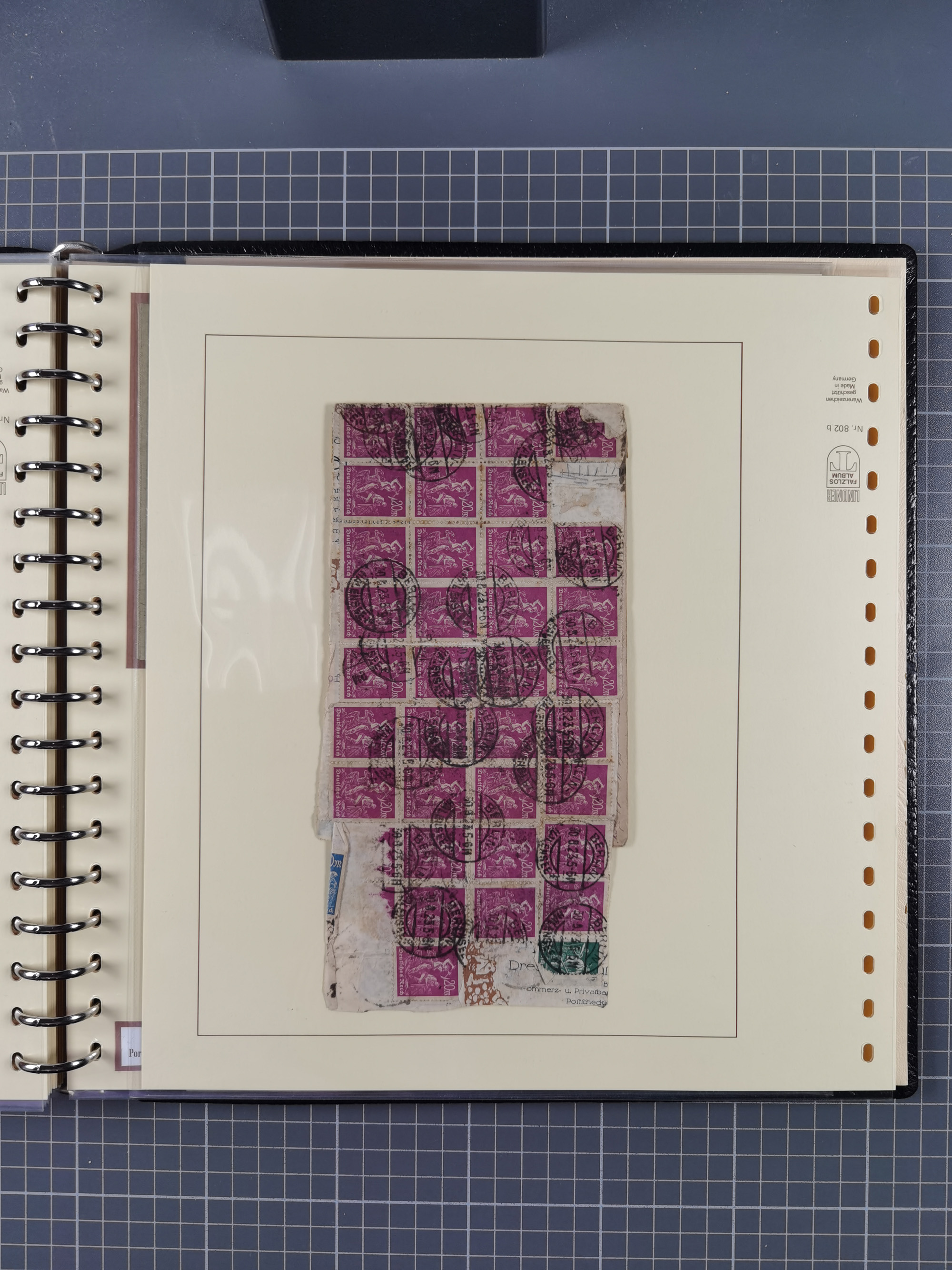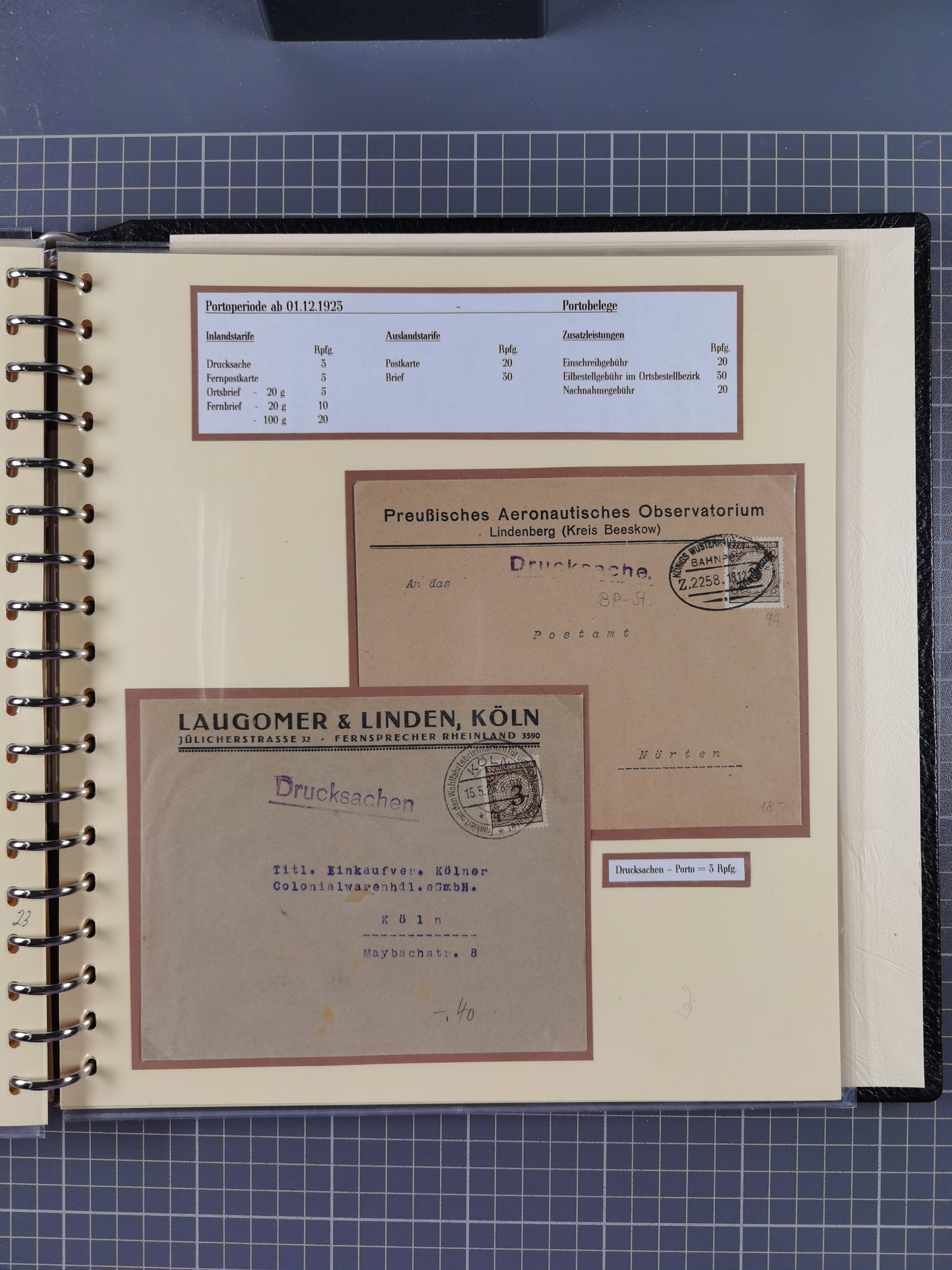 1872/1923, umfangreiche Sammlung mit ca. 800 Briefen,Karten und Ganzsachen. Am Anfang mit kleinem Teil “Hufeisentstempel”, ansonsten liegt der Schwerpunkt bei Infla mit Einzel- und Mehrfachfrankaturen, R-Briefen, Auslandspost, viel Hochinflation mit Dezember-Briefen und Portostufen. Alles auf selbst gestalteten Albenblättern in10 Alben