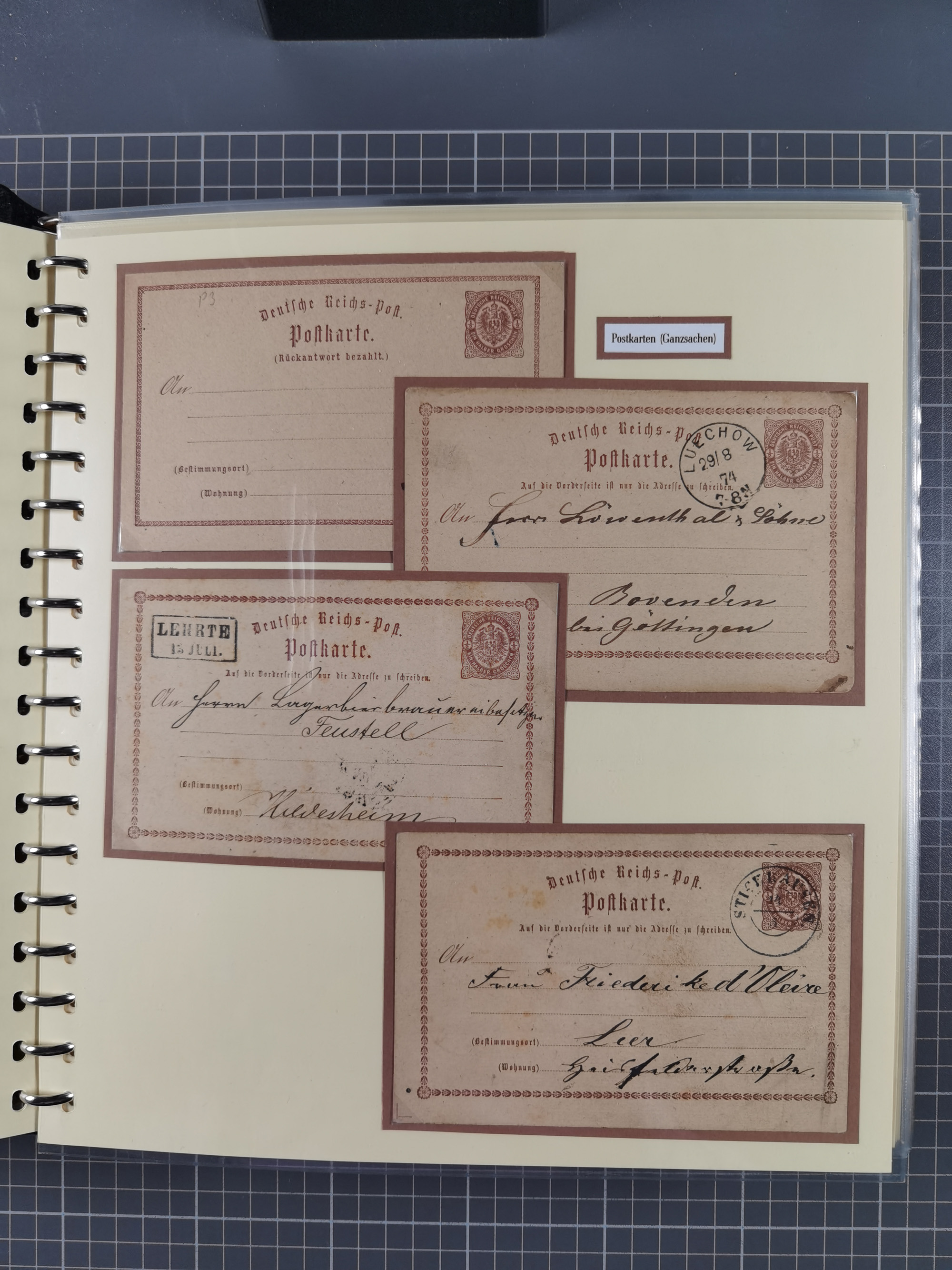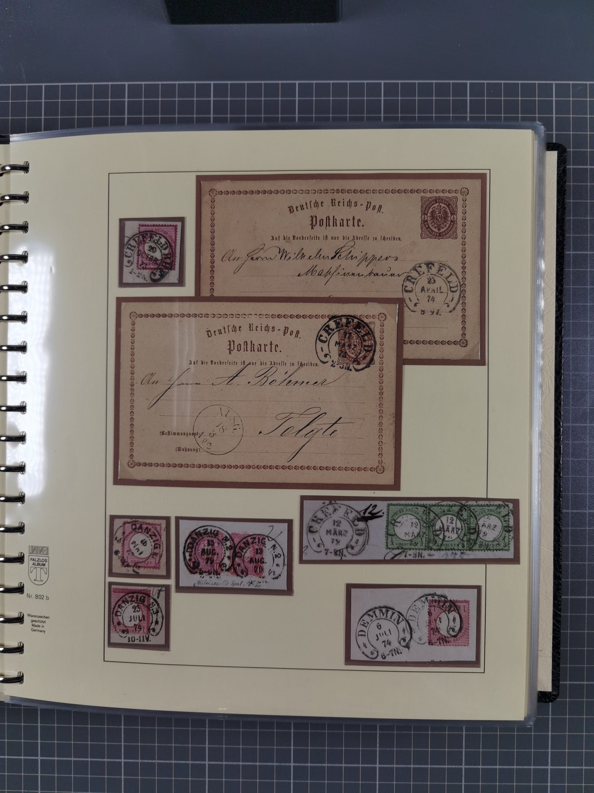 1872/74, Sammlung mit fast 90 Einzel- und Mehrfachfrankaturen der Wertstufen ⅓ Gr., 1 Gr., 2 Gr., 1 Kr. und 3 Kr. mit praktisch nur klaren Stempel-Abschlägen. Dabei dekorative Vertreter-Karten, Auslandspost und eine handschriftliche Entwertung, fast durchgehend in guter Erhaltung, ex Untermann