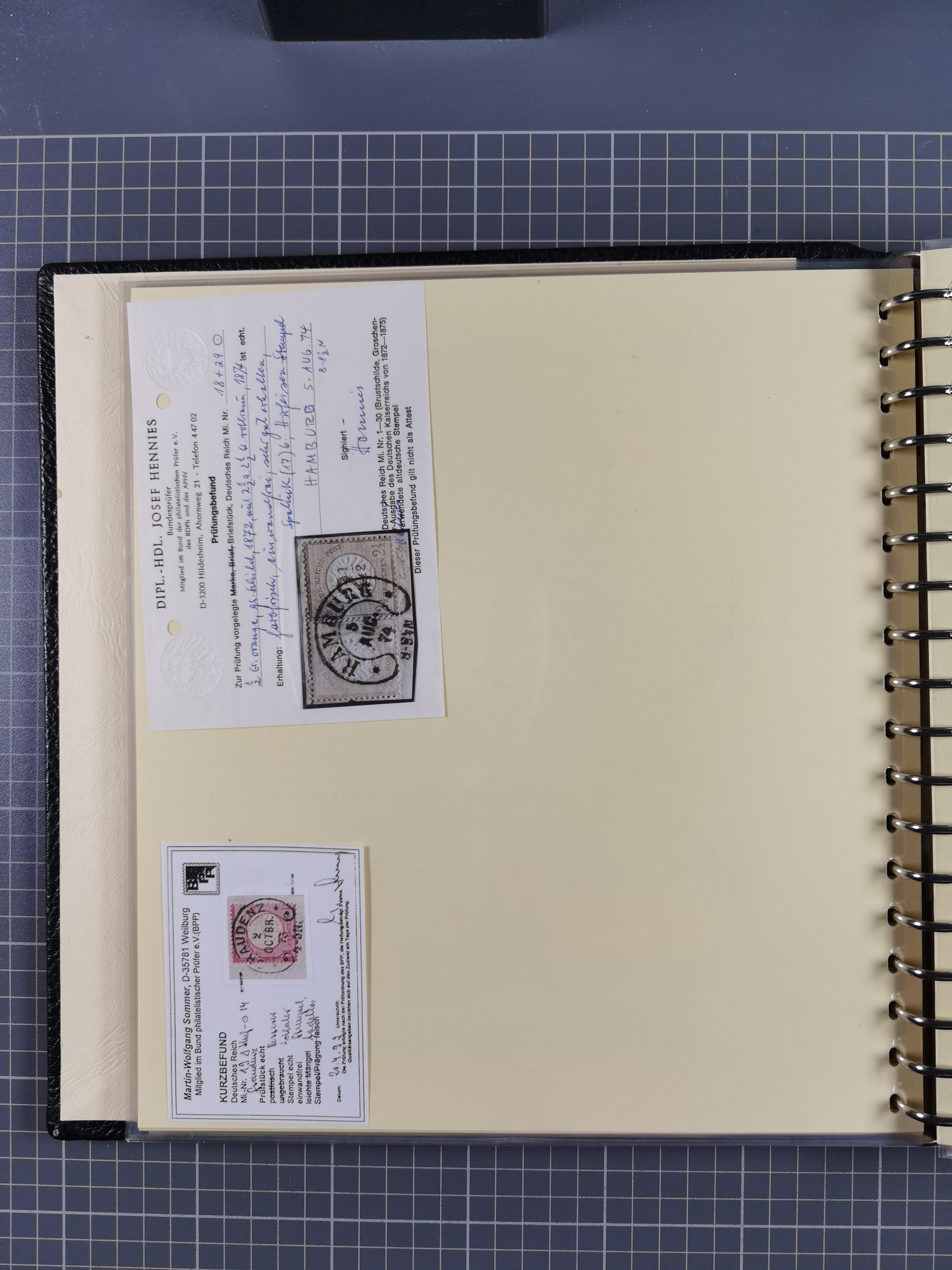 1872/74, umfangreiche Sammlung “Auslandsbriefe” mit ca. 70 Briefen und Karten mit besseren Frankaturen, R-Briefen, Grenzrayon-Briefe in die Niederlande und Schweiz, interessante Stempel, ungewöhnliche Frankatur-Kombination und weiteren Besonderheiten. Dabei u.a. Mi.-Nr. 4+9 auf Brief nach Belgien (FA Krug BPP), Mi.-Nr. 15 im Paar und Einzelmarke + 23a auf Brief in die Schweiz (Paar mit Reparatur, FA Krug BPP), Mi.-Nr. 16+18 auf Drucksache nach Amsterdam, 6x Mi.-Nr. 17a auf Brief in die Schweiz (ein Wert mit Bug), 2x Mi.-Nr. 27a auf Brief nach Schweden, 2x Mi.-Nr. 11+23a auf falsch frankiertem R-Brief nach Paris (fehlerhaft, FA Hennies BPP), Paketkarte mit Mi.-Nr. 12 + 20 (2) nach Amsterdam und Mi.-Nr. 1, 18, 19 und 22 auf Brief nach Australien (repariert, FA Krug BPP). Dazu drei Briefe aus DP Türkei mit Vorläufer-Frankaturen, u.a. Mi.-Nr. V5 (2) auf Faltbrief in die Schweiz. Die Erhaltung ist zum Teil fehlerhaft, vieles signiert bzw. mit FB und Fotoattesten, ex Untermann