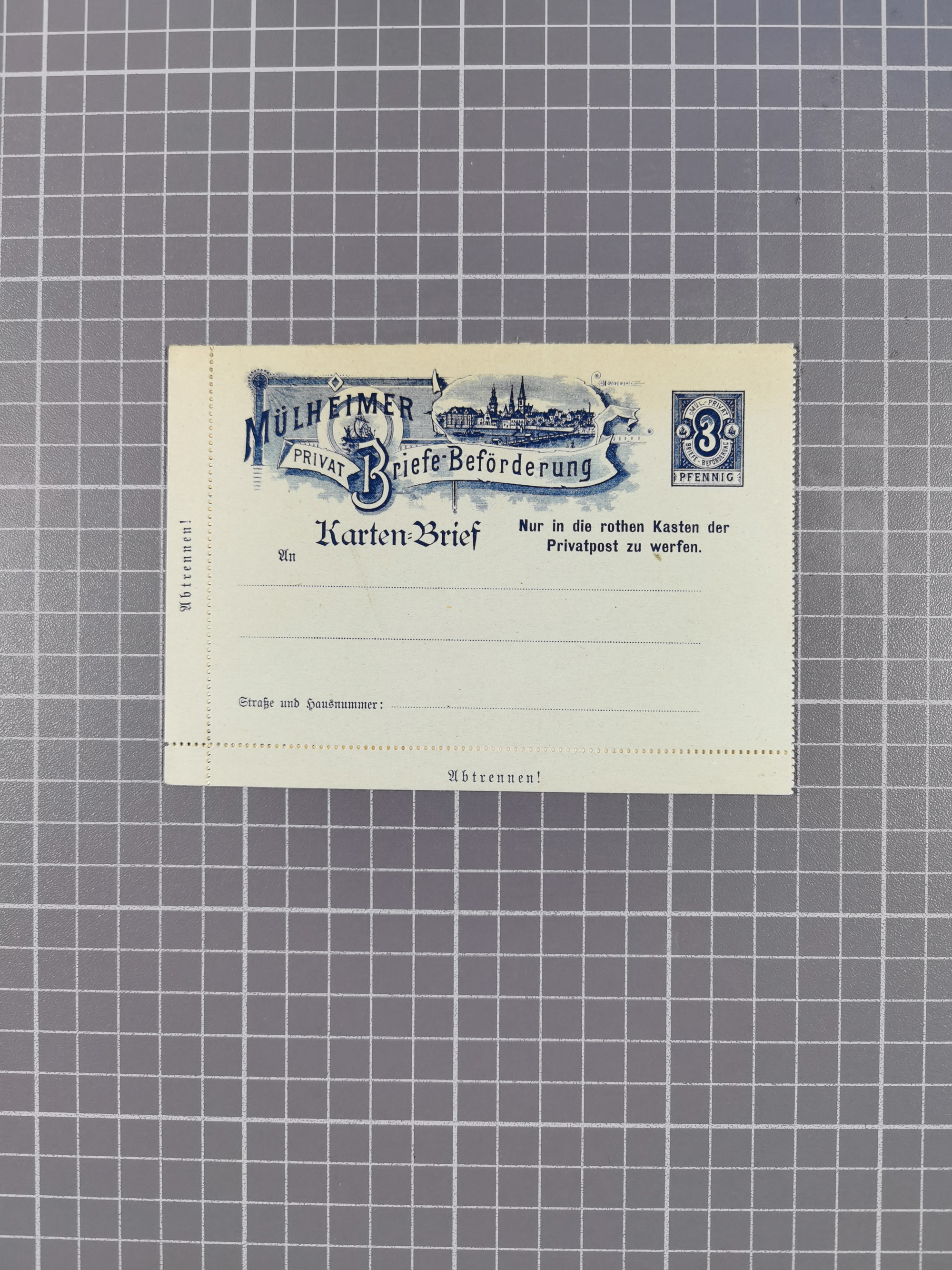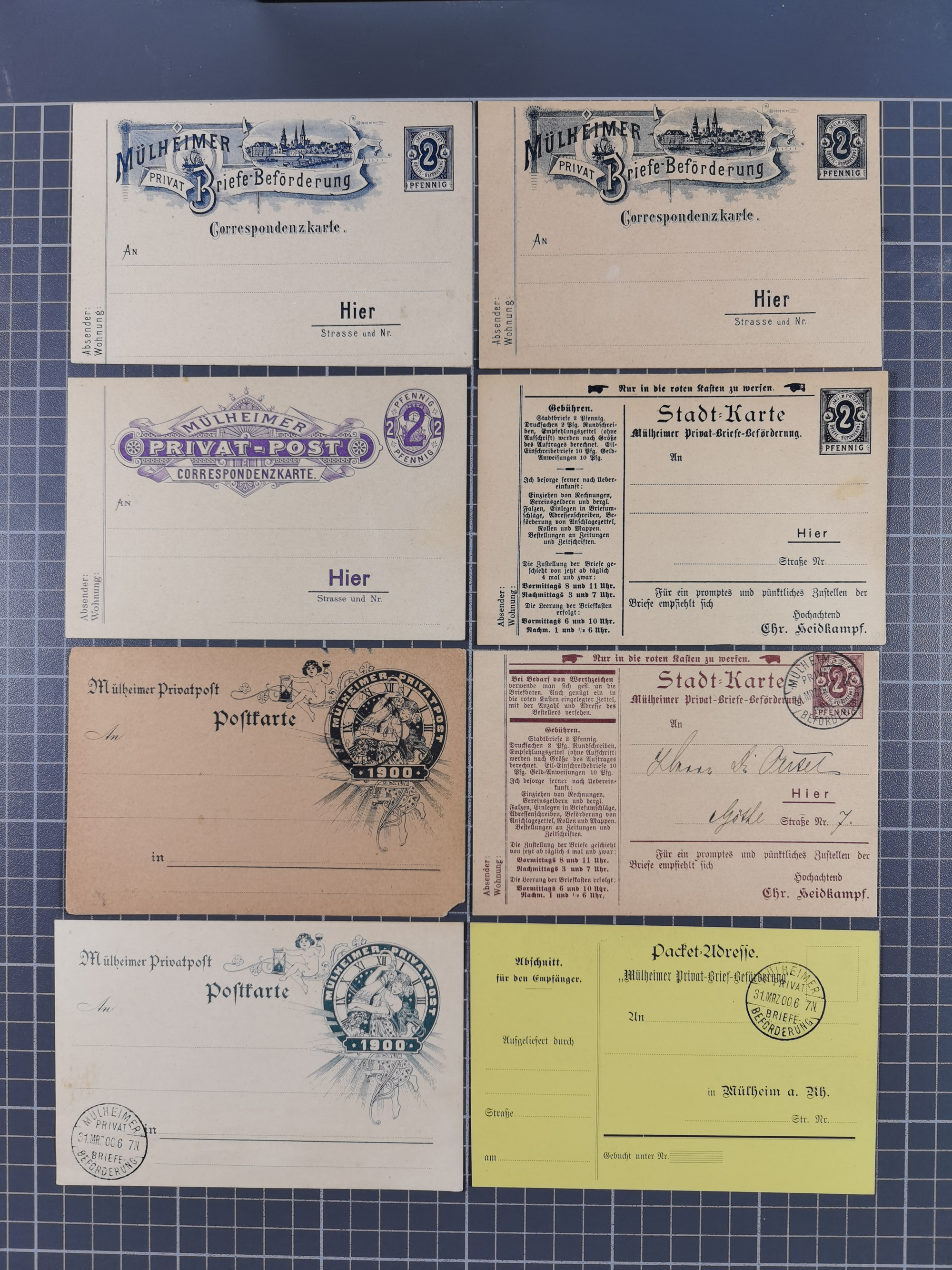 Mülheim-Privat-Briefe-Beförerung: 1896/1900, Partie mit acht ungebrauchten Ganzsachen und einer Paket-Adresse inkl. 3x mit Blankostempel. Dabei u.a. P1a und b und P7, meist in gute Erhaltung