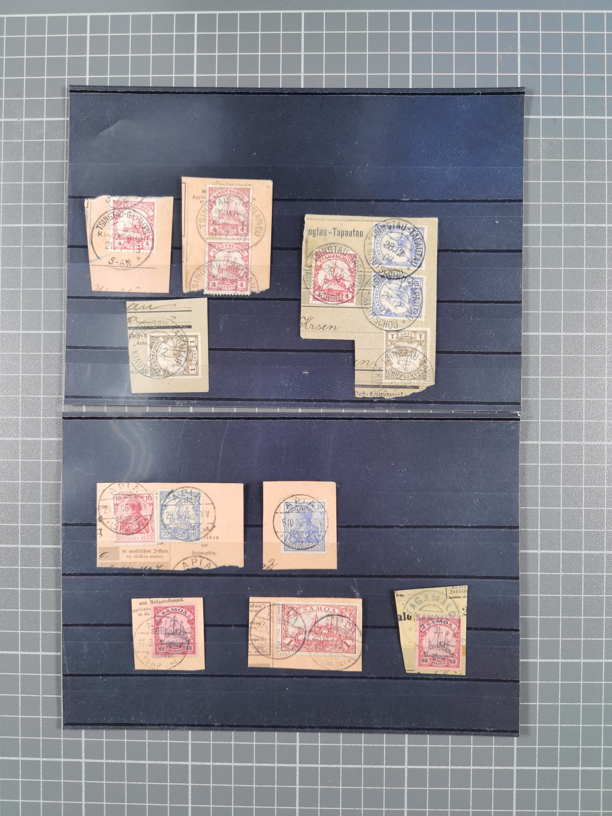 1898/1919, meist gestempelte Sammlung mit besseren und kpl. Ausgaben und bis auf wenige Ausnahmen auf schönen Briefstücken. Dabei u.a. Mi.-Nr. 1-6II im postfrischen Viererblocksatz, Mi.-Nr. 7IB und 7II auf zwei Briefstücken (signiert), Mi.-Nr. 9 auf Briefstück (sign. Bothe BPP), Mi.-Nr. 10 auf Brieftück (FA Jäschke-L. BPP), Mi.-Nr. 11 auf Briefstück (FA Bothe BPP) und die Ausgaben ab Reichspost in den Hauptnummern überkomplett. Viele bessere Marken sind signiert und durchgehend in guter Erhaltung