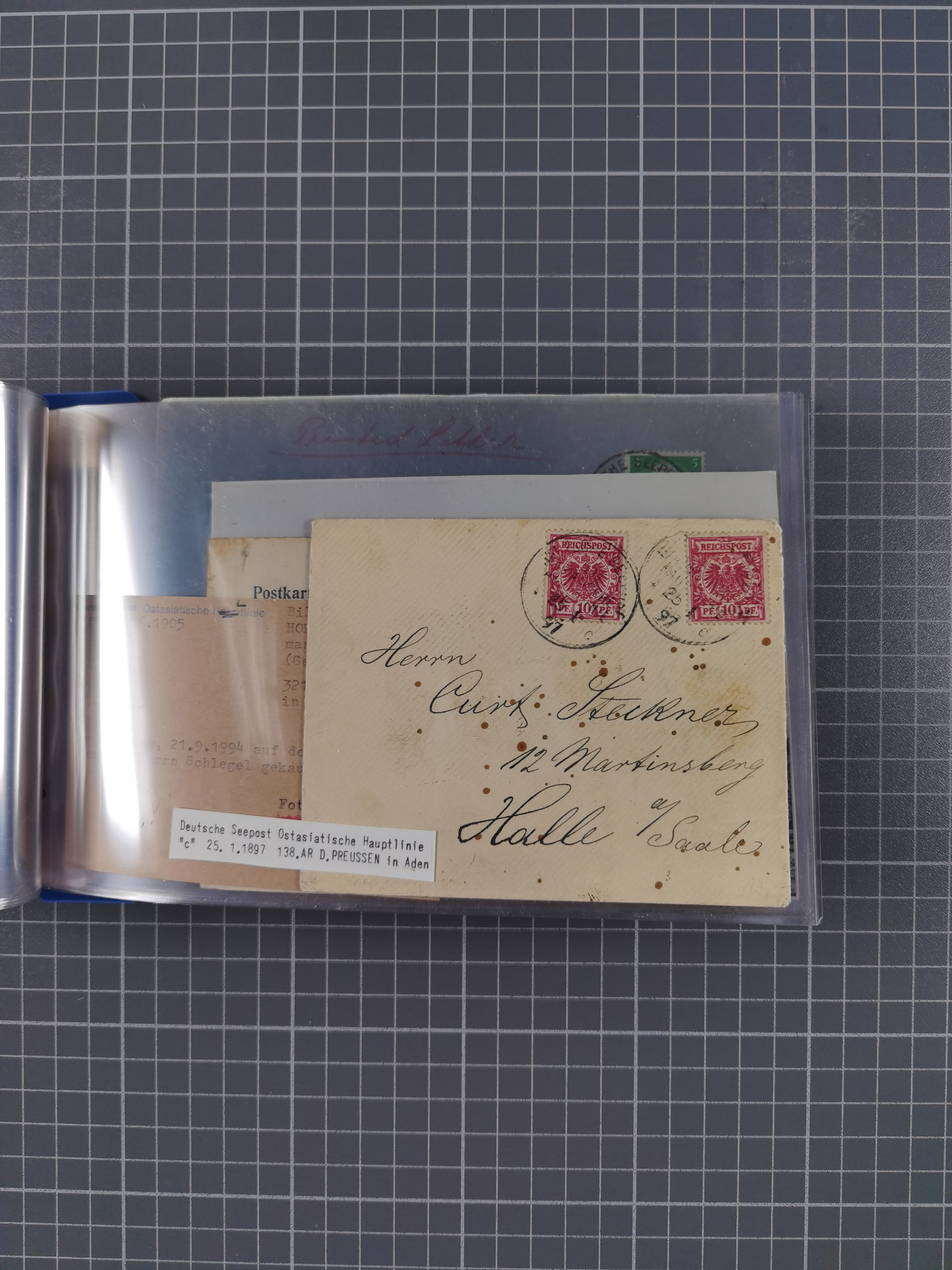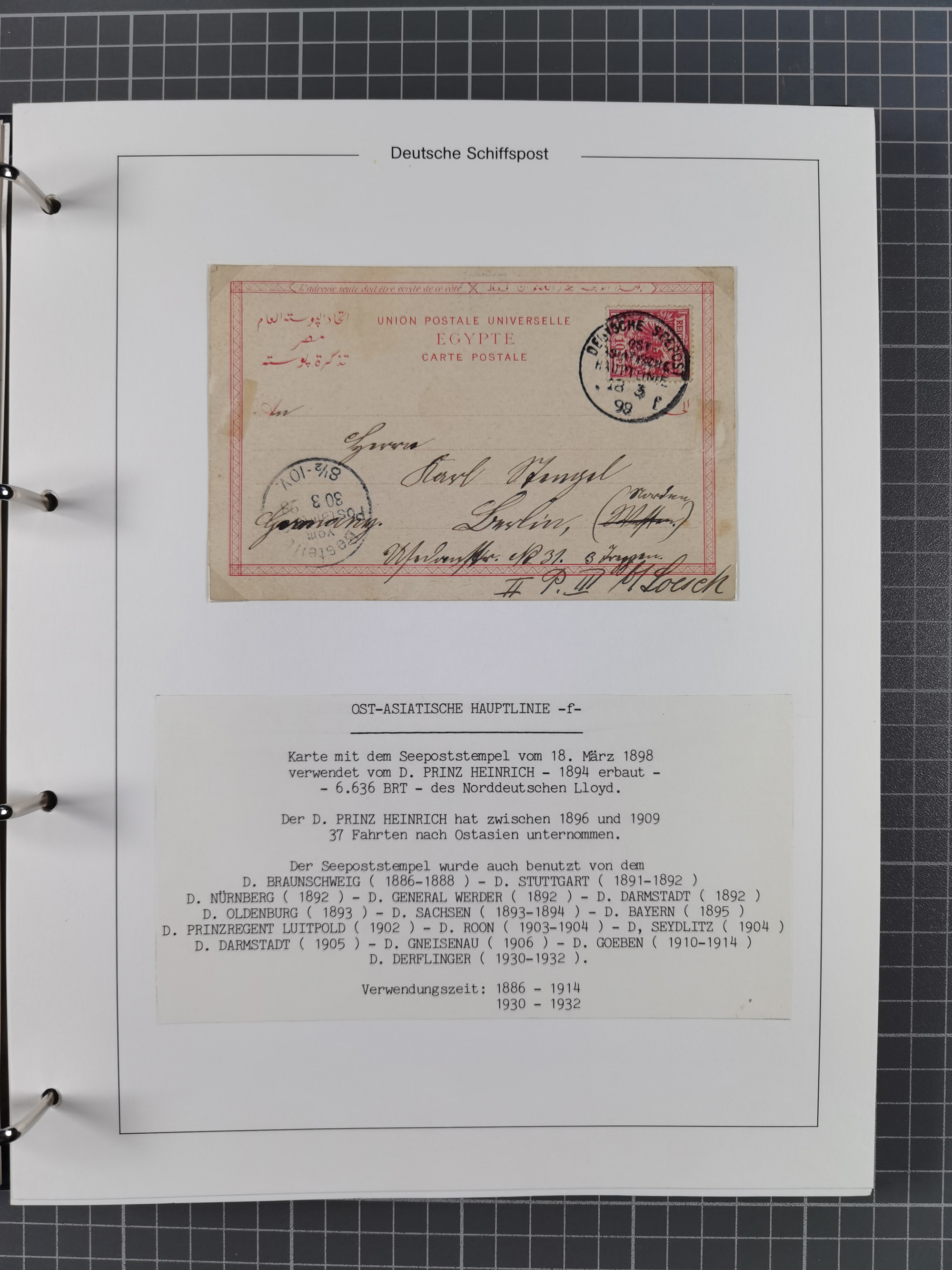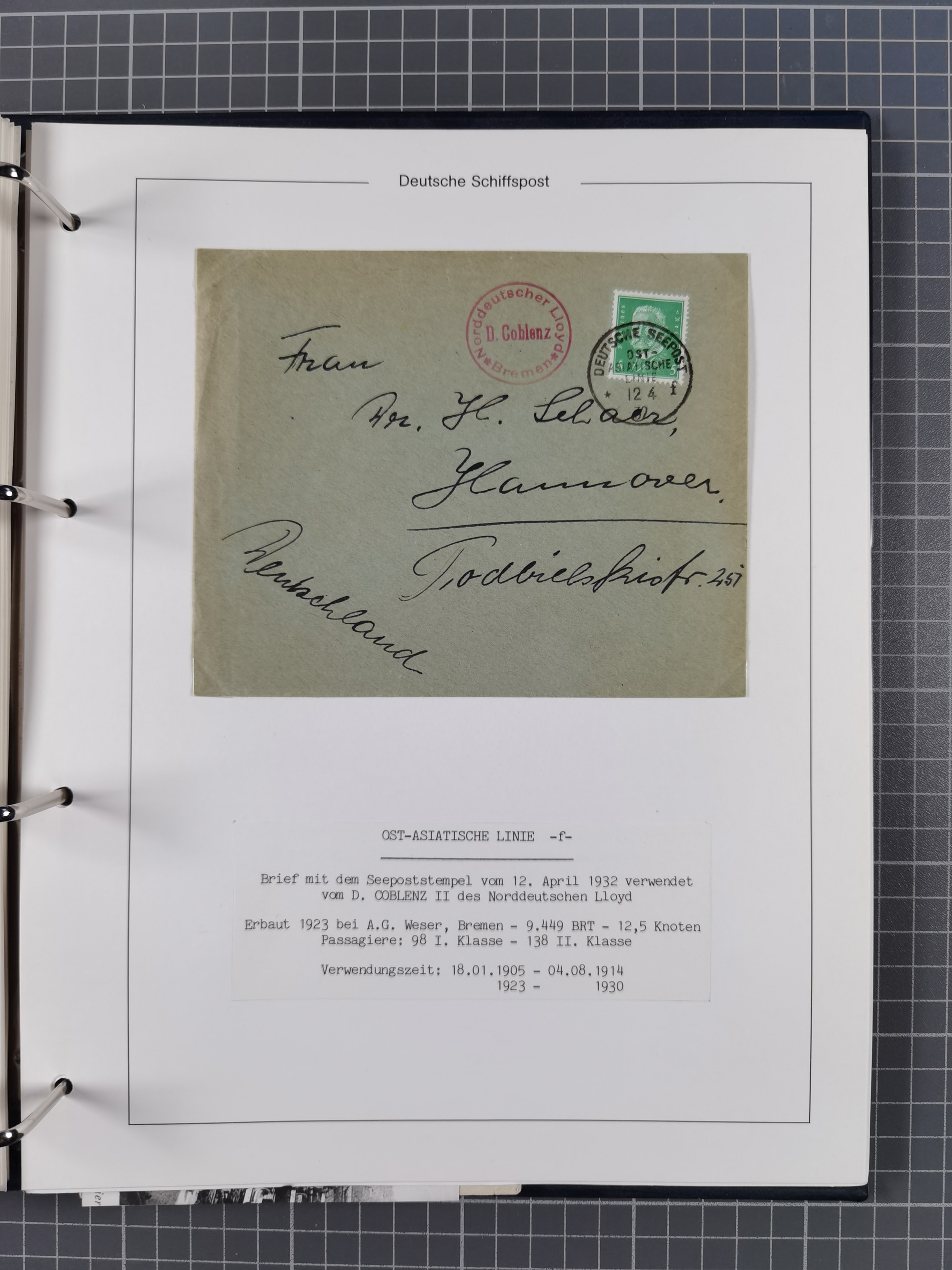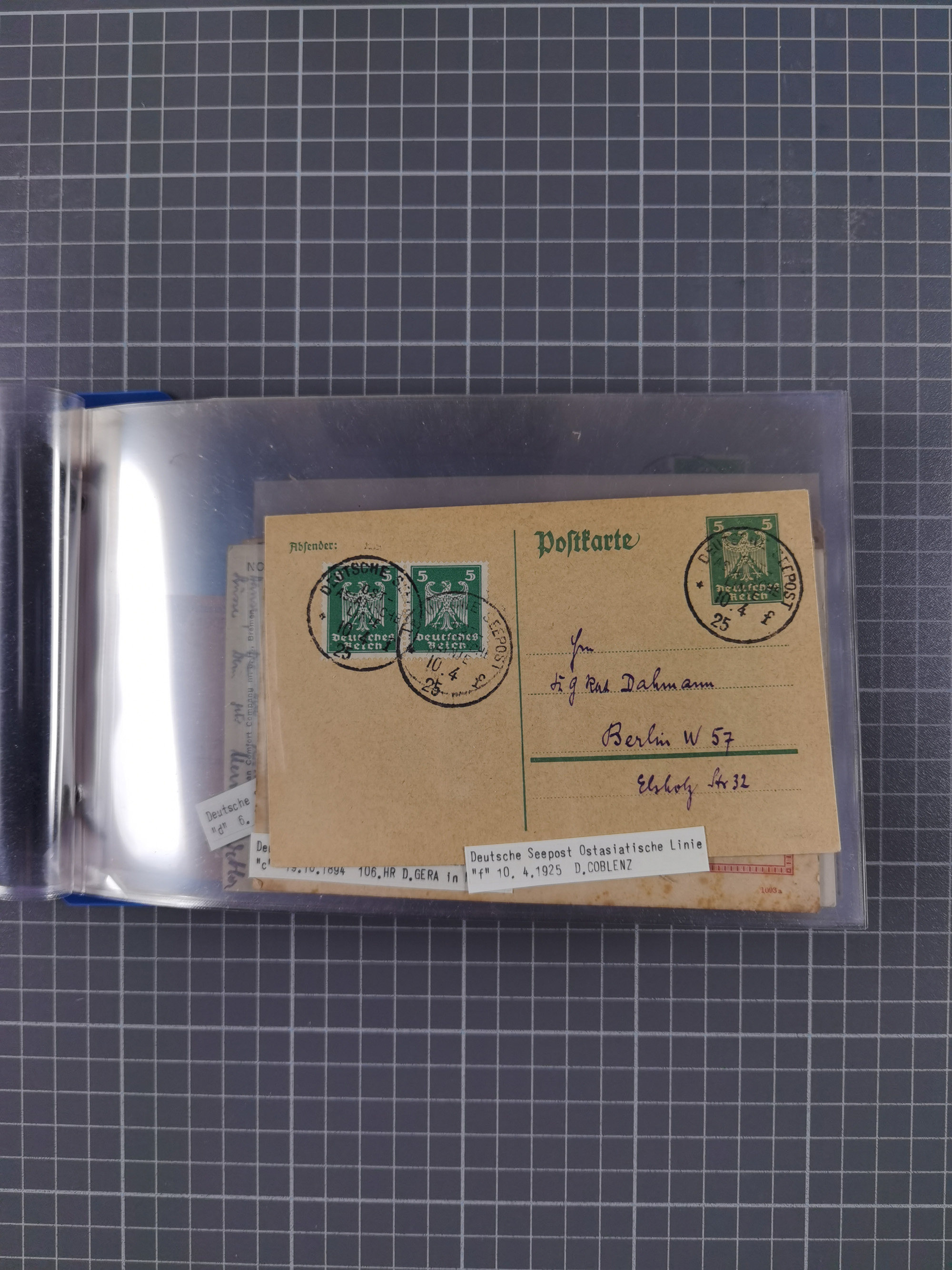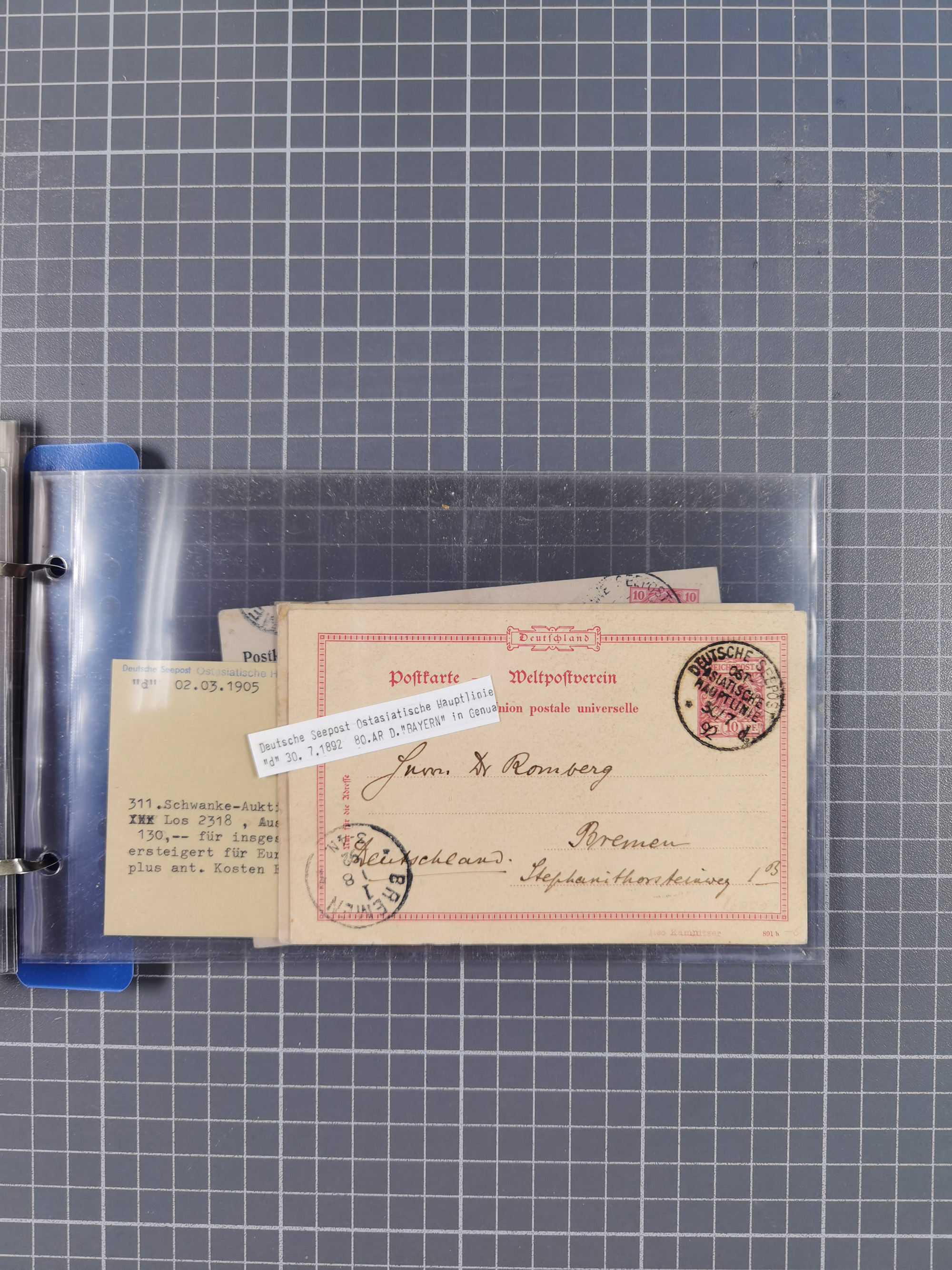 1891/1935, Sammlung “OST-ASIATISCHE HAUPTLINIE” bzw. “OST ASIATISCHE LINIE” mit über 90 Briefen, Karten und Ganzsachen. Dabei “Paquebot”-Stempel, Feldpost vom Boxer-Aufstandt und weitere Besonderheiten, meist mit kleiner Beschreibung mit Dampfer-Angabe, ex Steinmeyer