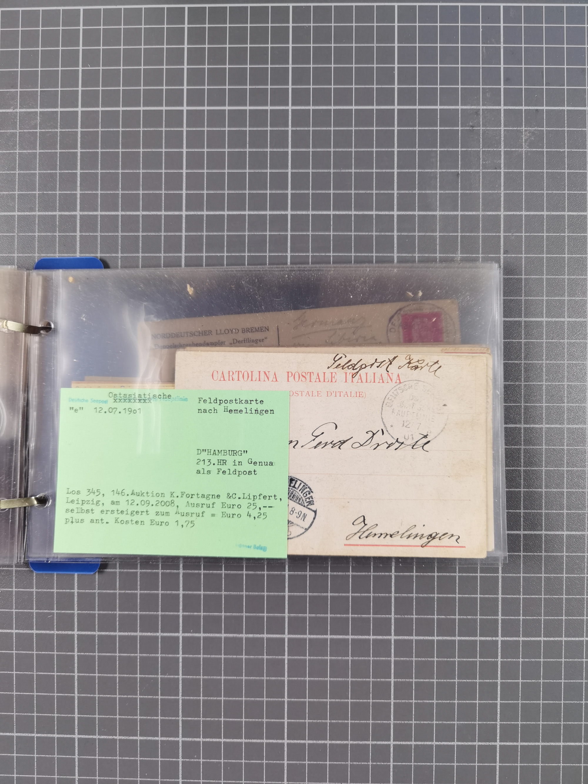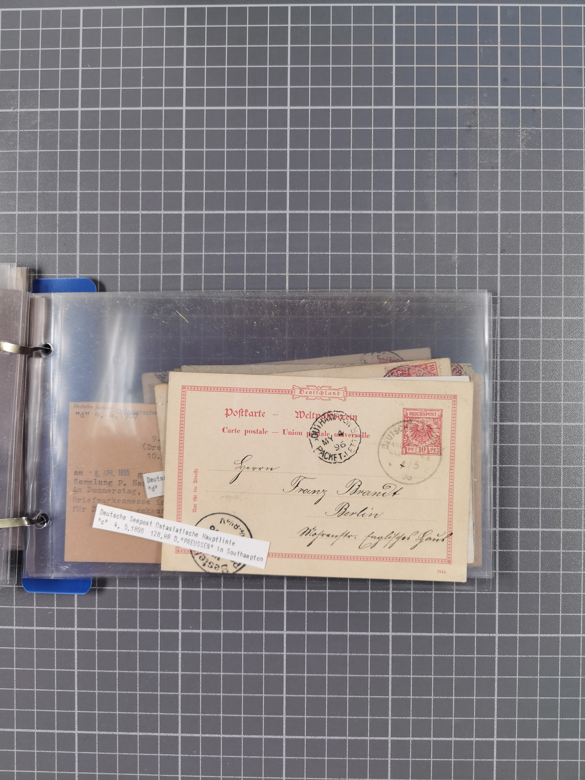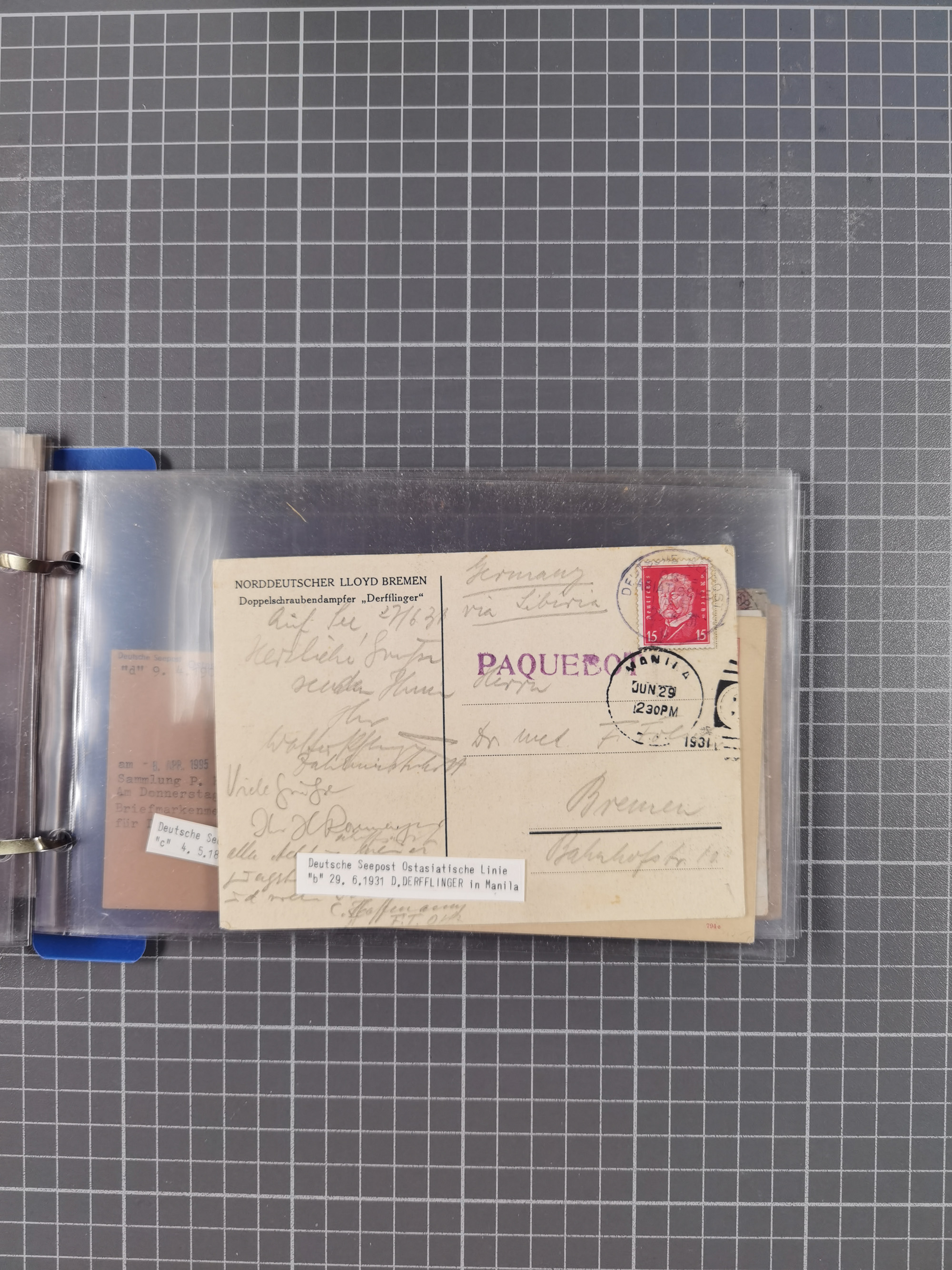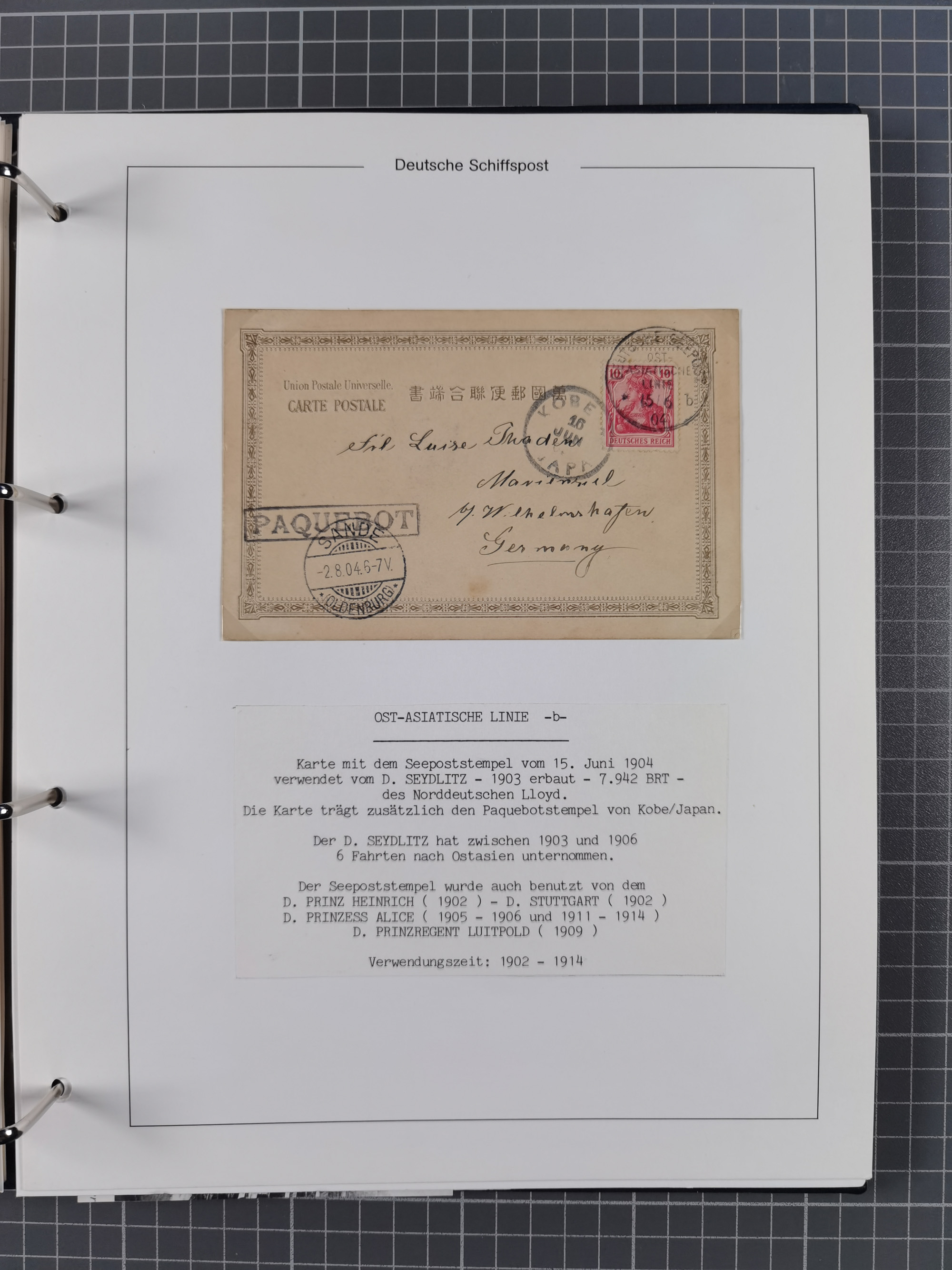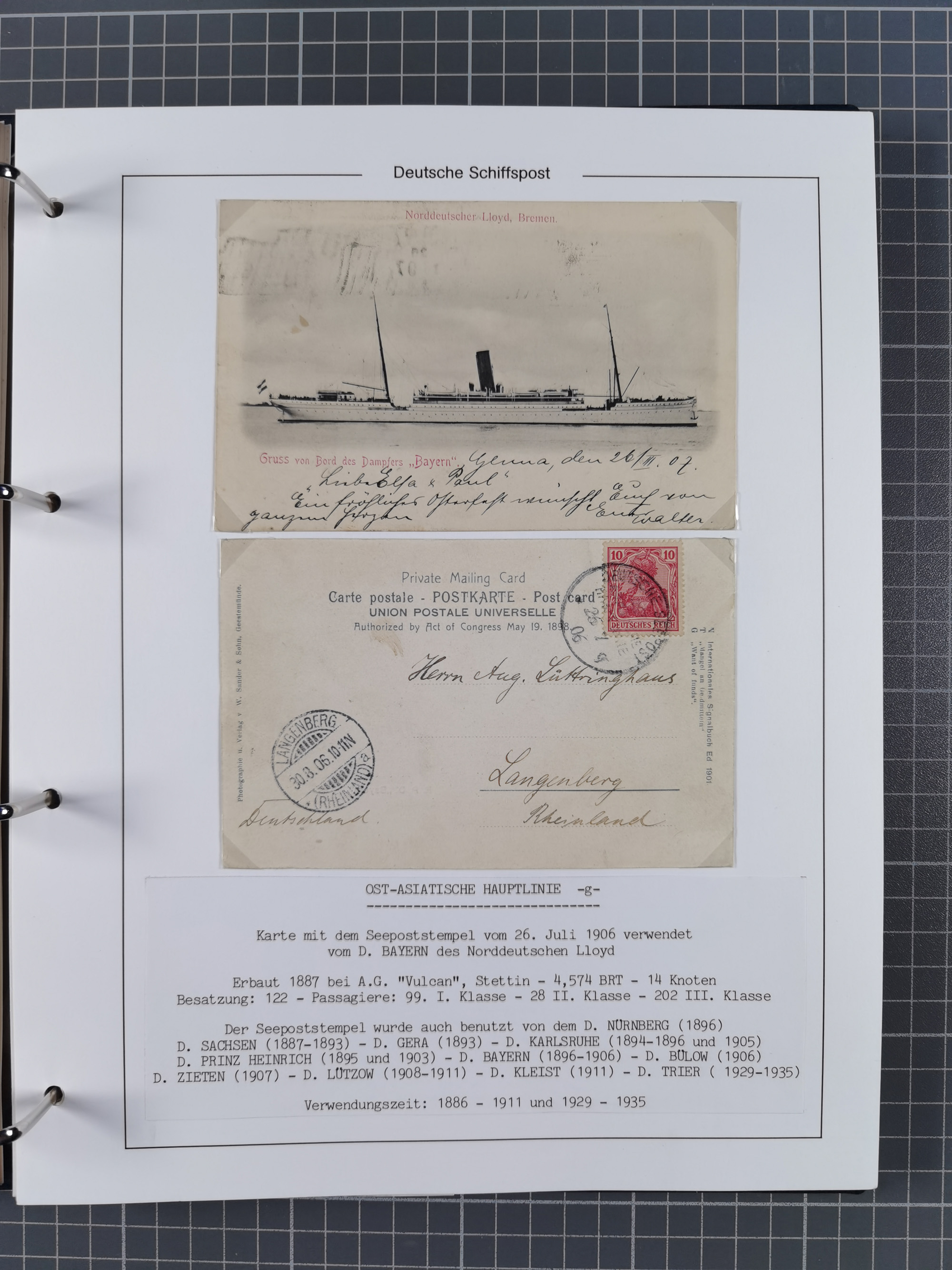 1891/1935, Sammlung “OST-ASIATISCHE HAUPTLINIE” bzw. “OST ASIATISCHE LINIE” mit über 90 Briefen, Karten und Ganzsachen. Dabei “Paquebot”-Stempel, Feldpost vom Boxer-Aufstandt und weitere Besonderheiten, meist mit kleiner Beschreibung mit Dampfer-Angabe, ex Steinmeyer