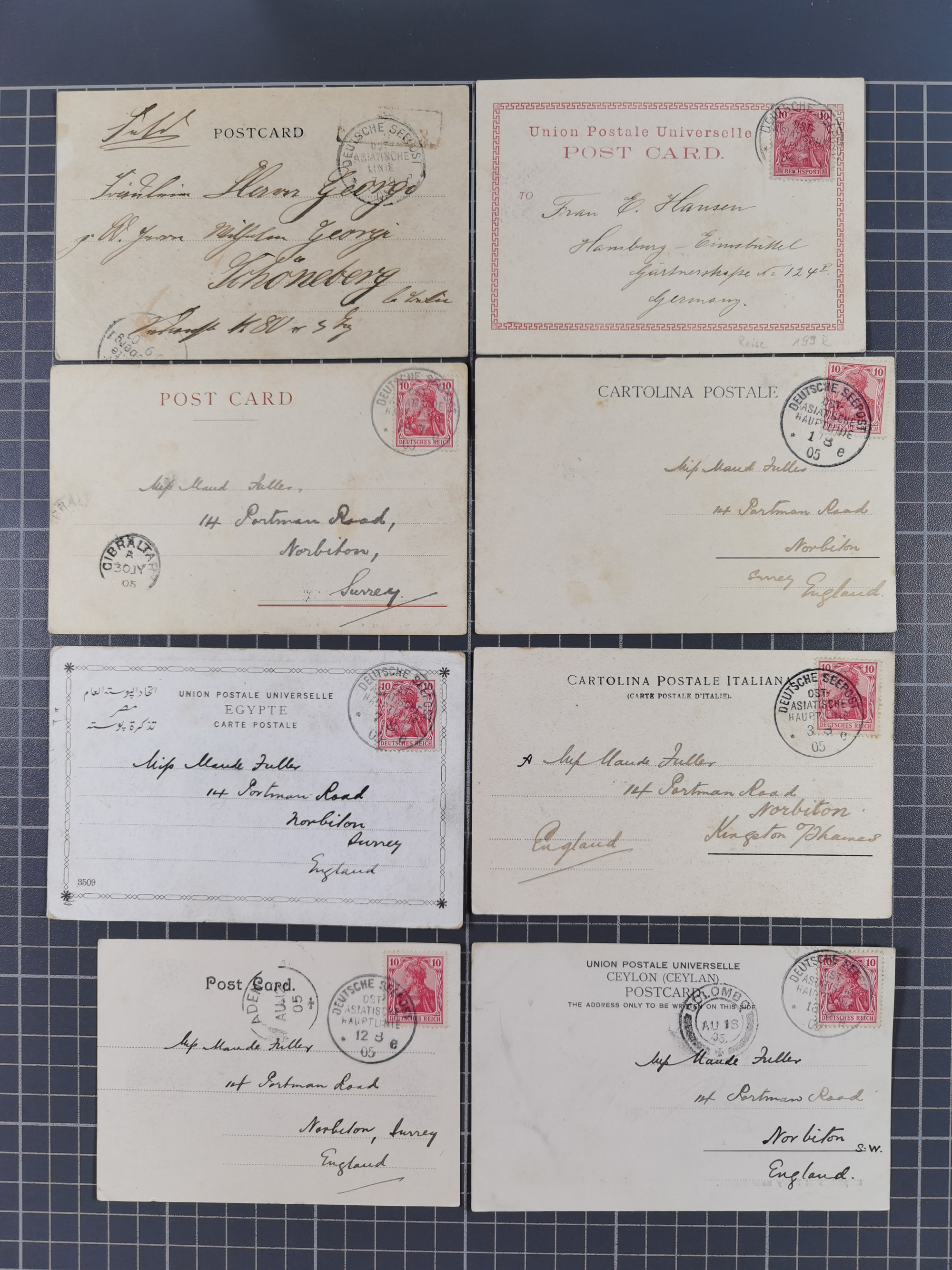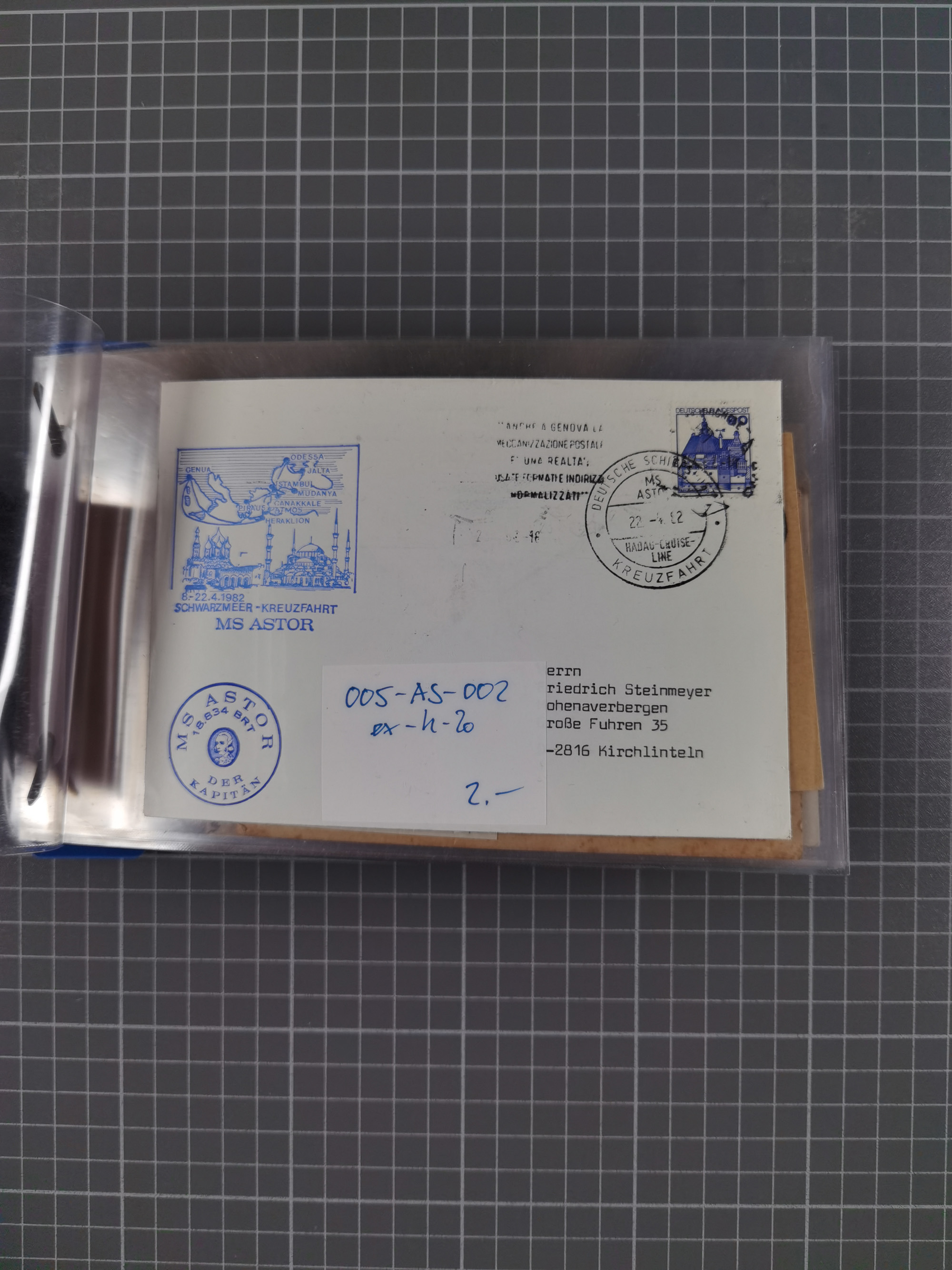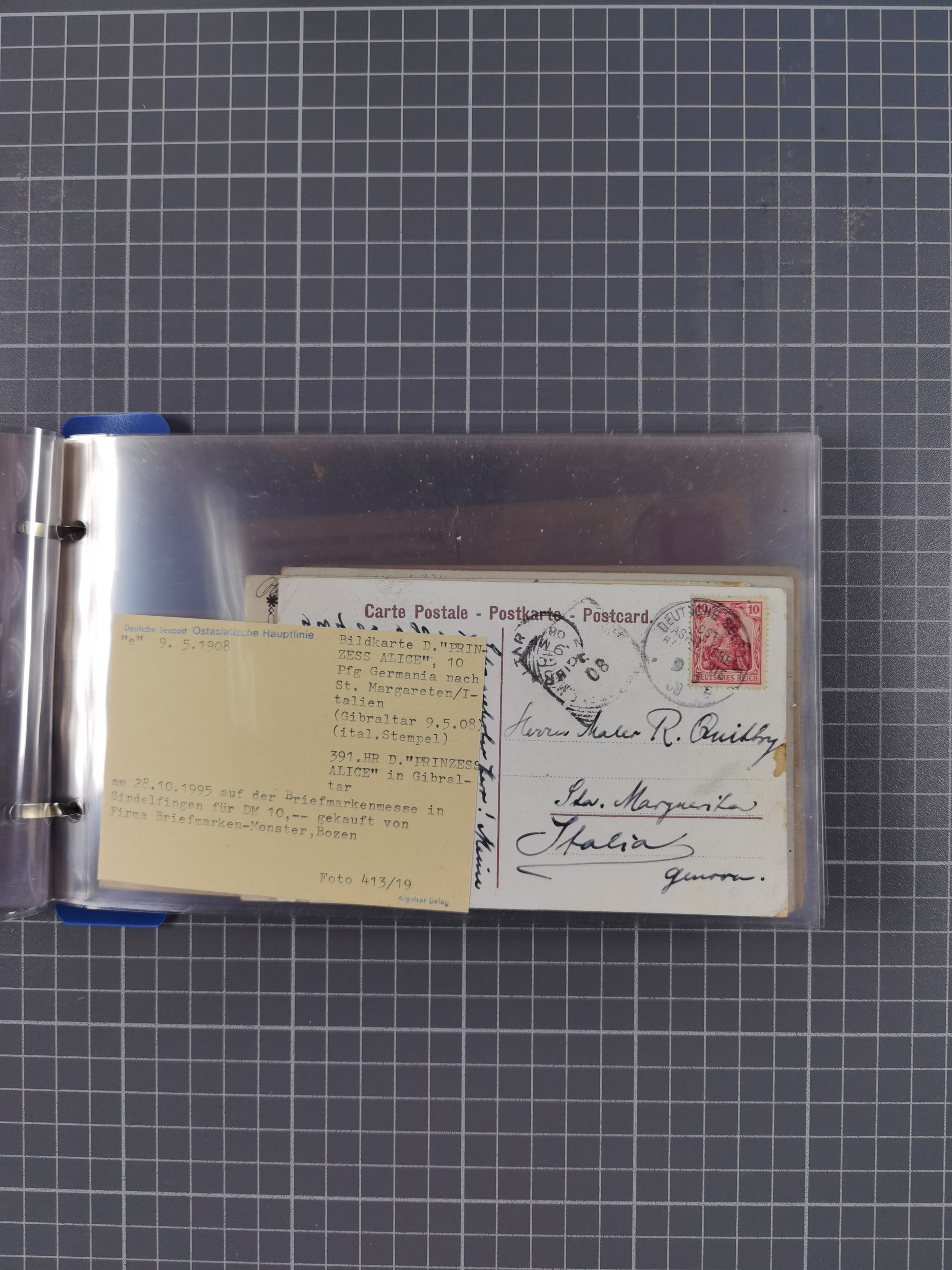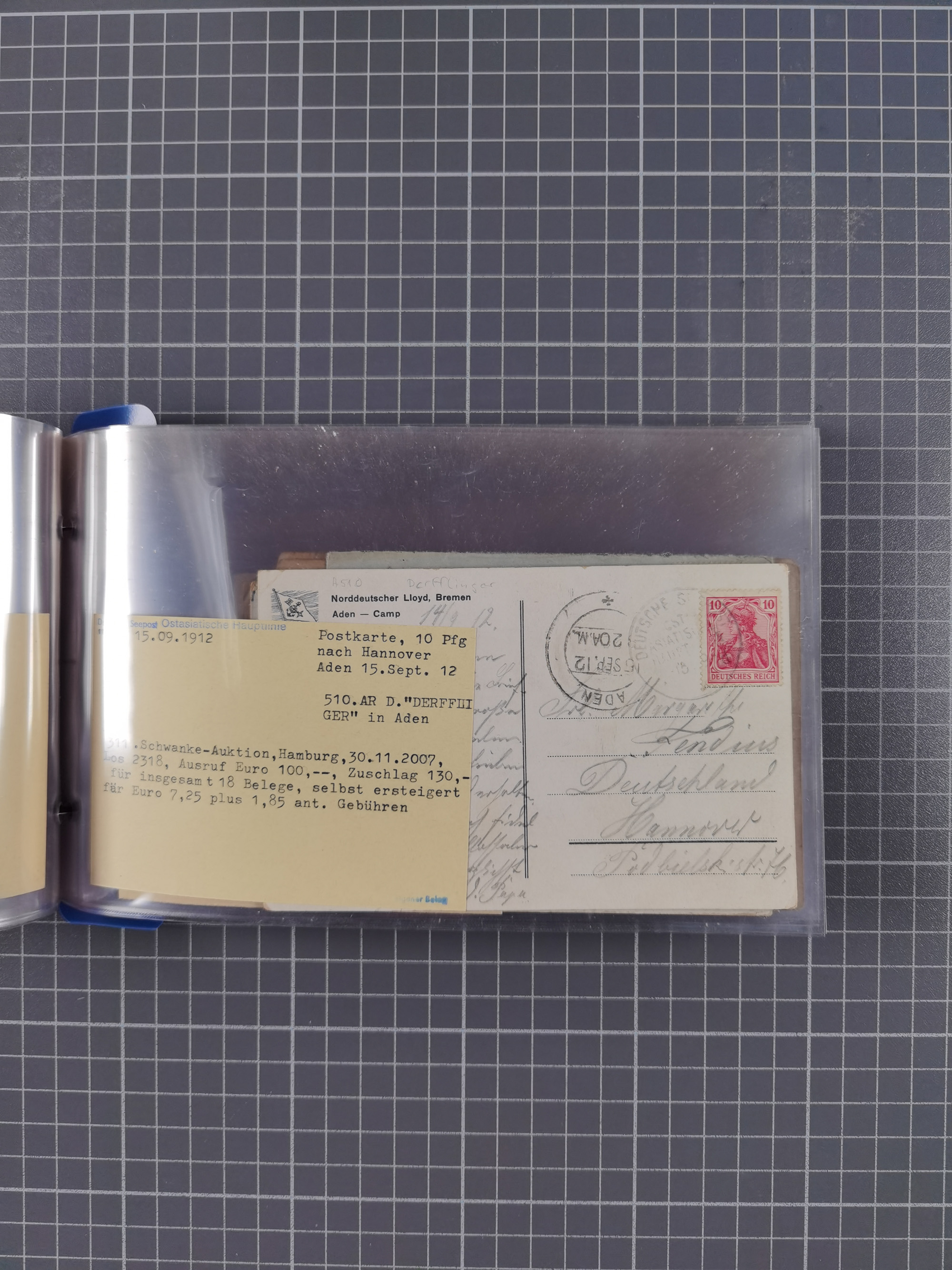 1913/39, interessante Sammlung “Kreisstempel mit Segment oben der Hamburg-Amerika-Linie” inkl. der Aptierungen mit 41 Briefen, Karten und GSK. Dabei u.a. Nordlandfahrt 1913 mehrfach (1x mit Spitzbergen-Vignette), Paquebot-Stempel, ein Brief aus der Inflationszeit, zwei Briefe Dampfer St. Louis 1939 und reichlich Bedarfspost. Meist mit kleiner Beschriftung mit Nennung des Dampfers sowie Texte zu diesem Thema, ex Steinmeyer