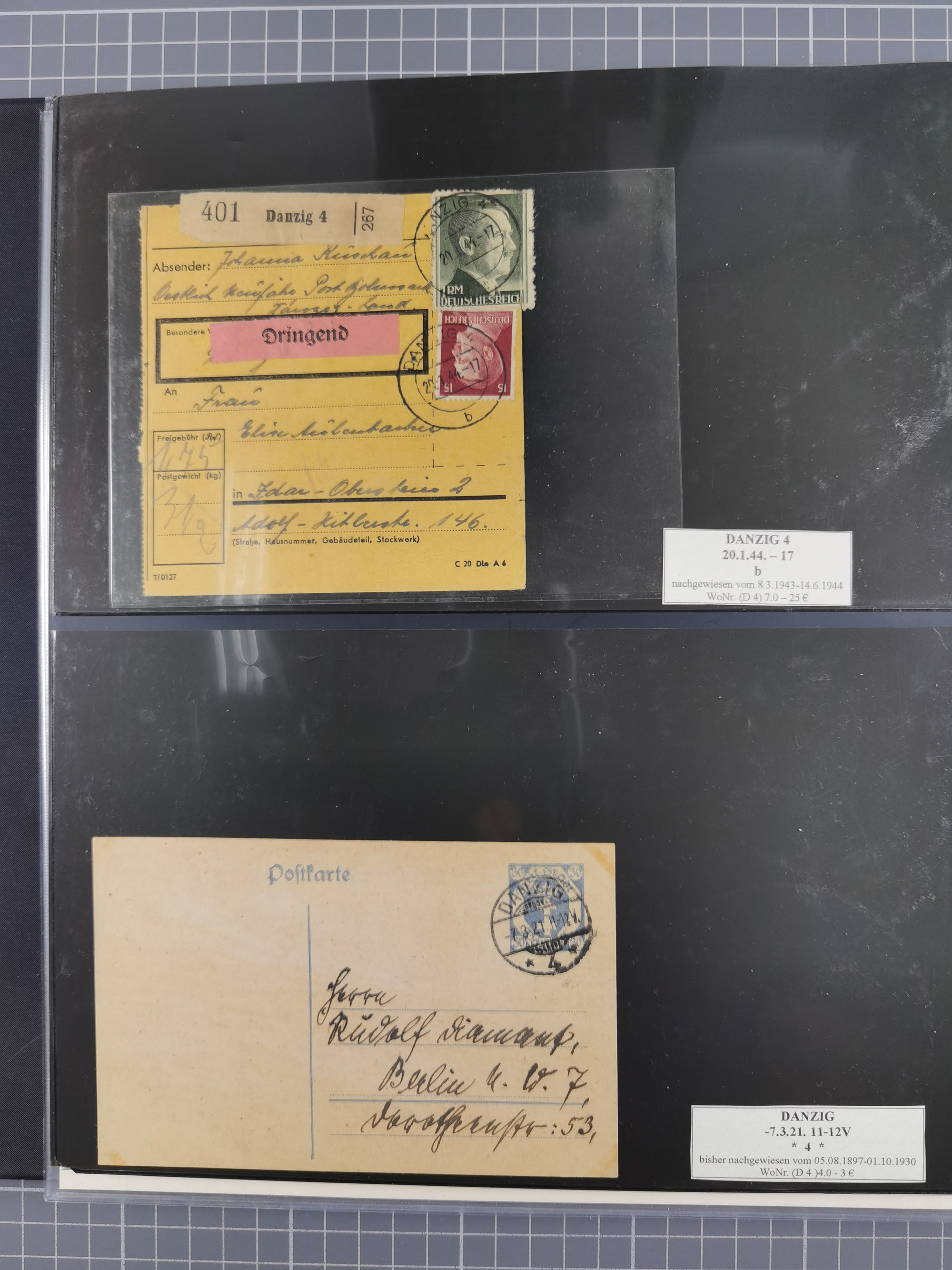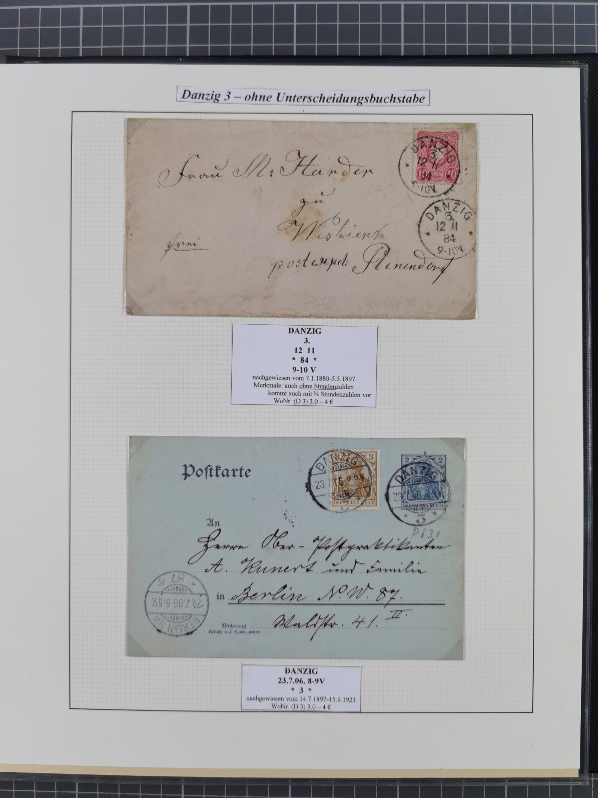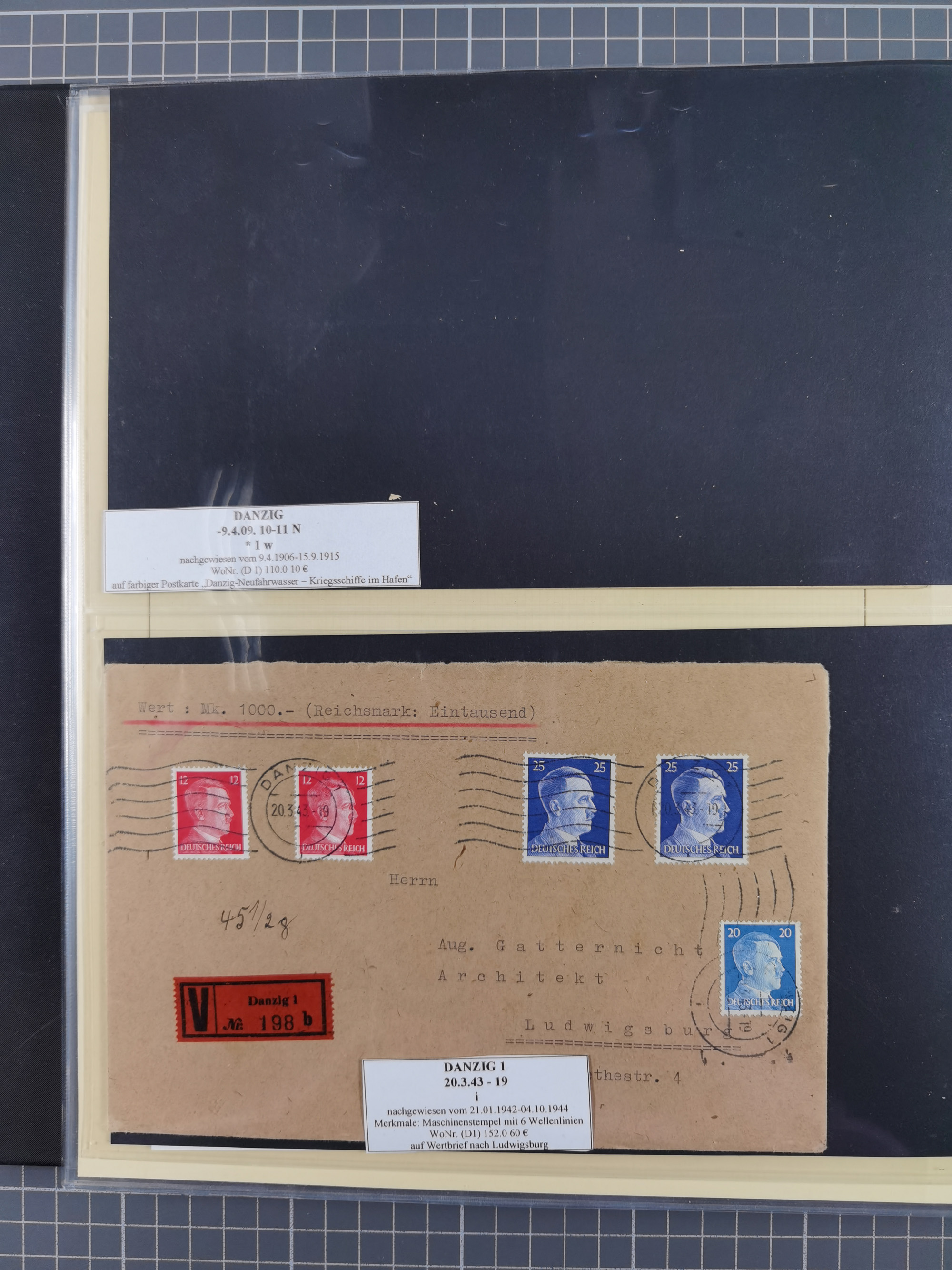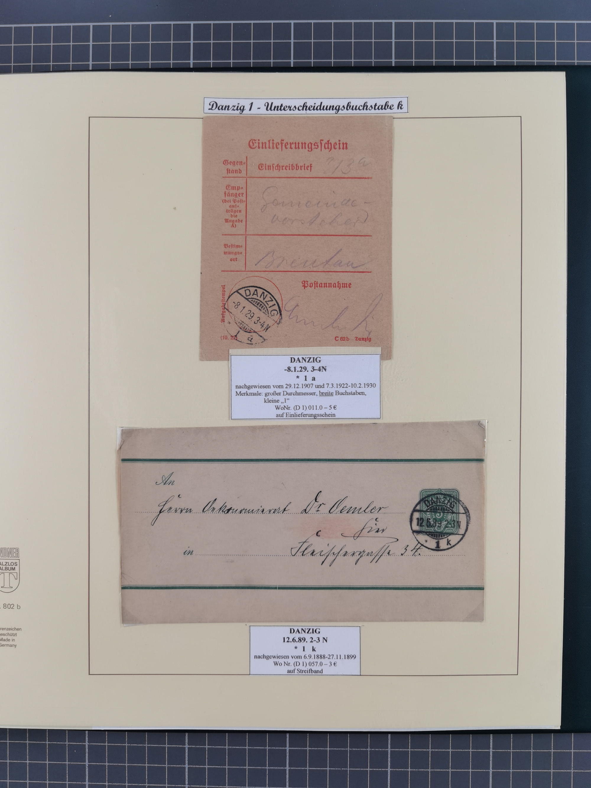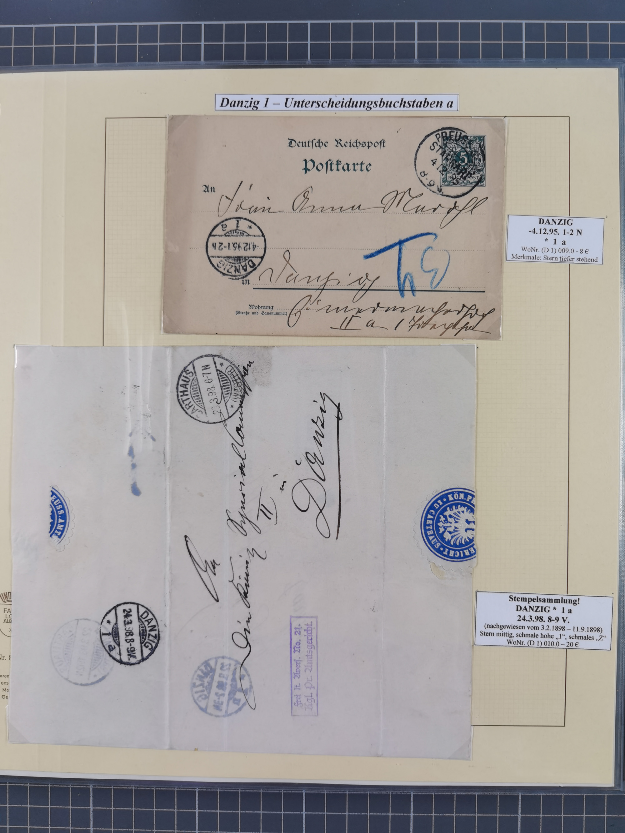 1880/1945, Postamt DANZIG: Interessante Sammlung mit über 200 Briefen, Karten und Einlieferungsscheinen etc., dabei auch etwas Bahnpost, Portomarken, Ganzsachen etc., alles sauber nach Unterscheidungsbuchstaben aufgezogen, meist gute Erhaltung