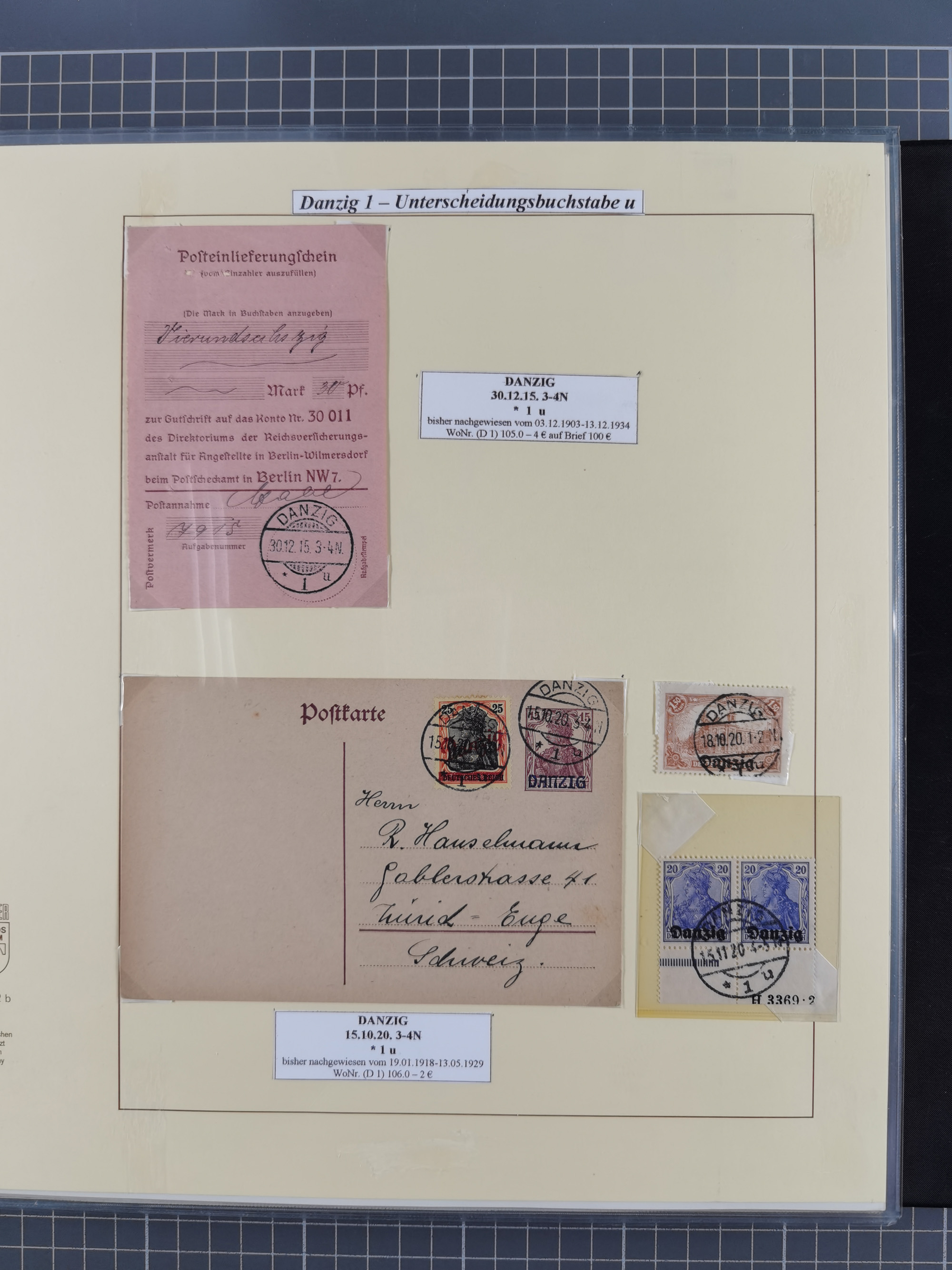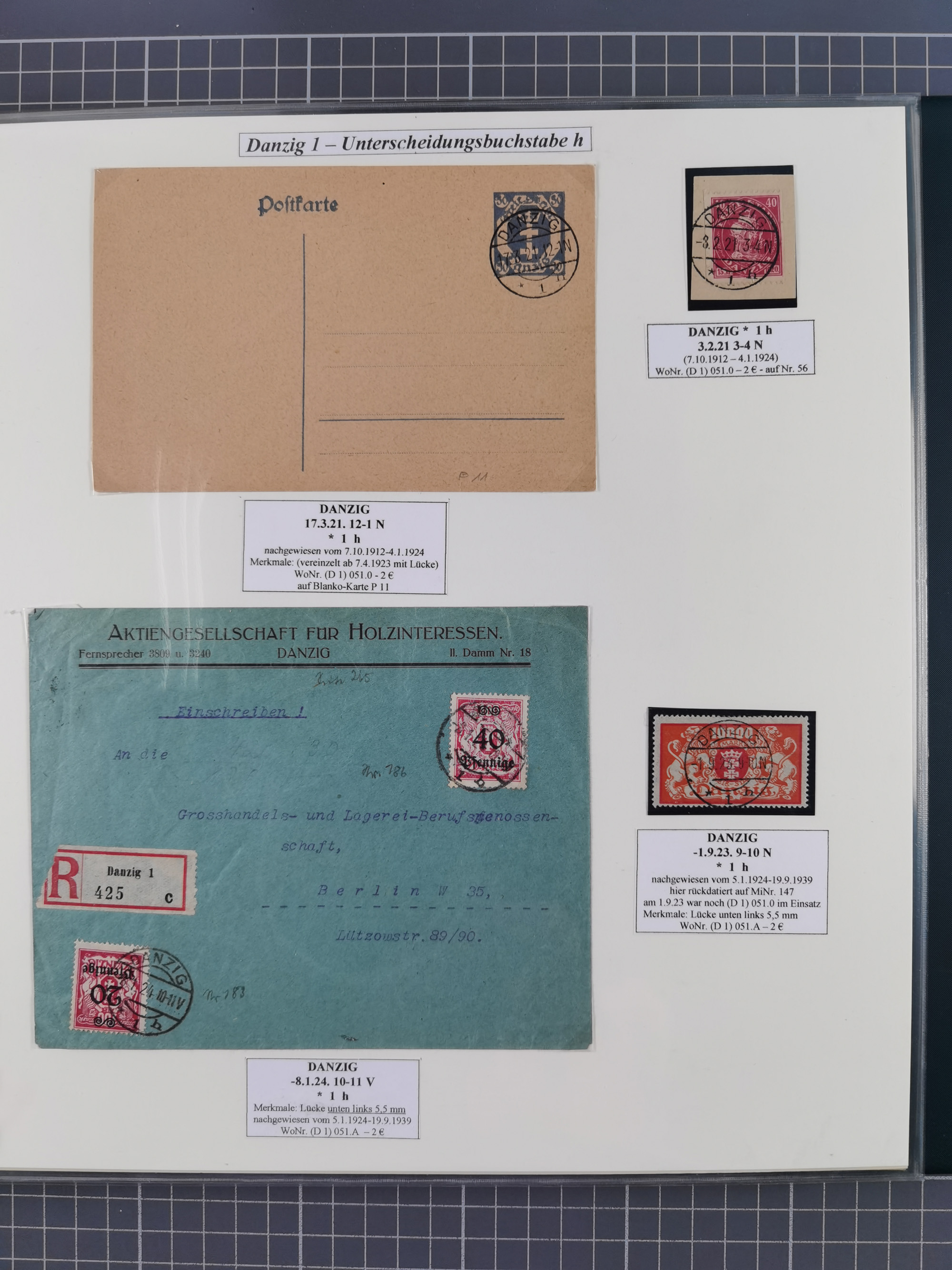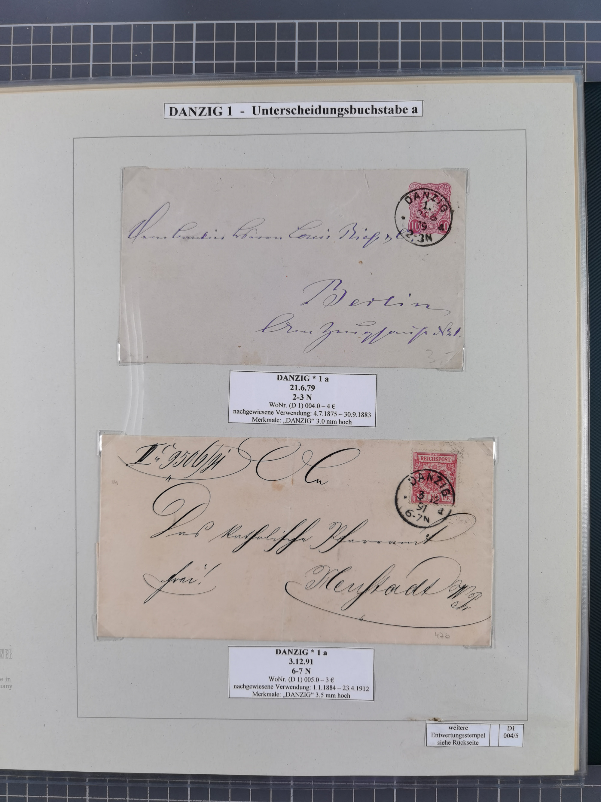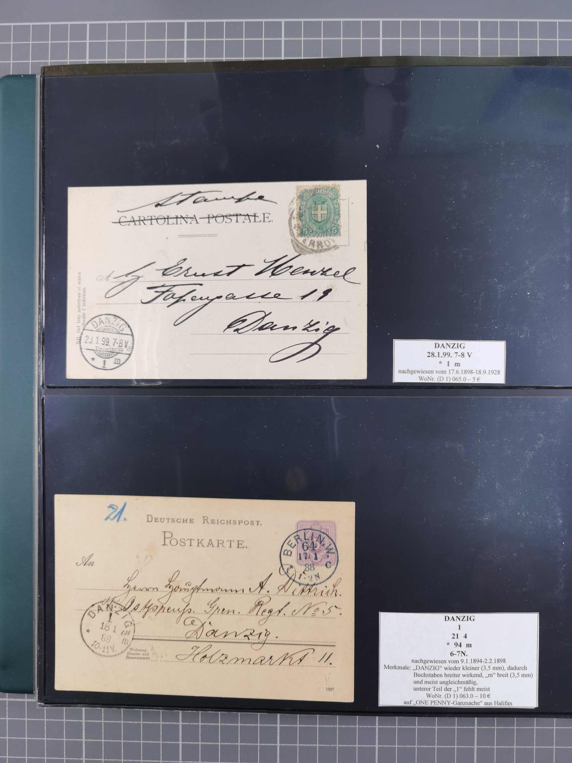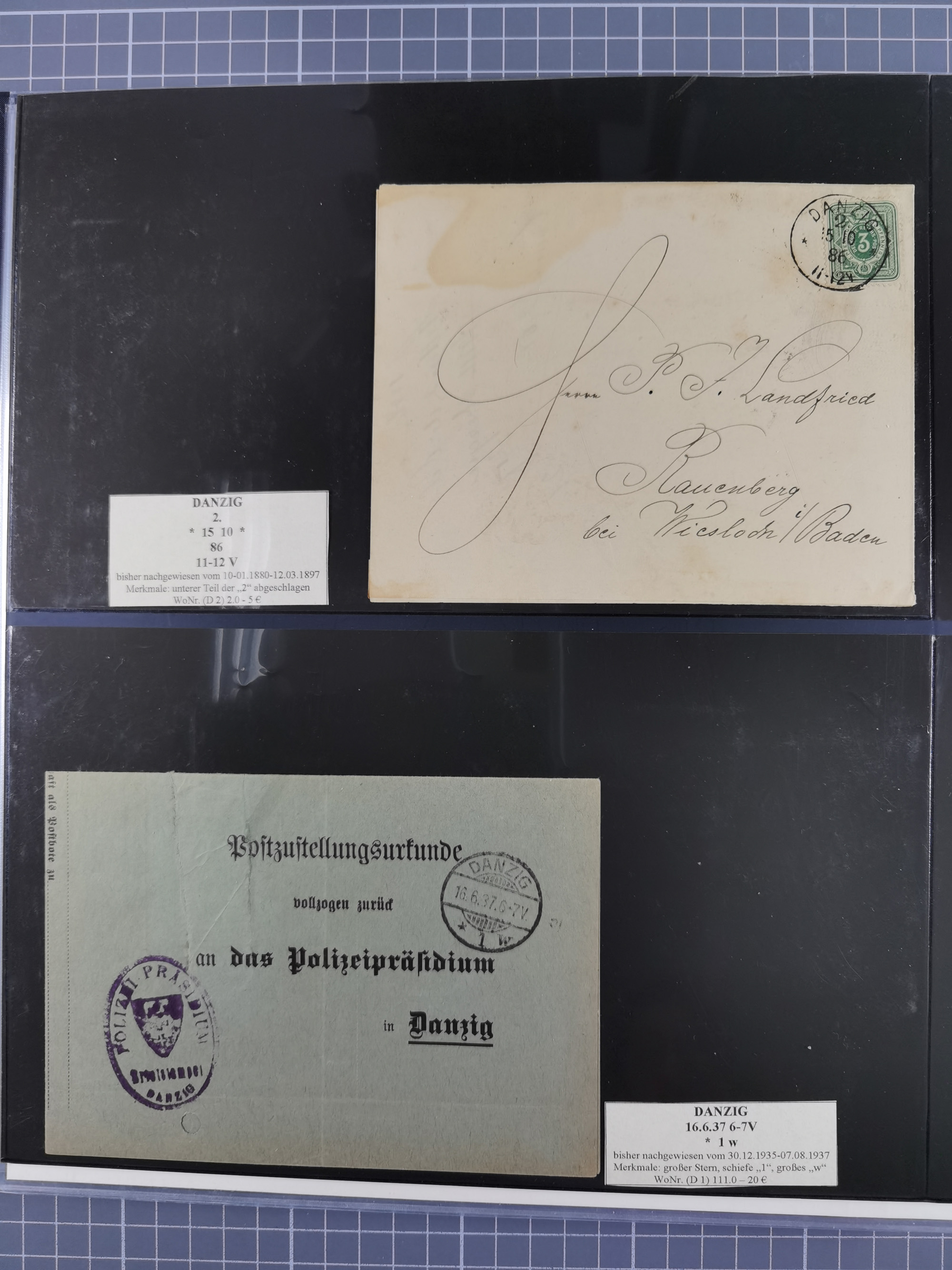 1880/1945, Postamt DANZIG: Interessante Sammlung mit über 200 Briefen, Karten und Einlieferungsscheinen etc., dabei auch etwas Bahnpost, Portomarken, Ganzsachen etc., alles sauber nach Unterscheidungsbuchstaben aufgezogen, meist gute Erhaltung