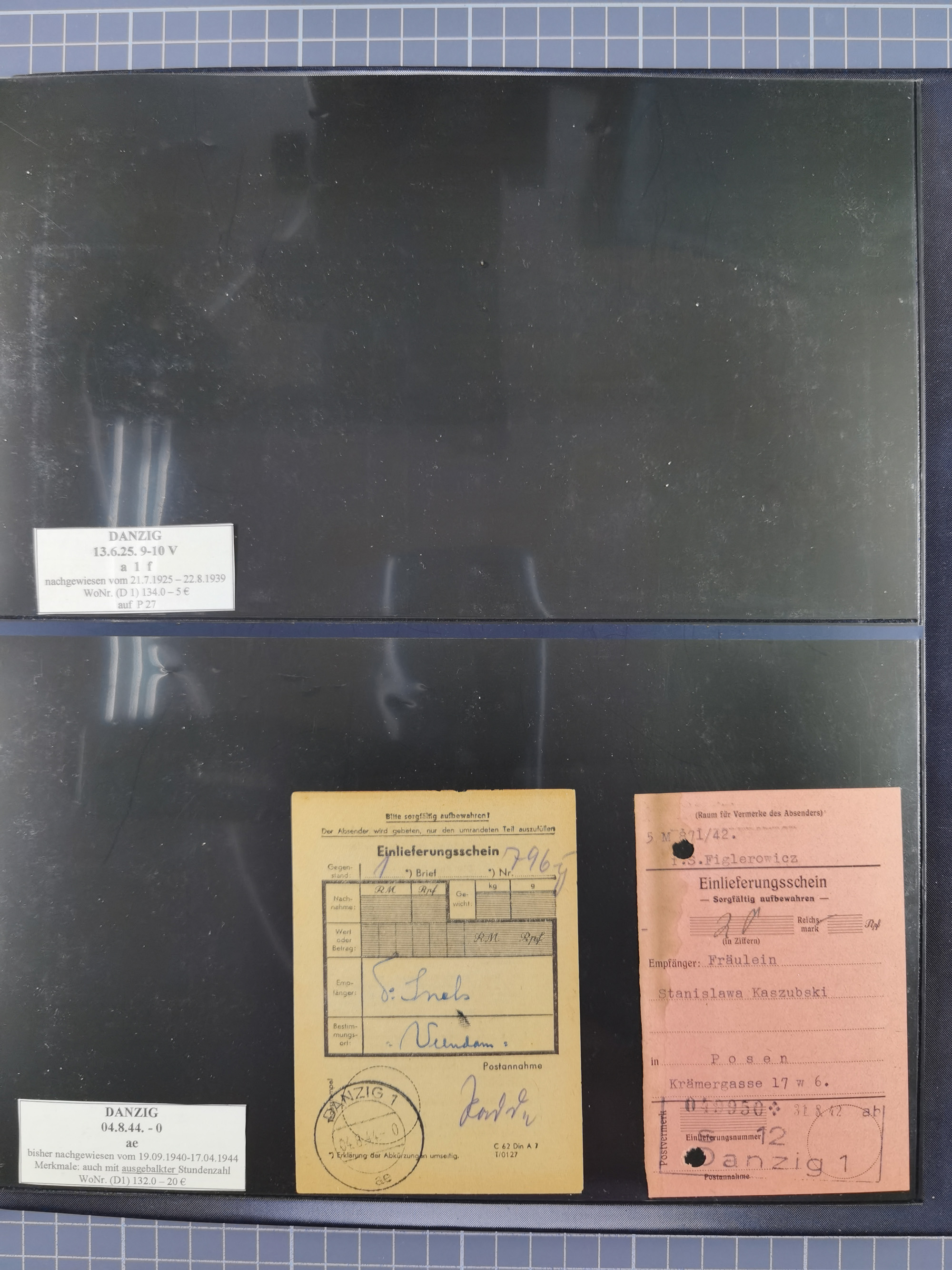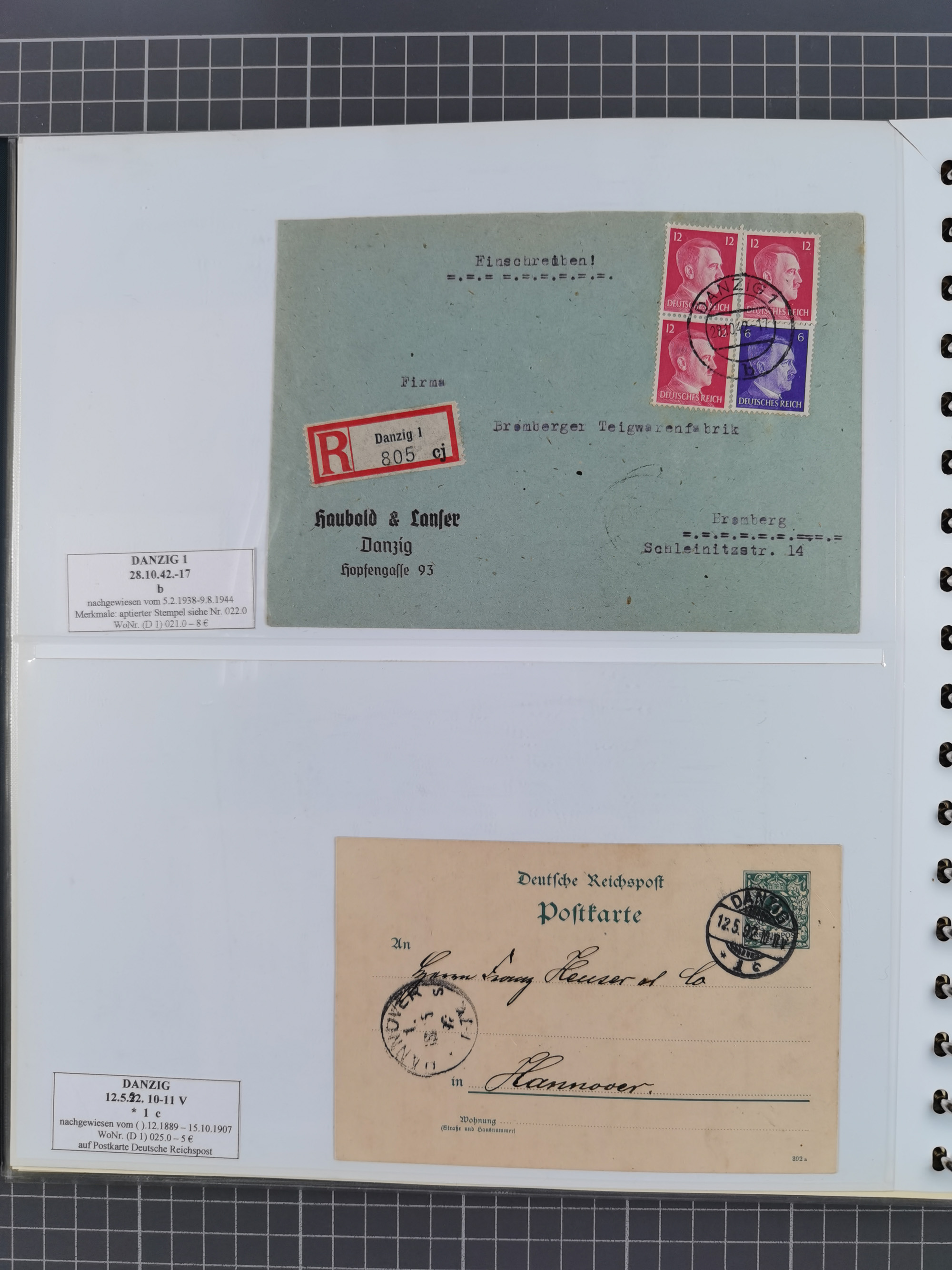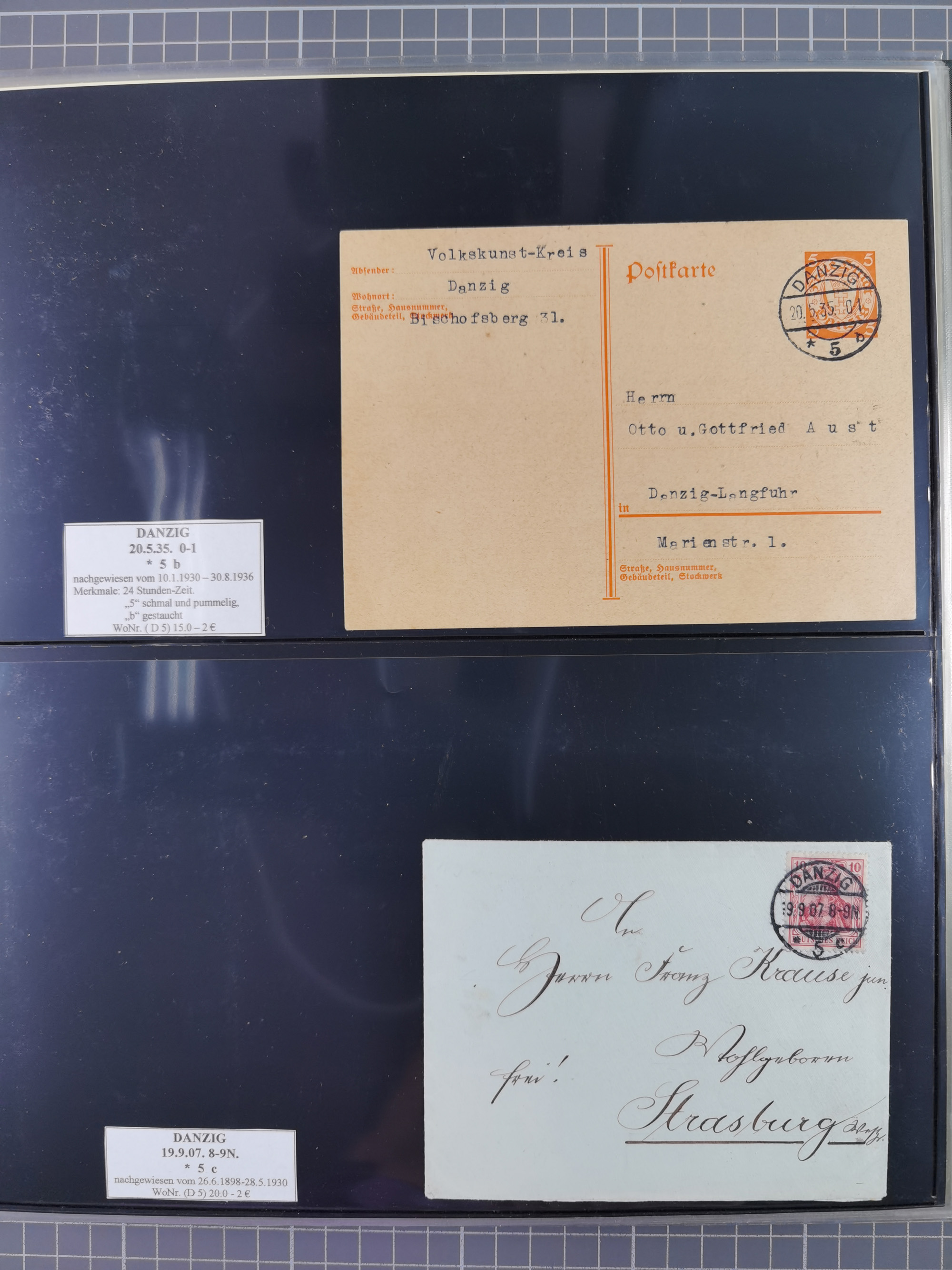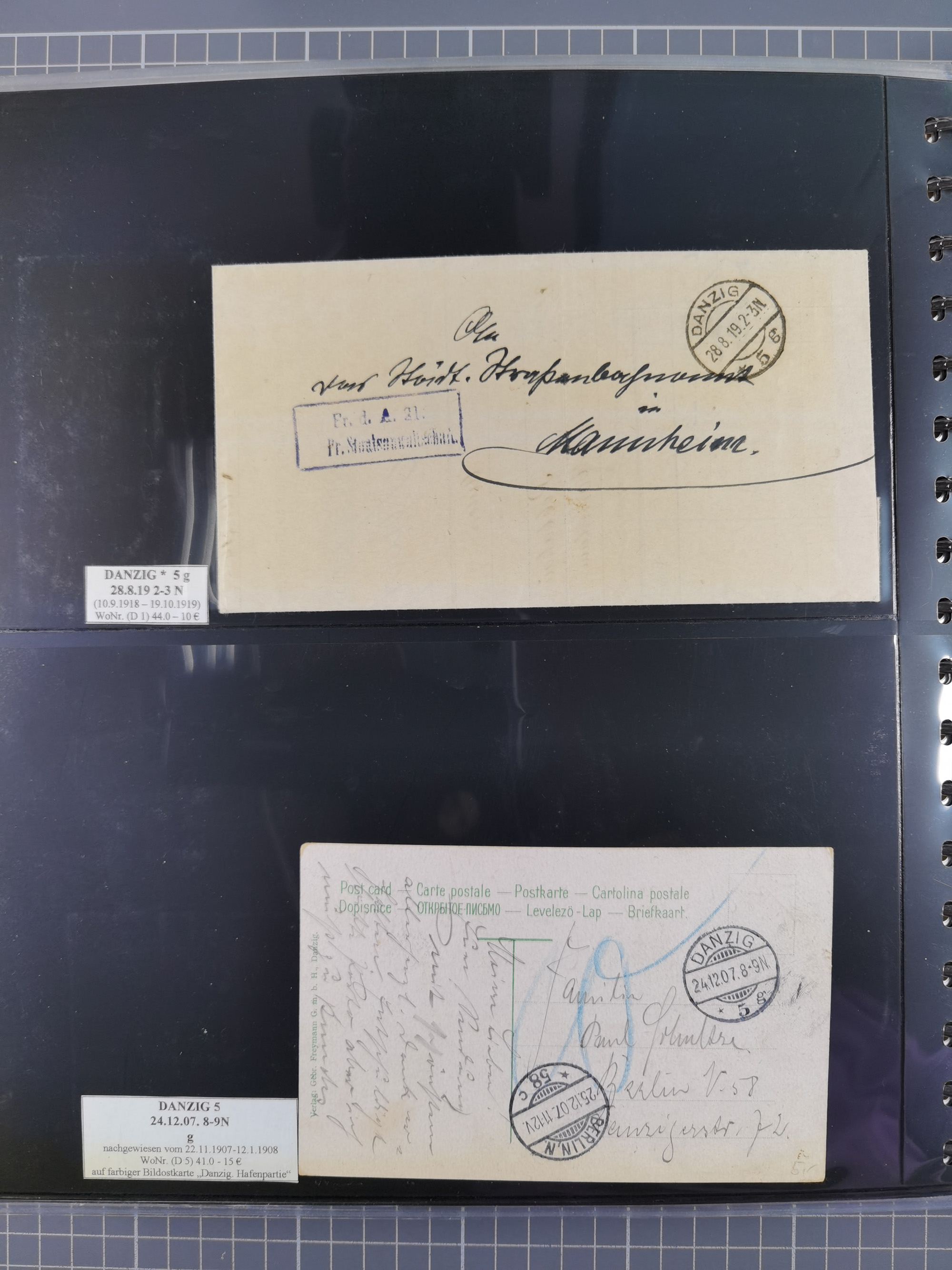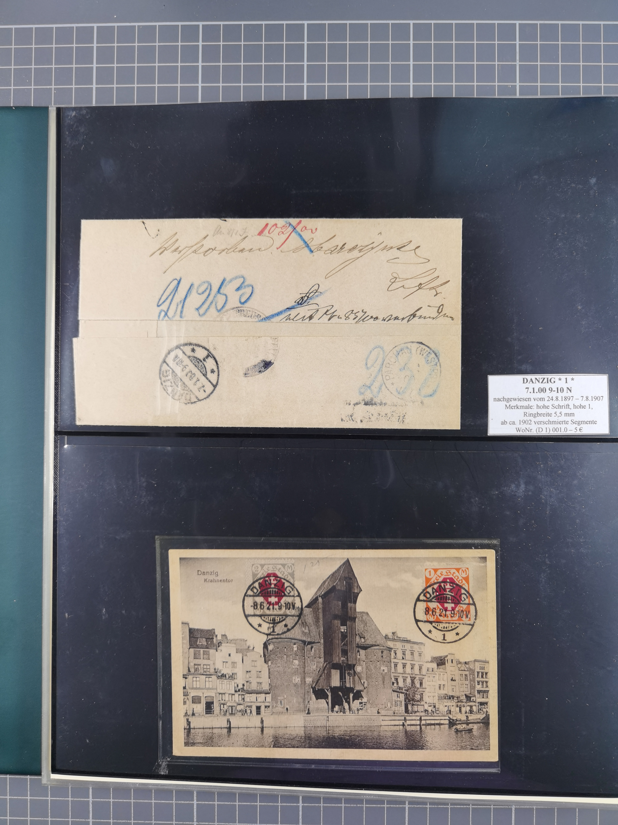 1880/1945, Postamt DANZIG: Interessante Sammlung mit über 200 Briefen, Karten und Einlieferungsscheinen etc., dabei auch etwas Bahnpost, Portomarken, Ganzsachen etc., alles sauber nach Unterscheidungsbuchstaben aufgezogen, meist gute Erhaltung