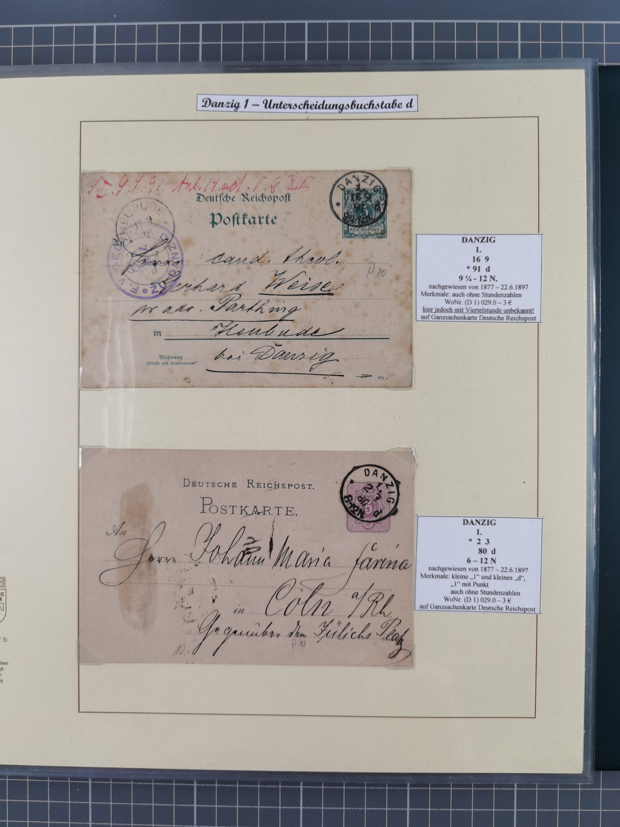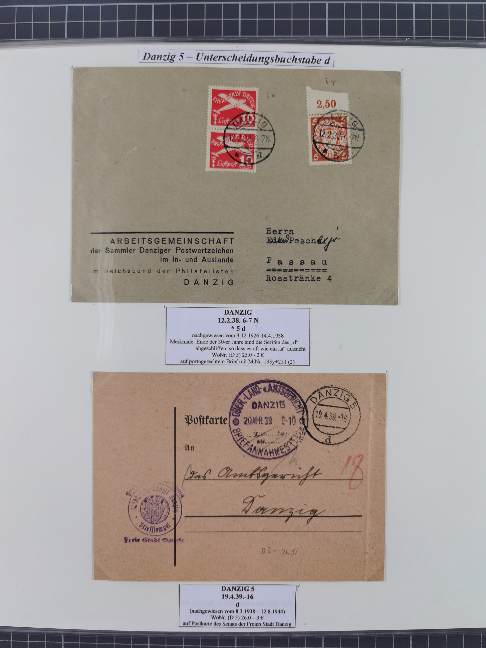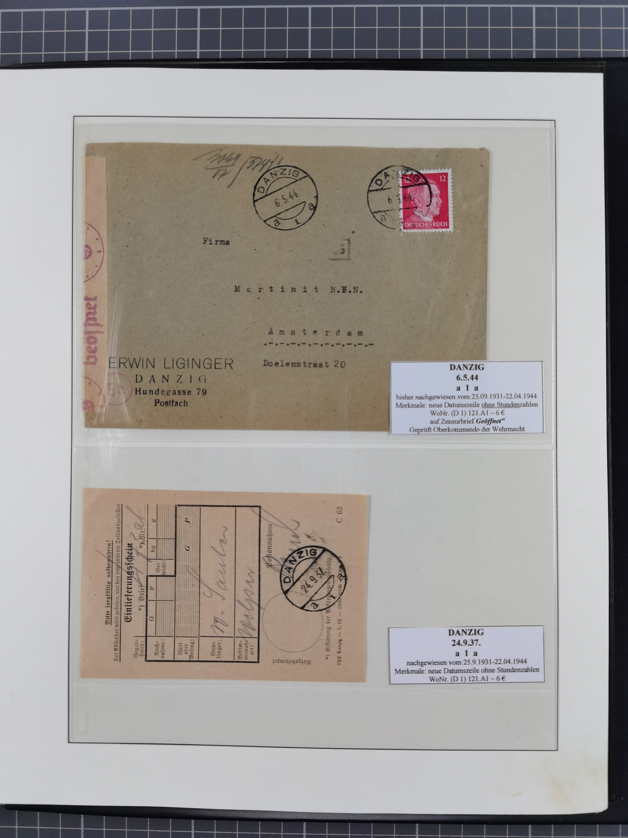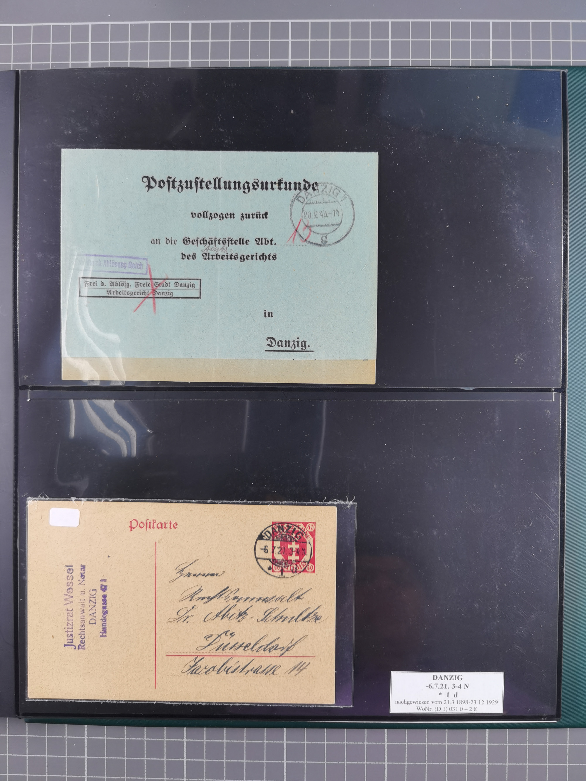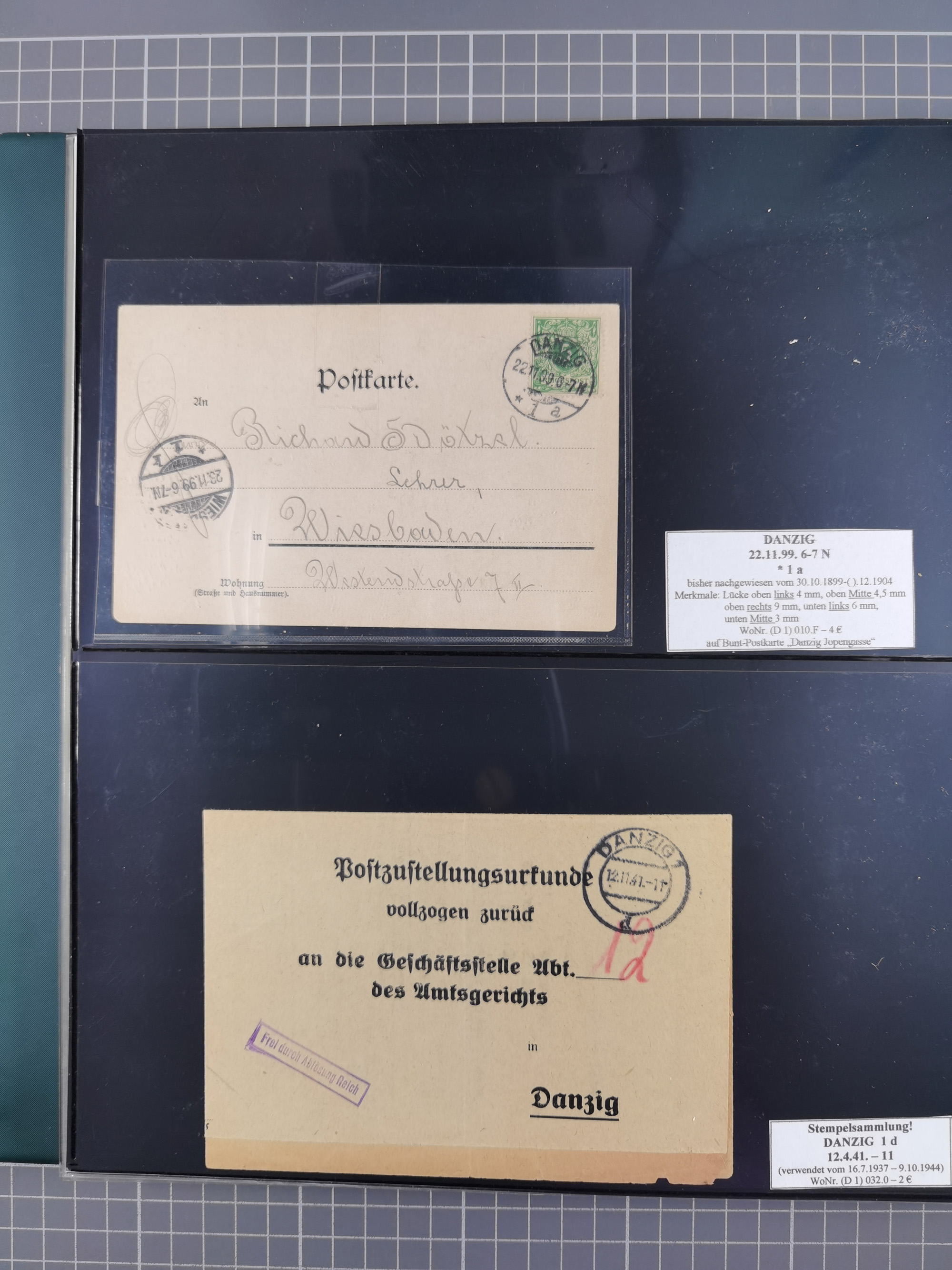 1880/1945, Postamt DANZIG: Interessante Sammlung mit über 200 Briefen, Karten und Einlieferungsscheinen etc., dabei auch etwas Bahnpost, Portomarken, Ganzsachen etc., alles sauber nach Unterscheidungsbuchstaben aufgezogen, meist gute Erhaltung