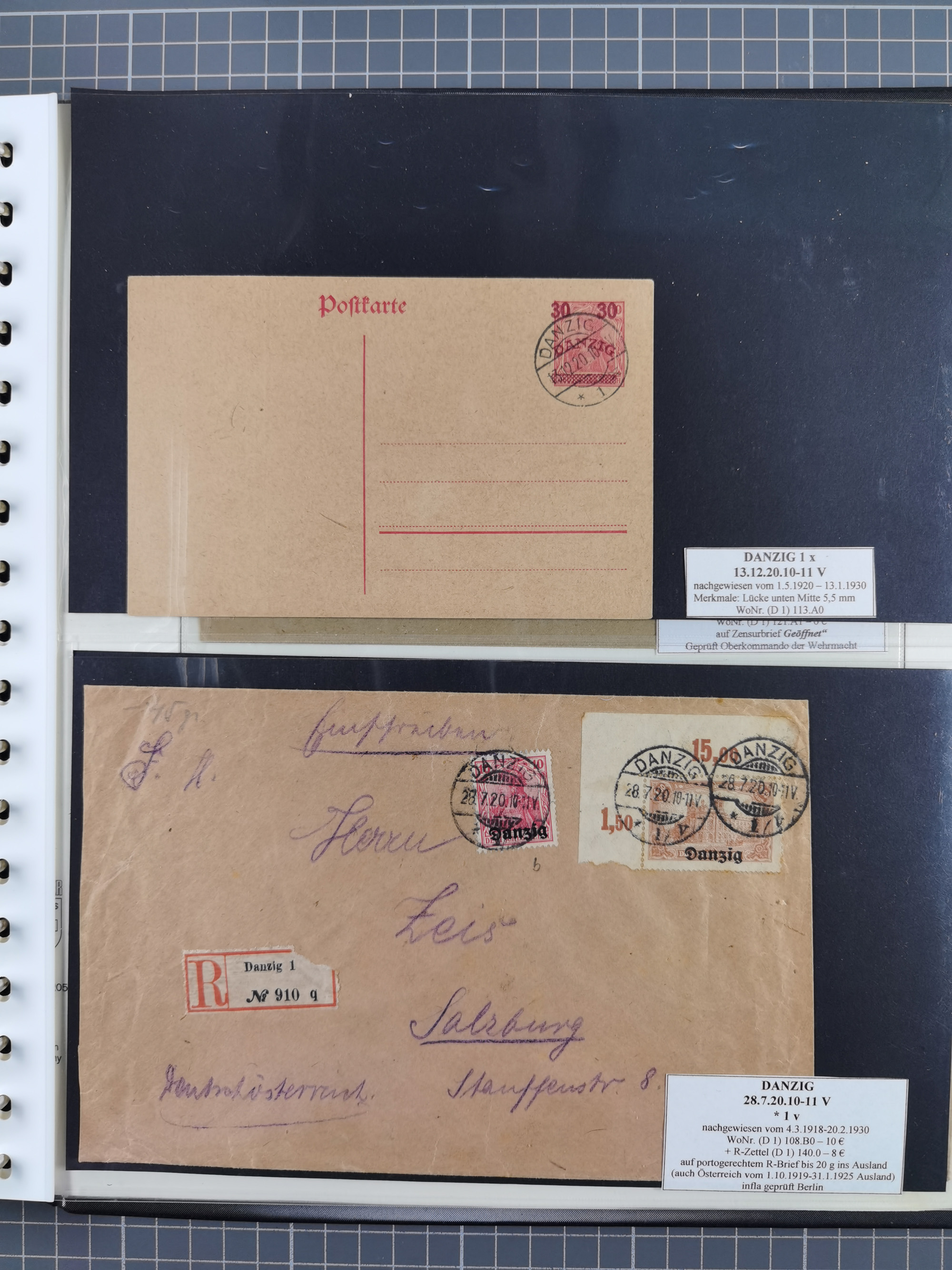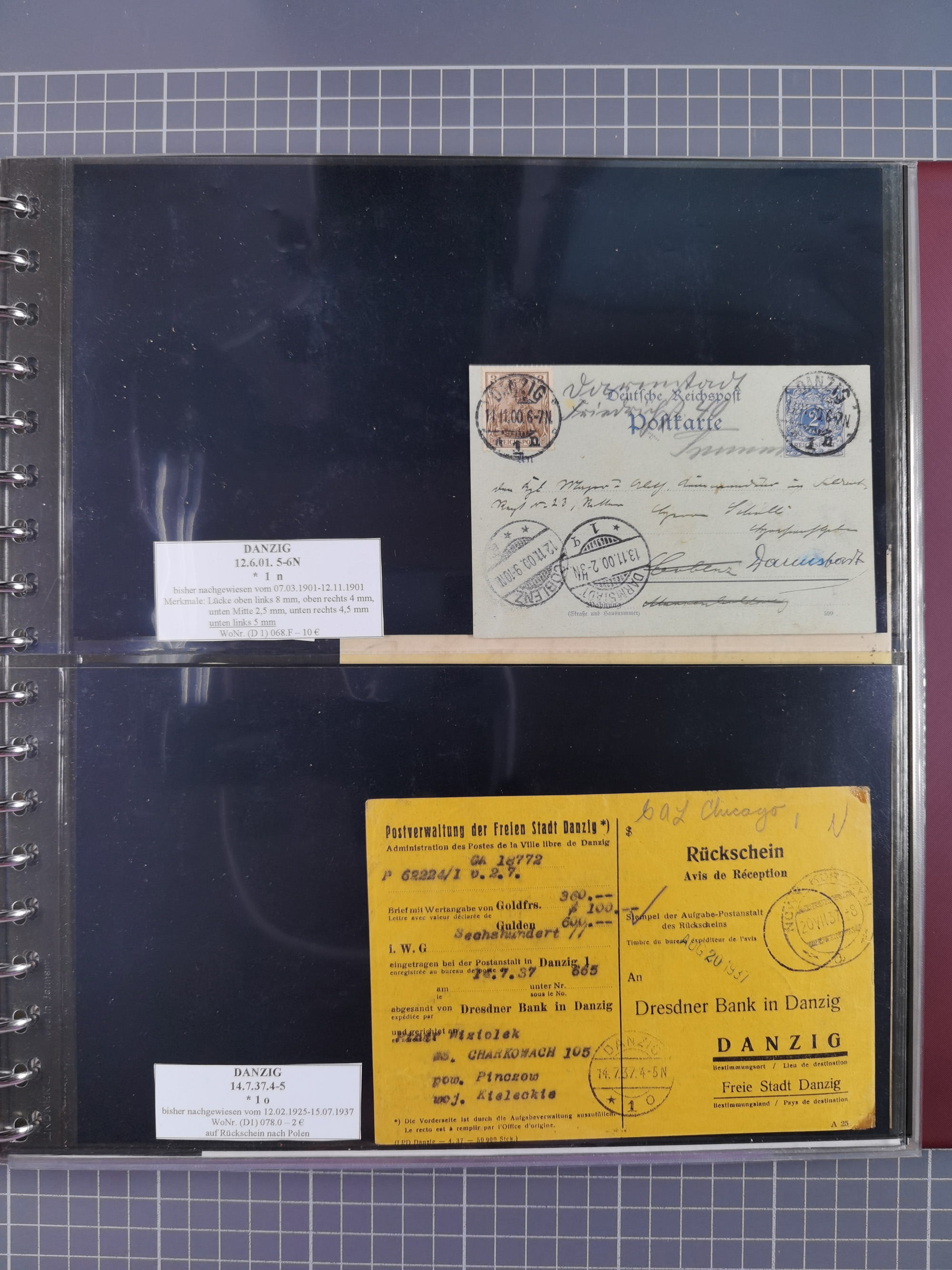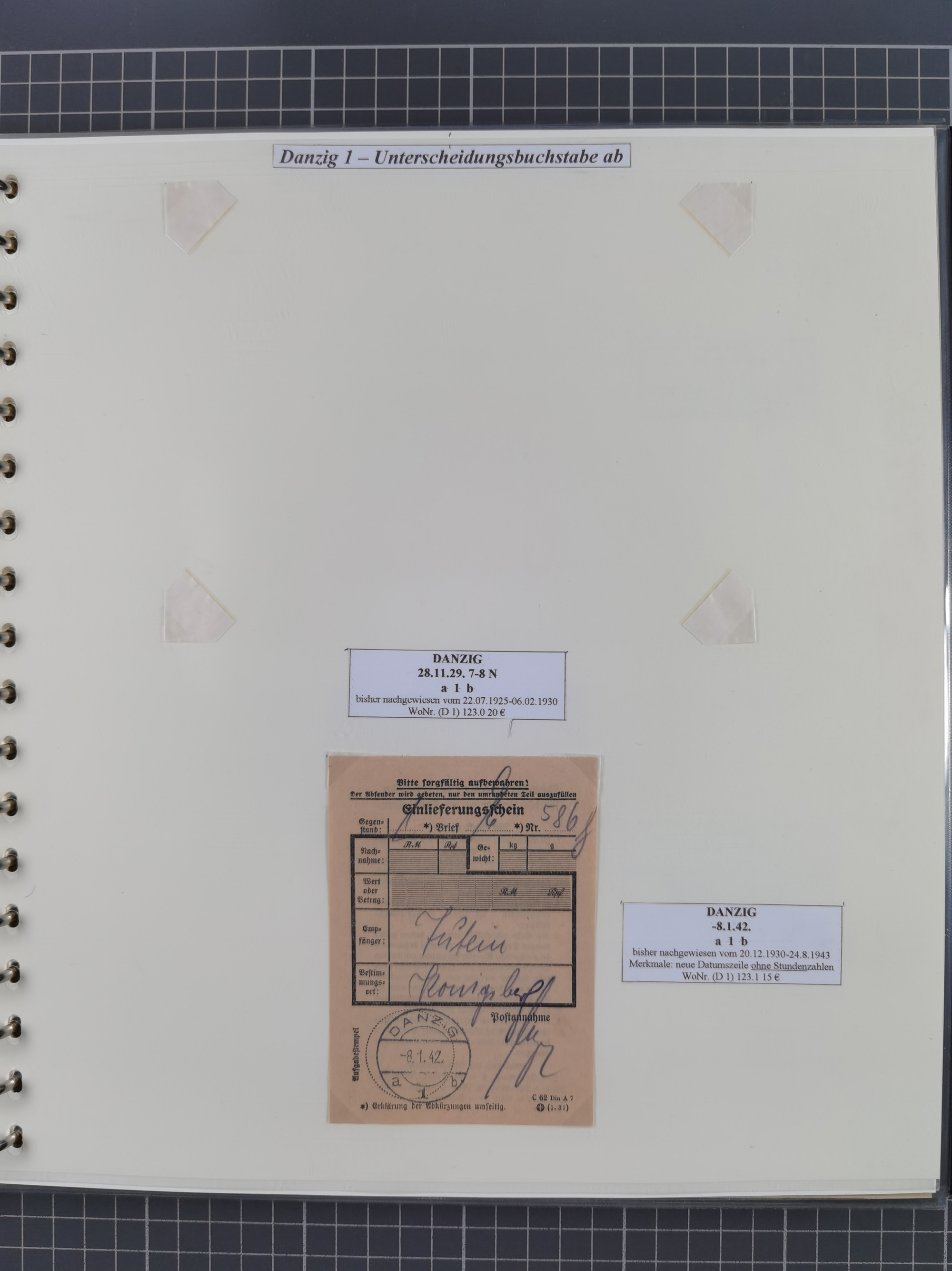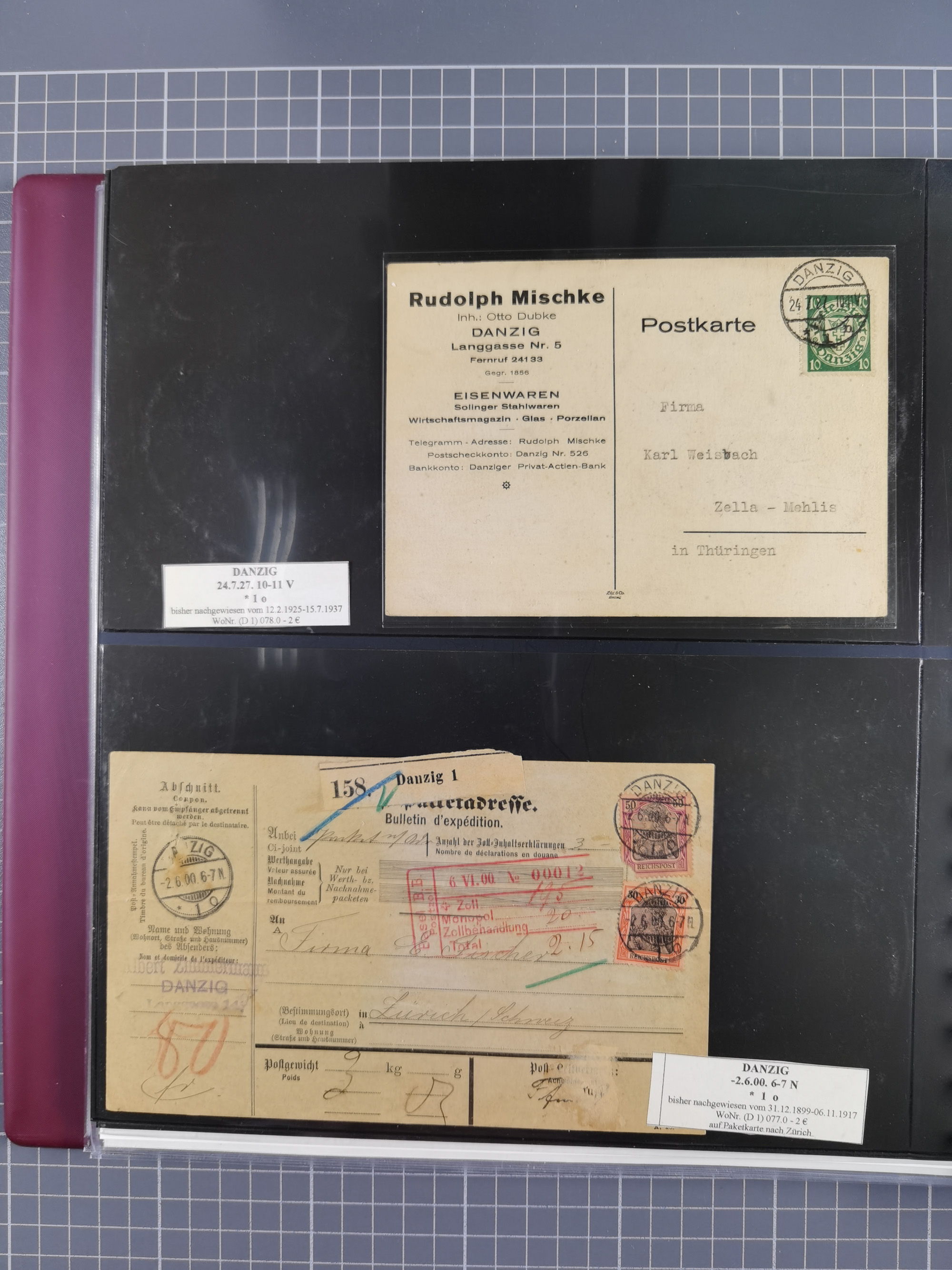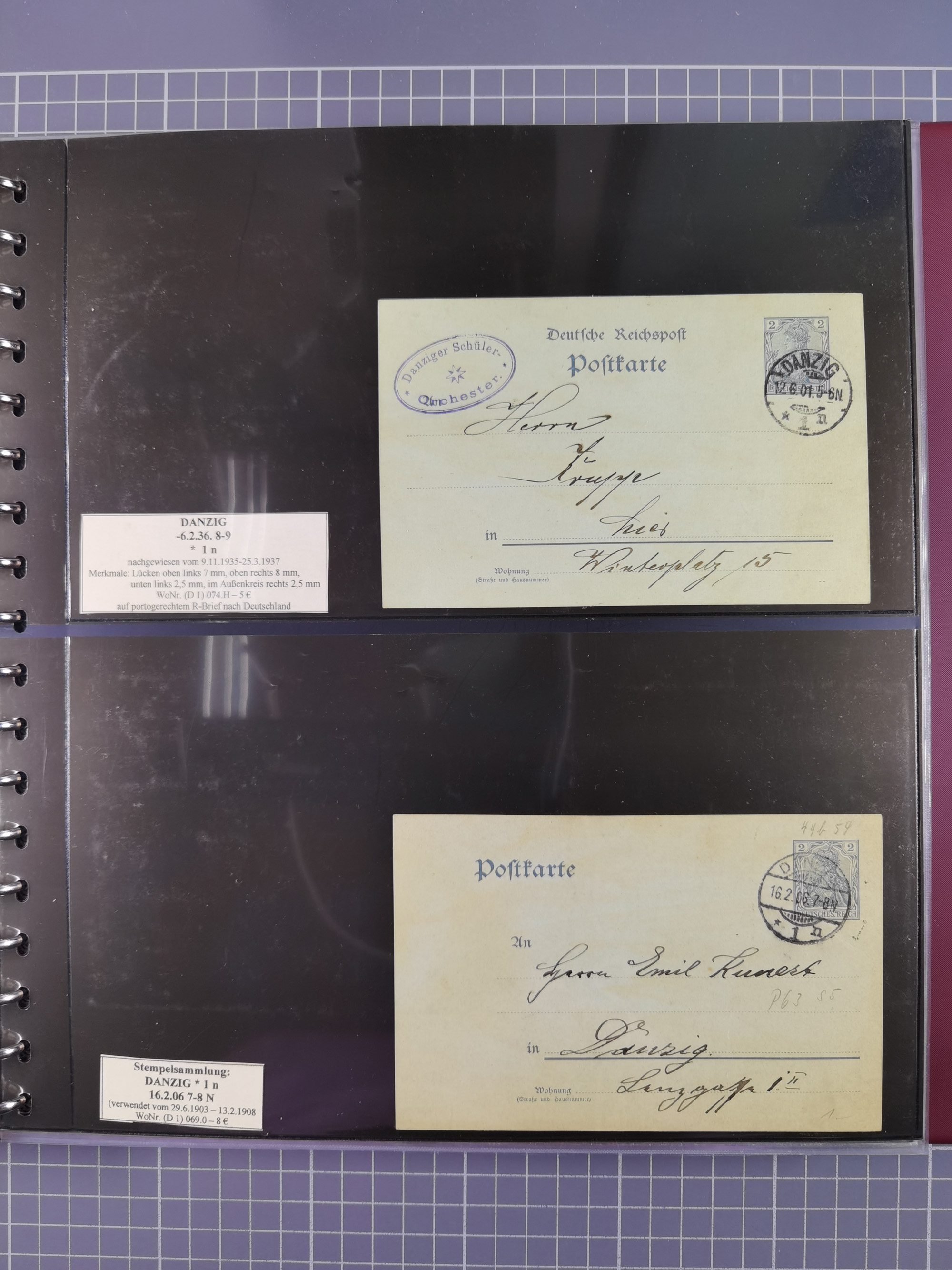 1880/1945, Postamt DANZIG: Interessante Sammlung mit über 200 Briefen, Karten und Einlieferungsscheinen etc., dabei auch etwas Bahnpost, Portomarken, Ganzsachen etc., alles sauber nach Unterscheidungsbuchstaben aufgezogen, meist gute Erhaltung