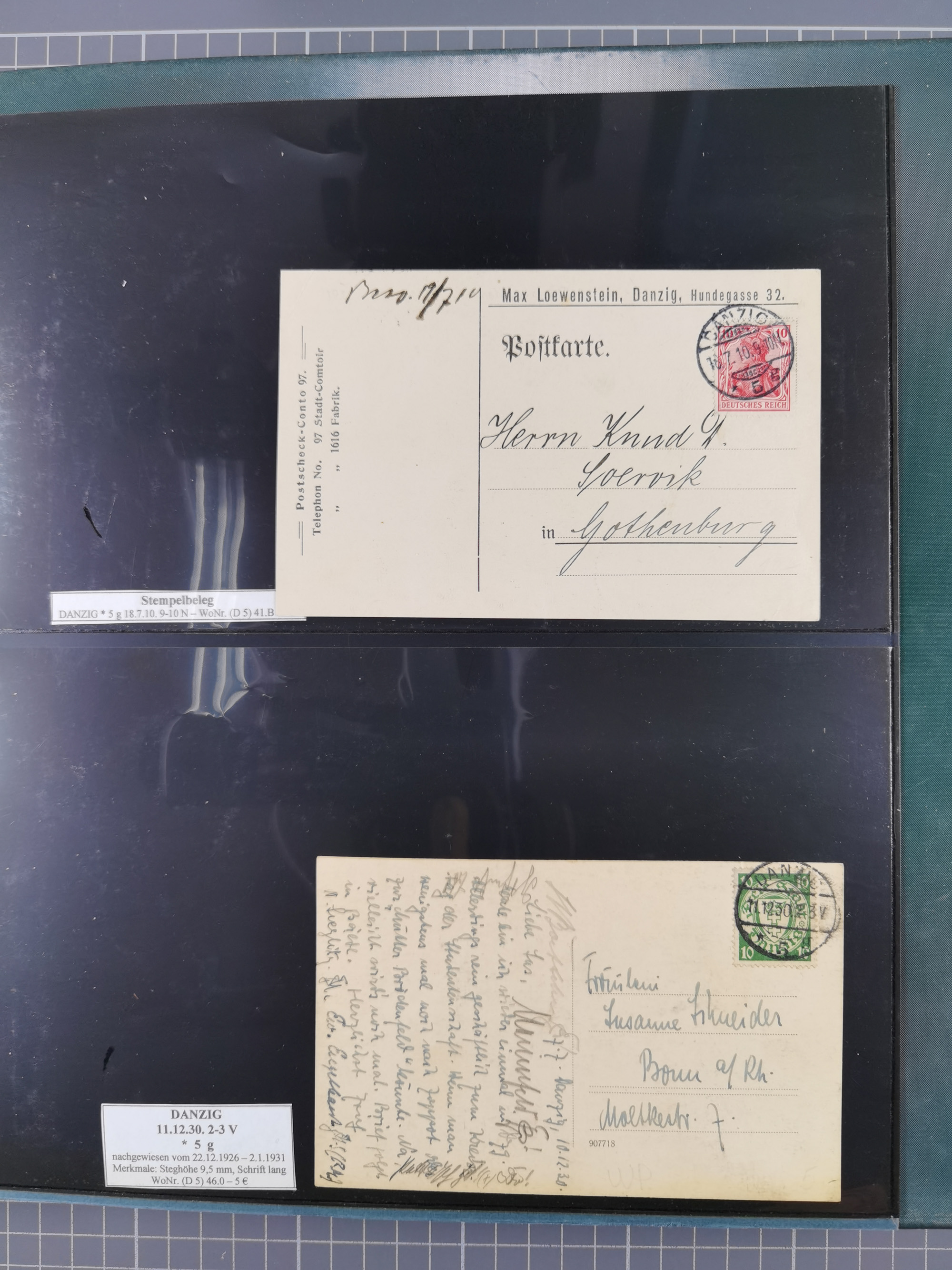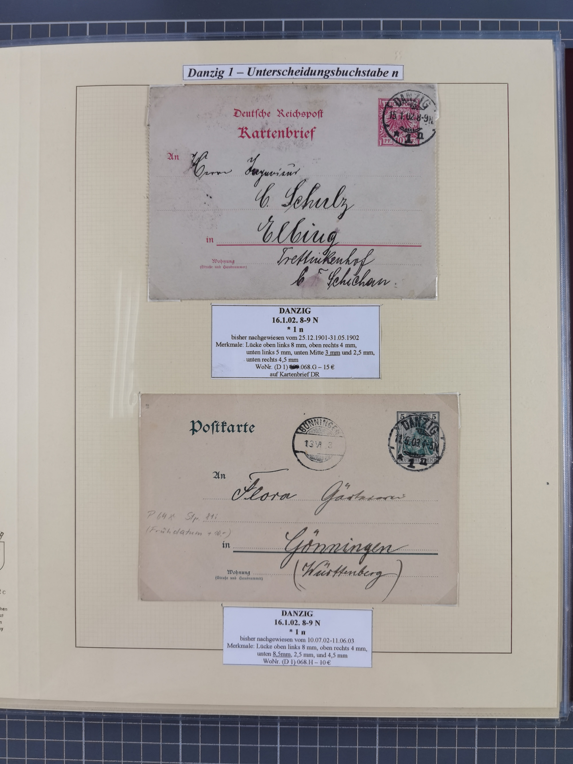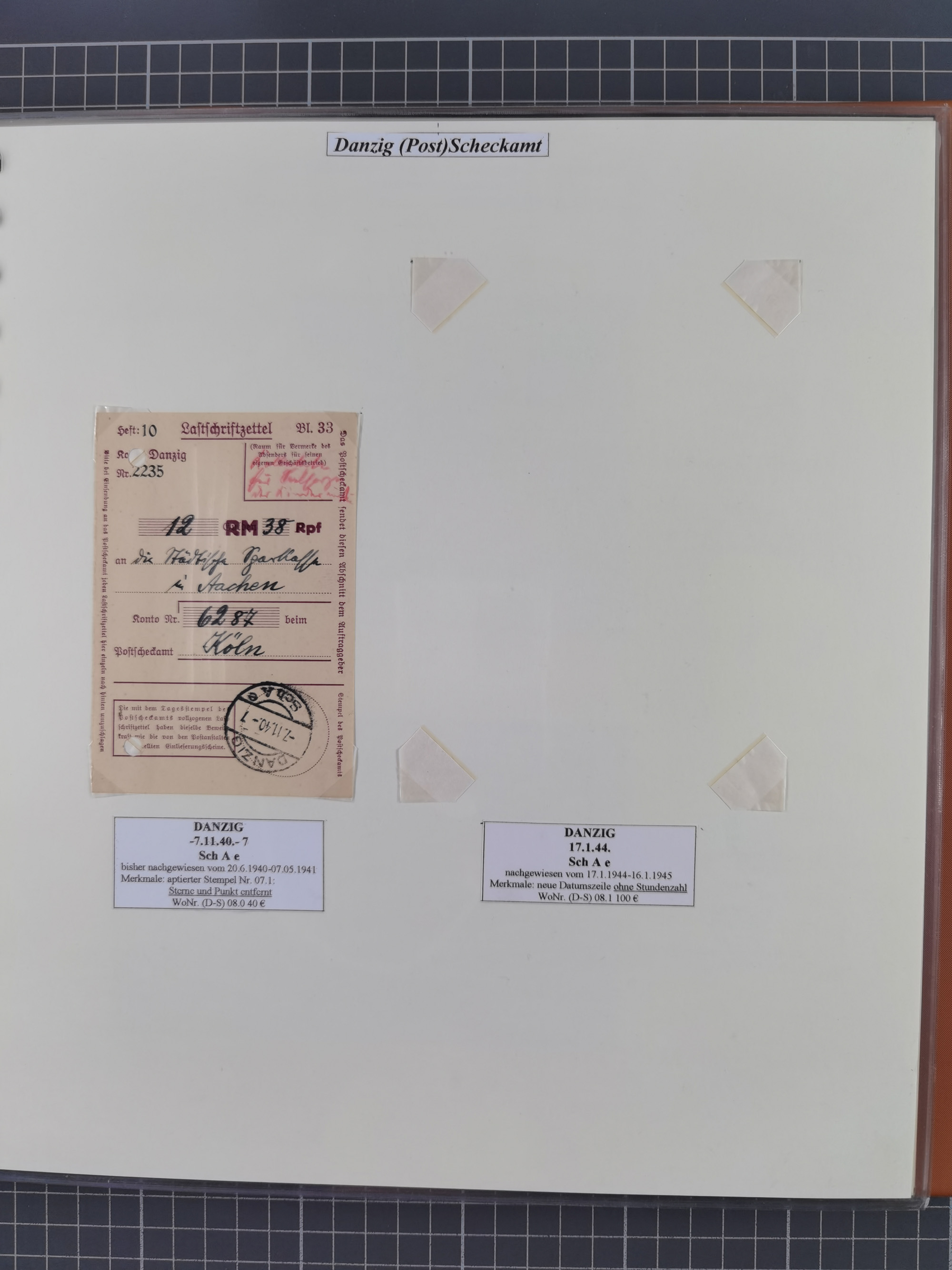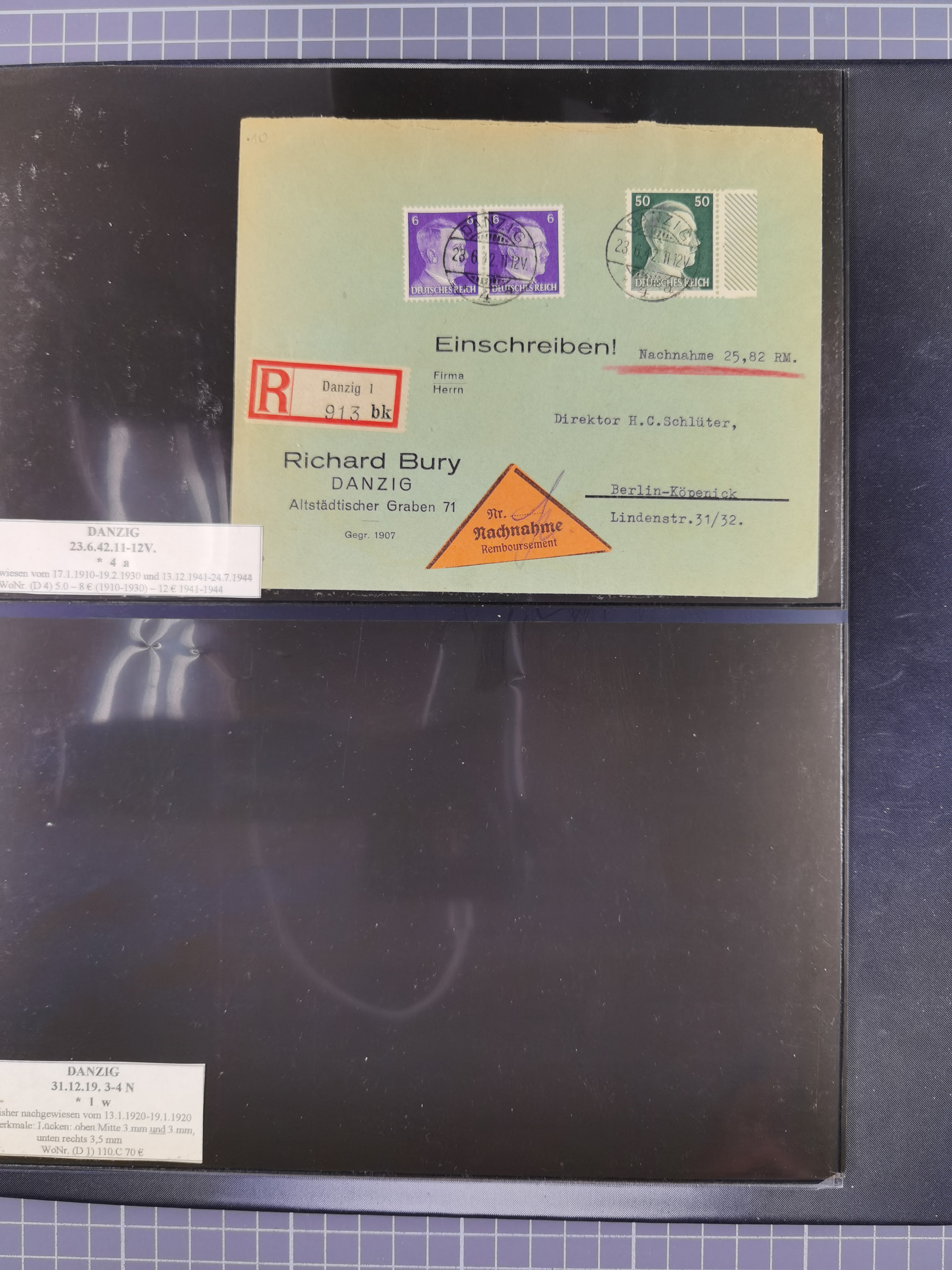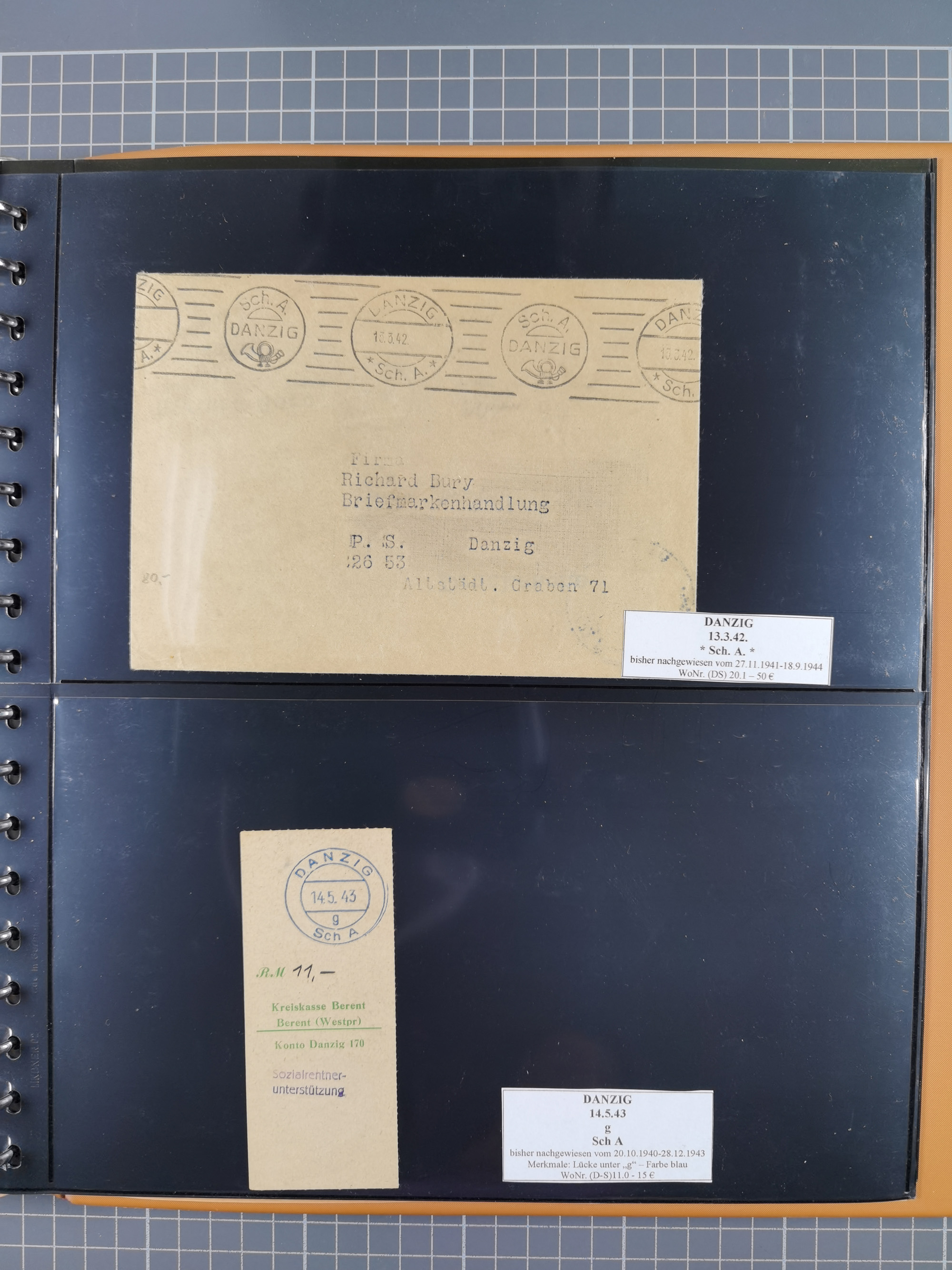 1880/1945, Postamt DANZIG: Interessante Sammlung mit über 200 Briefen, Karten und Einlieferungsscheinen etc., dabei auch etwas Bahnpost, Portomarken, Ganzsachen etc., alles sauber nach Unterscheidungsbuchstaben aufgezogen, meist gute Erhaltung