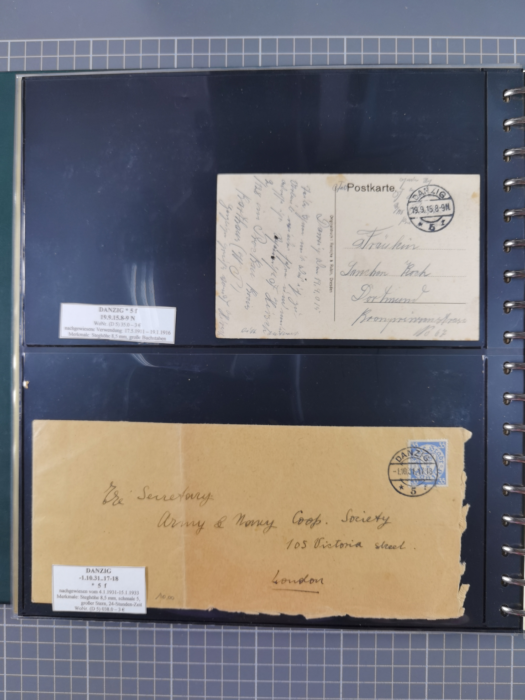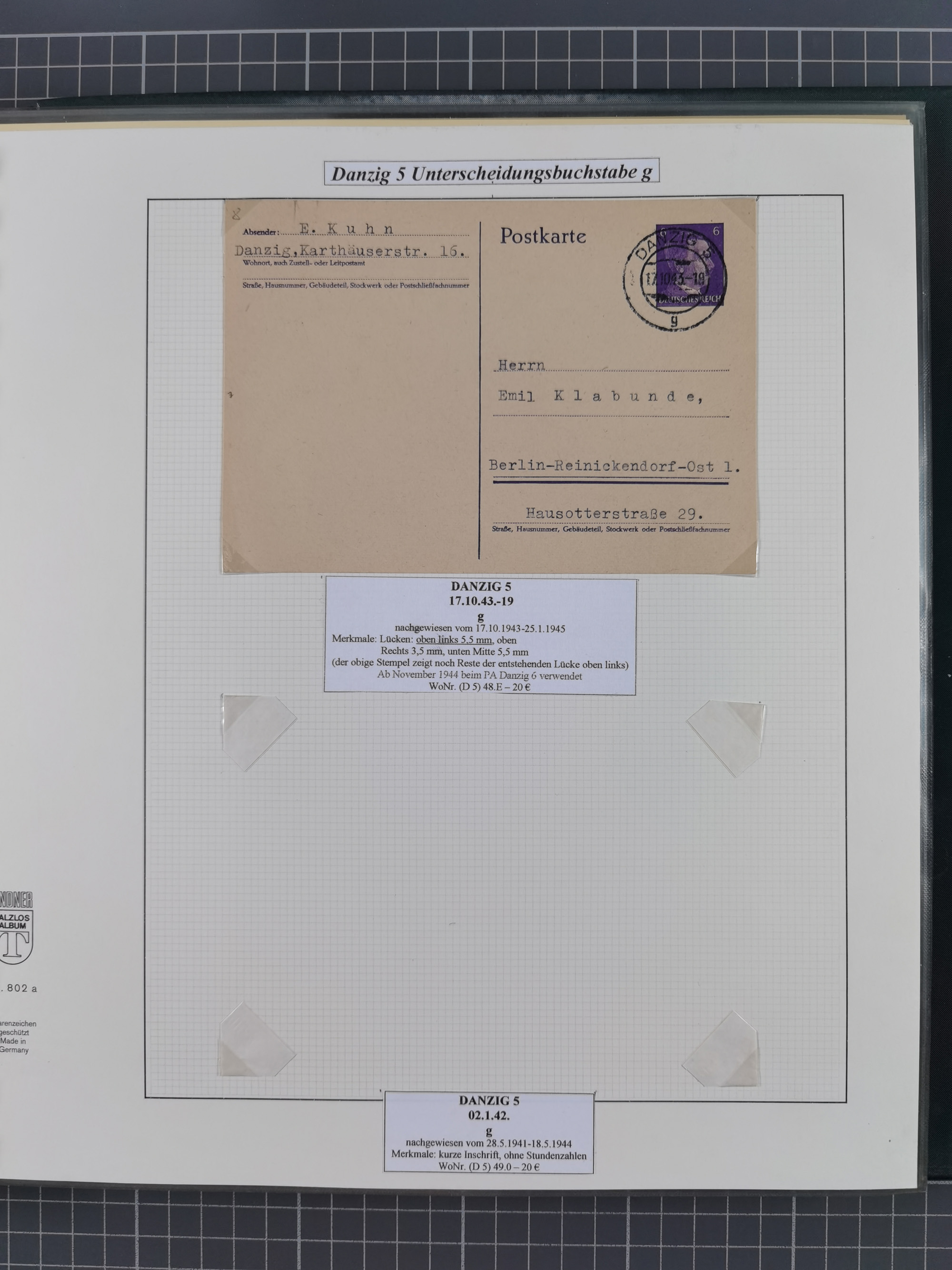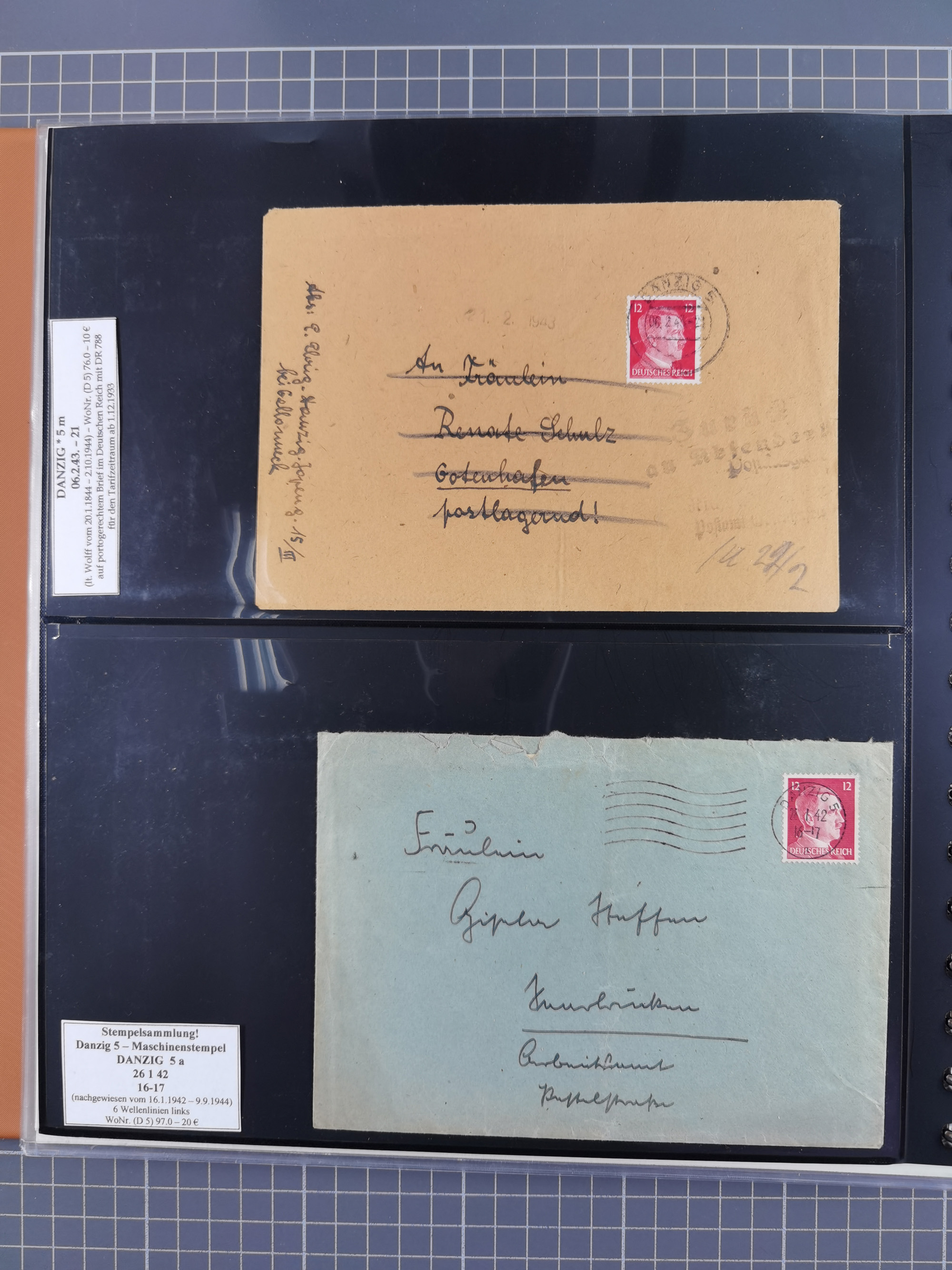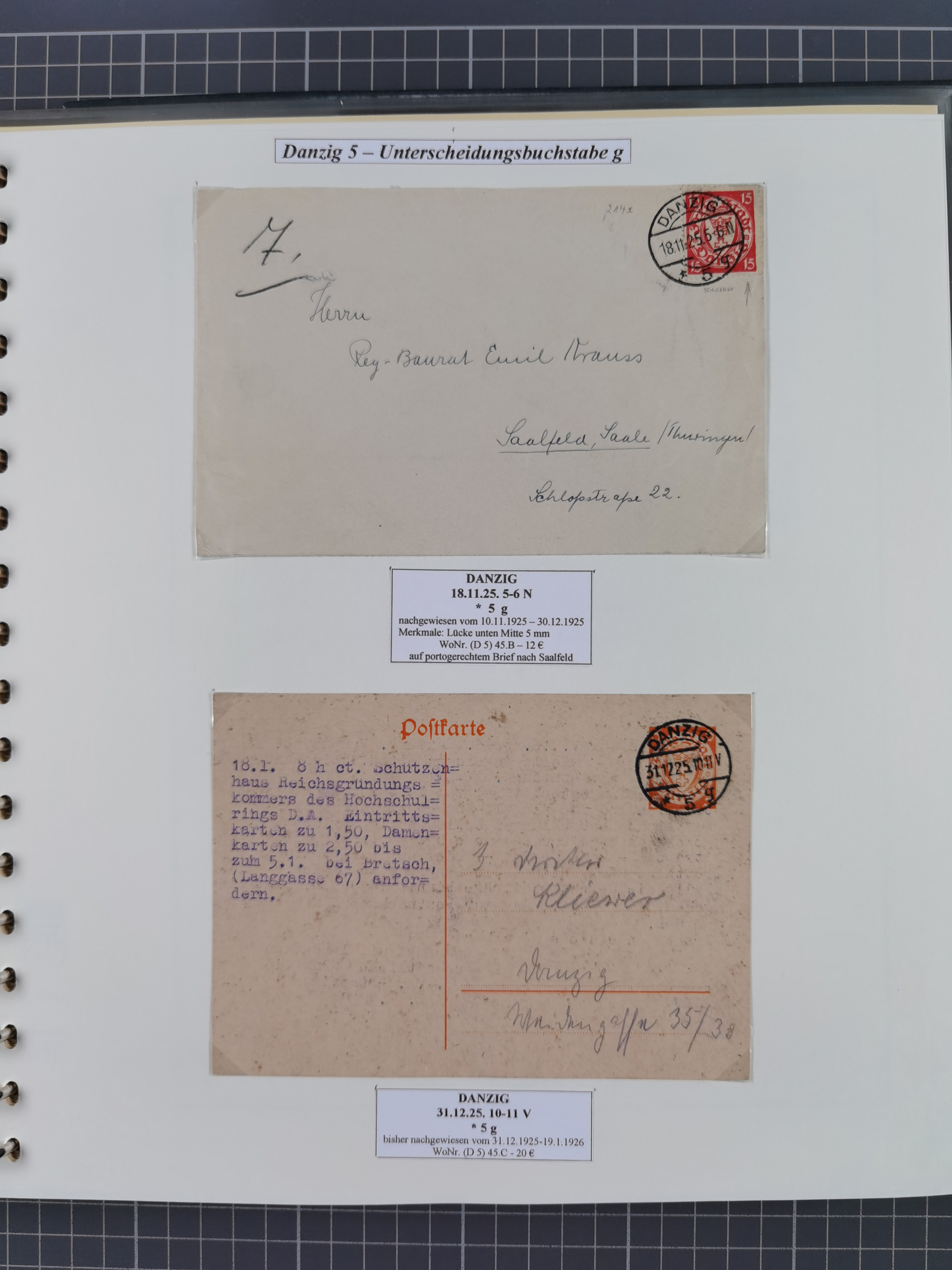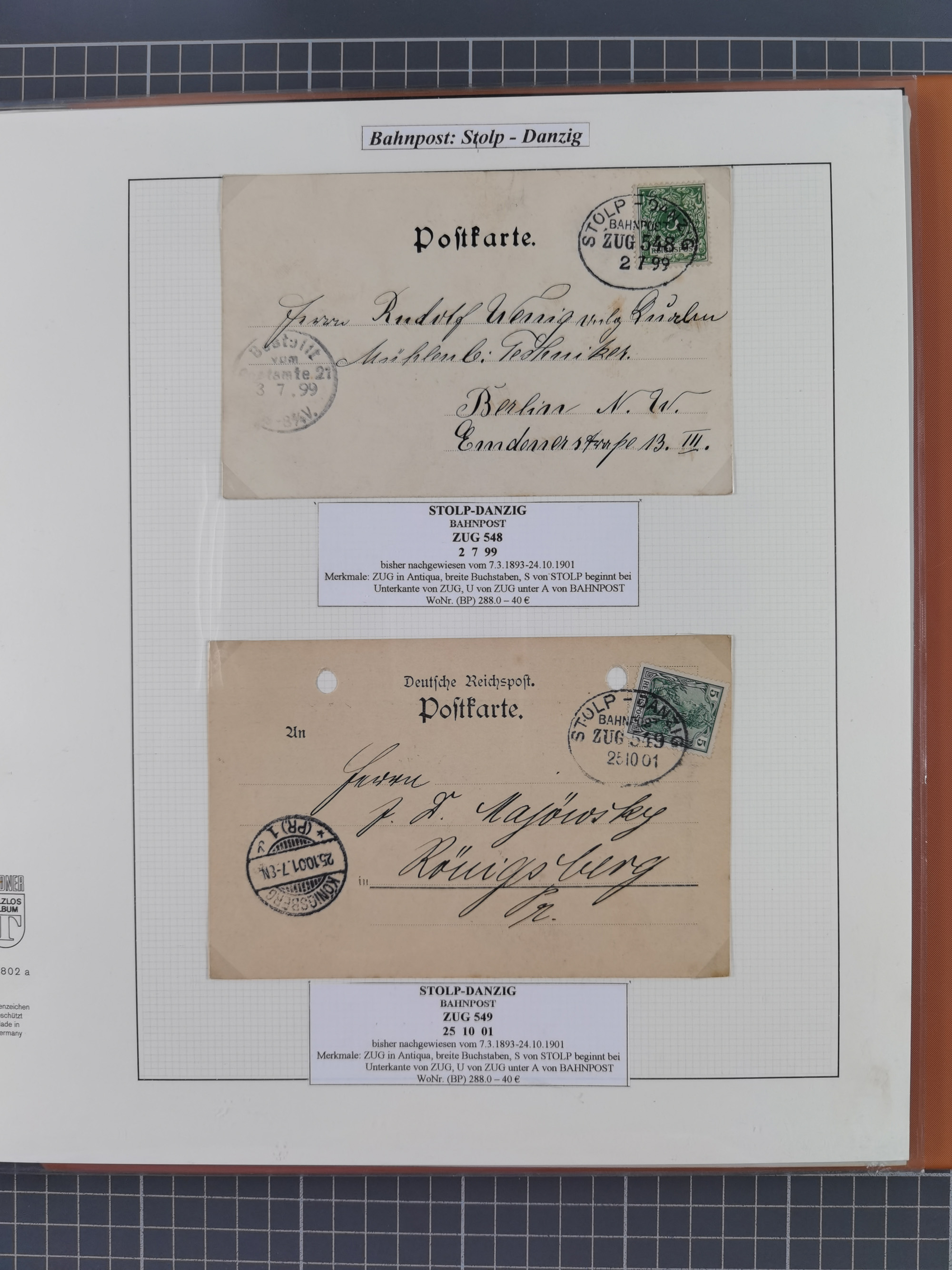 1880/1945, Postamt DANZIG: Interessante Sammlung mit über 200 Briefen, Karten und Einlieferungsscheinen etc., dabei auch etwas Bahnpost, Portomarken, Ganzsachen etc., alles sauber nach Unterscheidungsbuchstaben aufgezogen, meist gute Erhaltung