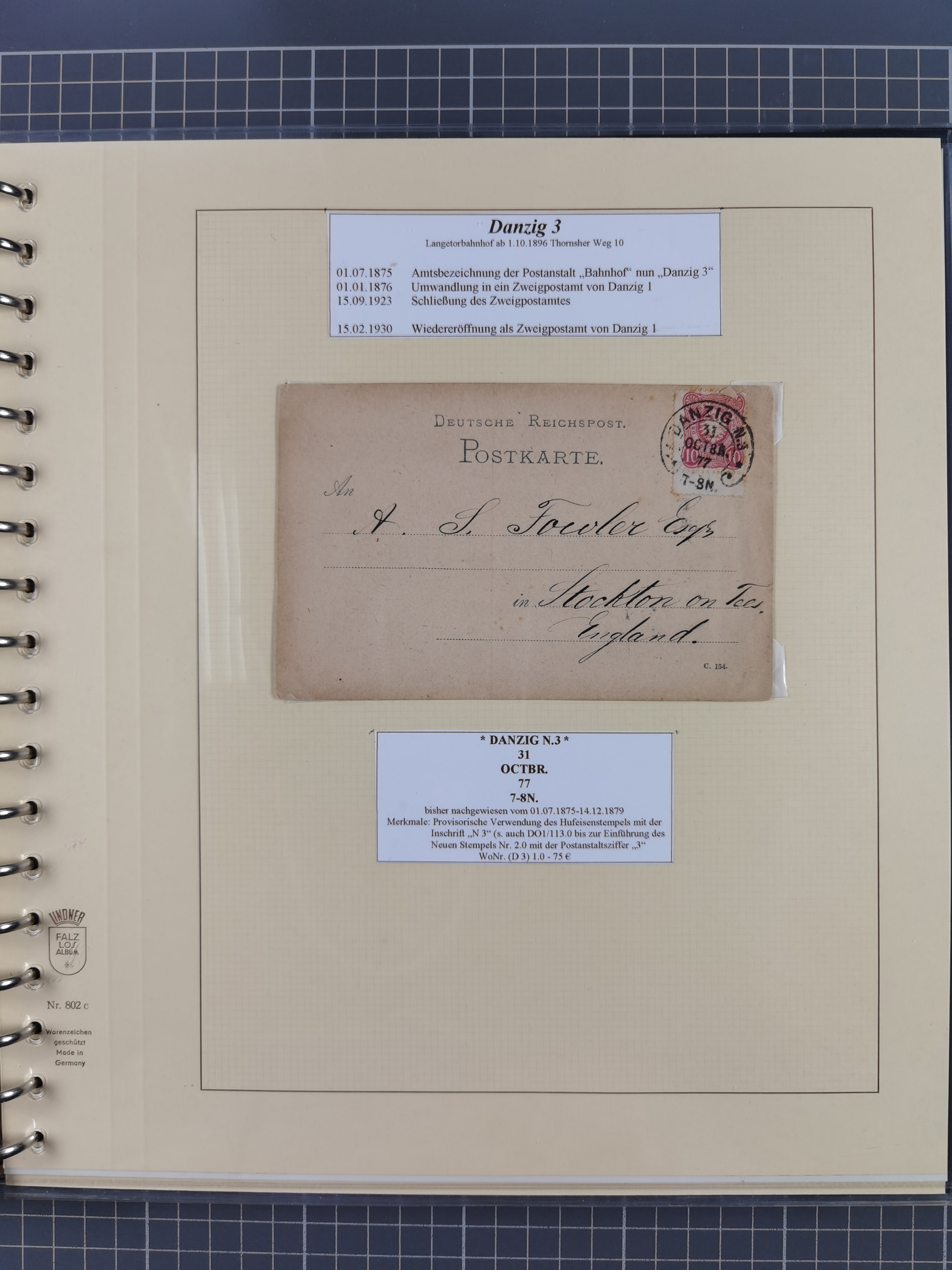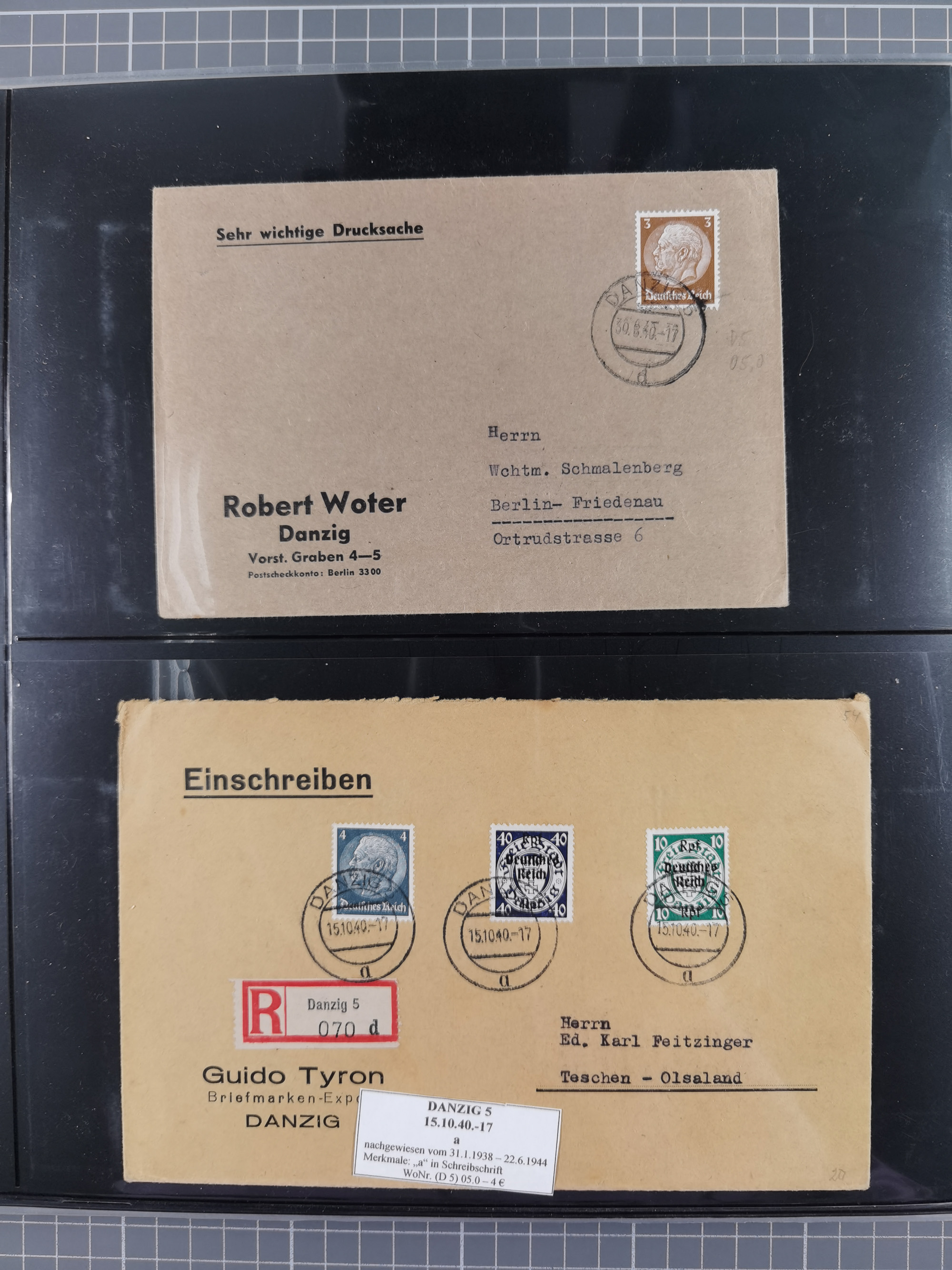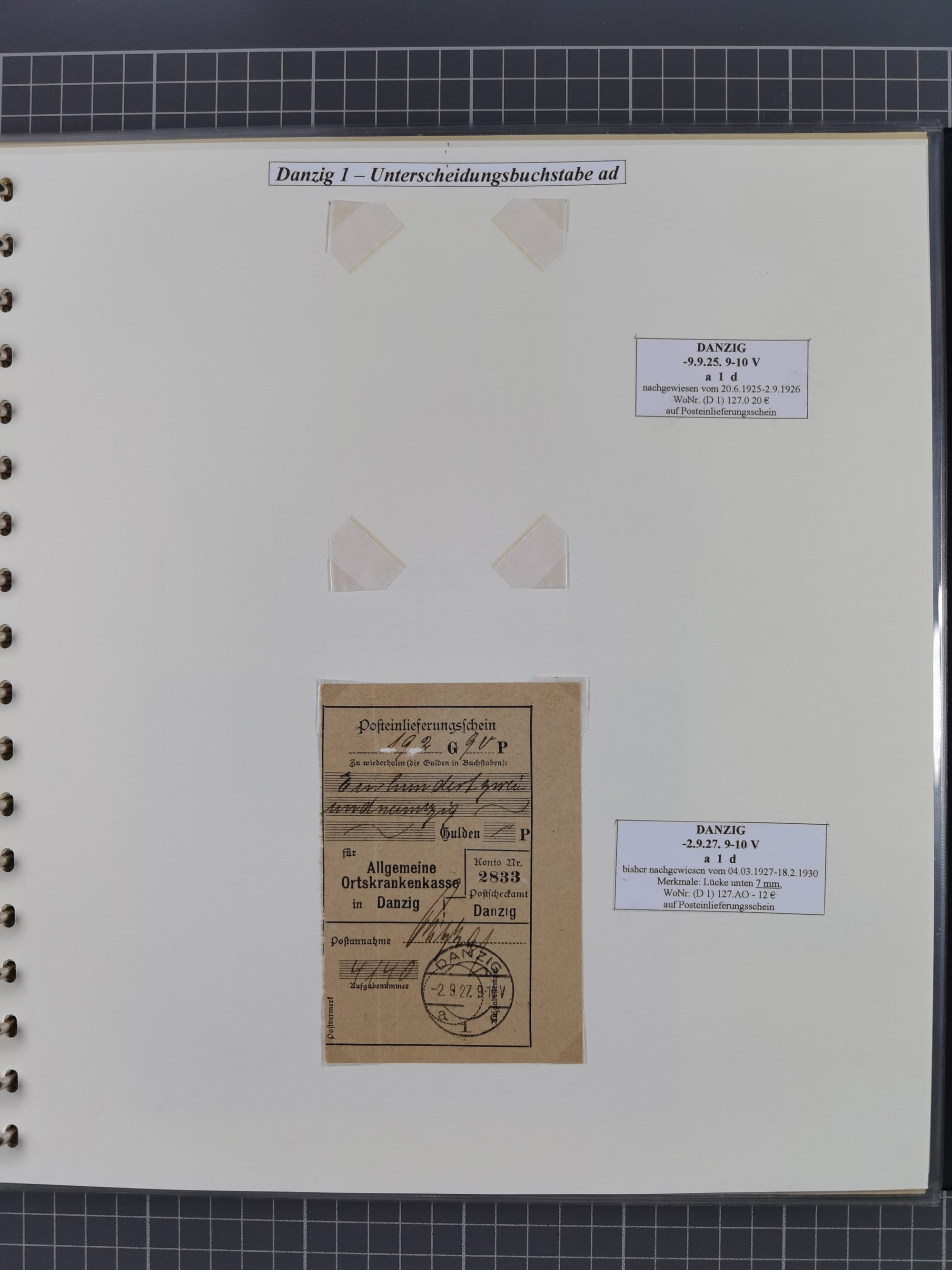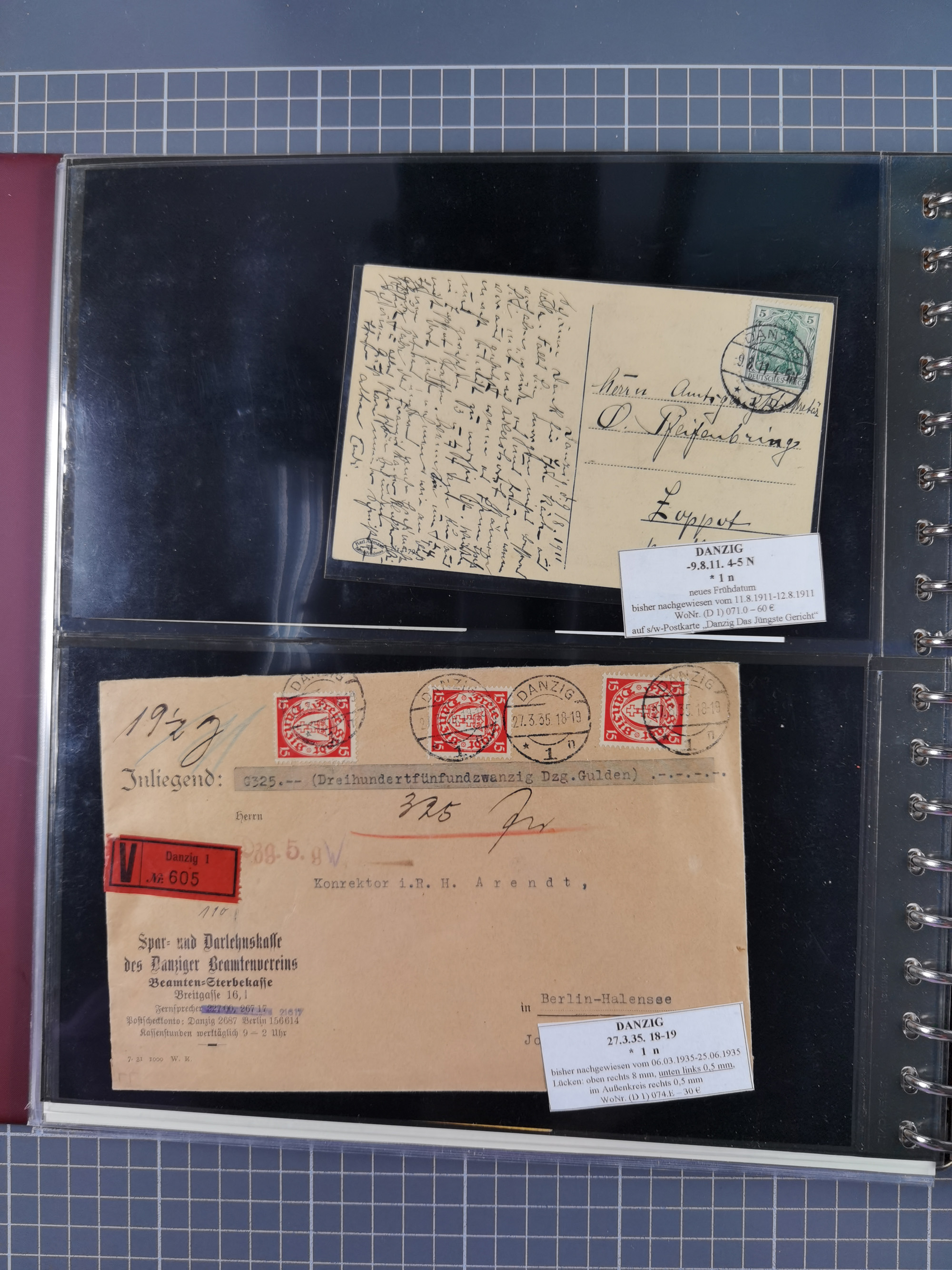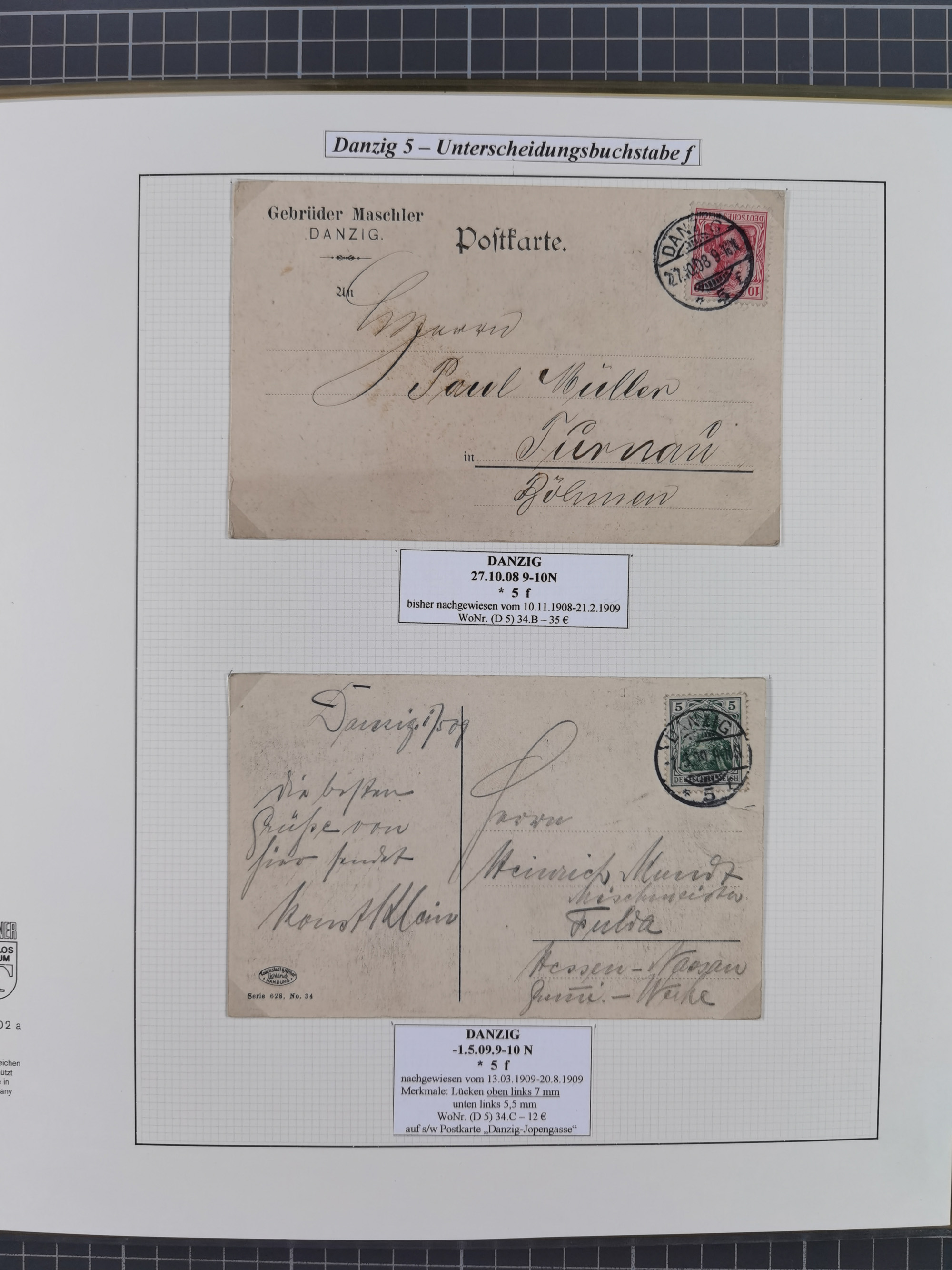 1880/1945, Postamt DANZIG: Interessante Sammlung mit über 200 Briefen, Karten und Einlieferungsscheinen etc., dabei auch etwas Bahnpost, Portomarken, Ganzsachen etc., alles sauber nach Unterscheidungsbuchstaben aufgezogen, meist gute Erhaltung