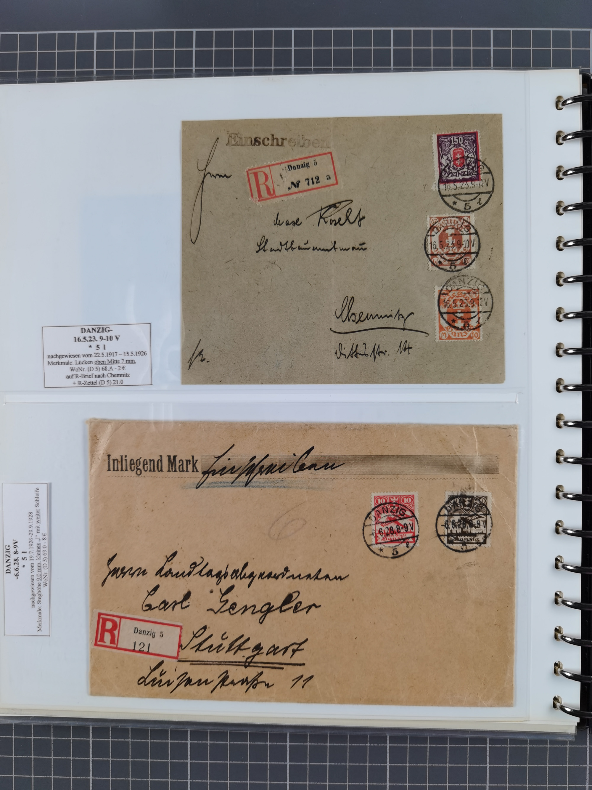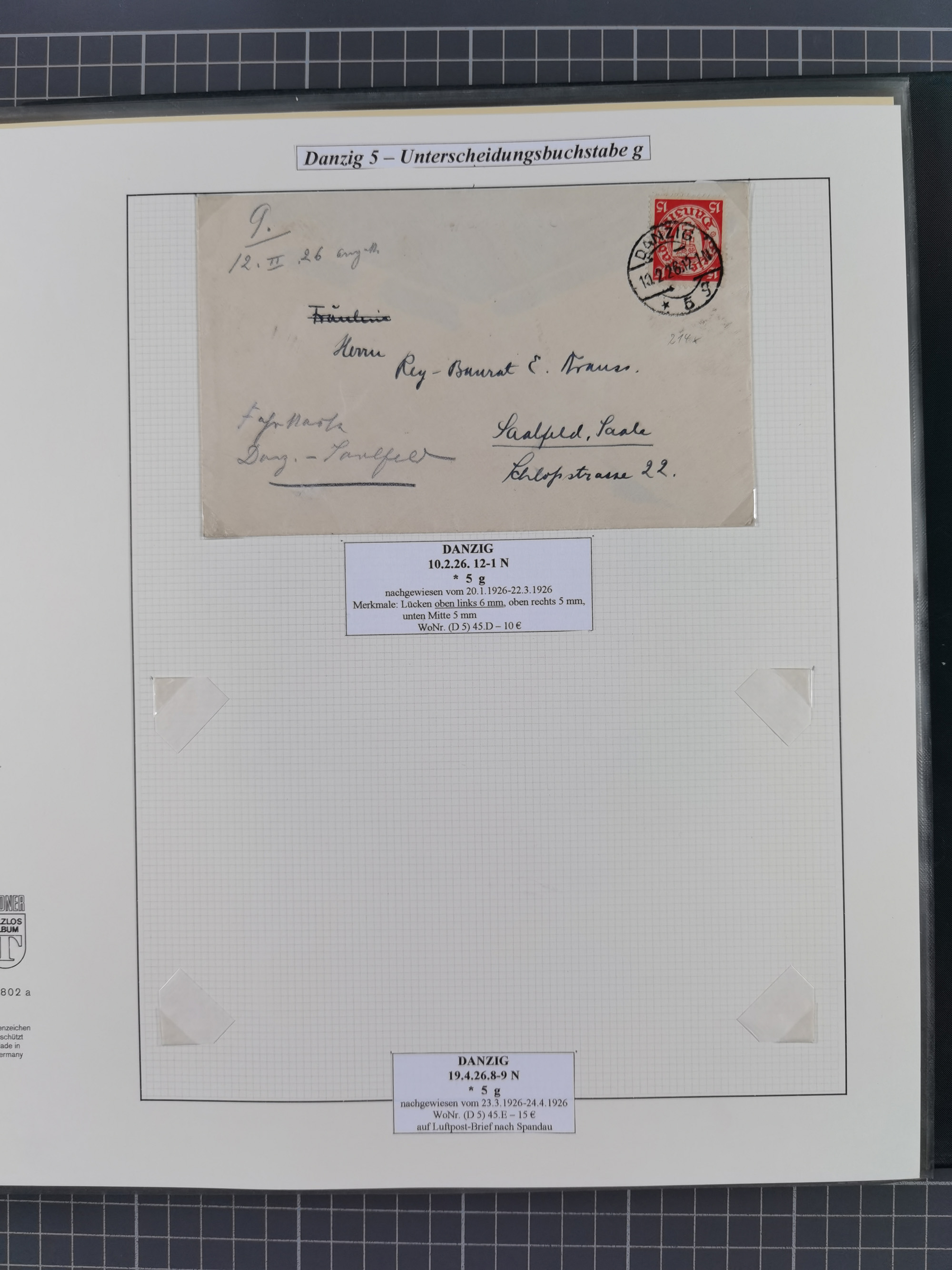 1856/1940, Partie mit 10 besseren Briefen, Karten und Ganzsachen. Dabei u.a. Preußen-GSU mit Zufrankatur und Nummernstempel “304”, frankierte Paketkarte aus der Hochinflation, Luftpost-Brief 1933 nach Uruguay, zwei gebraucht HP1 und zwei Feldpost-Belege mit Danziger Feldpost-Stempeln, meist in guter Erhaltung, ex Hulkenberg