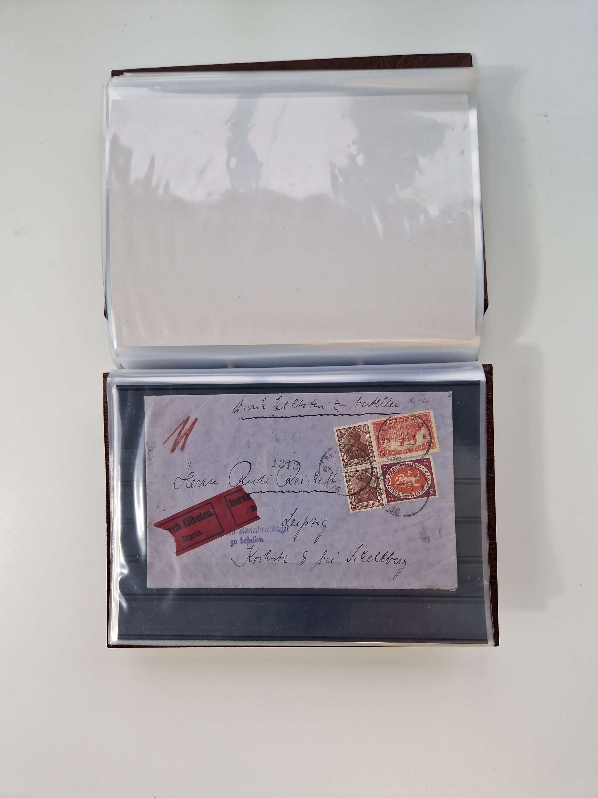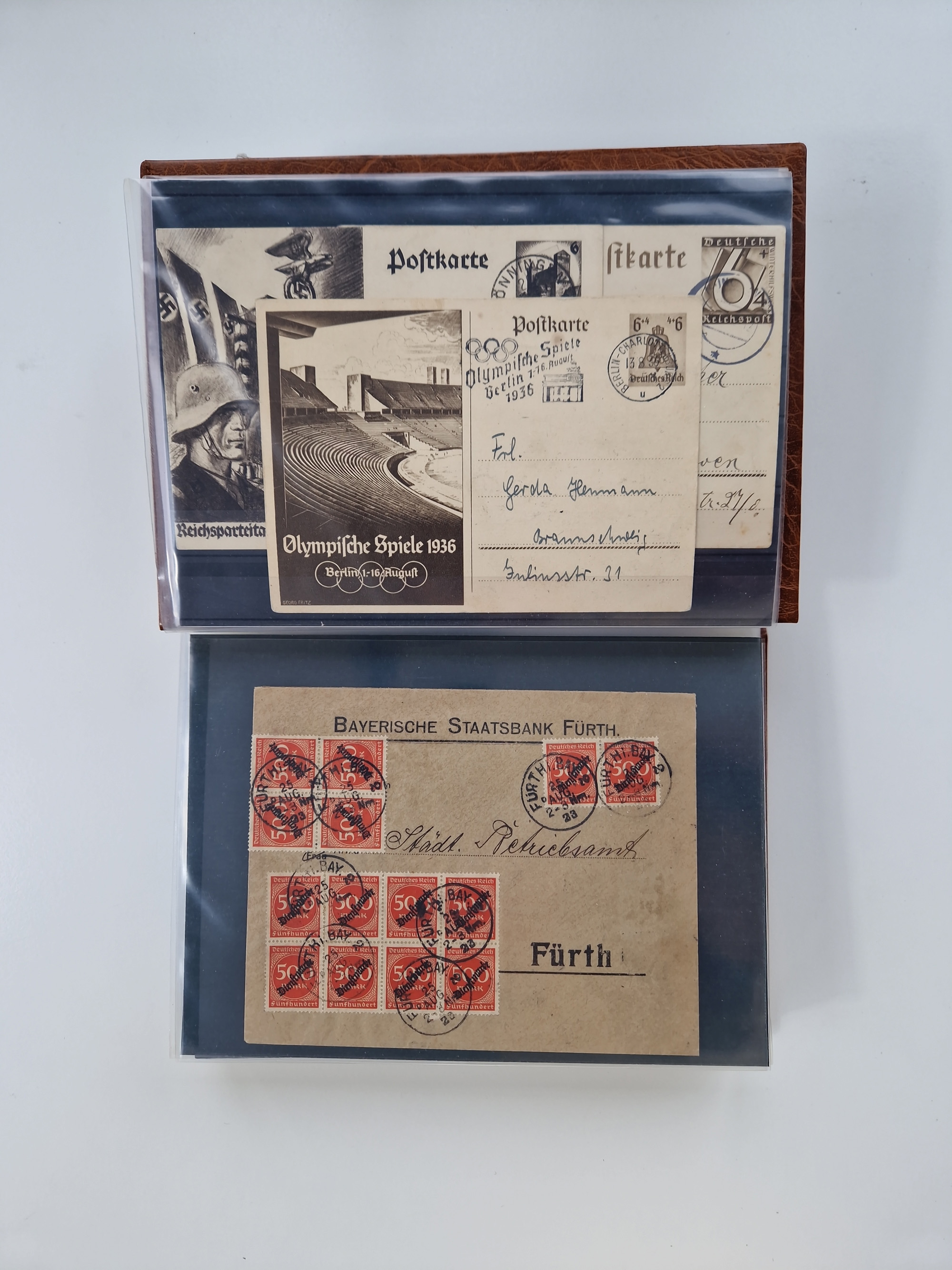 1850/1950 (ca.), umfangreicher Bestand mit über 700 Briefen und Karten, inkl. Bayern und Alliierte Besetzung, Schwerpunt Drittes Reich, kleiner Teil Inflation, viele Ganzsachen dabei u.a. Bayern Postanweisungskarte, sowie Sonderpostkarten, Flugpost, R-Brief und Mehrfachfrankaturen, dazu einiege lose Marken sowie zwei Fahrpläne der Hapag und des Norddeutscher Llyod Bremen nach Süd Amerika, etc., die Erhaltung etwas unterschiedlich