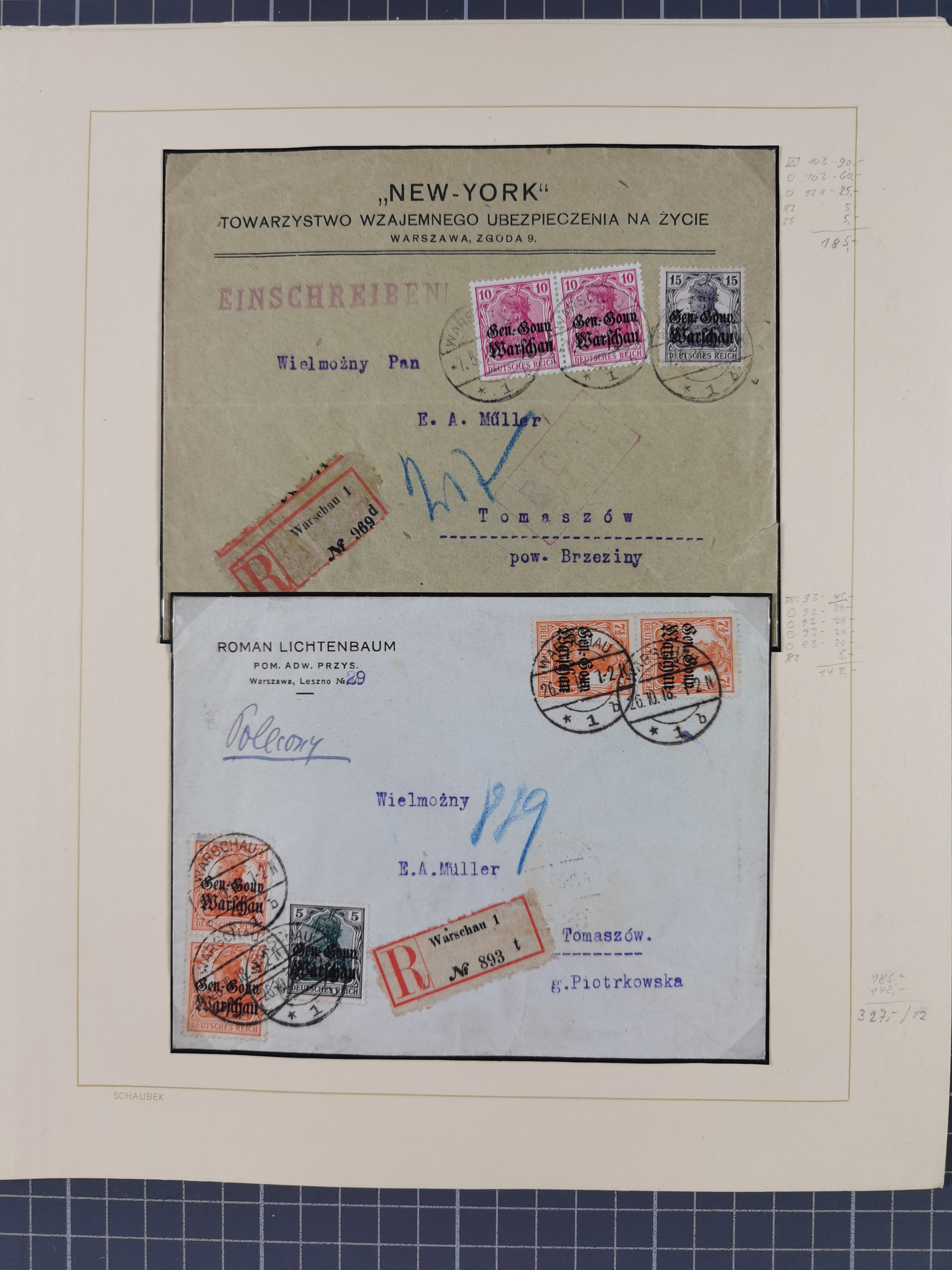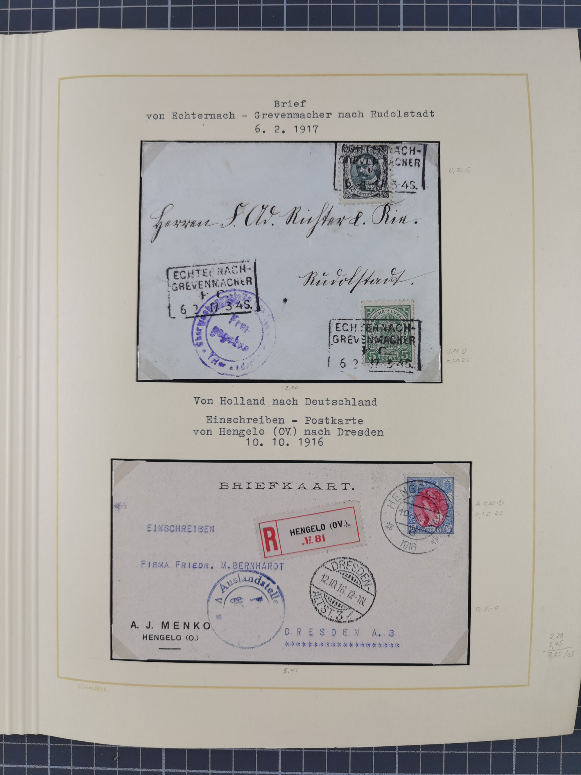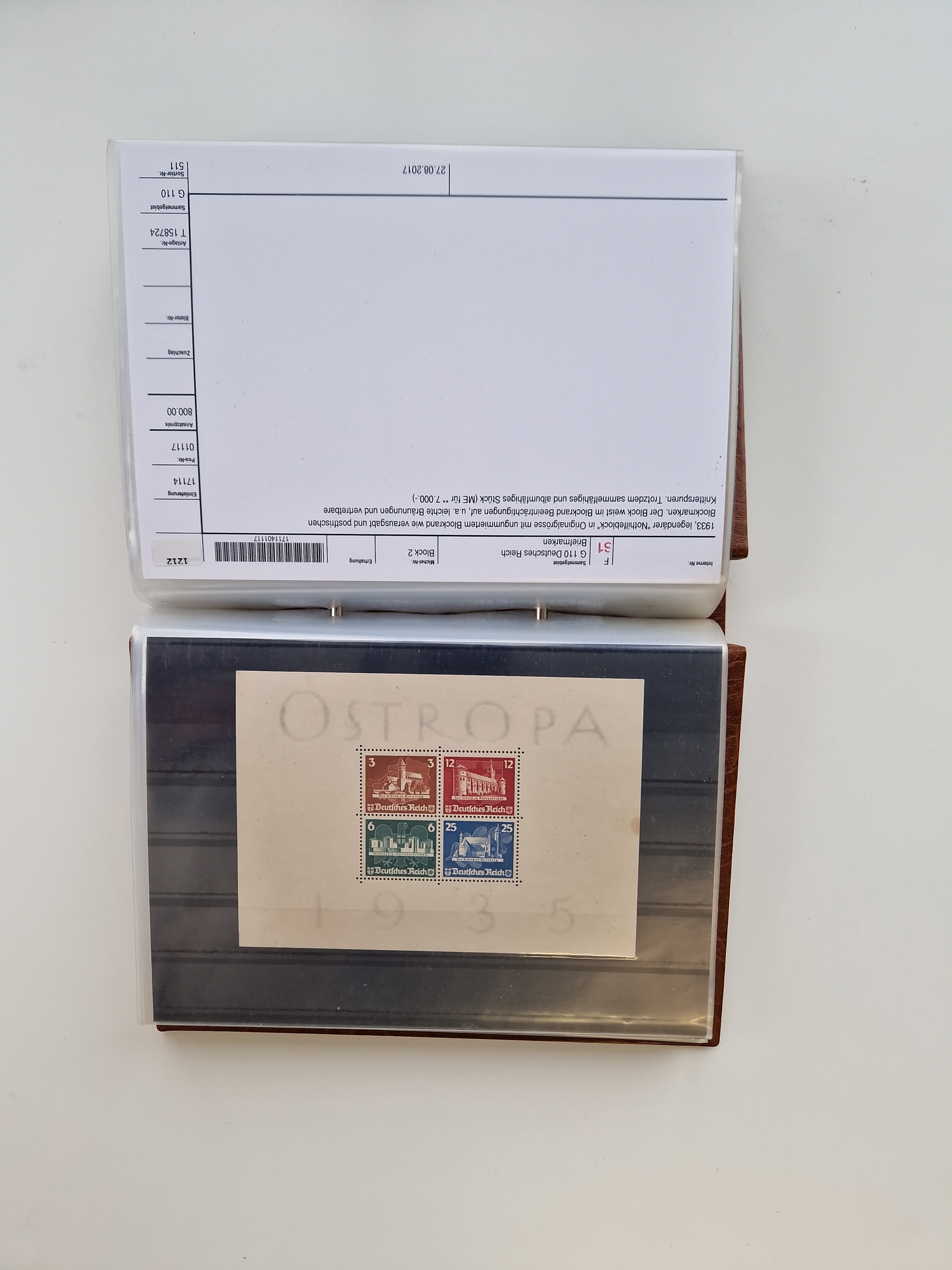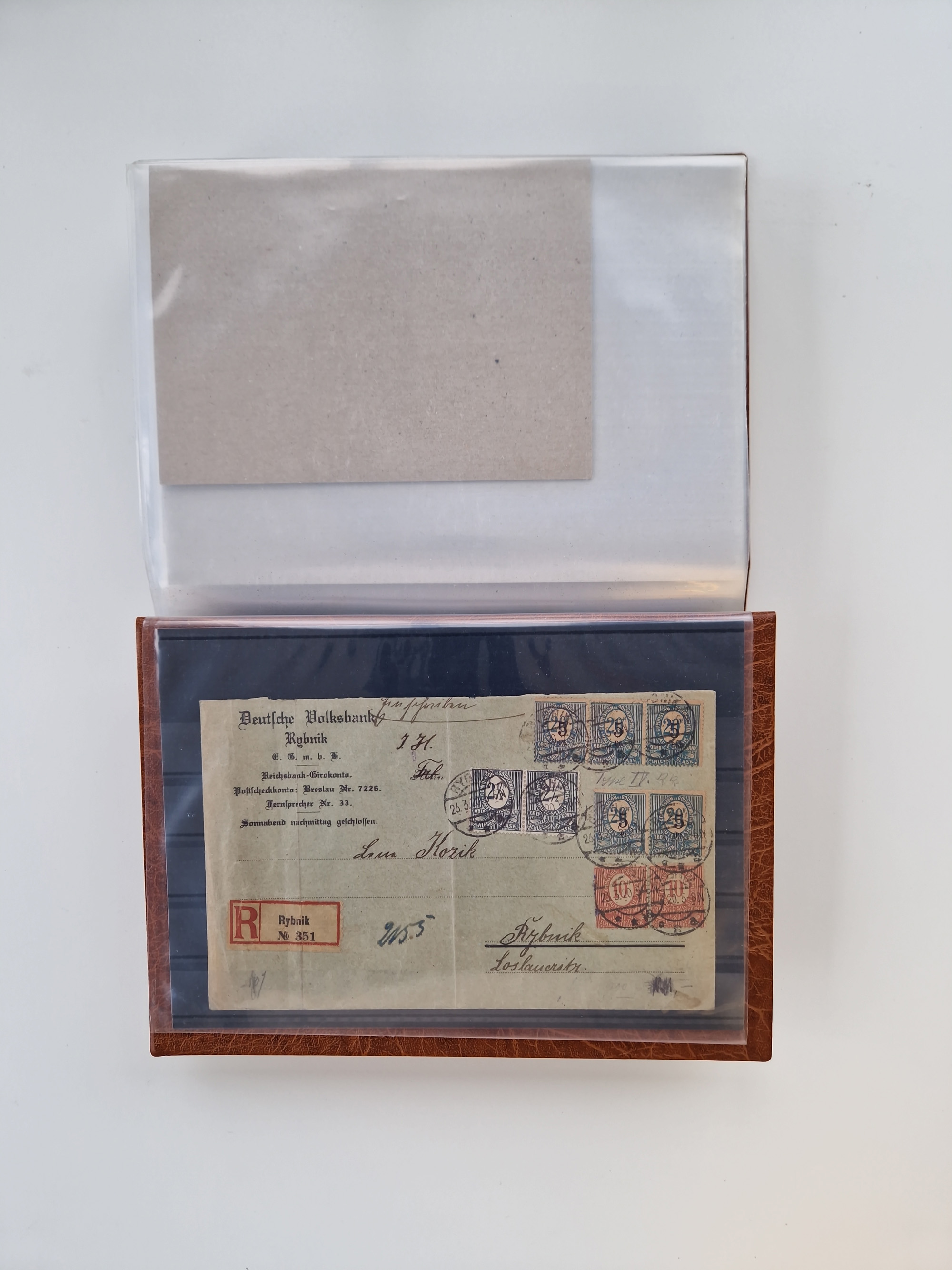 1903/80, Album mit 128 Mehrfachfrankaturen mit mindestens vier Marken, meistens aber mit mehr Marken (48 St. Ausland) dabei auch bessere Ausgaben z. B. Zepp-Brief Argentinienfahrt 1934 mit 5 x 35 Pf. Hindenburg und Zeppelin- Englandfahrt 1930 mit 6 x 25 Pf. Hindenburg, etwas unterschiedliche Erhaltung