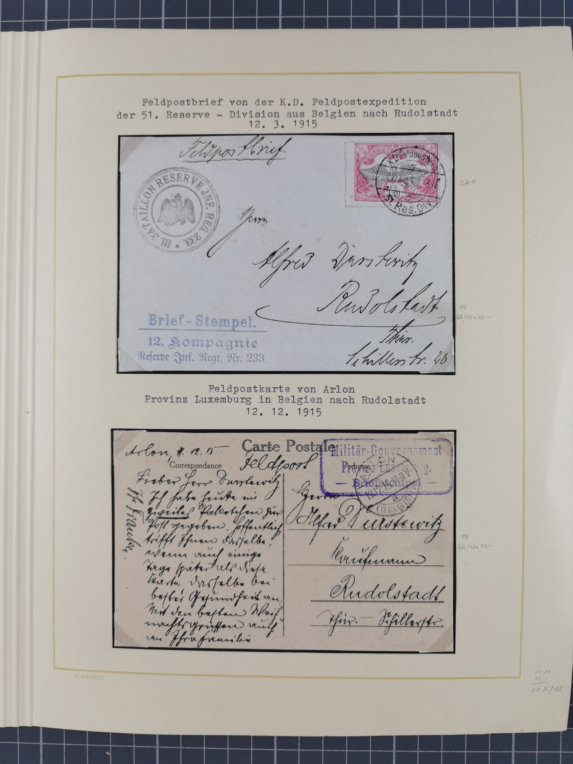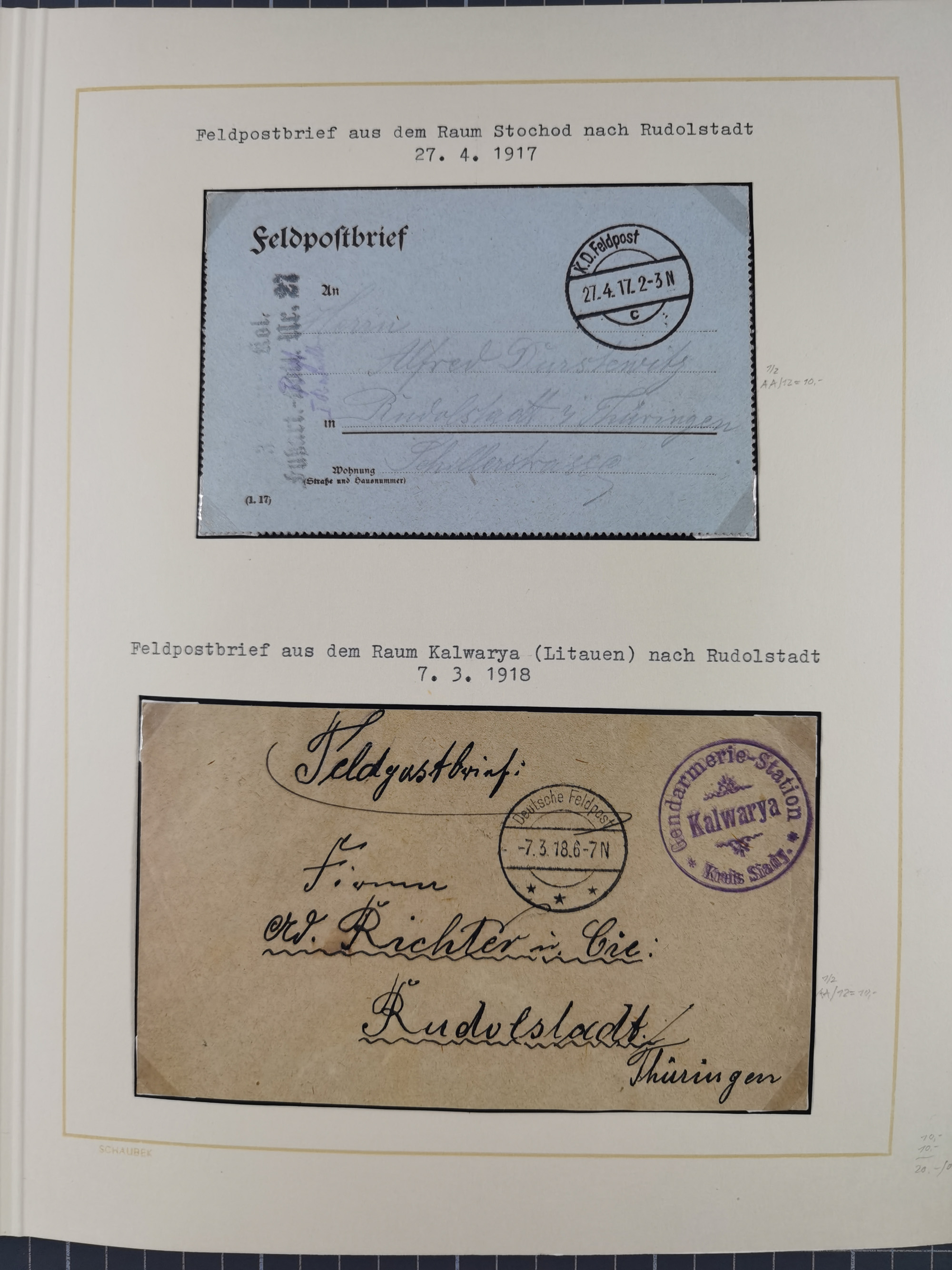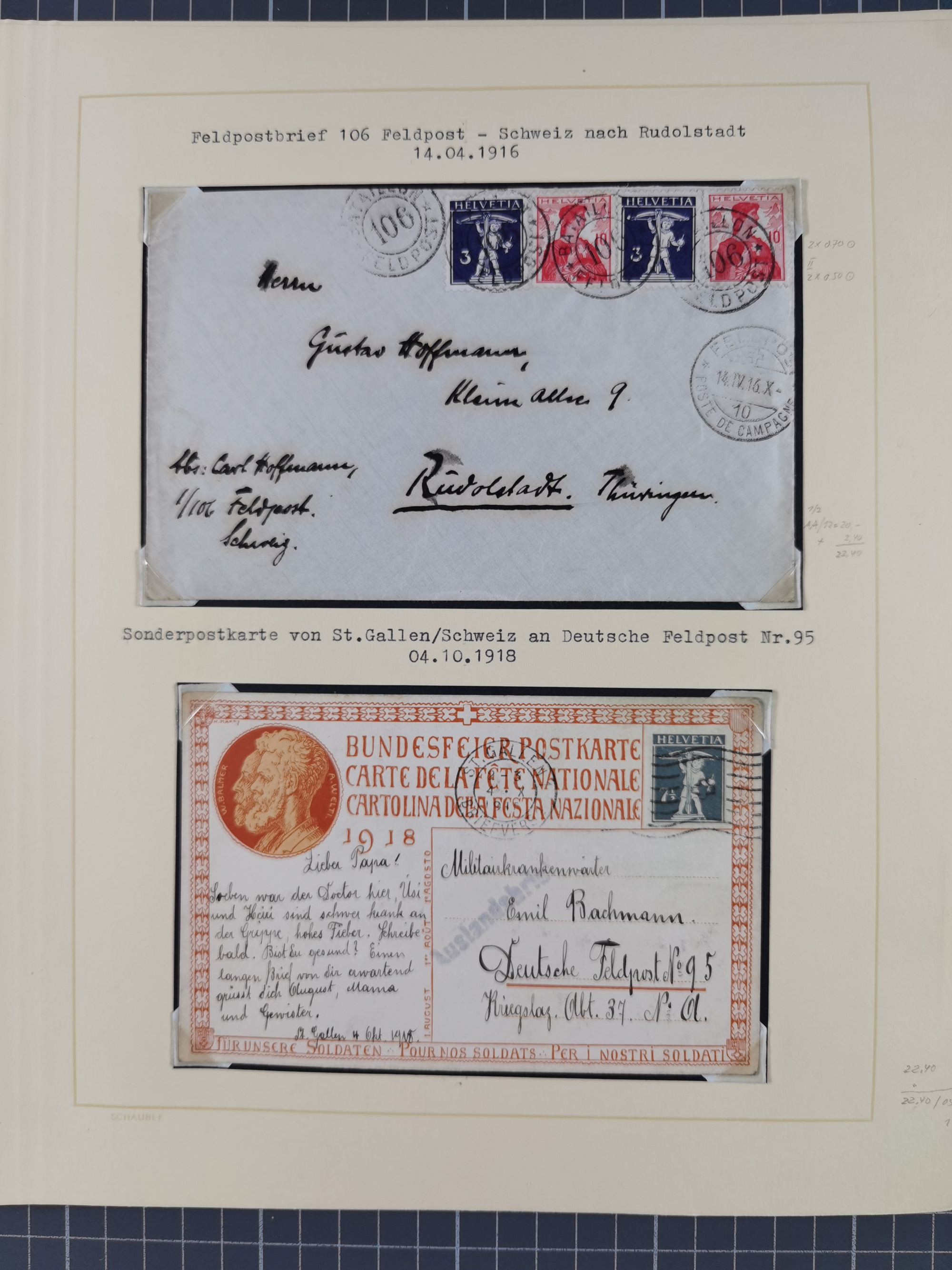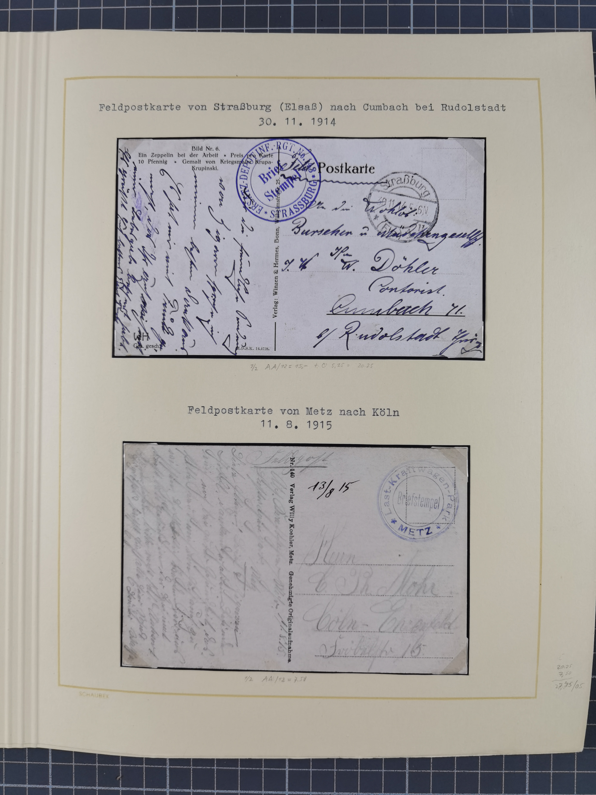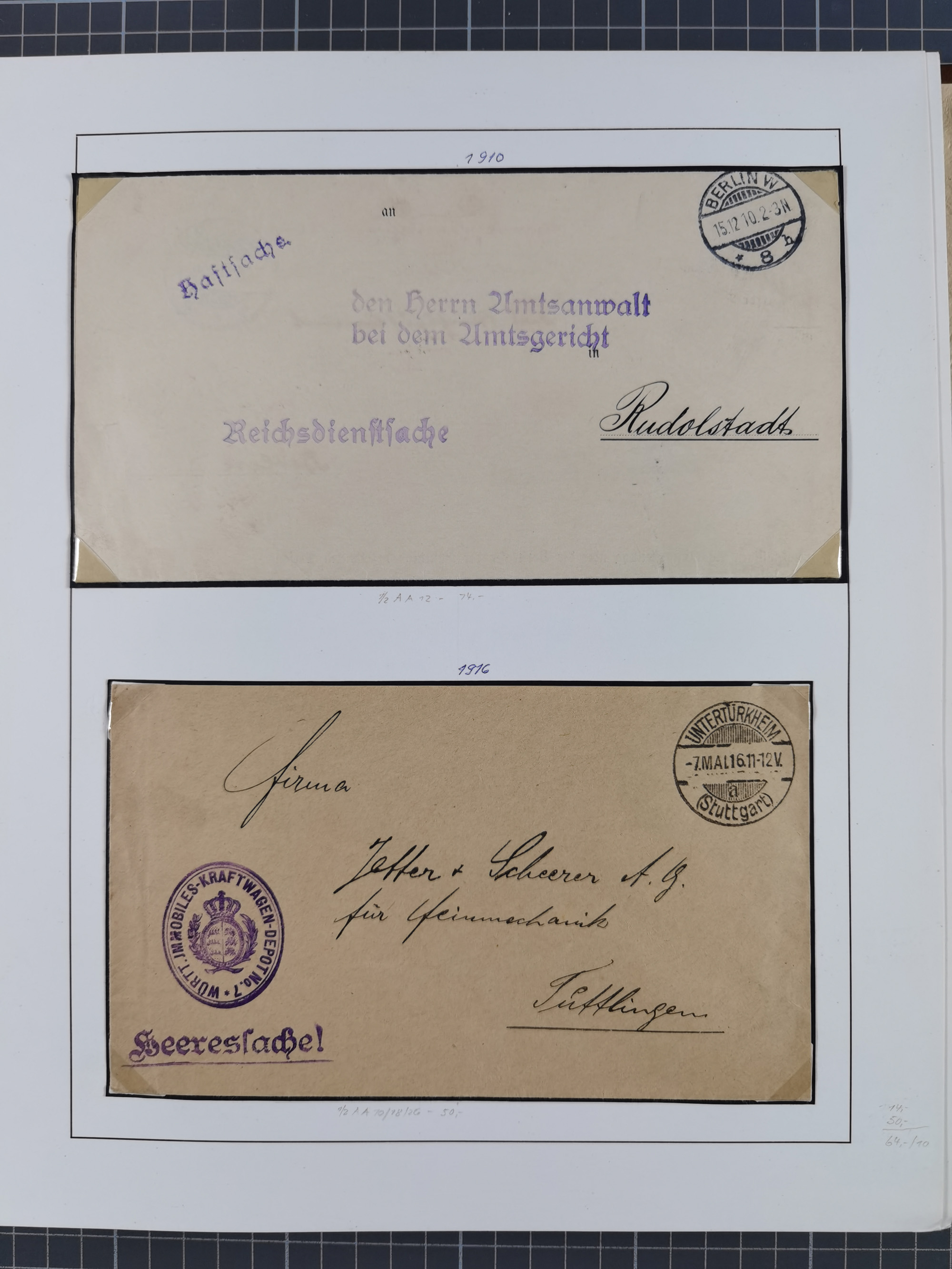 1870/1970 (ca.), 2-bändige thematische Sammlung 'Deutsche unter Waffen' mit rund 130 Briefen, Karten und Ganzsachen, dabei viel interessantes Material beginnend mit dem deutsch-französischen Krieg, Feldpost in den Kolonien, MSP, Zeppelin-Karten, bessere Privatpost-GSK, sowie interessante Belege WK I und II