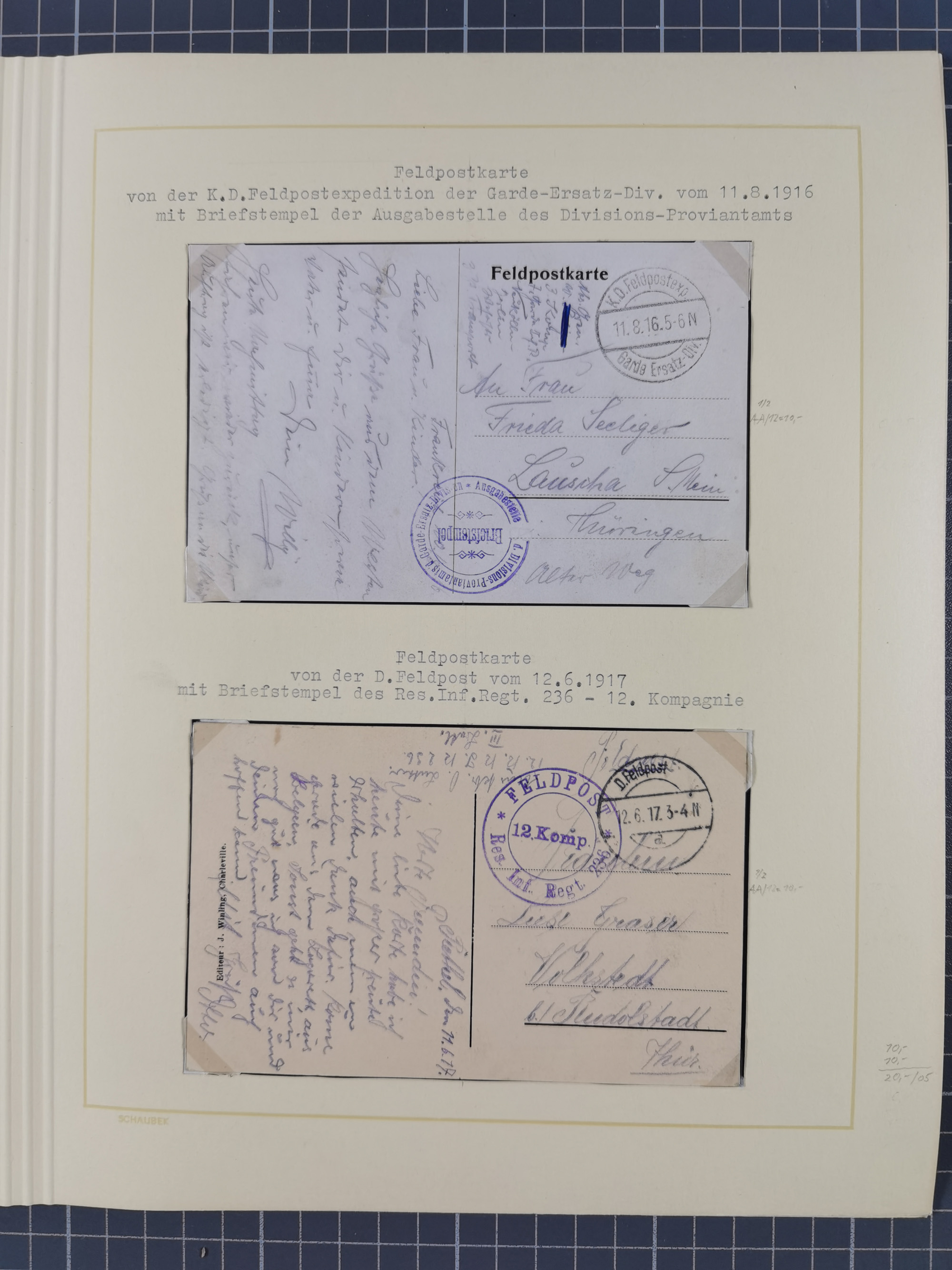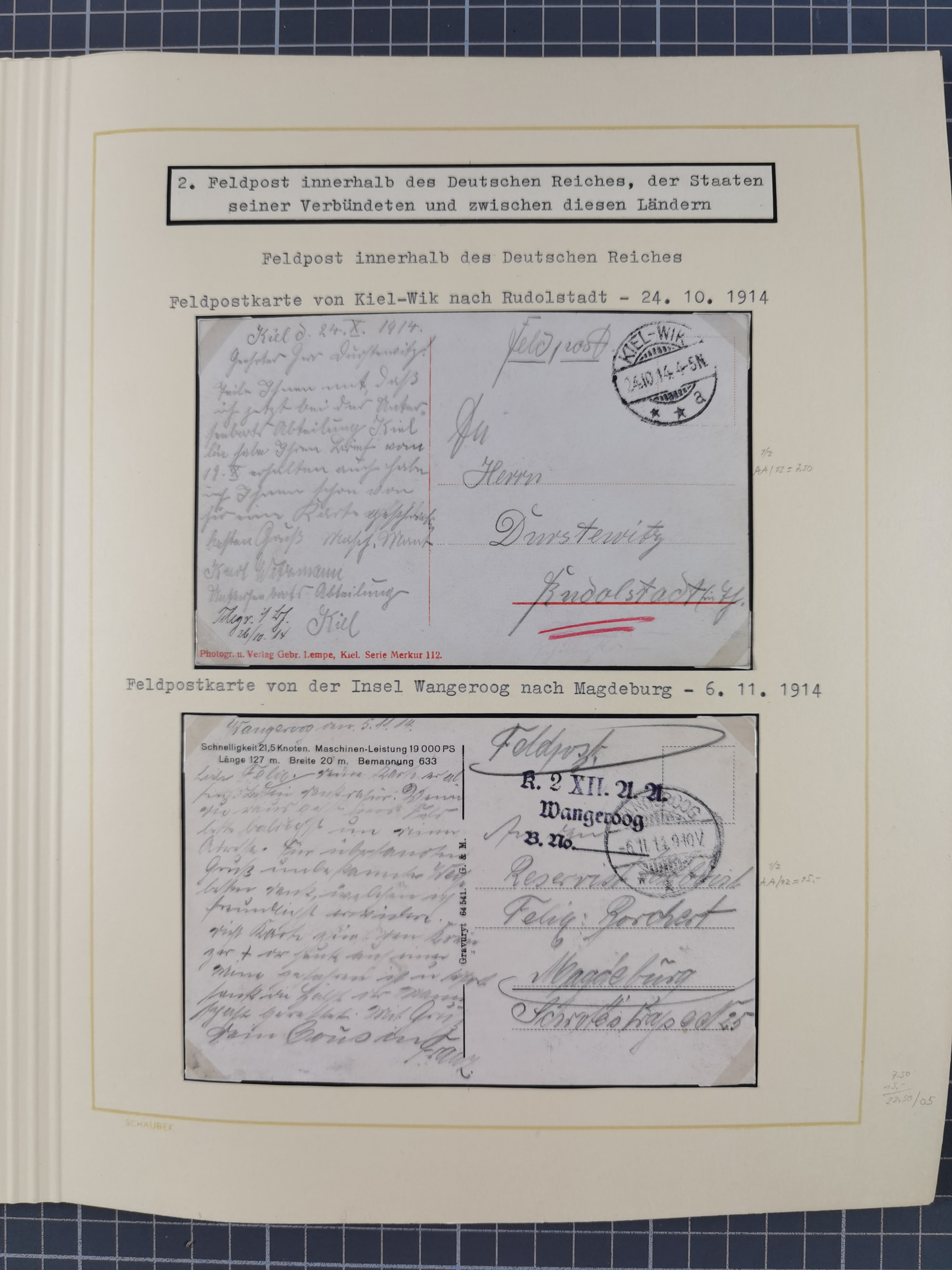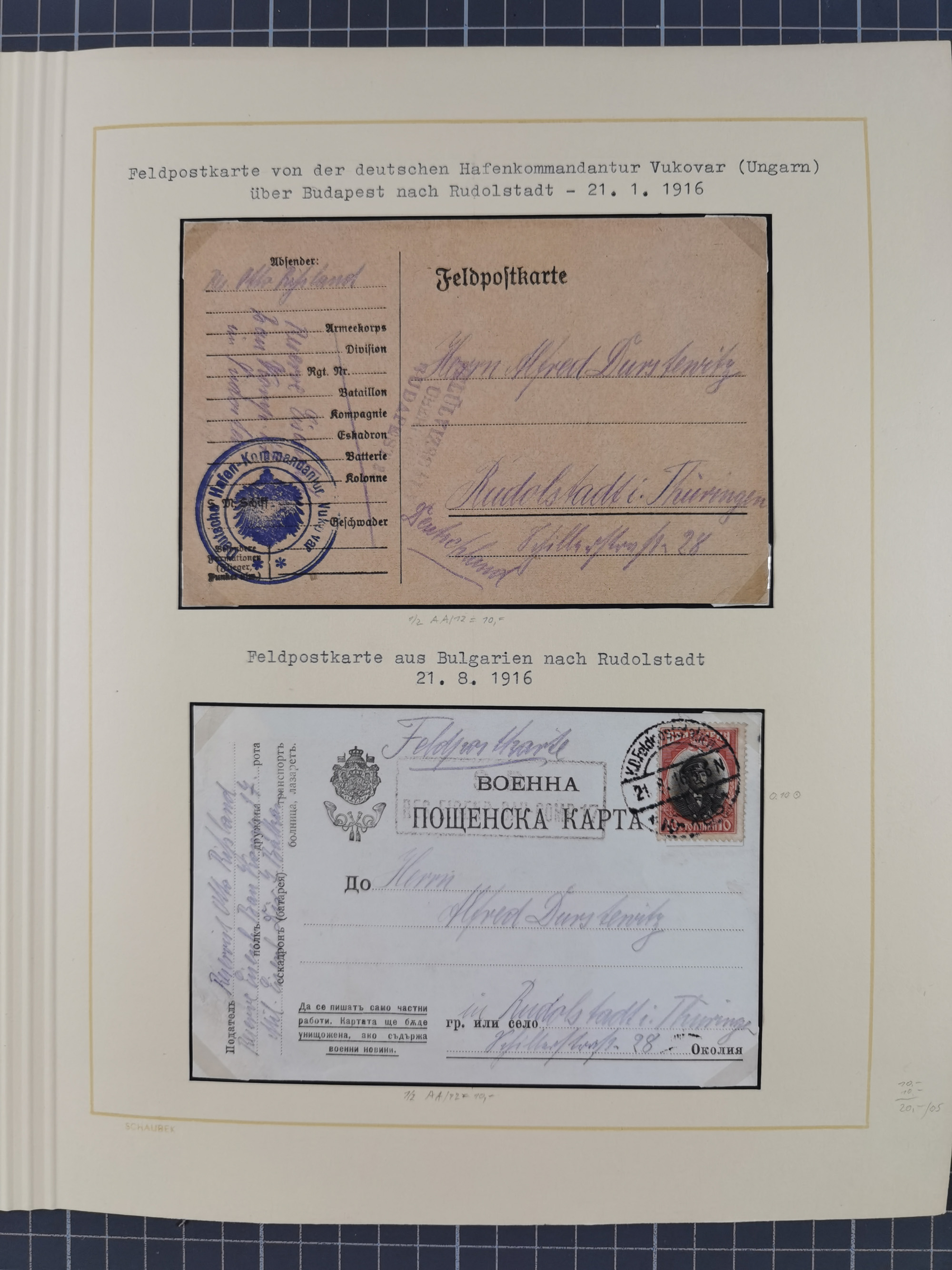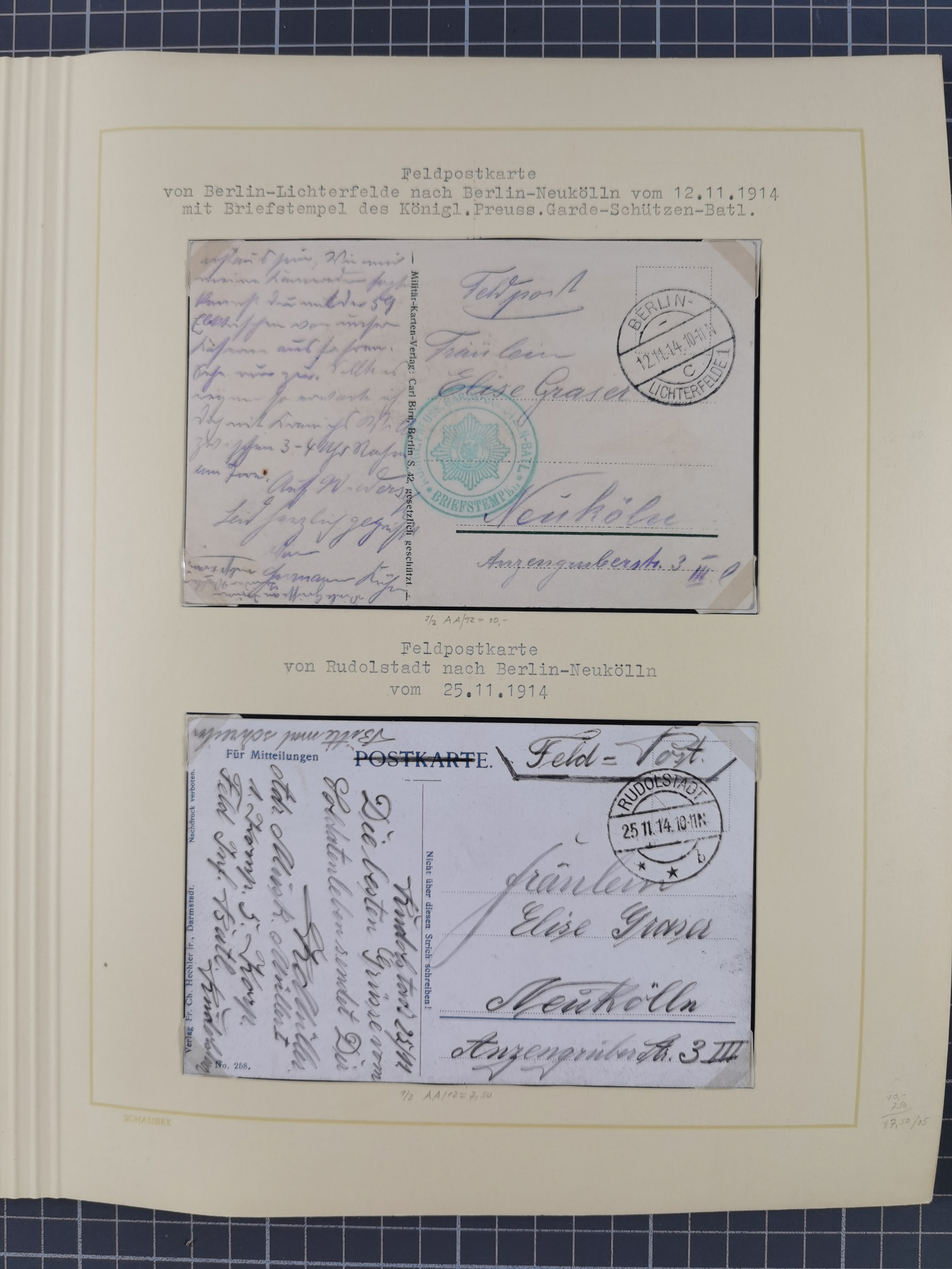 1870/1970 (ca.), 2-bändige thematische Sammlung 'Deutsche unter Waffen' mit rund 130 Briefen, Karten und Ganzsachen, dabei viel interessantes Material beginnend mit dem deutsch-französischen Krieg, Feldpost in den Kolonien, MSP, Zeppelin-Karten, bessere Privatpost-GSK, sowie interessante Belege WK I und II