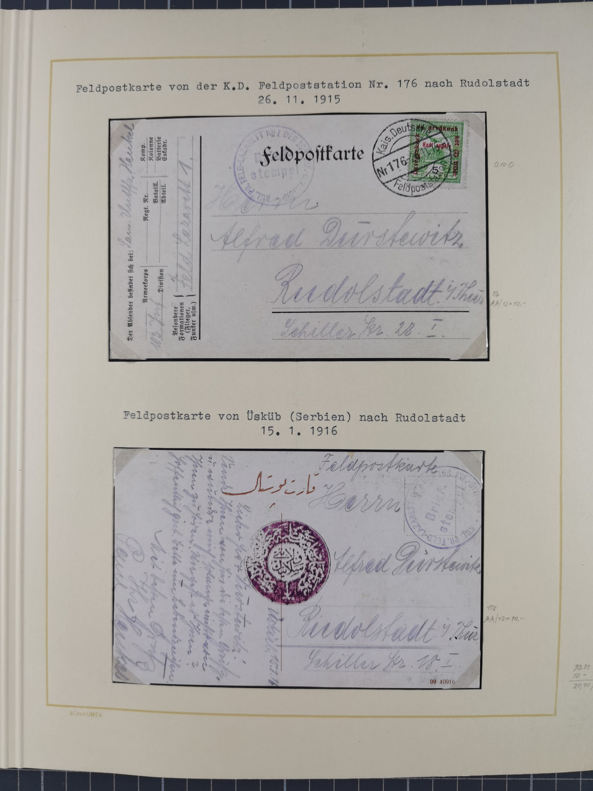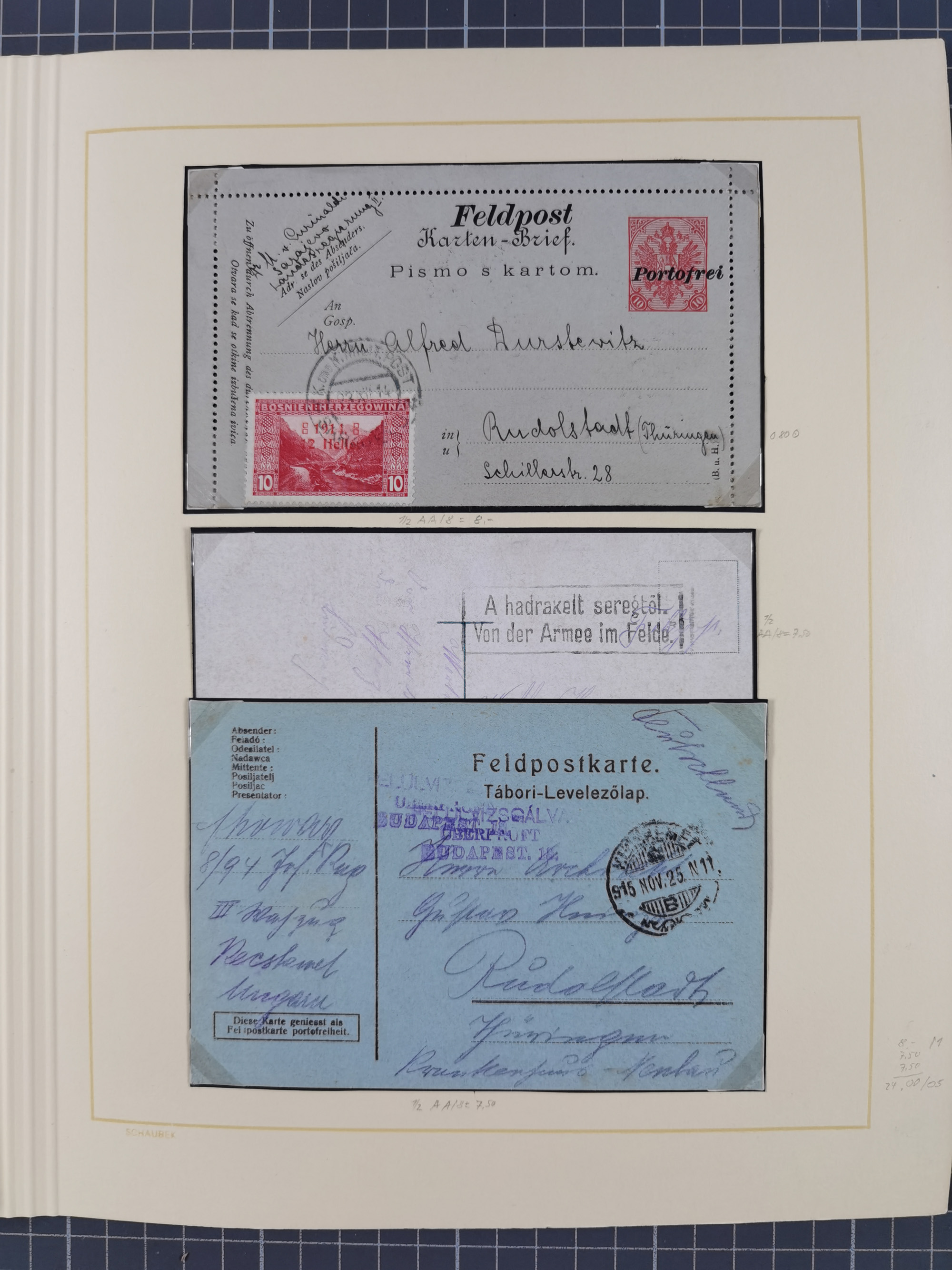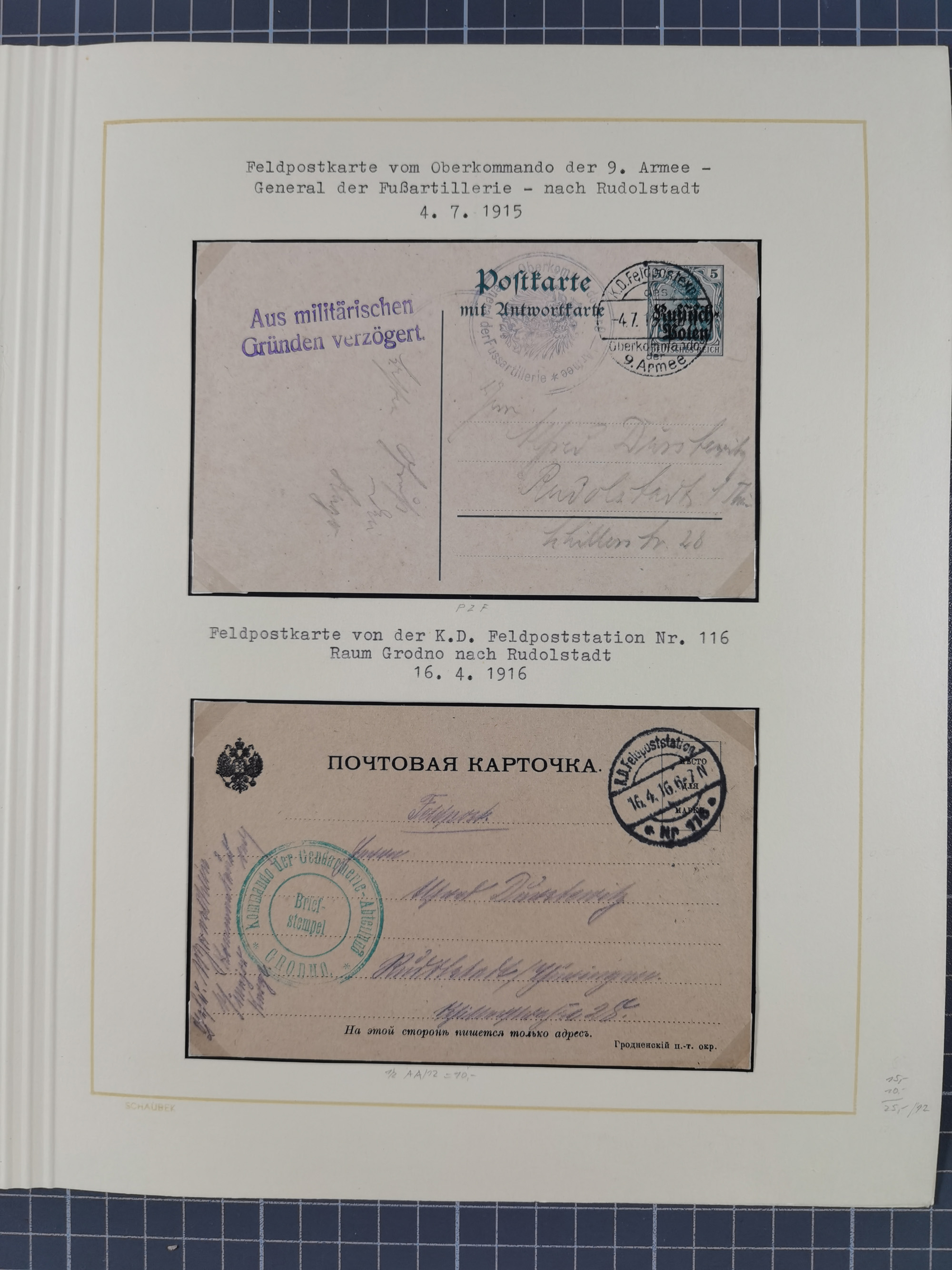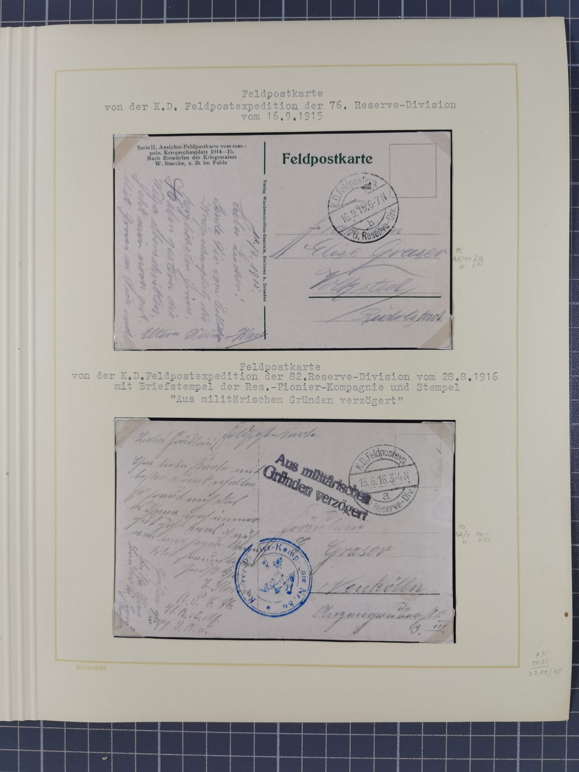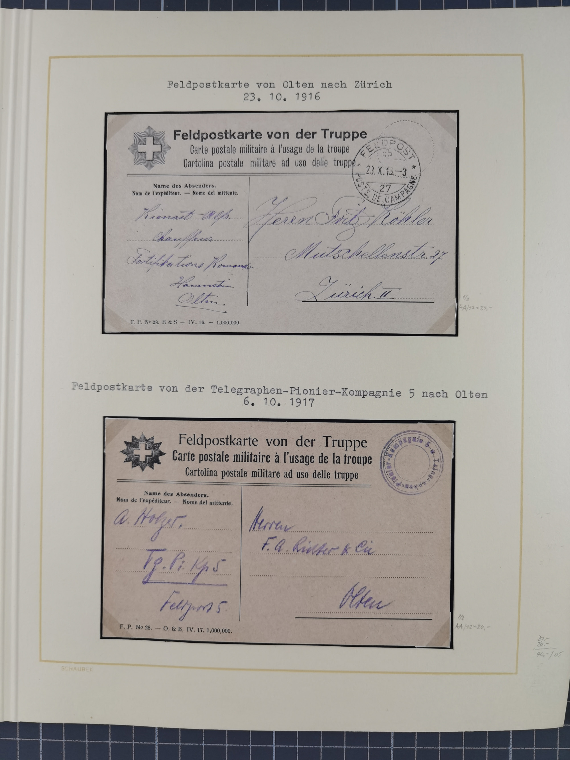 1870/1970 (ca.), 2-bändige thematische Sammlung 'Deutsche unter Waffen' mit rund 130 Briefen, Karten und Ganzsachen, dabei viel interessantes Material beginnend mit dem deutsch-französischen Krieg, Feldpost in den Kolonien, MSP, Zeppelin-Karten, bessere Privatpost-GSK, sowie interessante Belege WK I und II