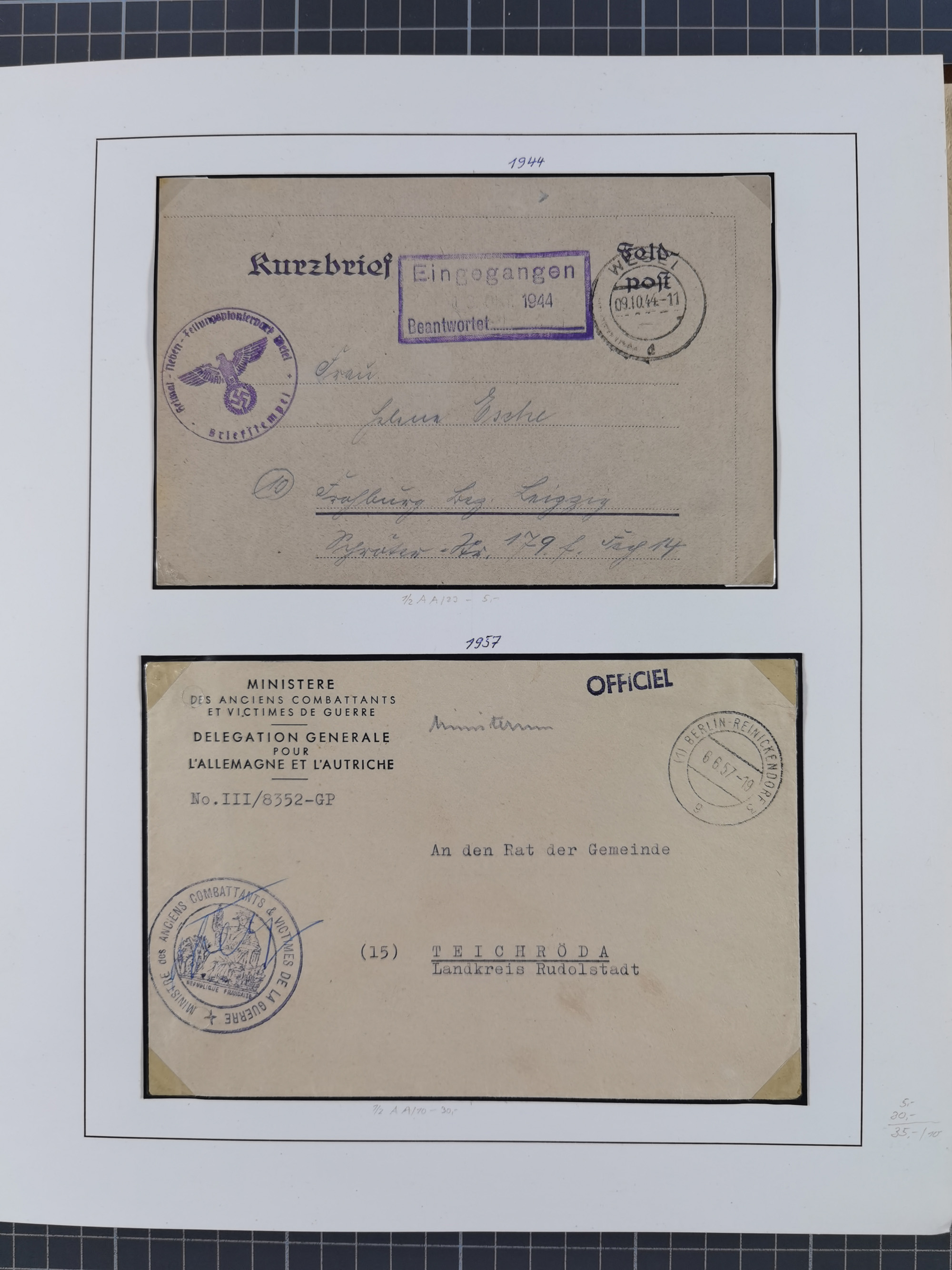 1859/1975 (ca.), postfrische/ungebrauchte und gestempelte Themensammlung “Der imperialistische Weltkrieg 1914/18”, inkl. Kolonien und Besatzungsausgaben mit vielen Belegen, zudem eine postfrische/ungebrauchte und gestempelte Themensammlung “Vorbereitung und Durchführung des zweiten Weltkrieges sowie seine Auswirkungen besonders in den Ländern Europas”, u.a. dabei Chicagofahrt gestempelt, Wagnersatz gestempelt, Blockausgabe Ostropa mit Sonderstempel, mit vielen Belegen, sowie ein Album mit portofreien Belegen, meist gute Erhaltung, in sieben Ordnern und einem Briefalbum