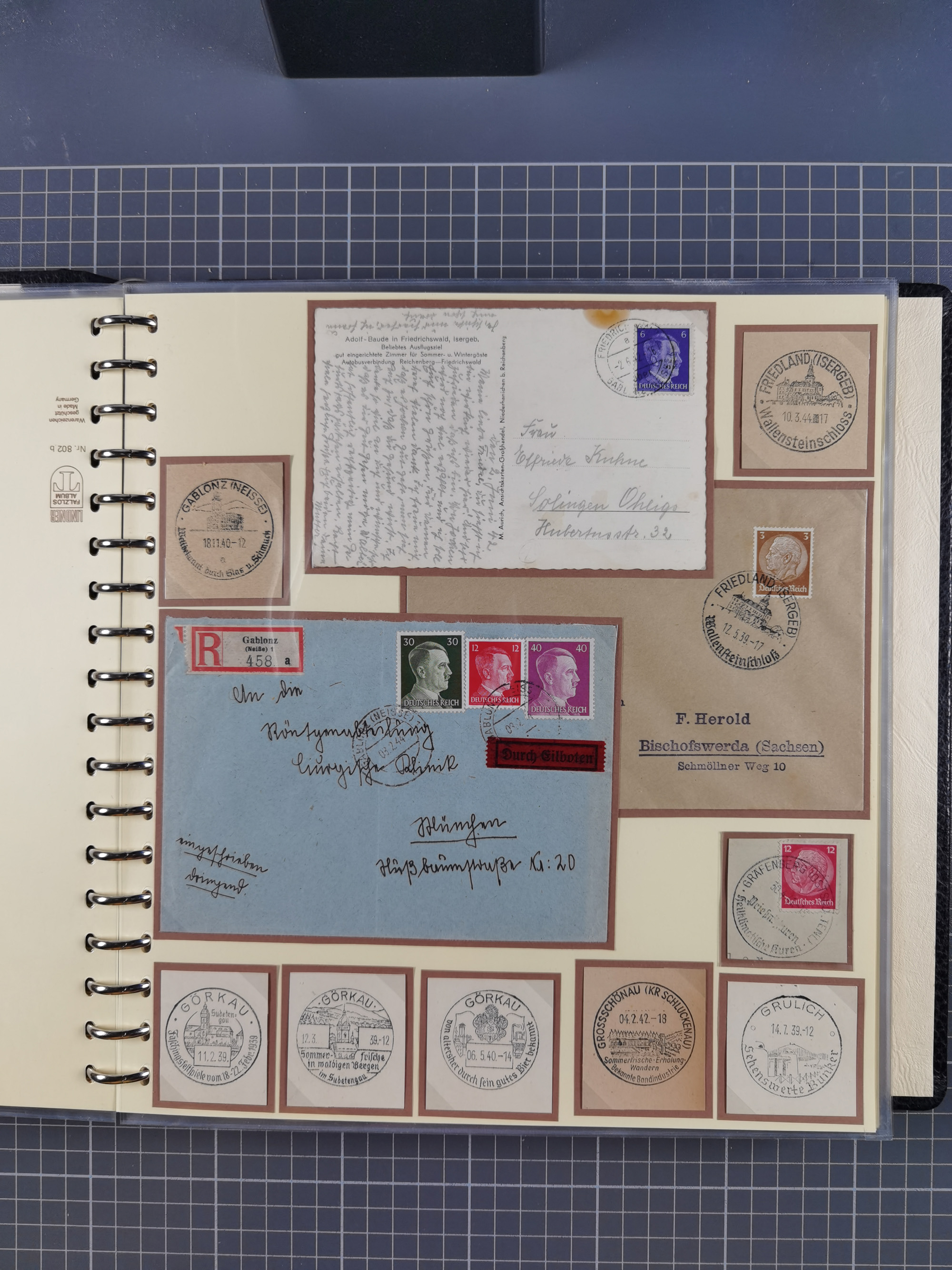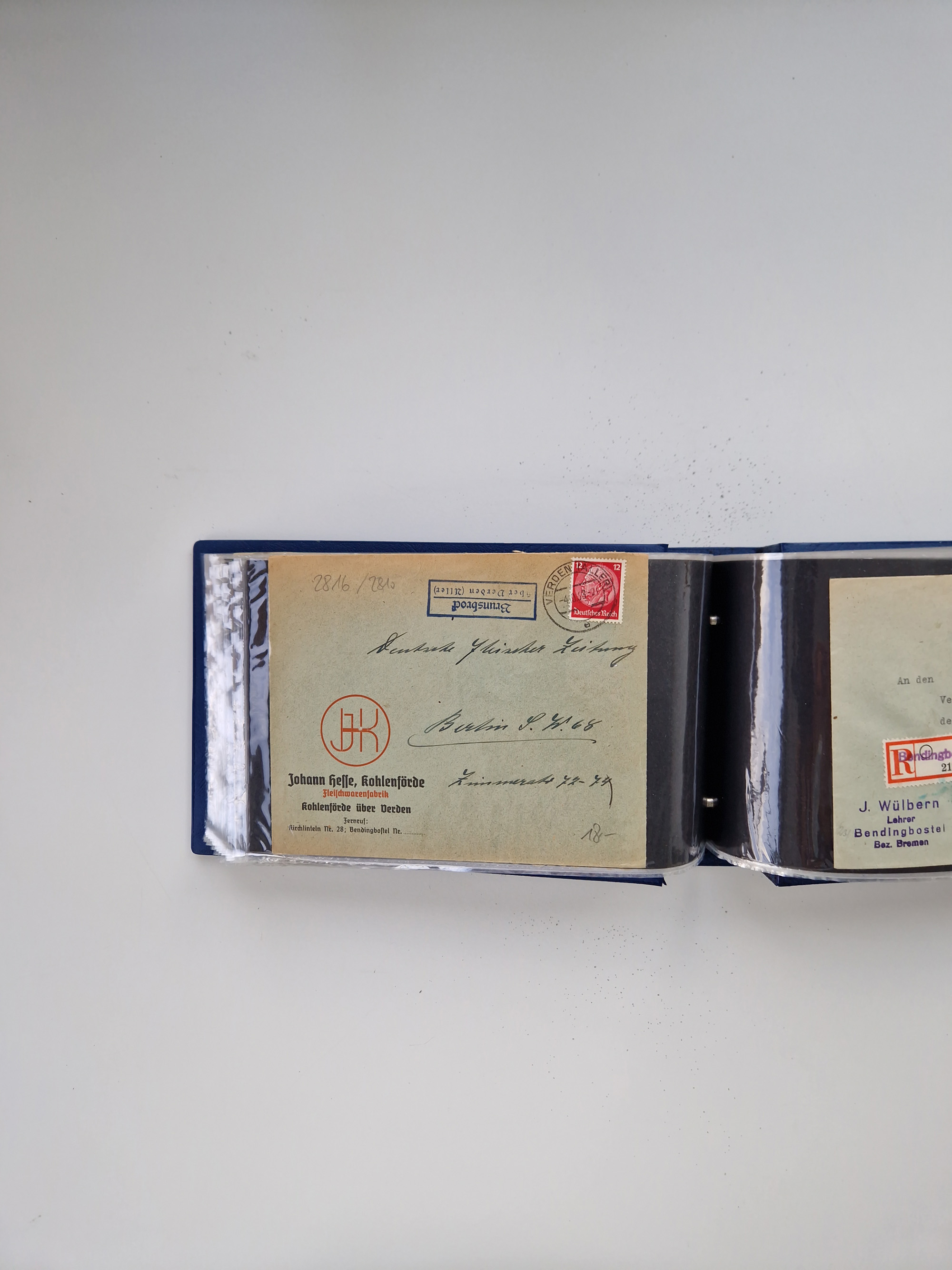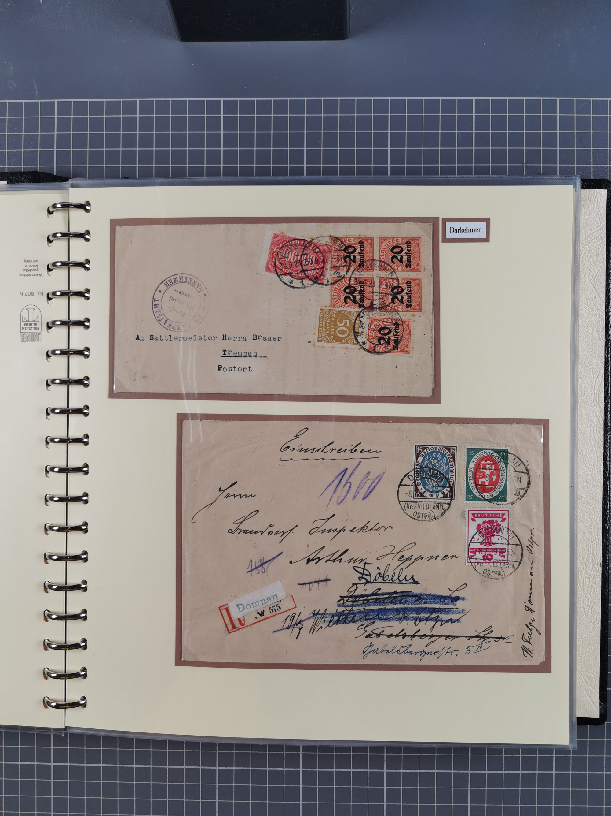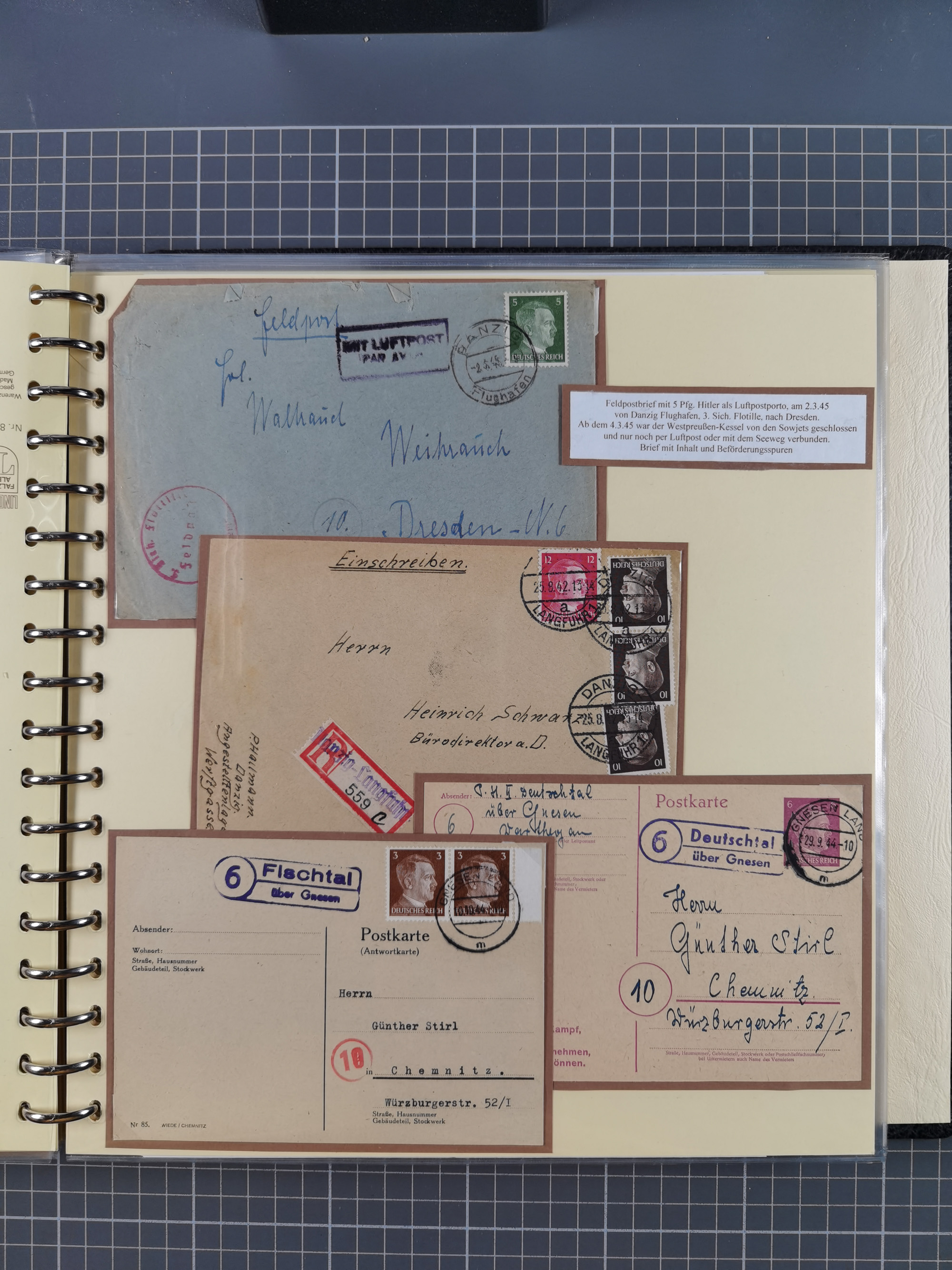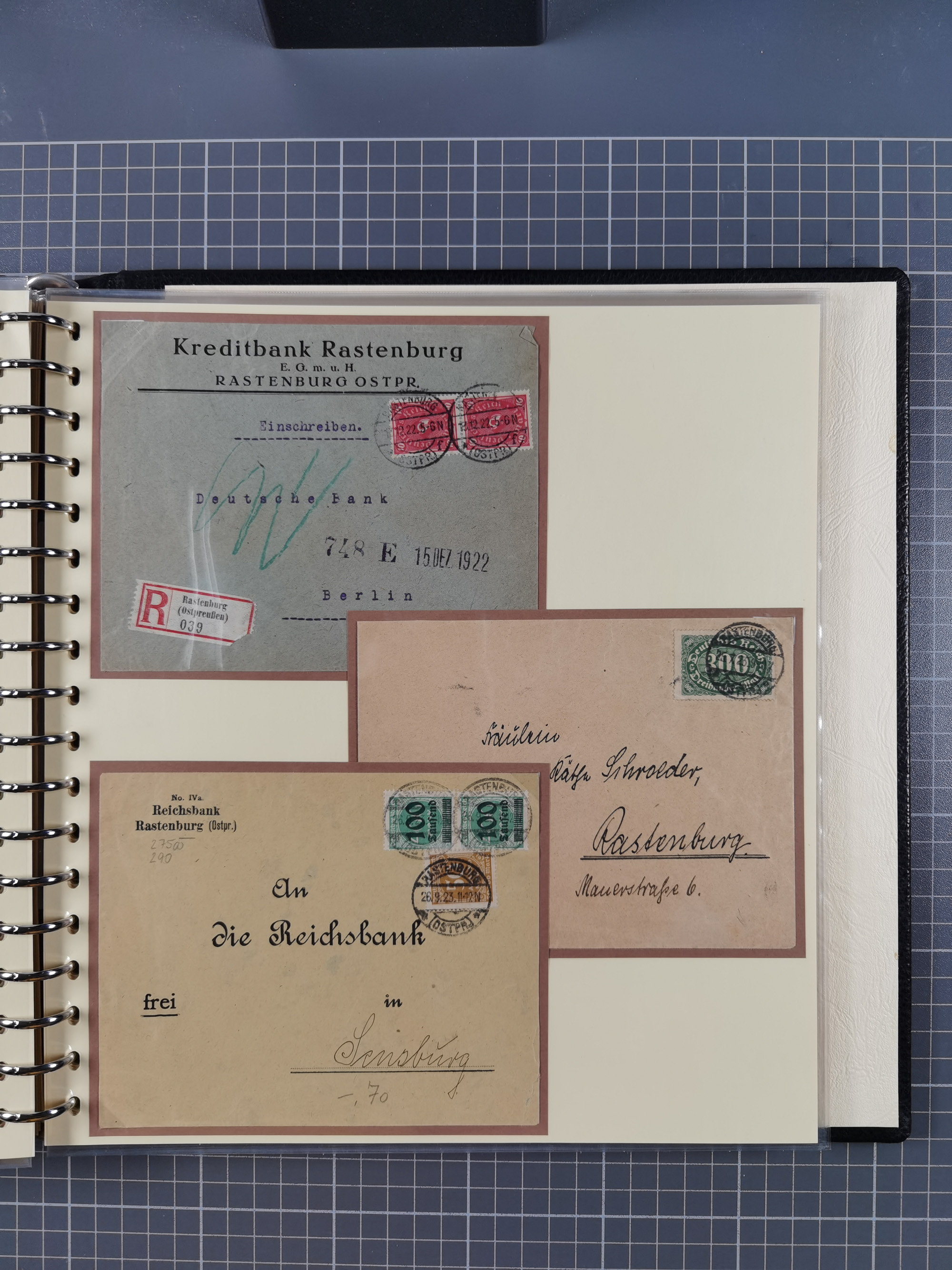 1865/1950 (ca.), Album mit 122 hochwertigen Belegen, diese einzeln vom Einlieferer beschrieben und nach Michel bewertet 15.000 €. Dazu ein Karton mit über 170 Briefen, Karten und Ganzsachen, dabei etliche interessante Belege, meist gute Erhaltung