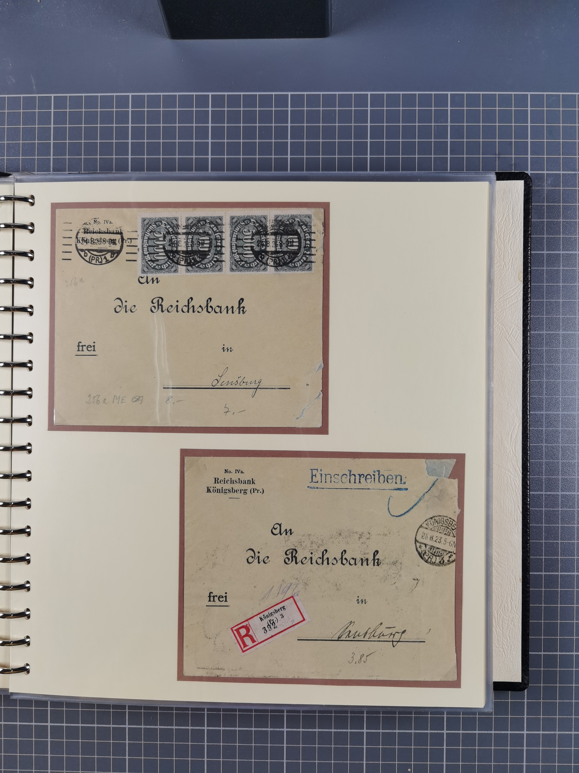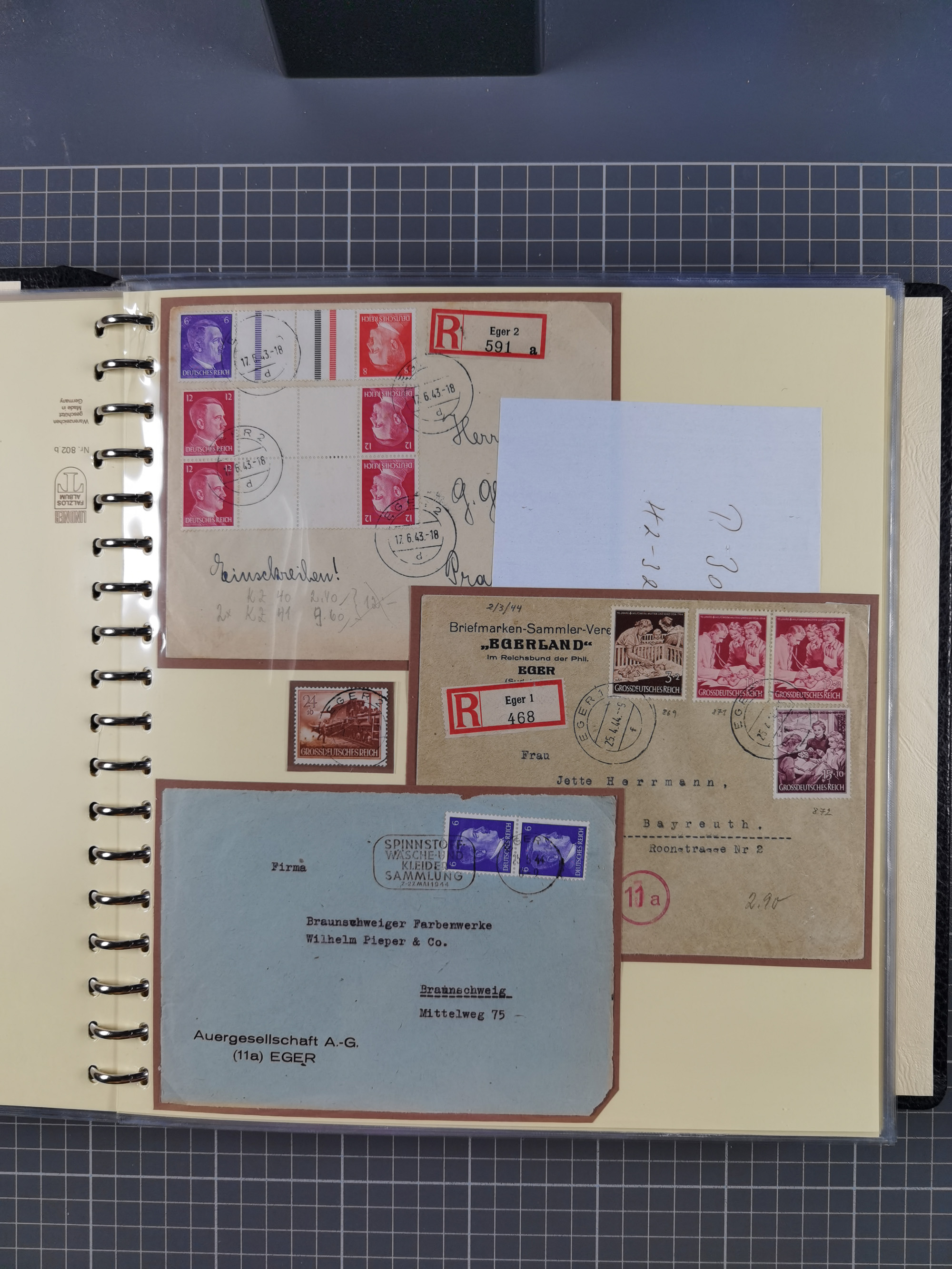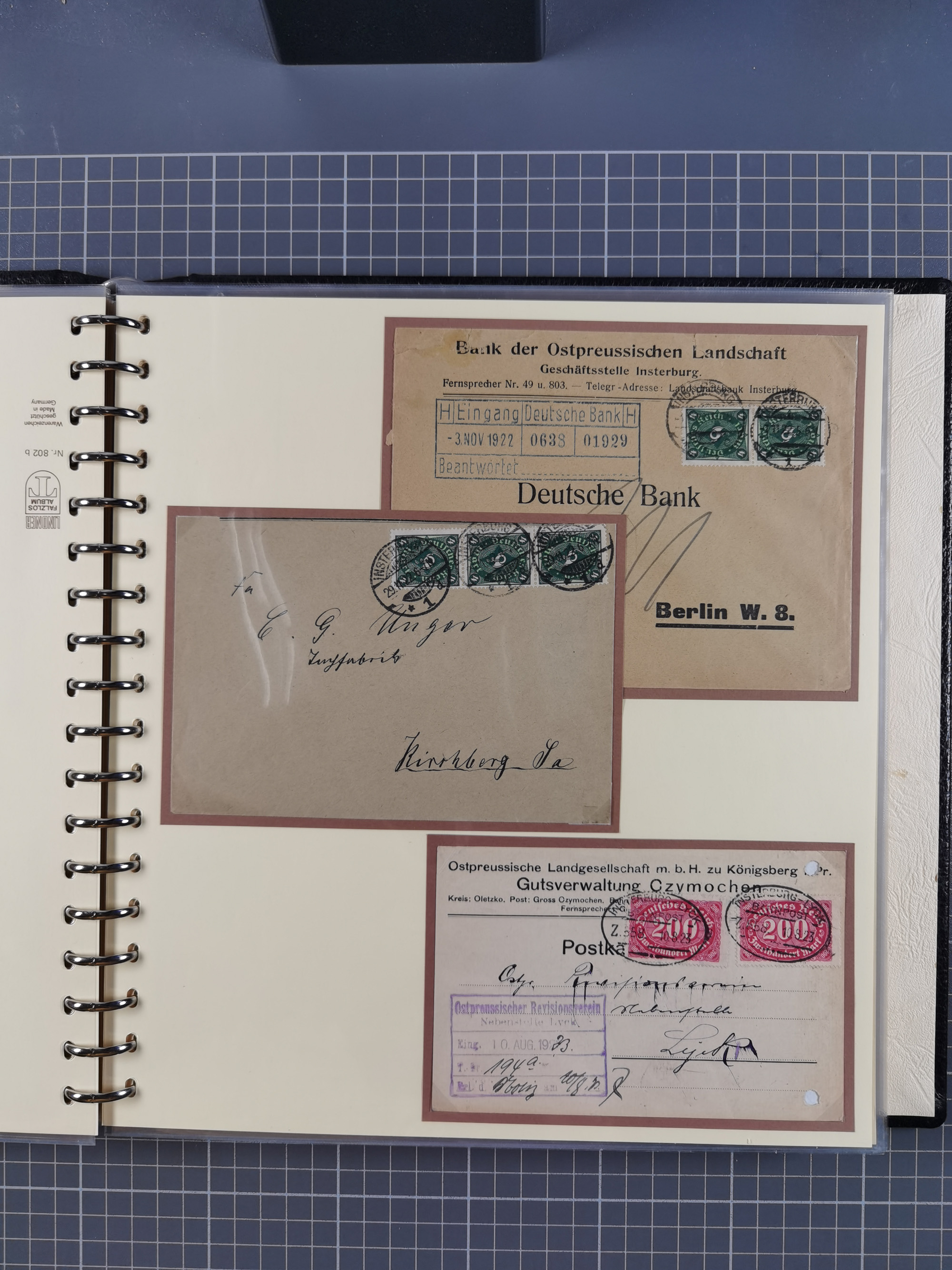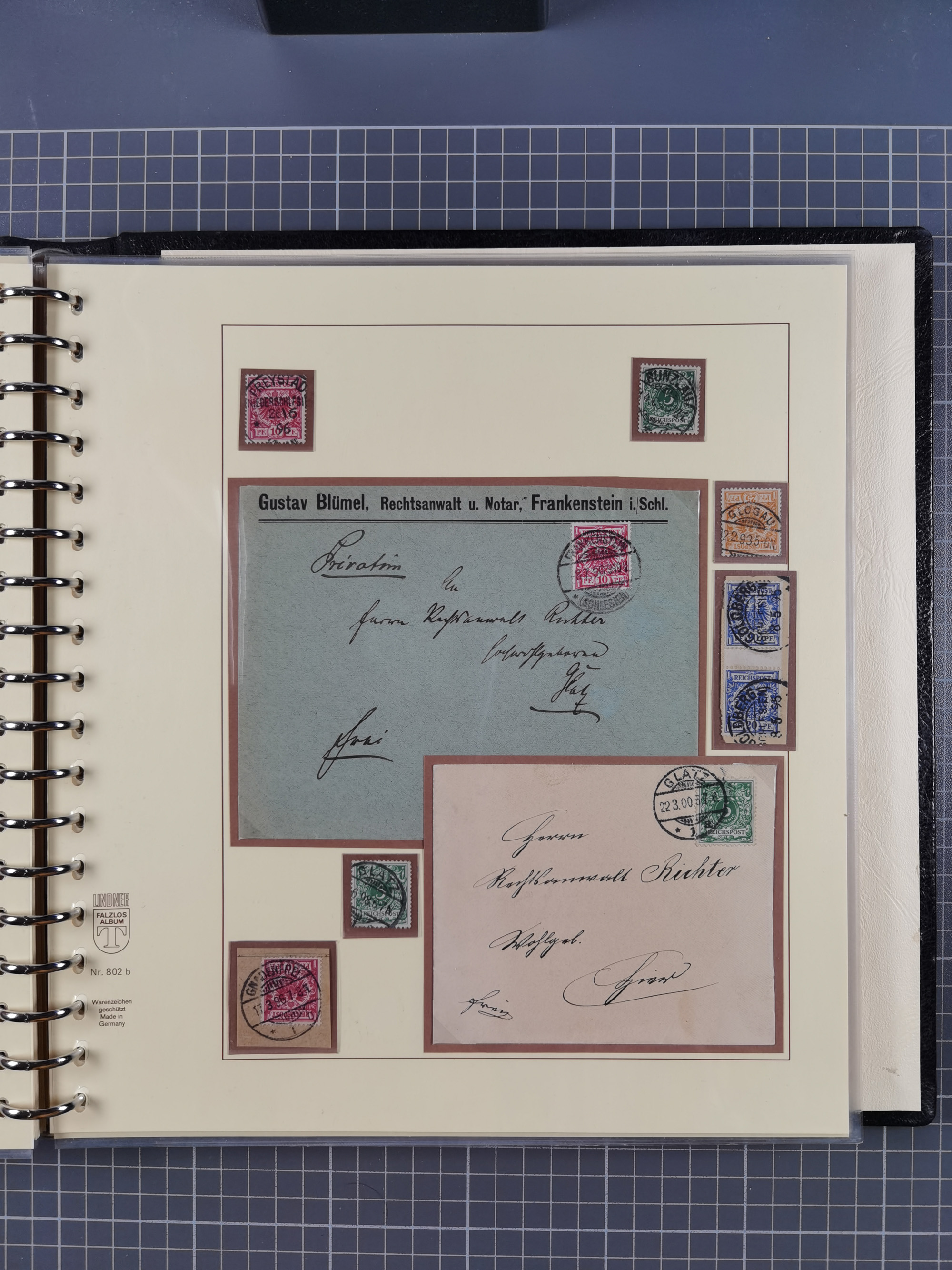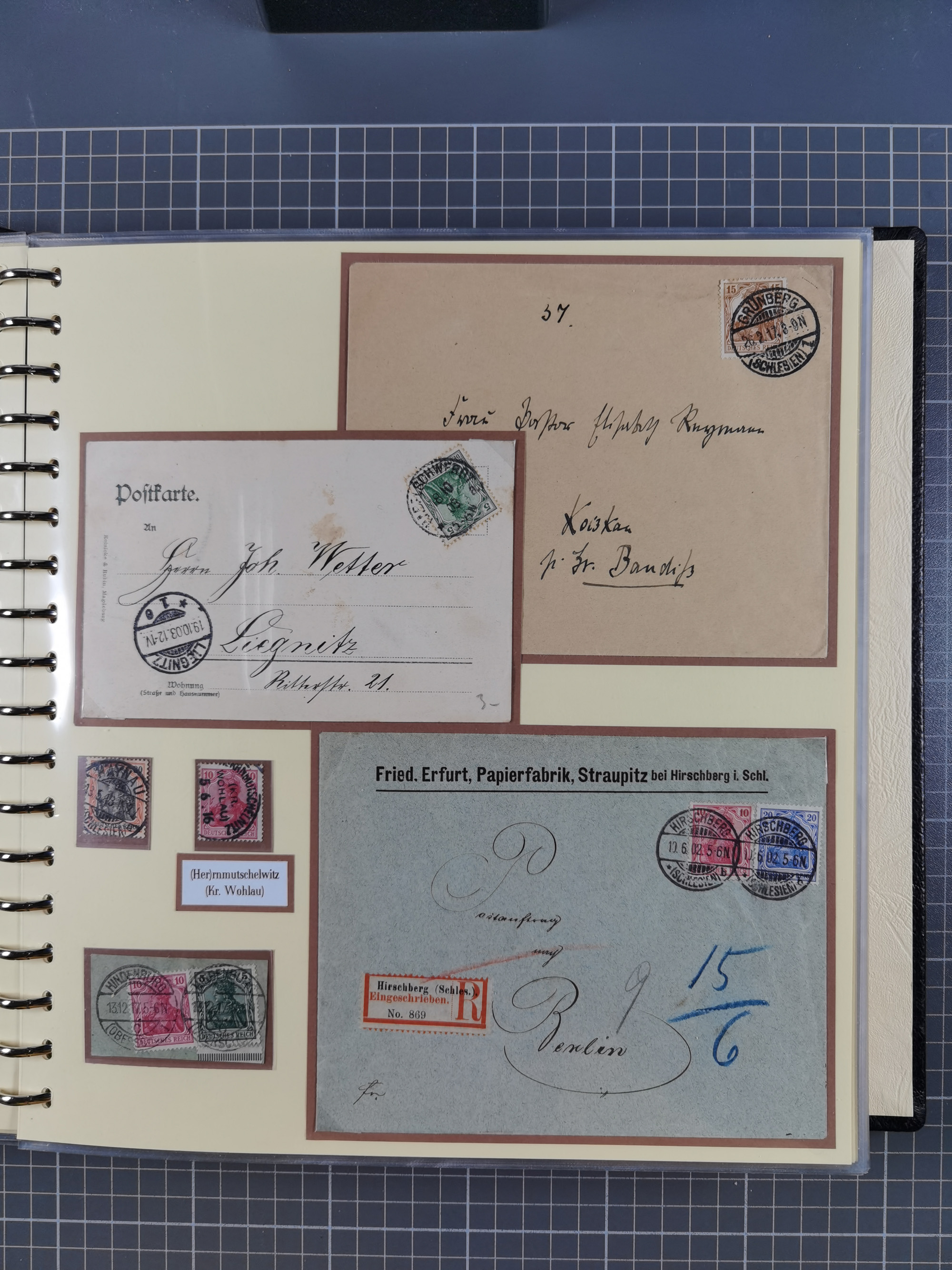 1865/1950 (ca.), Album mit 122 hochwertigen Belegen, diese einzeln vom Einlieferer beschrieben und nach Michel bewertet 15.000 €. Dazu ein Karton mit über 170 Briefen, Karten und Ganzsachen, dabei etliche interessante Belege, meist gute Erhaltung