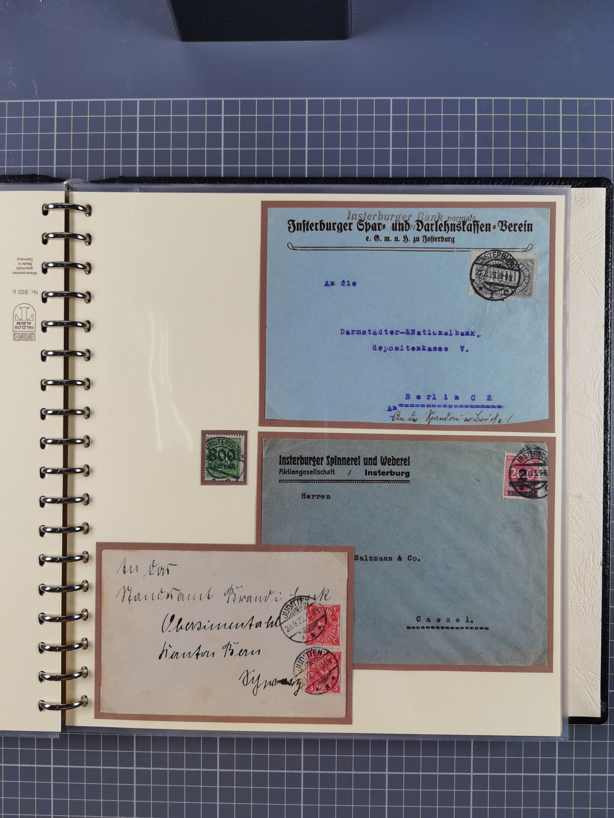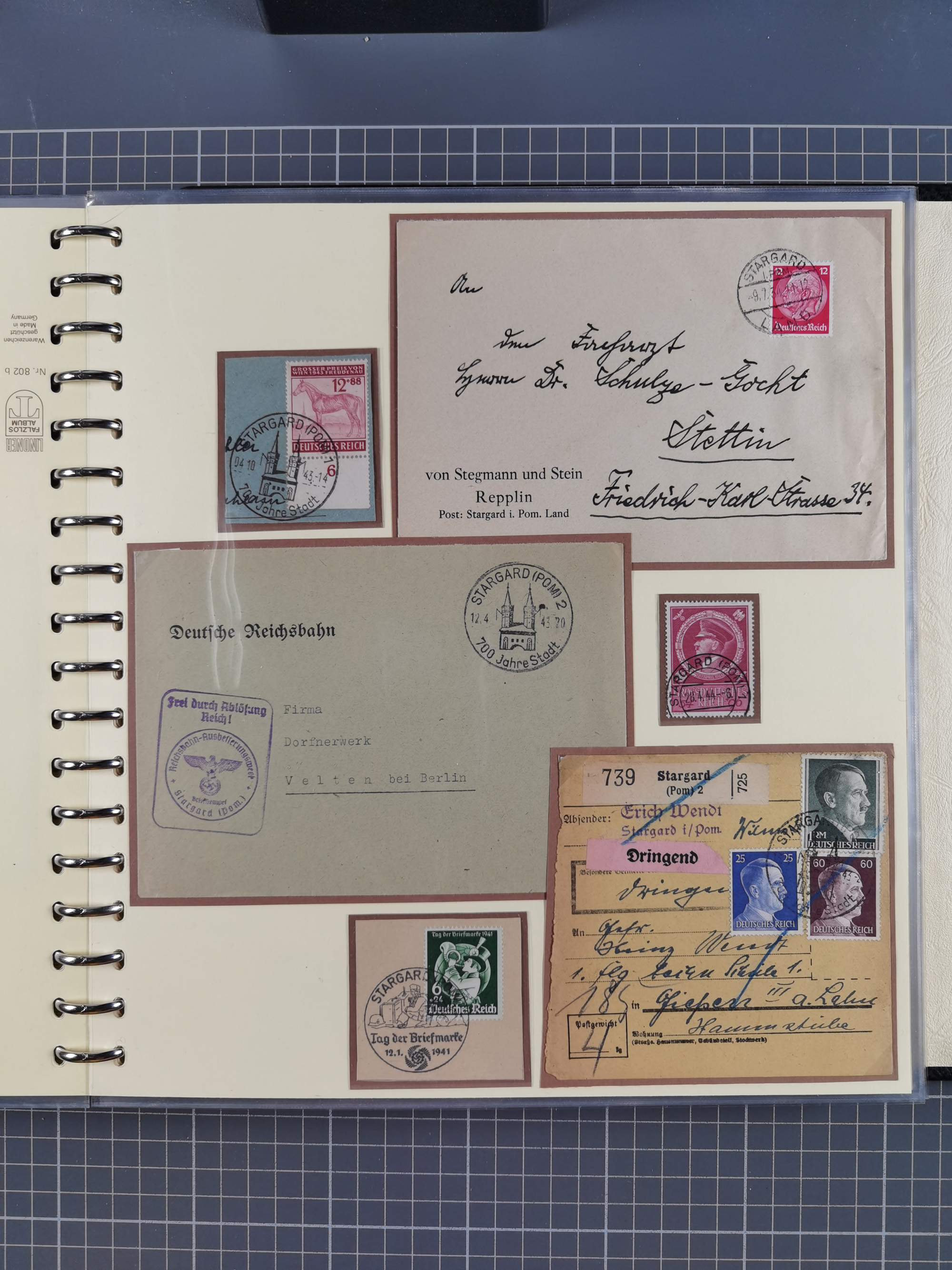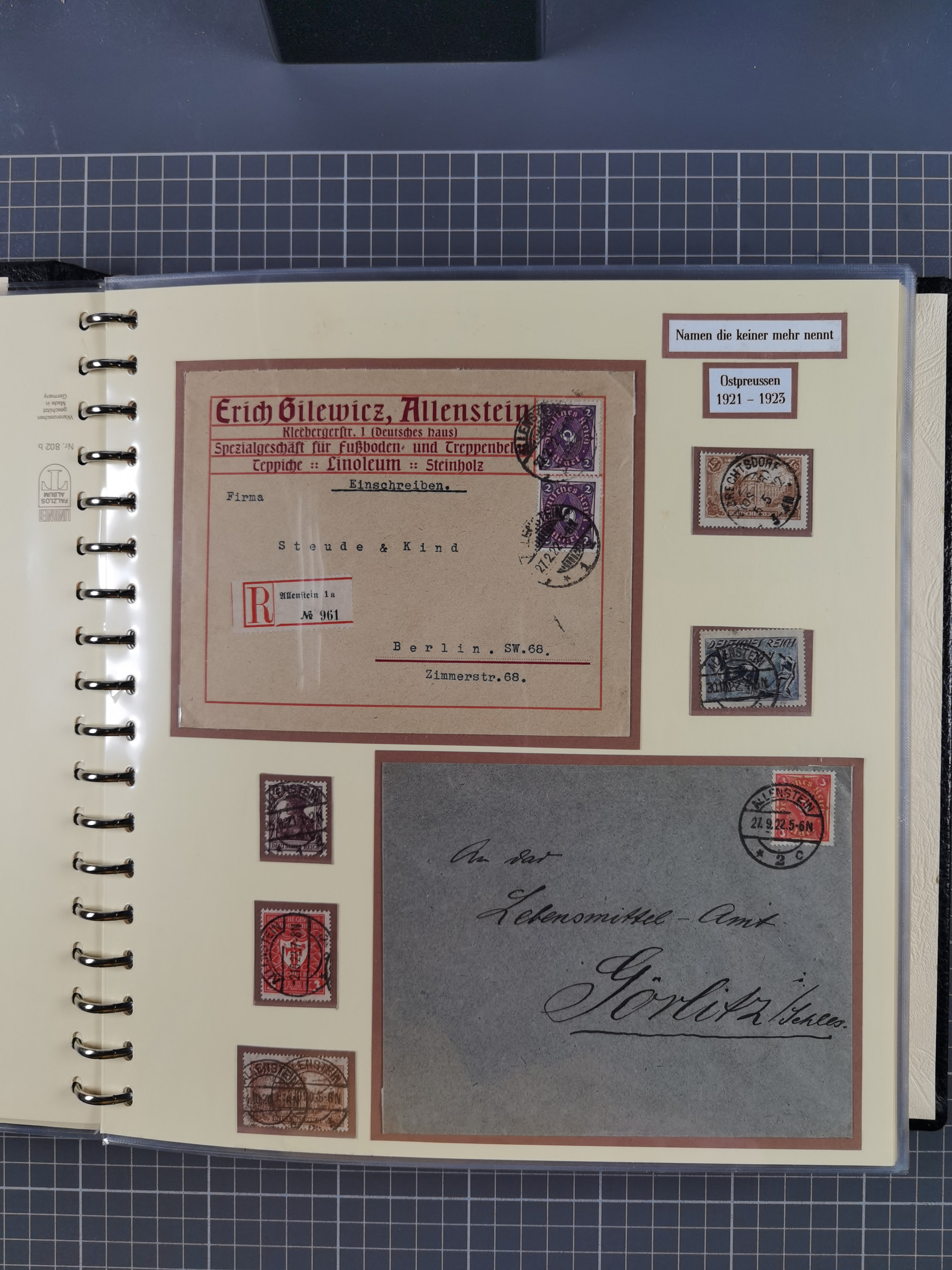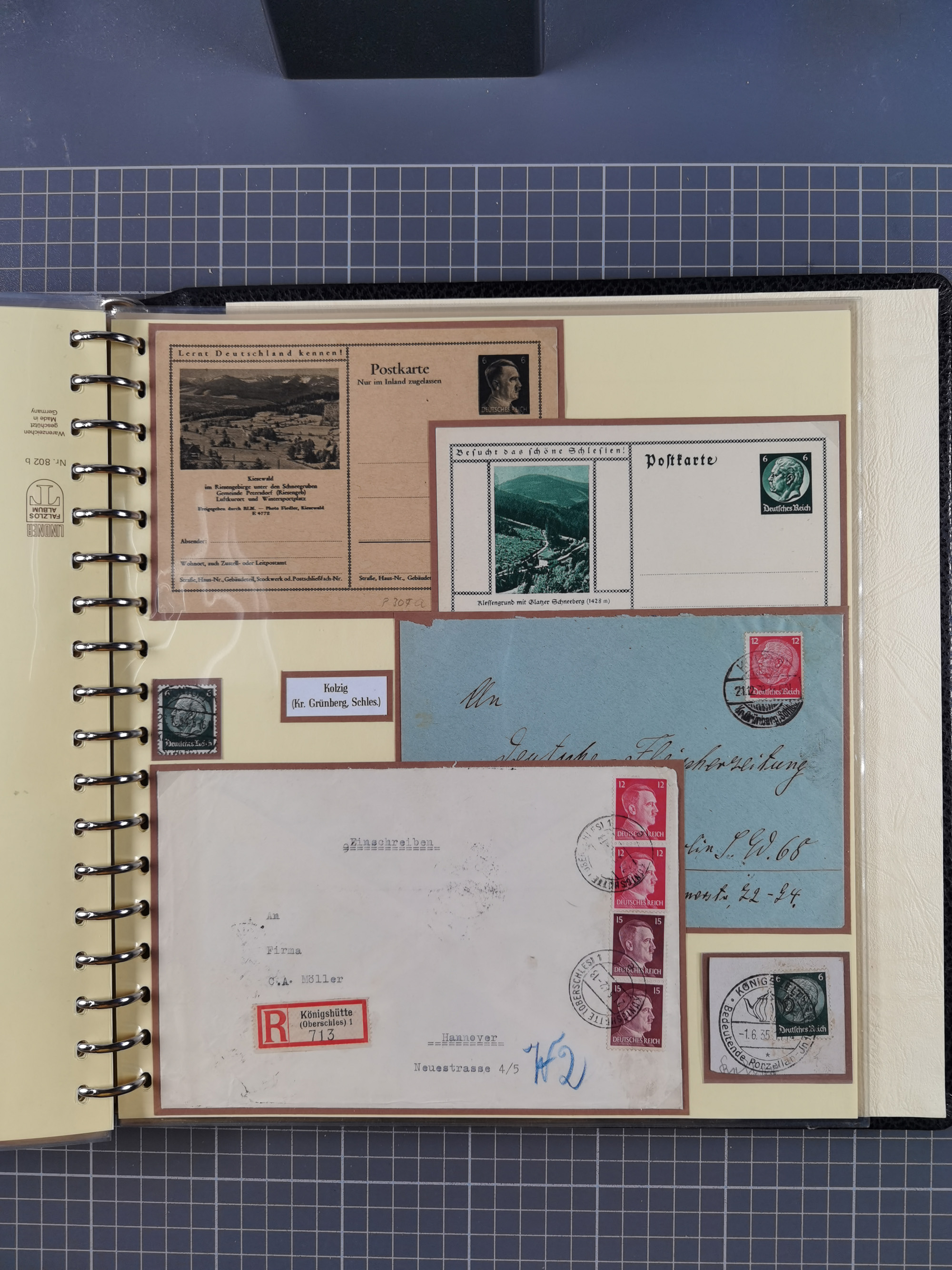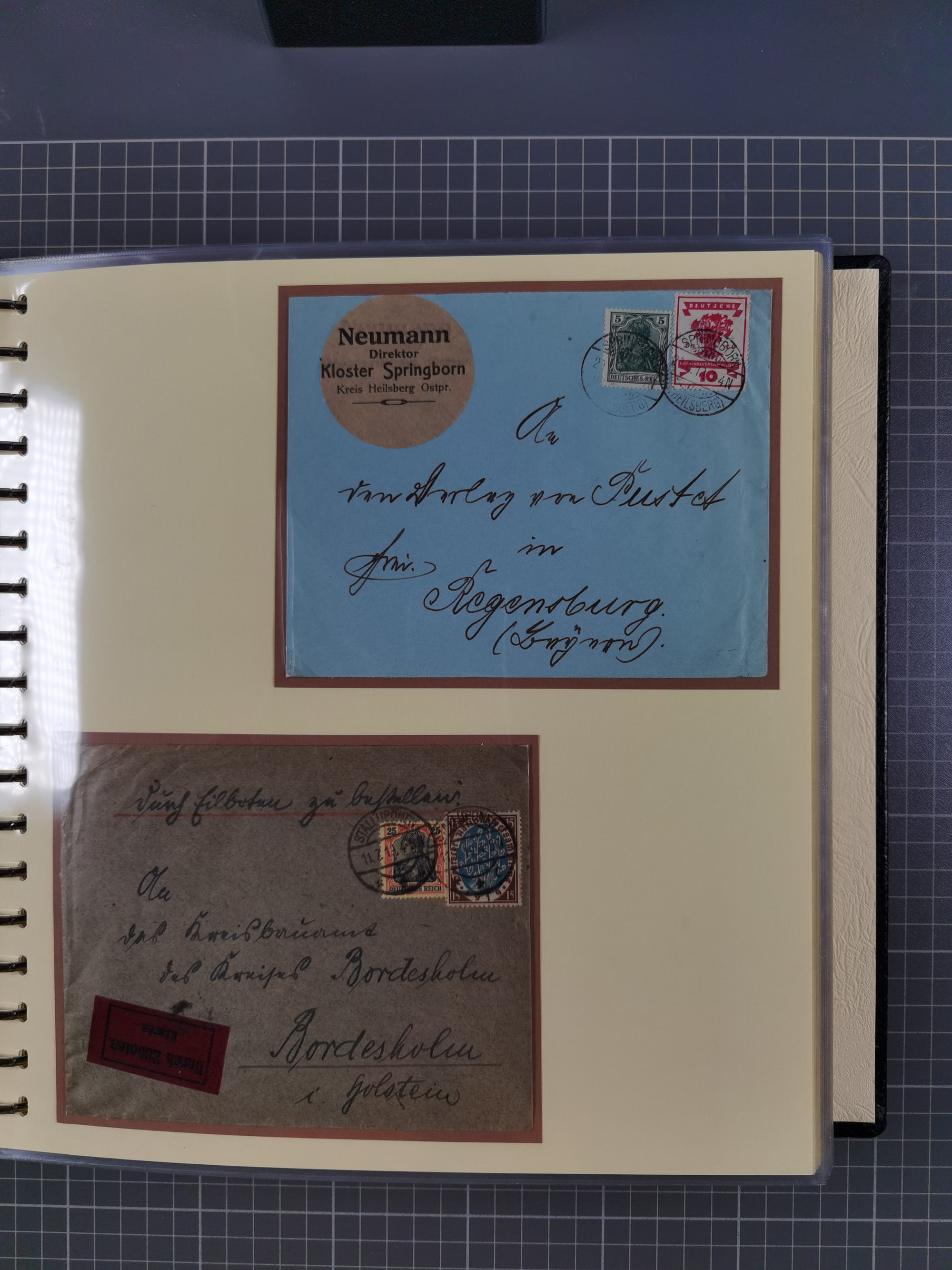 1865/1950 (ca.), Album mit 122 hochwertigen Belegen, diese einzeln vom Einlieferer beschrieben und nach Michel bewertet 15.000 €. Dazu ein Karton mit über 170 Briefen, Karten und Ganzsachen, dabei etliche interessante Belege, meist gute Erhaltung