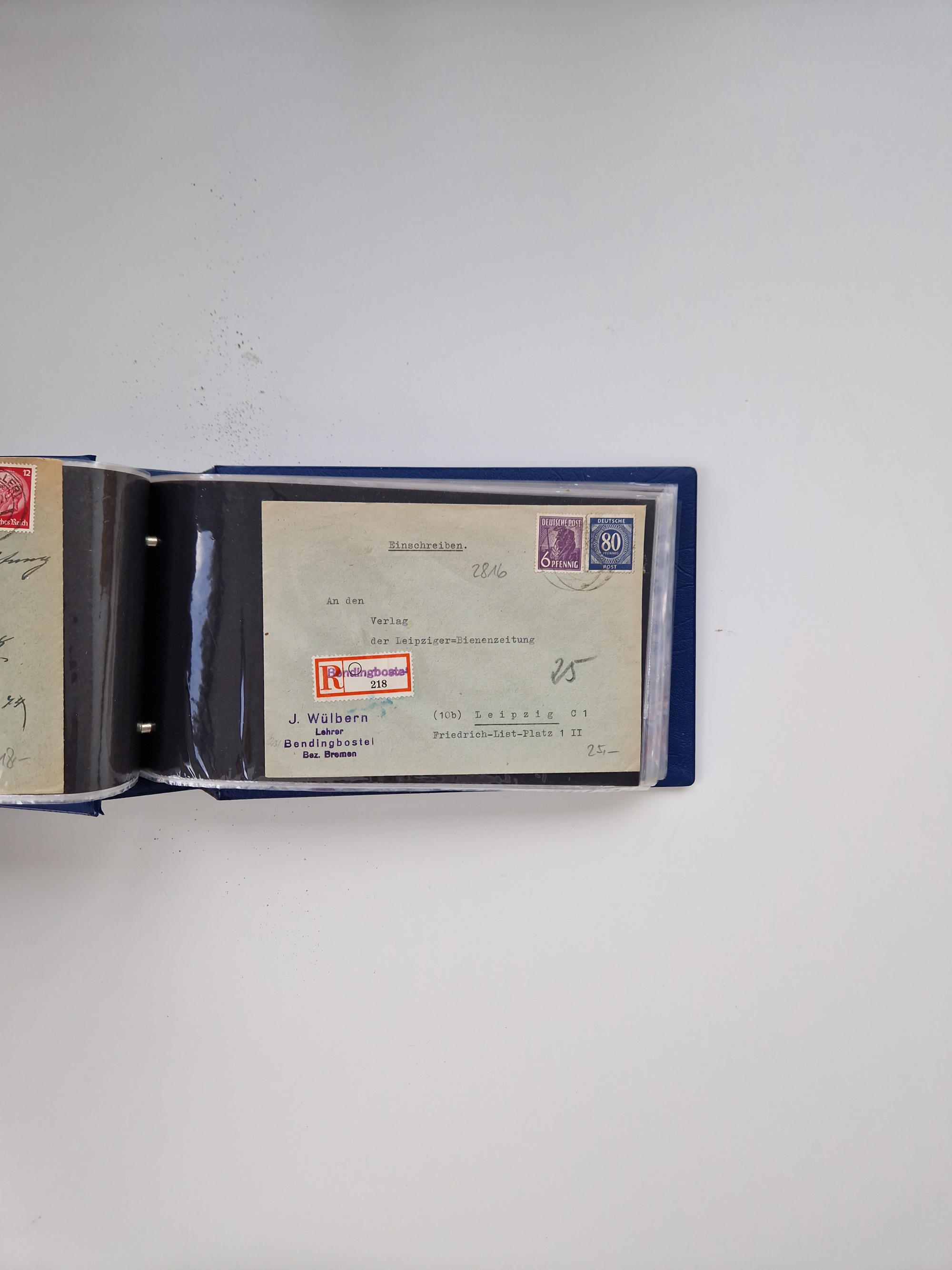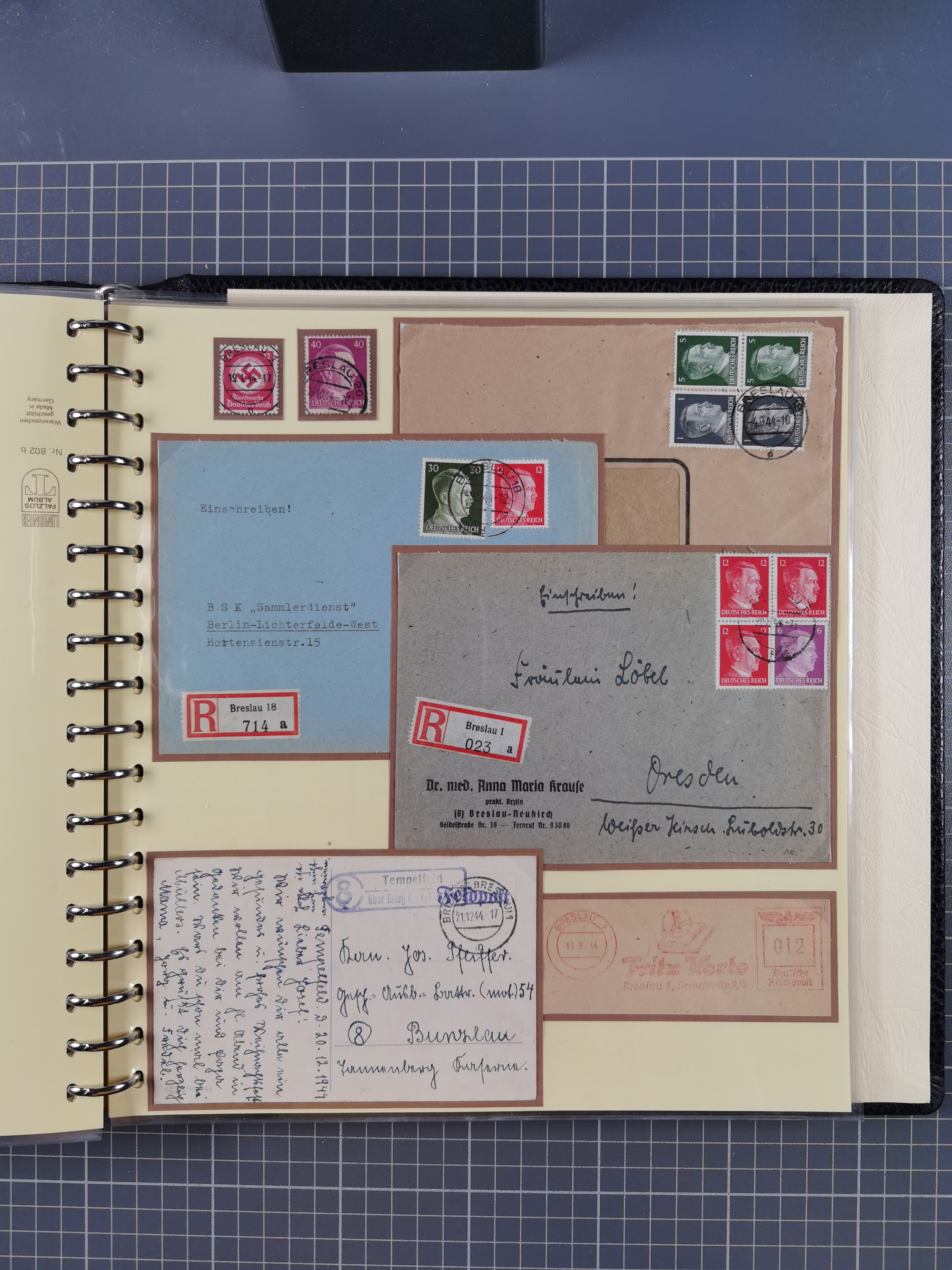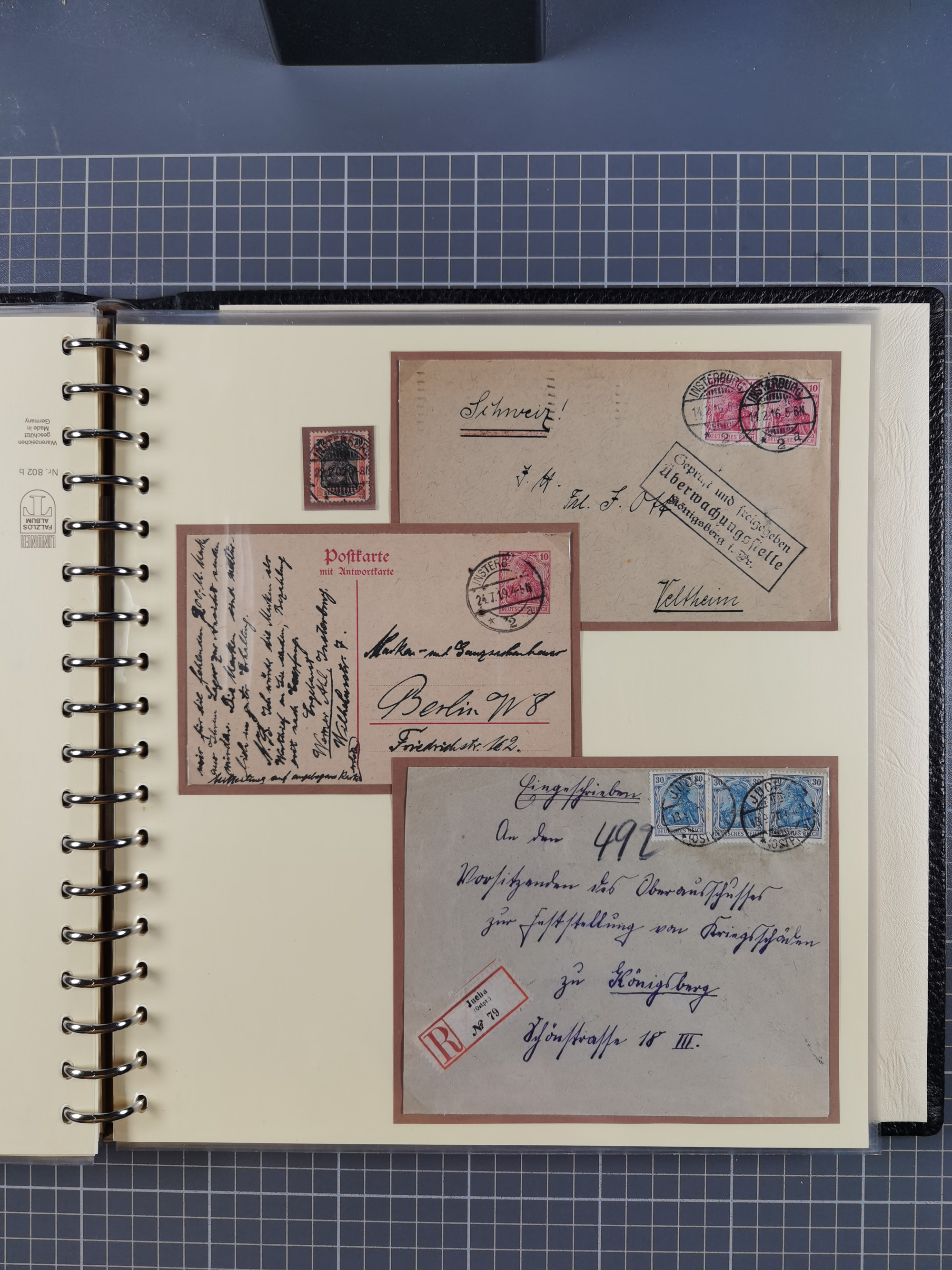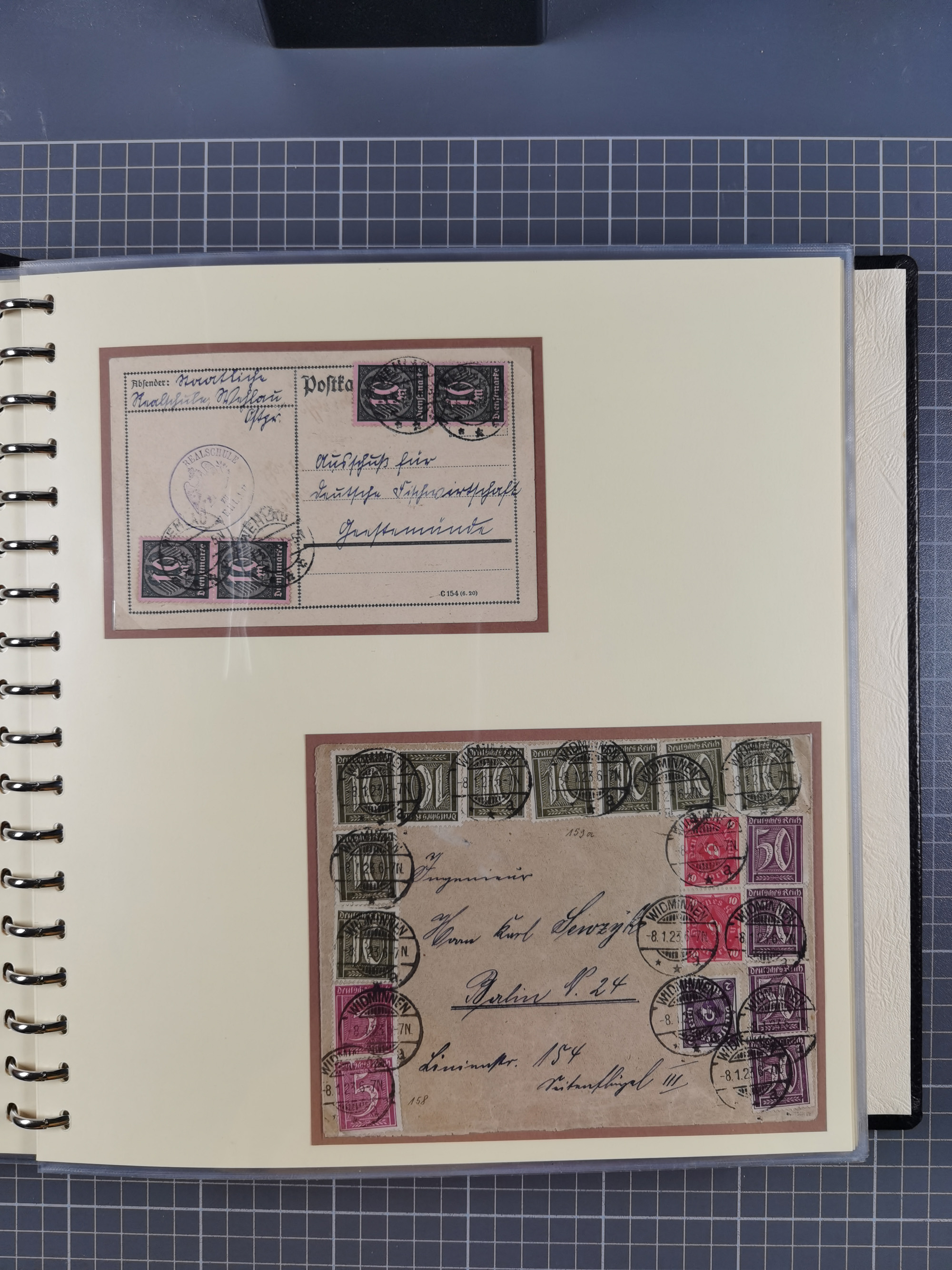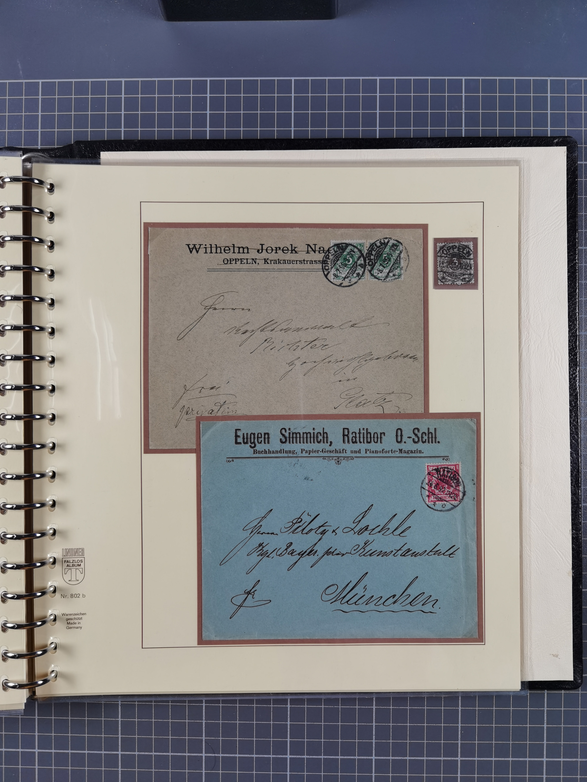 1865/1950 (ca.), Album mit 122 hochwertigen Belegen, diese einzeln vom Einlieferer beschrieben und nach Michel bewertet 15.000 €. Dazu ein Karton mit über 170 Briefen, Karten und Ganzsachen, dabei etliche interessante Belege, meist gute Erhaltung