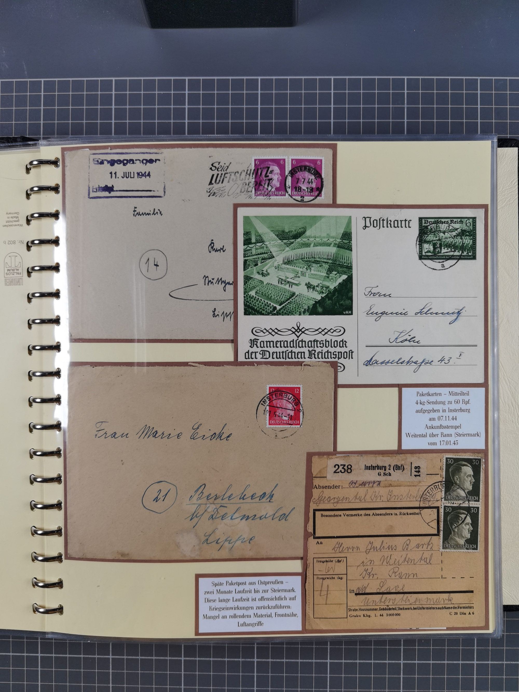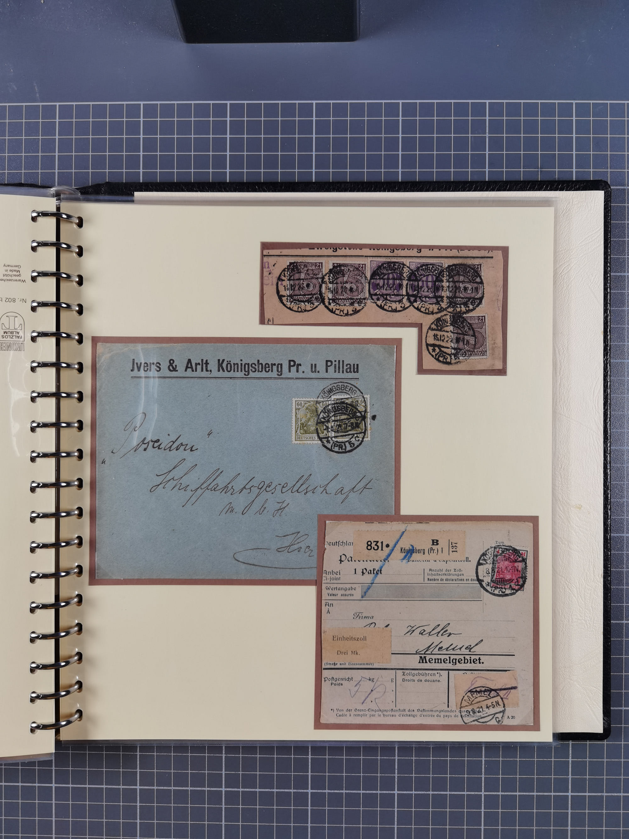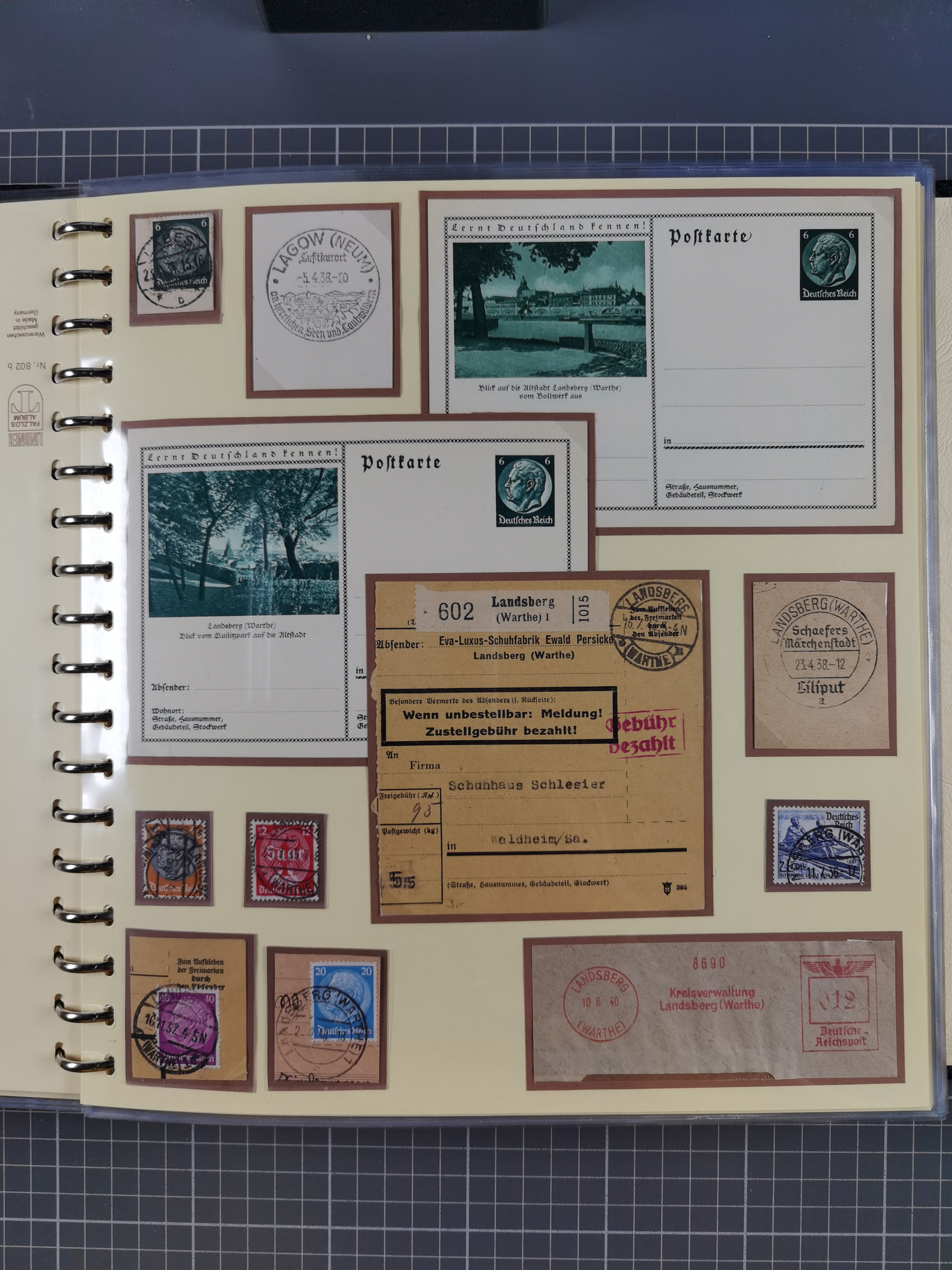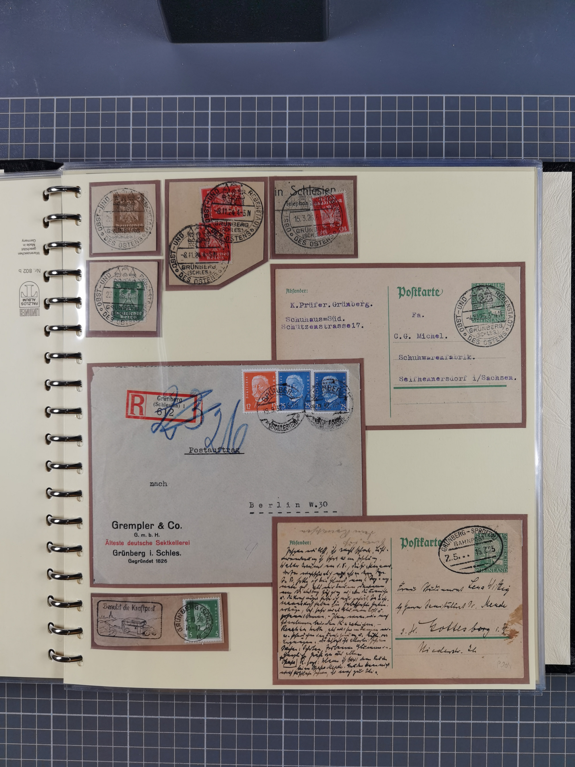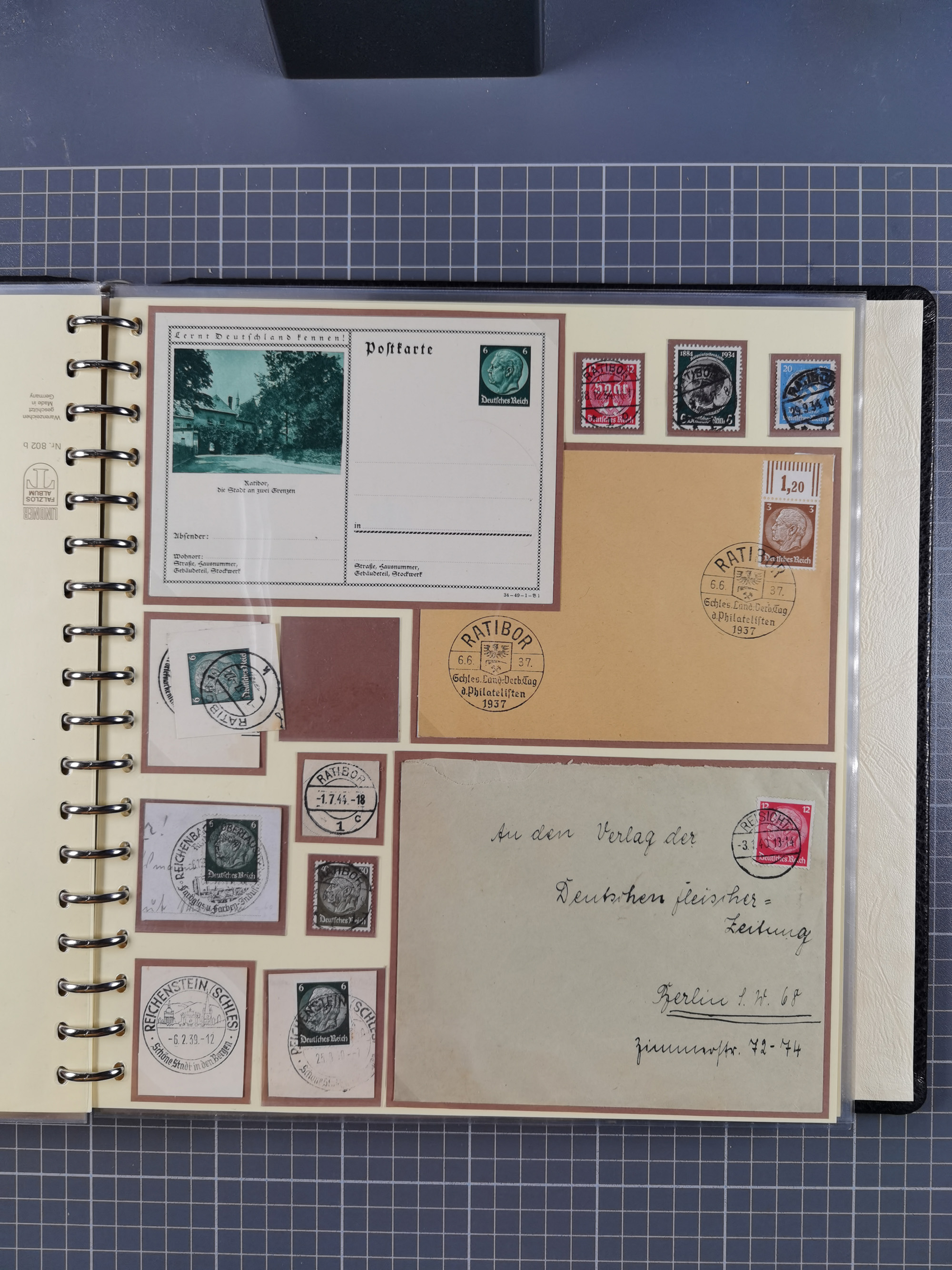 1865/1950 (ca.), Album mit 122 hochwertigen Belegen, diese einzeln vom Einlieferer beschrieben und nach Michel bewertet 15.000 €. Dazu ein Karton mit über 170 Briefen, Karten und Ganzsachen, dabei etliche interessante Belege, meist gute Erhaltung