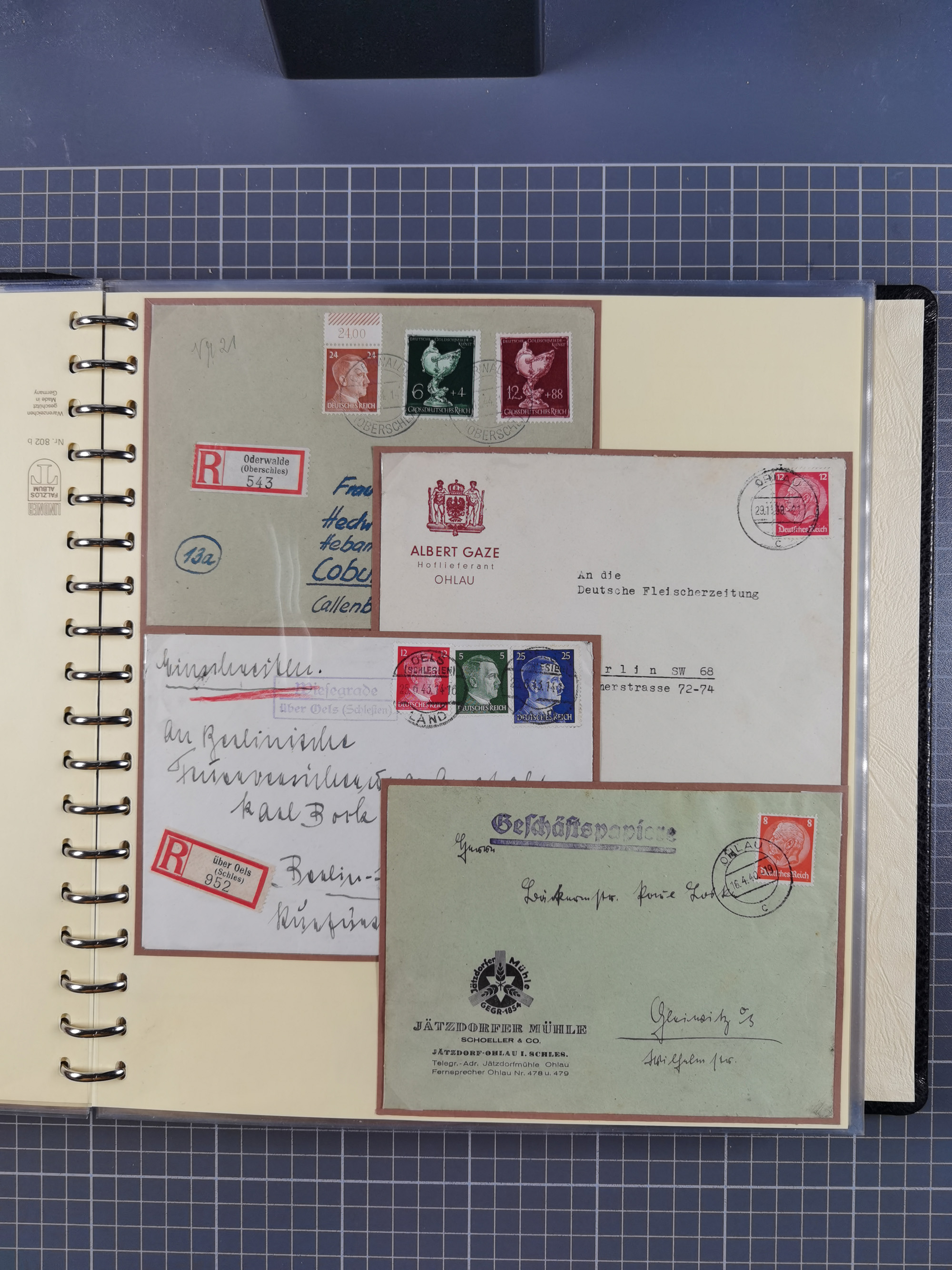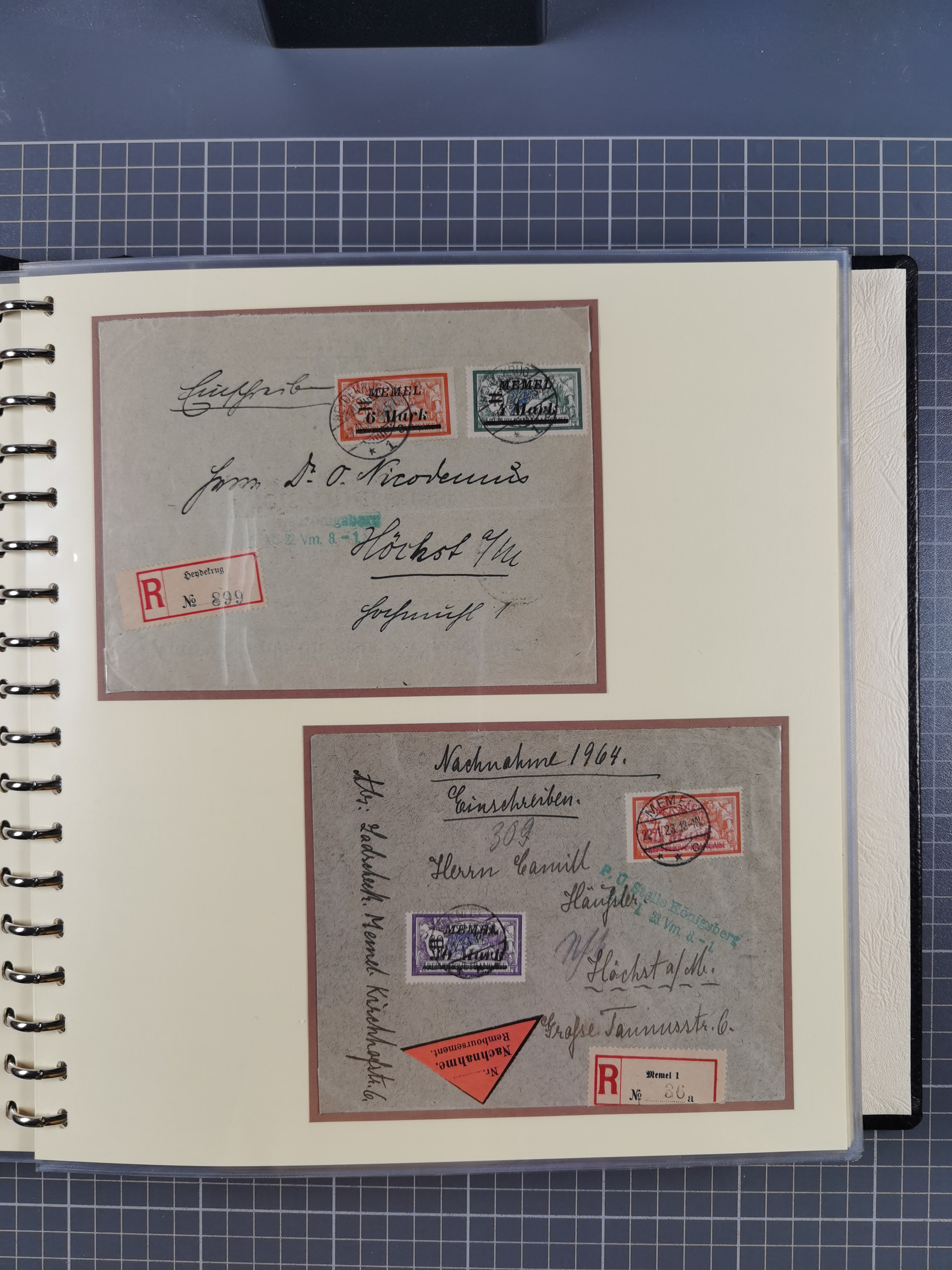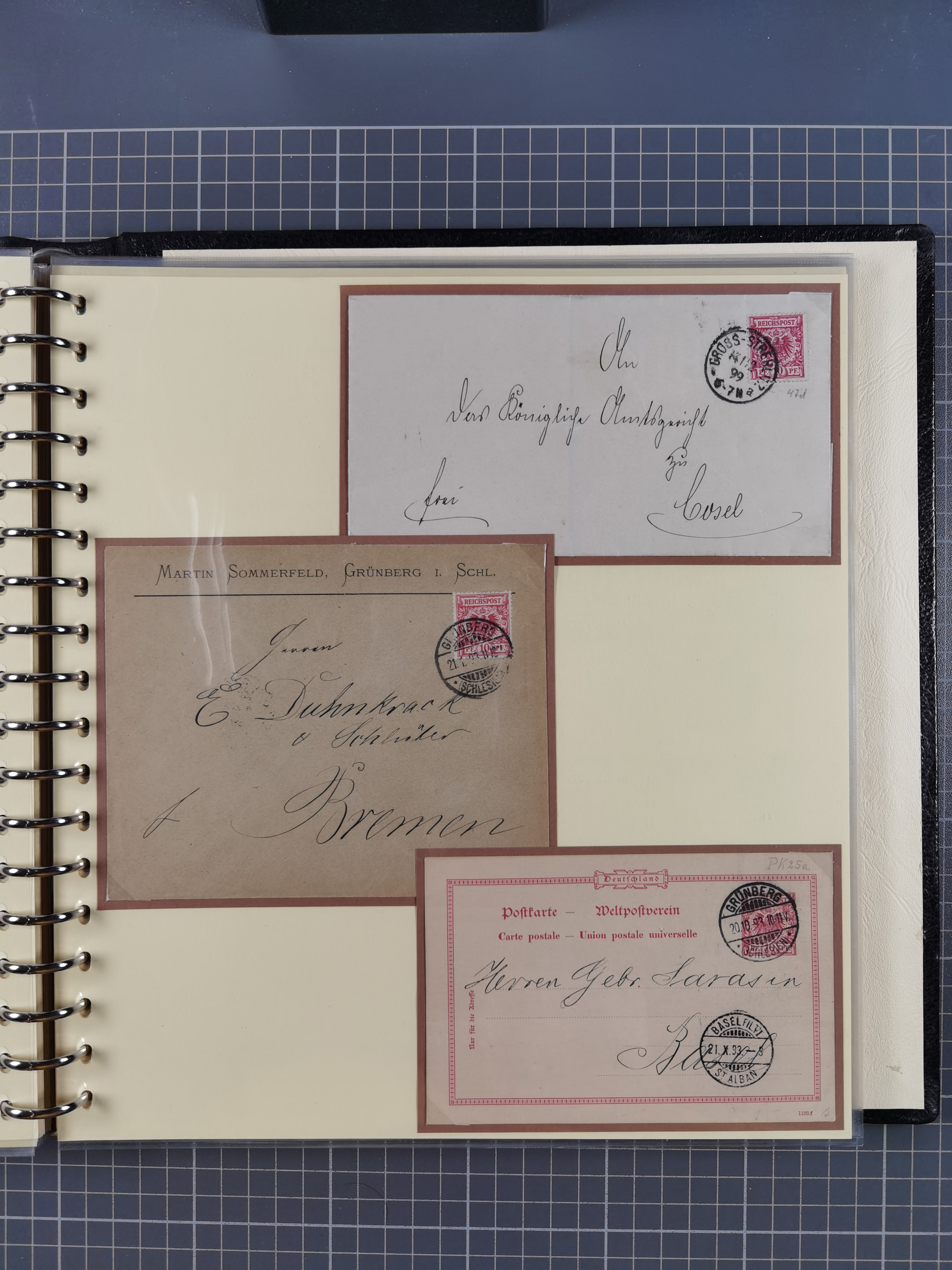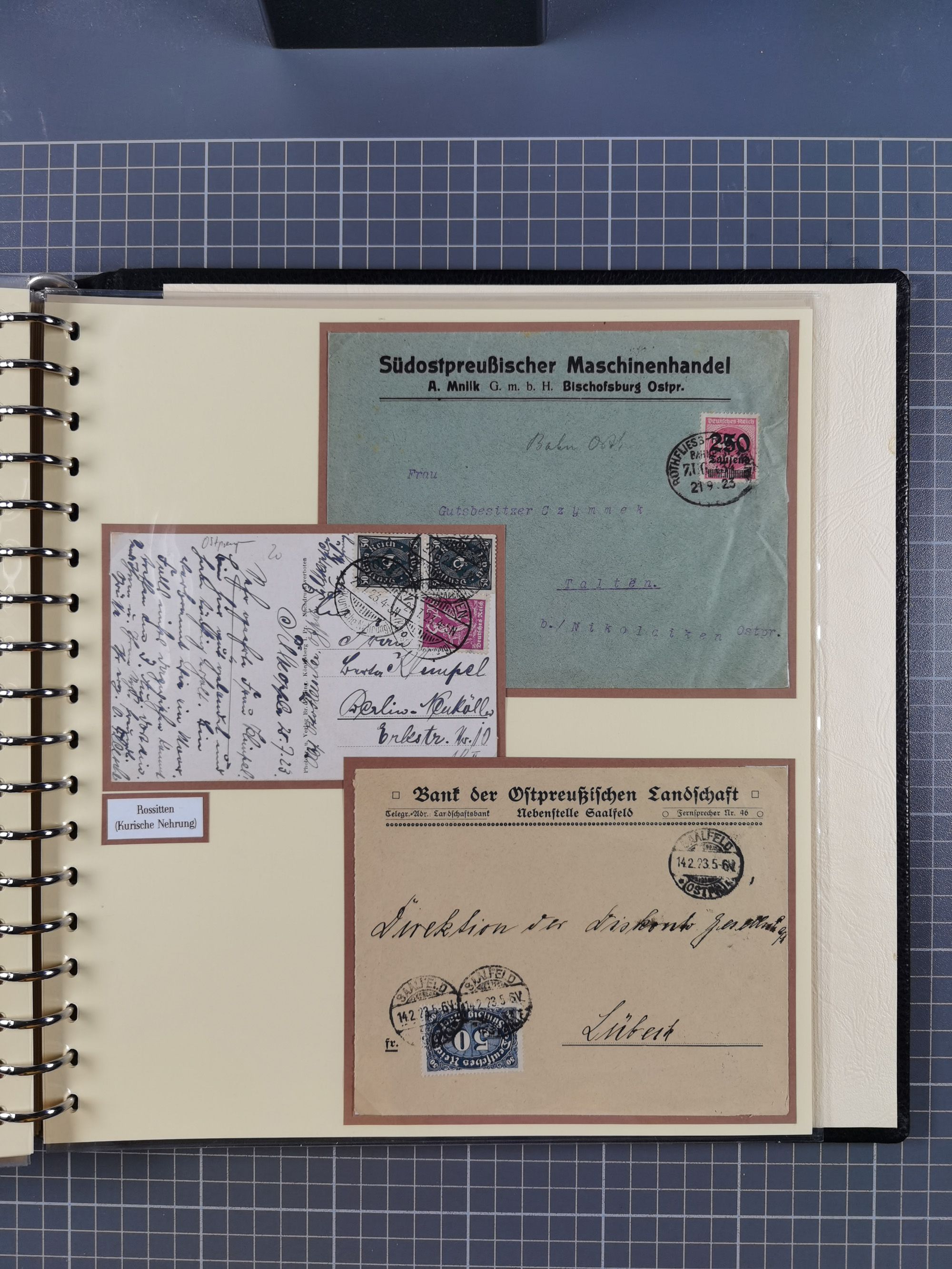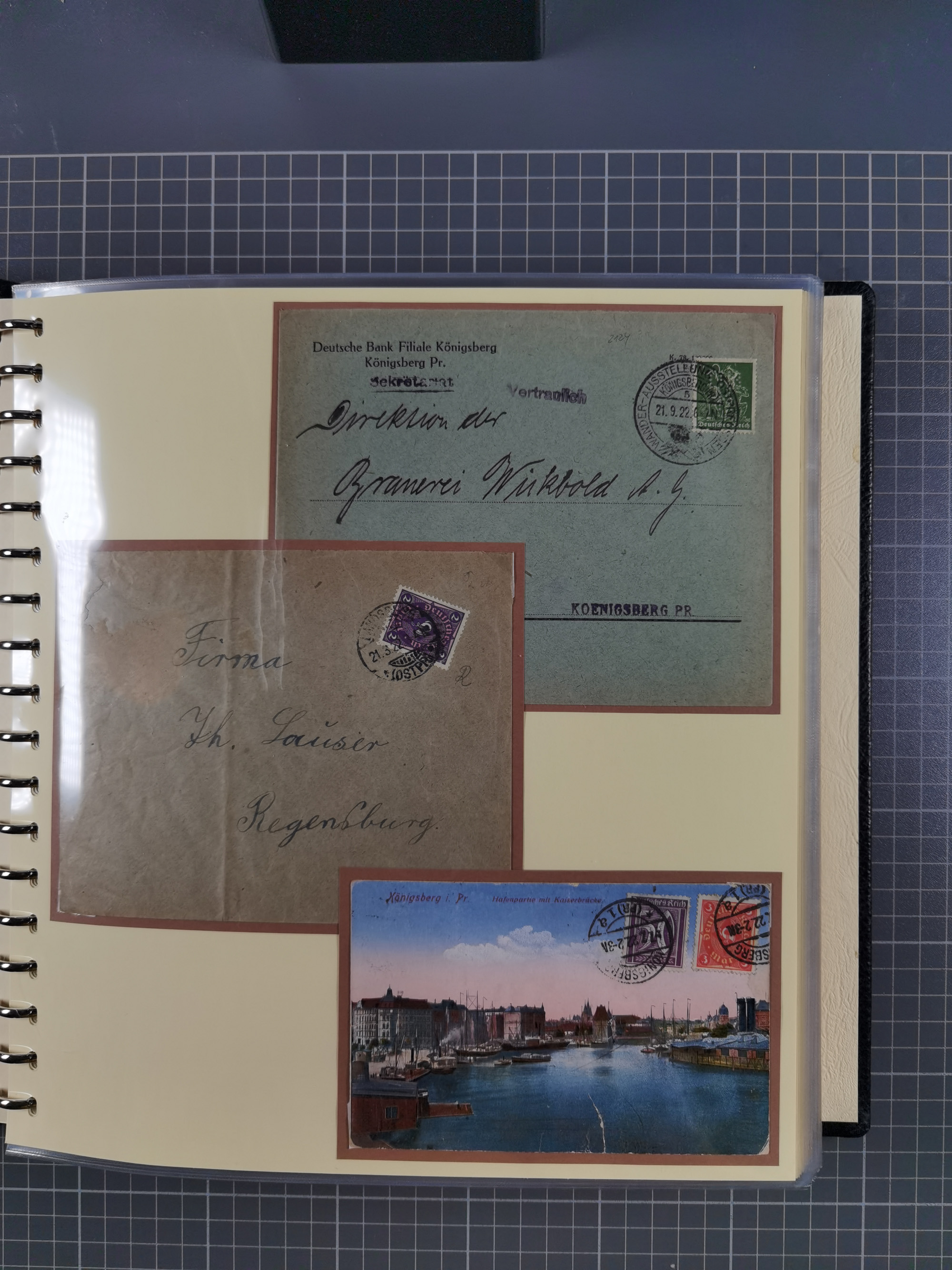 1865/1950 (ca.), Album mit 122 hochwertigen Belegen, diese einzeln vom Einlieferer beschrieben und nach Michel bewertet 15.000 €. Dazu ein Karton mit über 170 Briefen, Karten und Ganzsachen, dabei etliche interessante Belege, meist gute Erhaltung