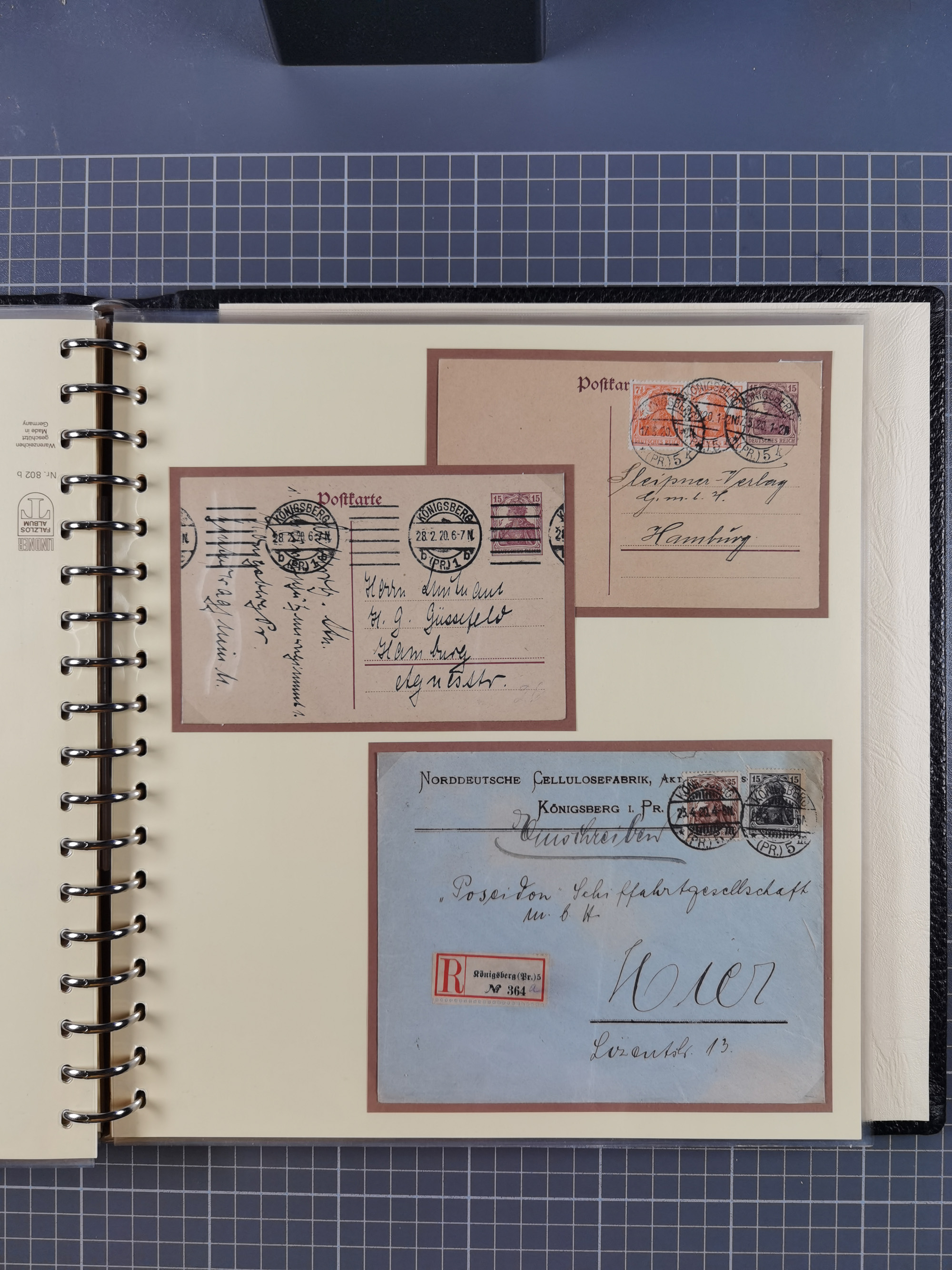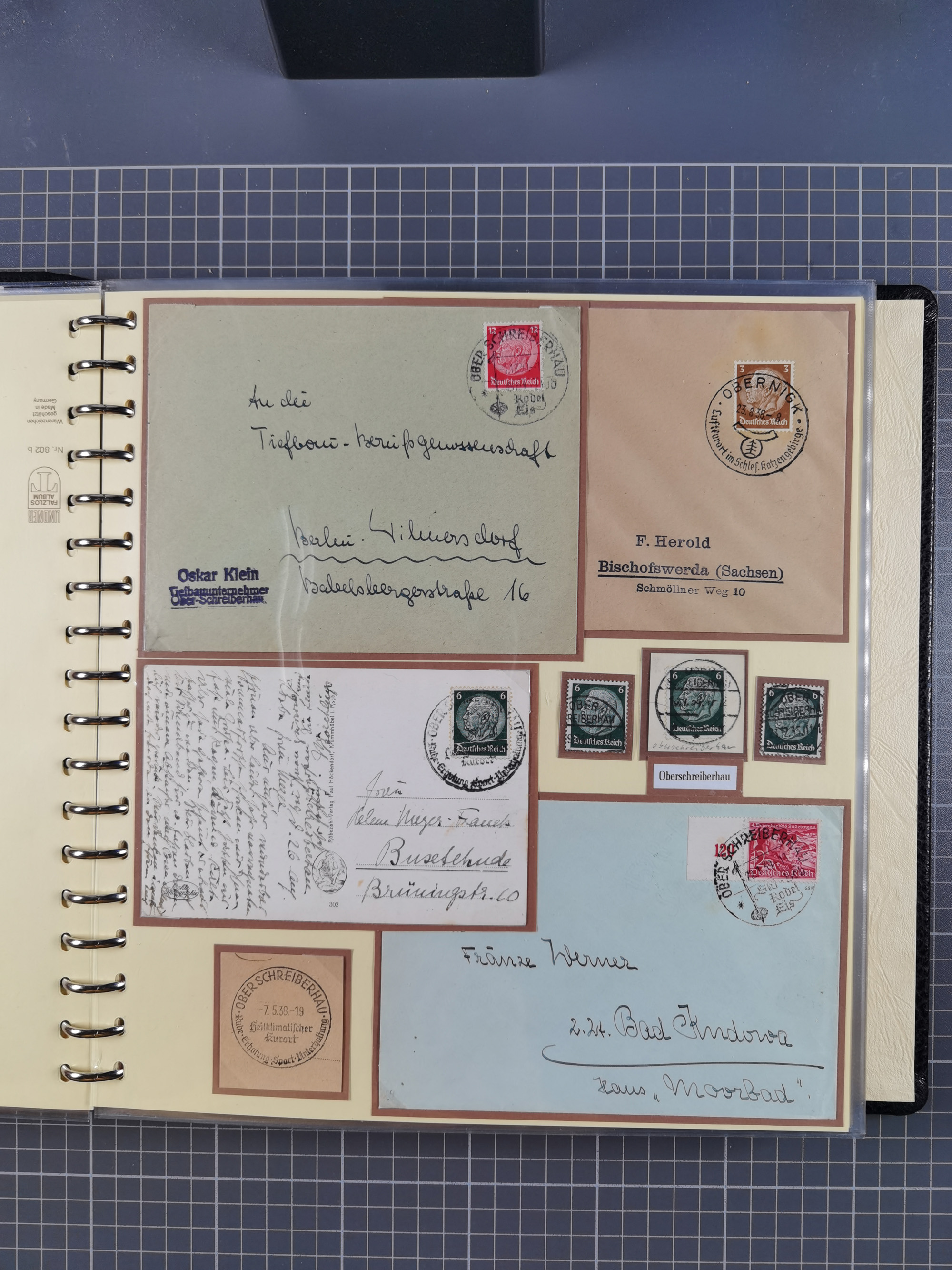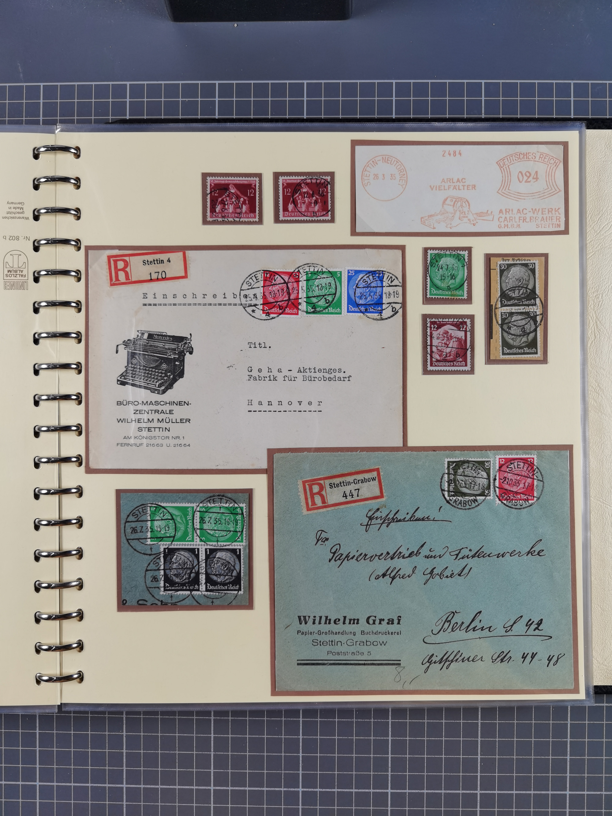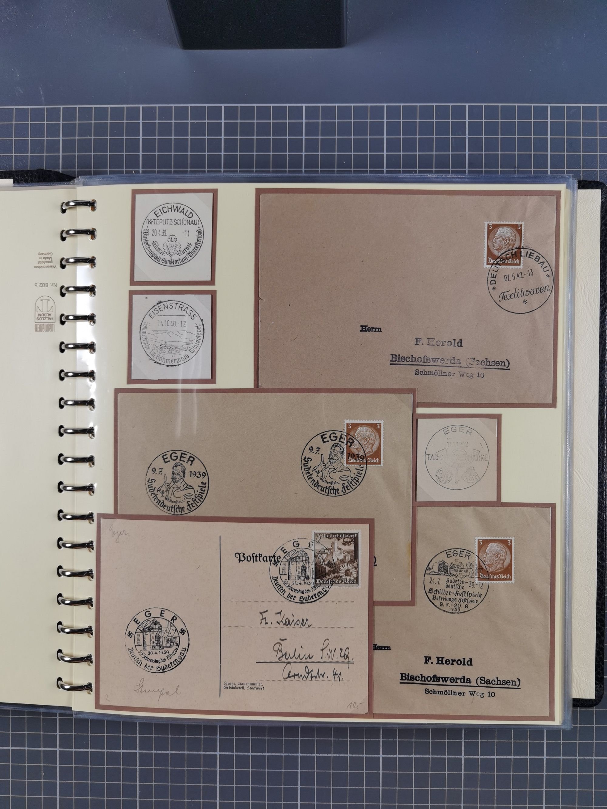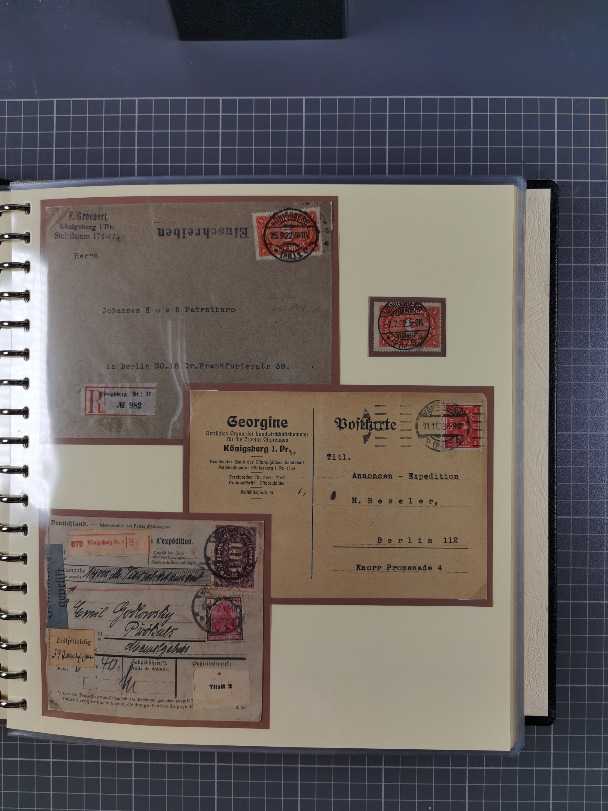 1865/1950 (ca.), Album mit 122 hochwertigen Belegen, diese einzeln vom Einlieferer beschrieben und nach Michel bewertet 15.000 €. Dazu ein Karton mit über 170 Briefen, Karten und Ganzsachen, dabei etliche interessante Belege, meist gute Erhaltung