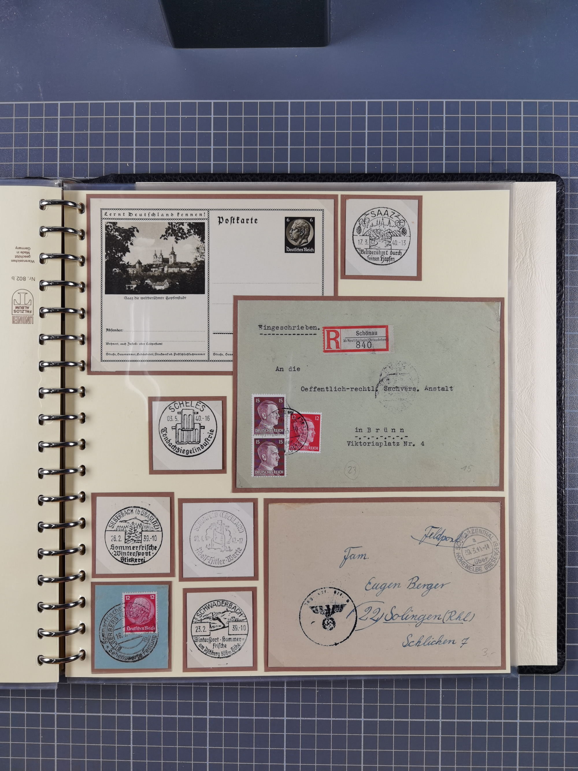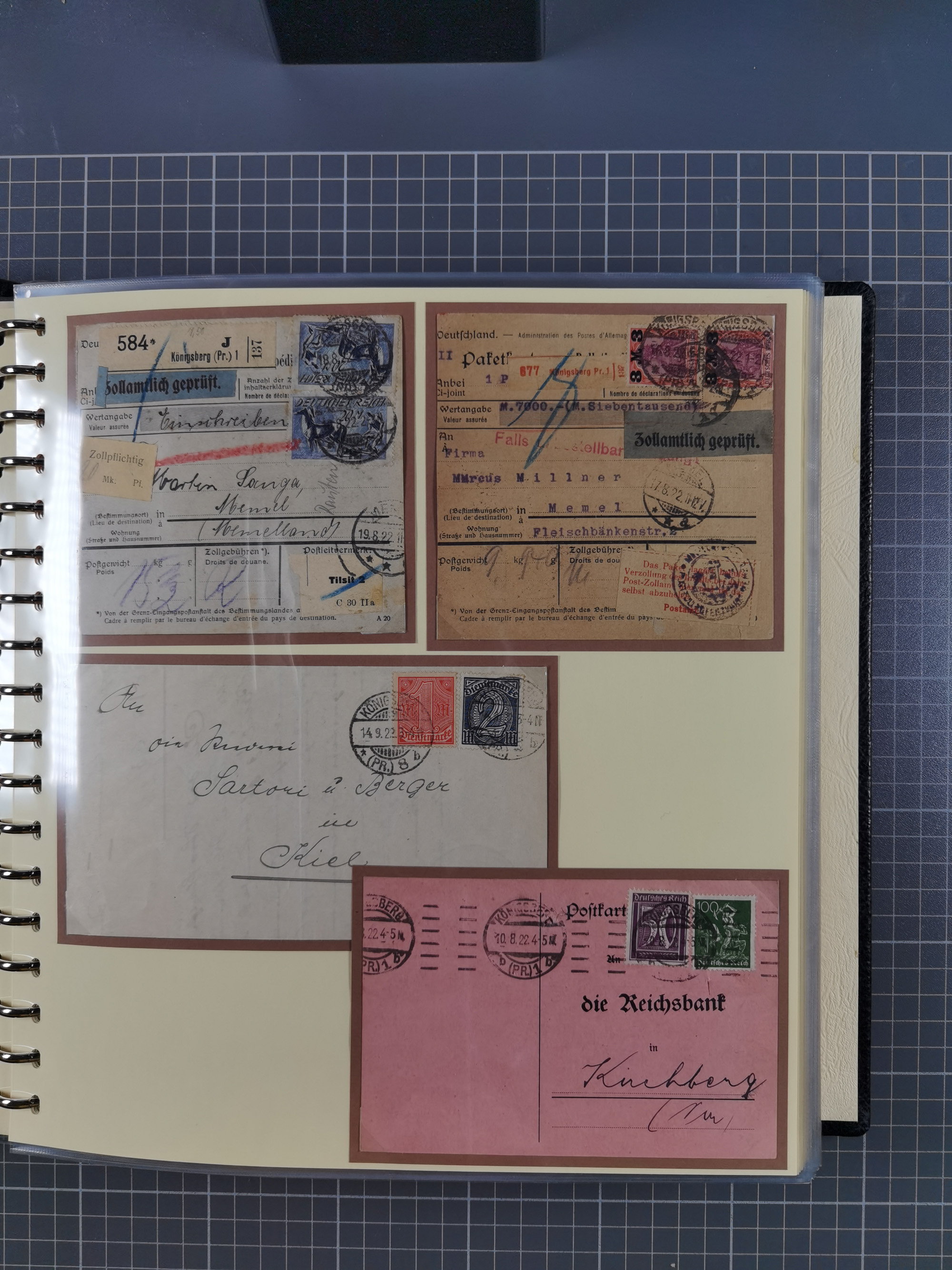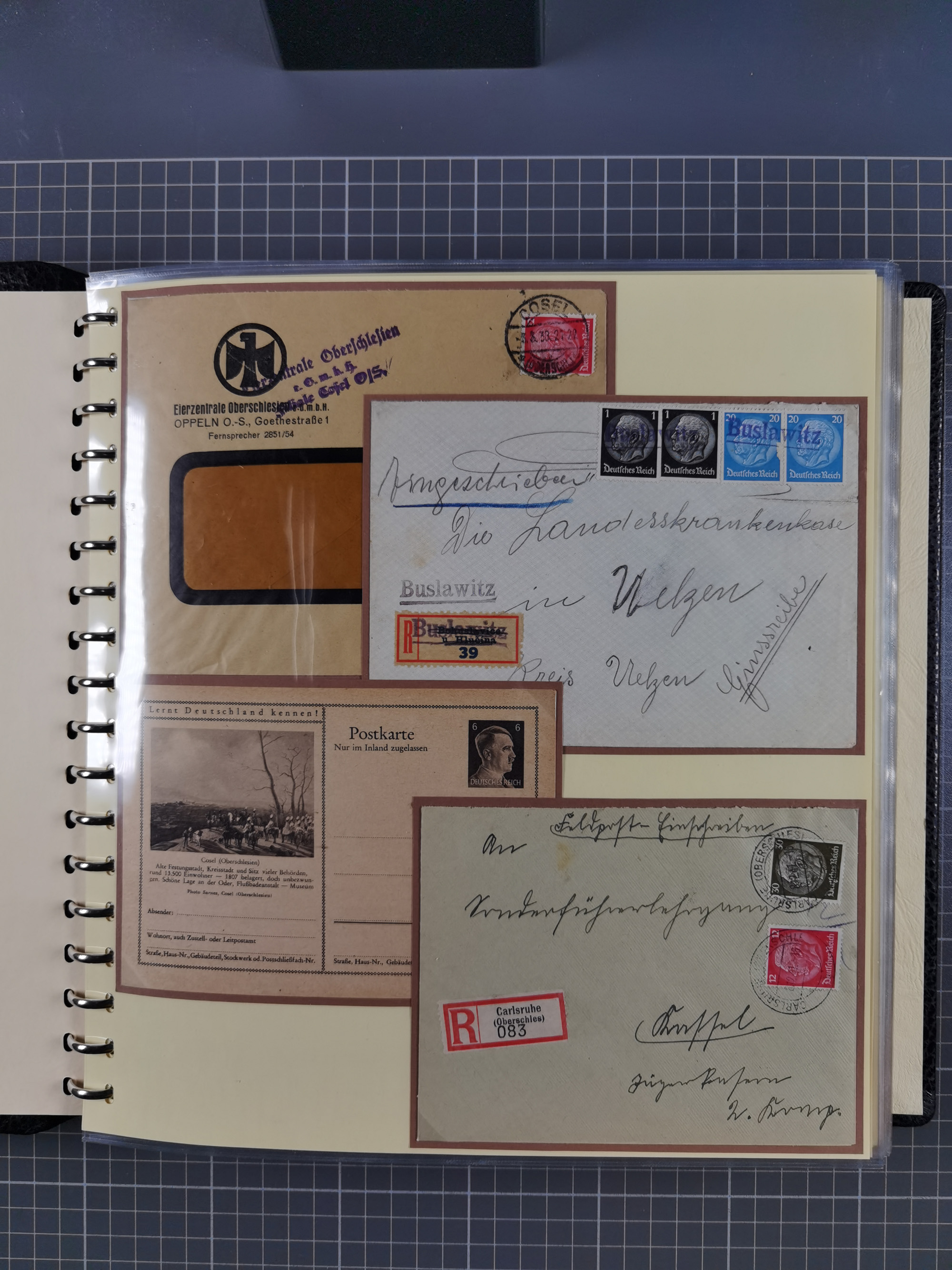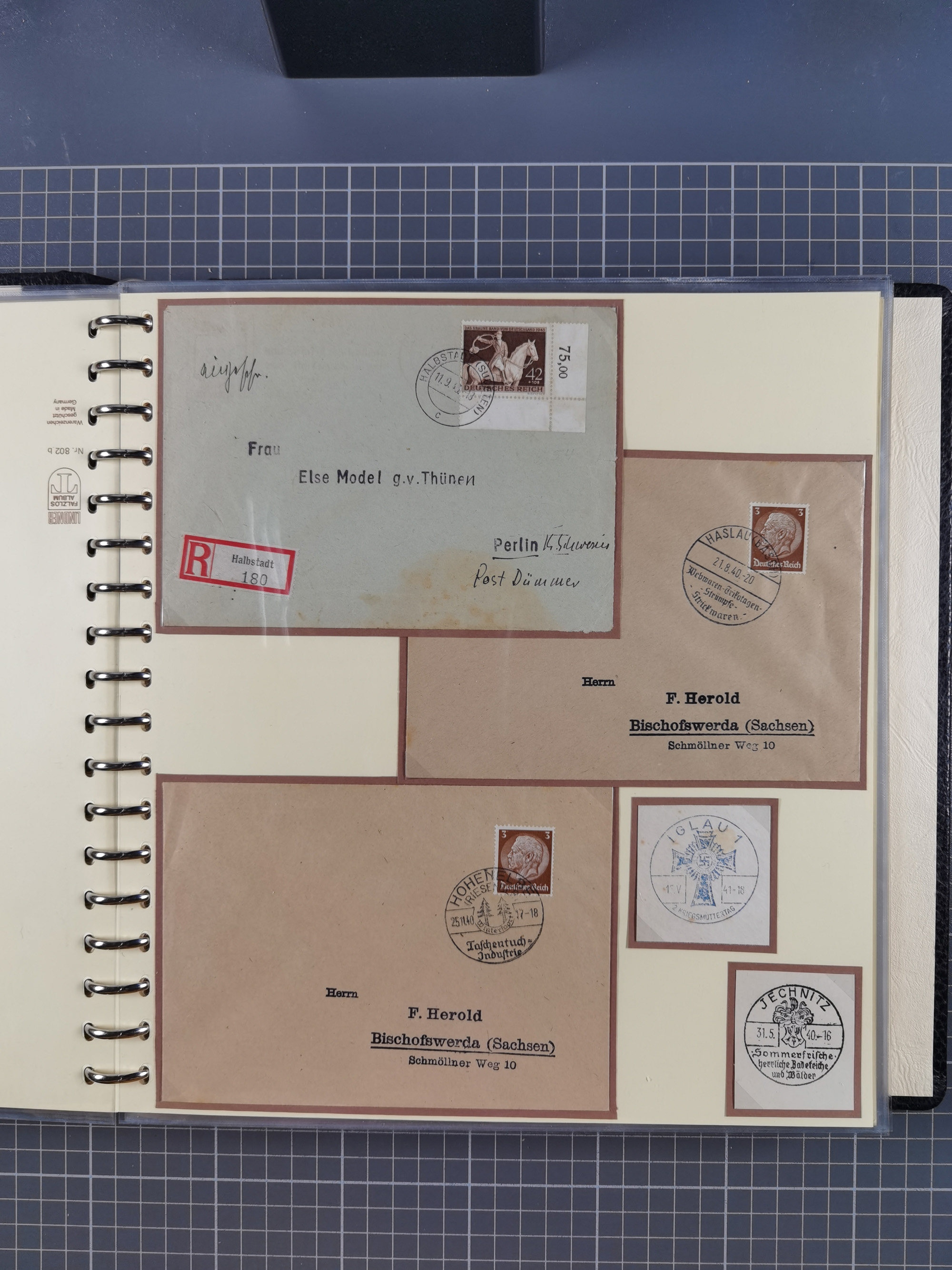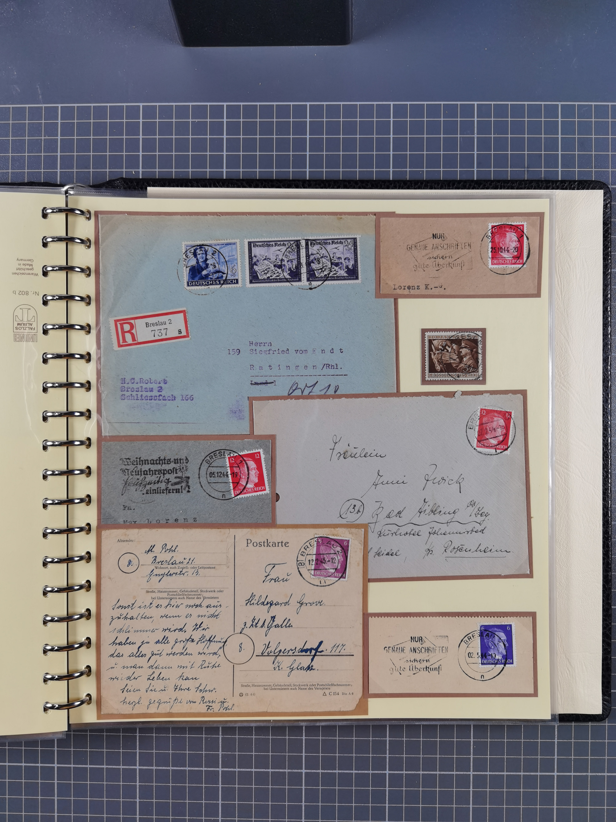1865/1950 (ca.), Album mit 122 hochwertigen Belegen, diese einzeln vom Einlieferer beschrieben und nach Michel bewertet 15.000 €. Dazu ein Karton mit über 170 Briefen, Karten und Ganzsachen, dabei etliche interessante Belege, meist gute Erhaltung