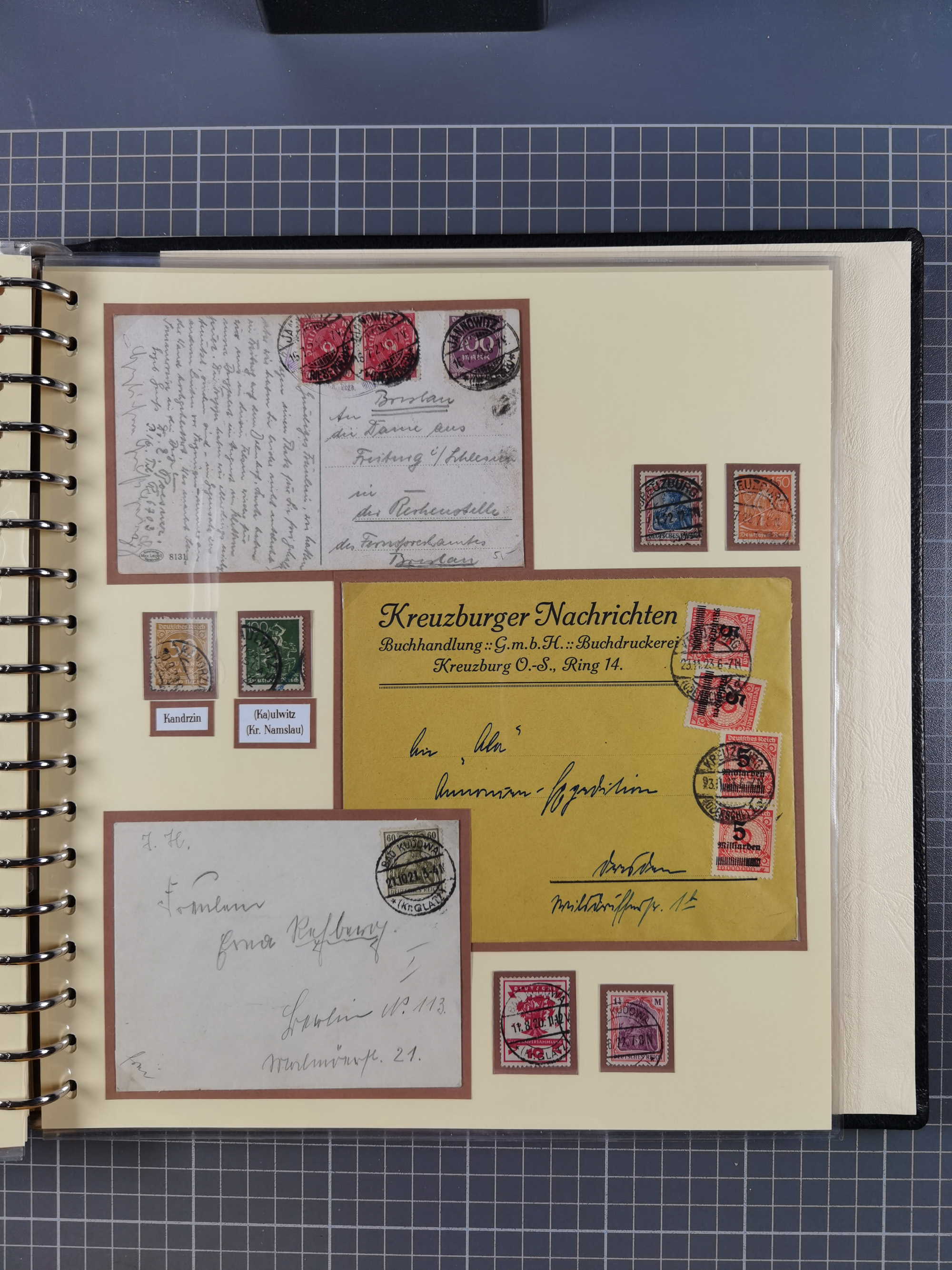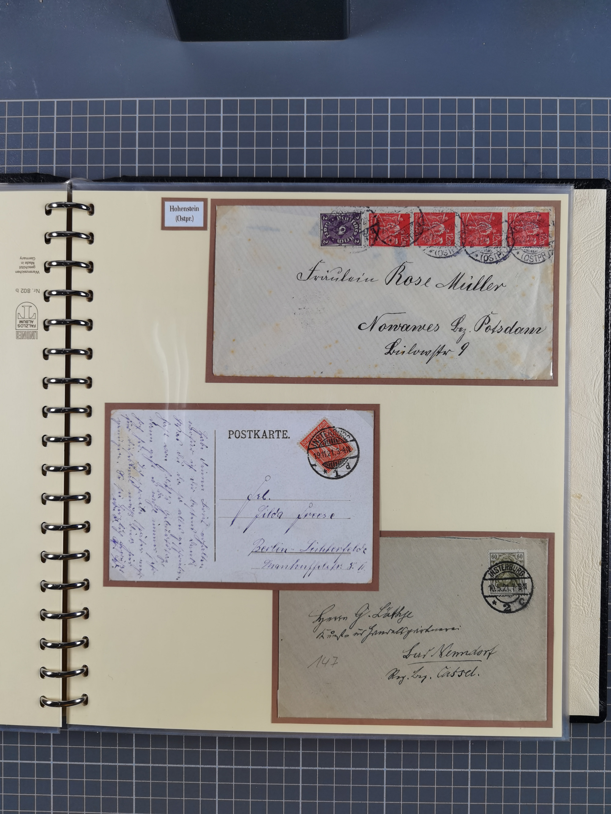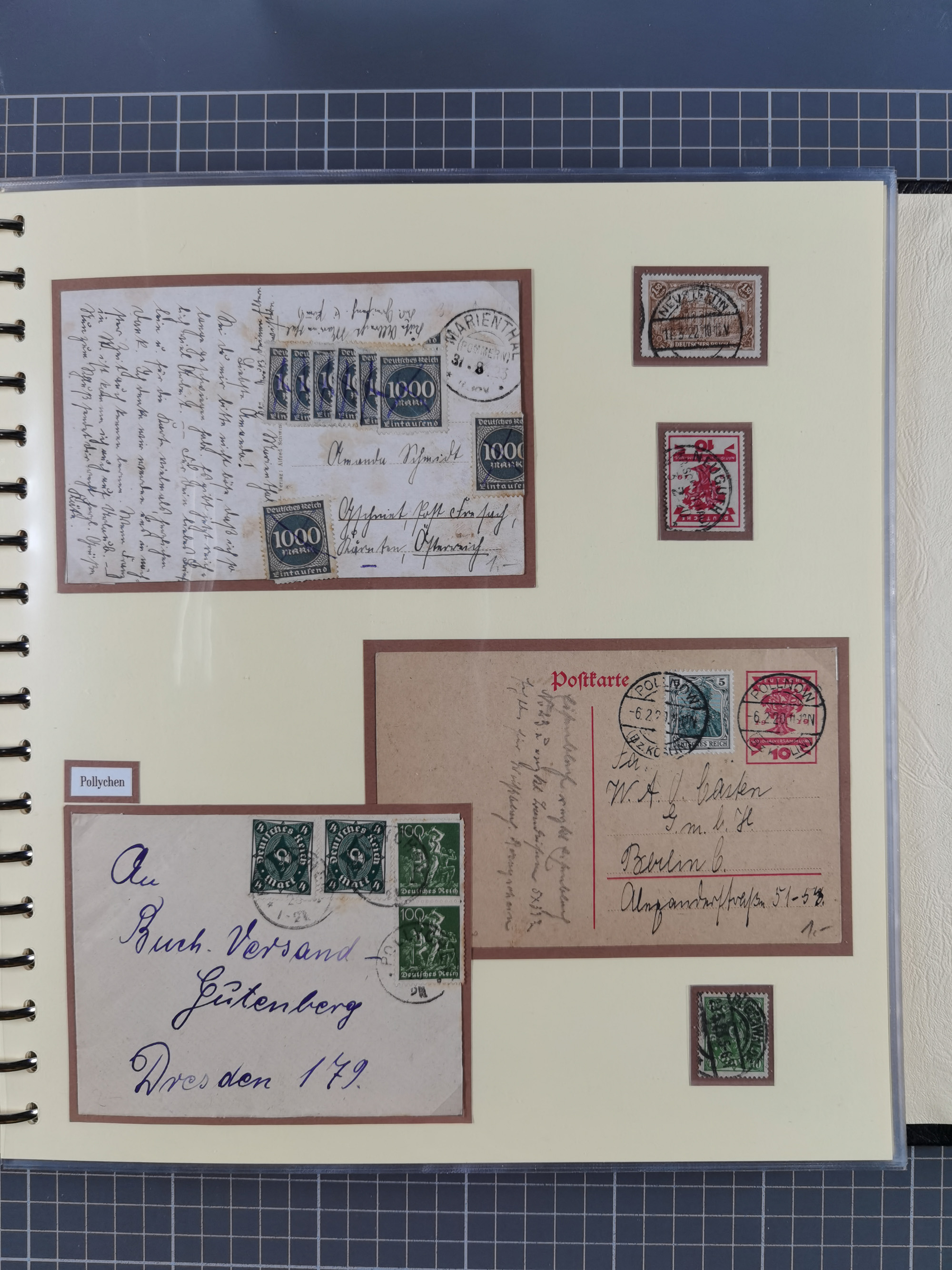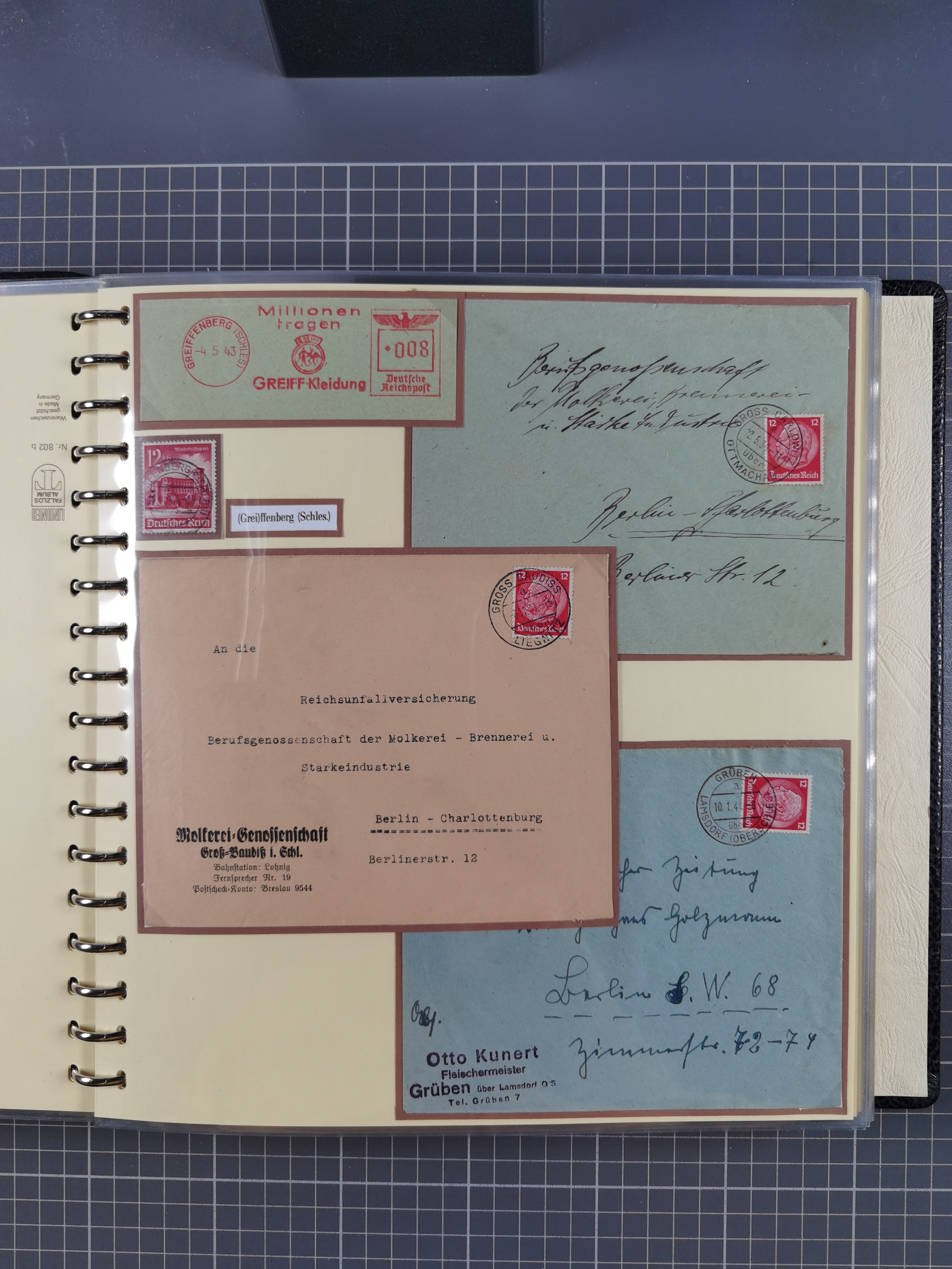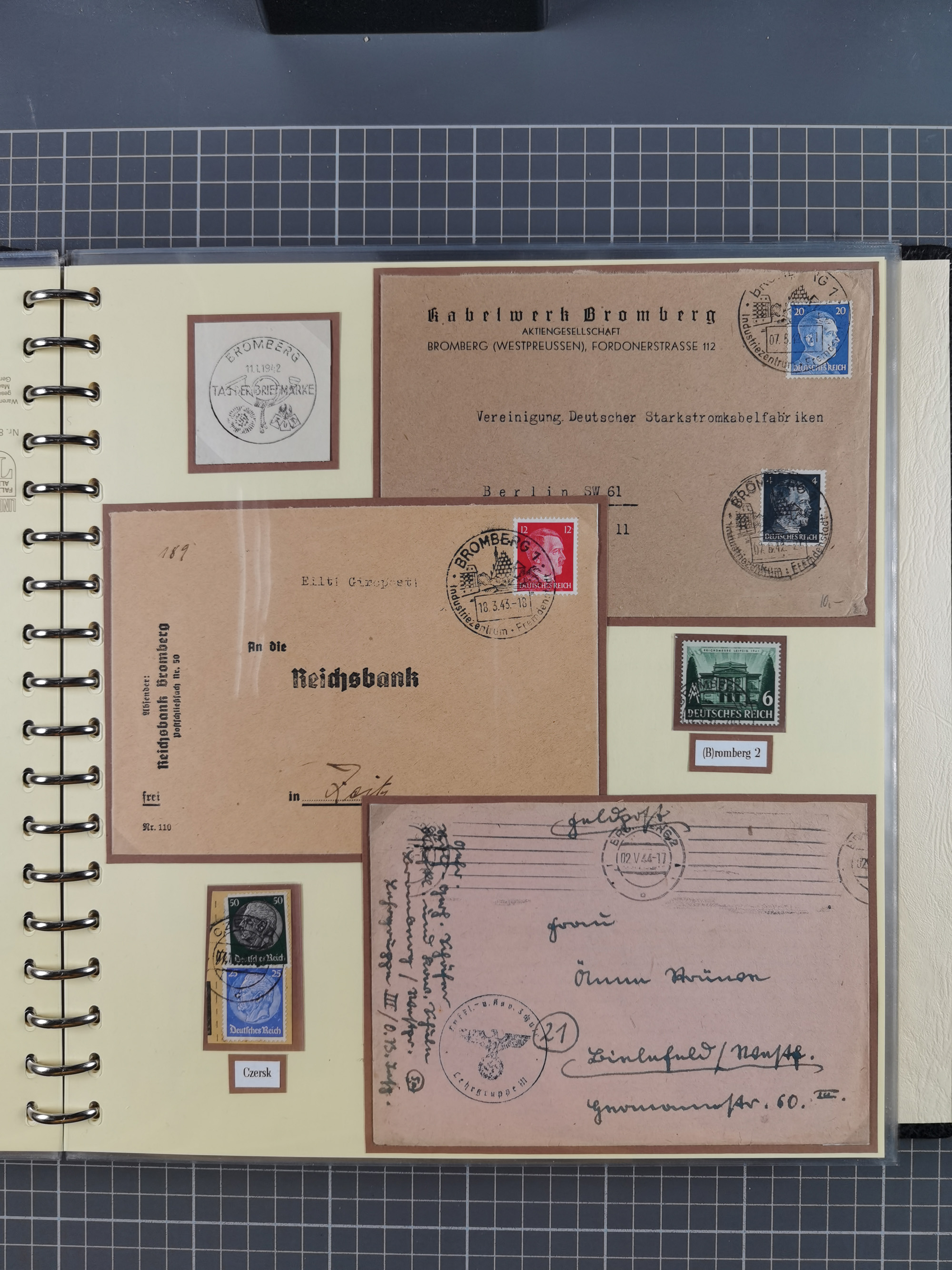 1865/1950 (ca.), Album mit 122 hochwertigen Belegen, diese einzeln vom Einlieferer beschrieben und nach Michel bewertet 15.000 €. Dazu ein Karton mit über 170 Briefen, Karten und Ganzsachen, dabei etliche interessante Belege, meist gute Erhaltung