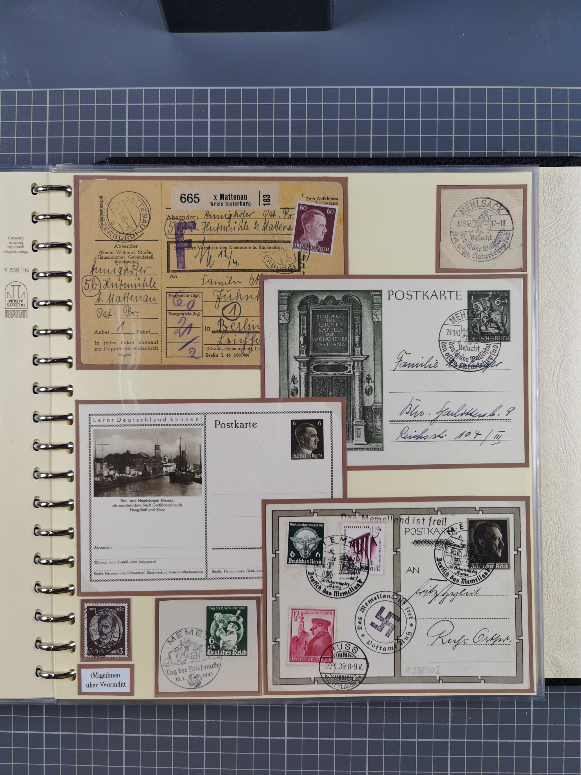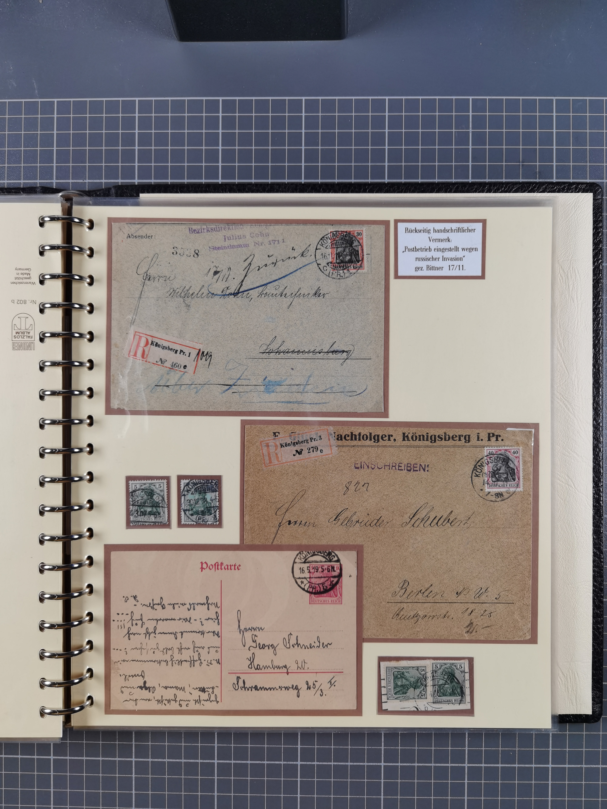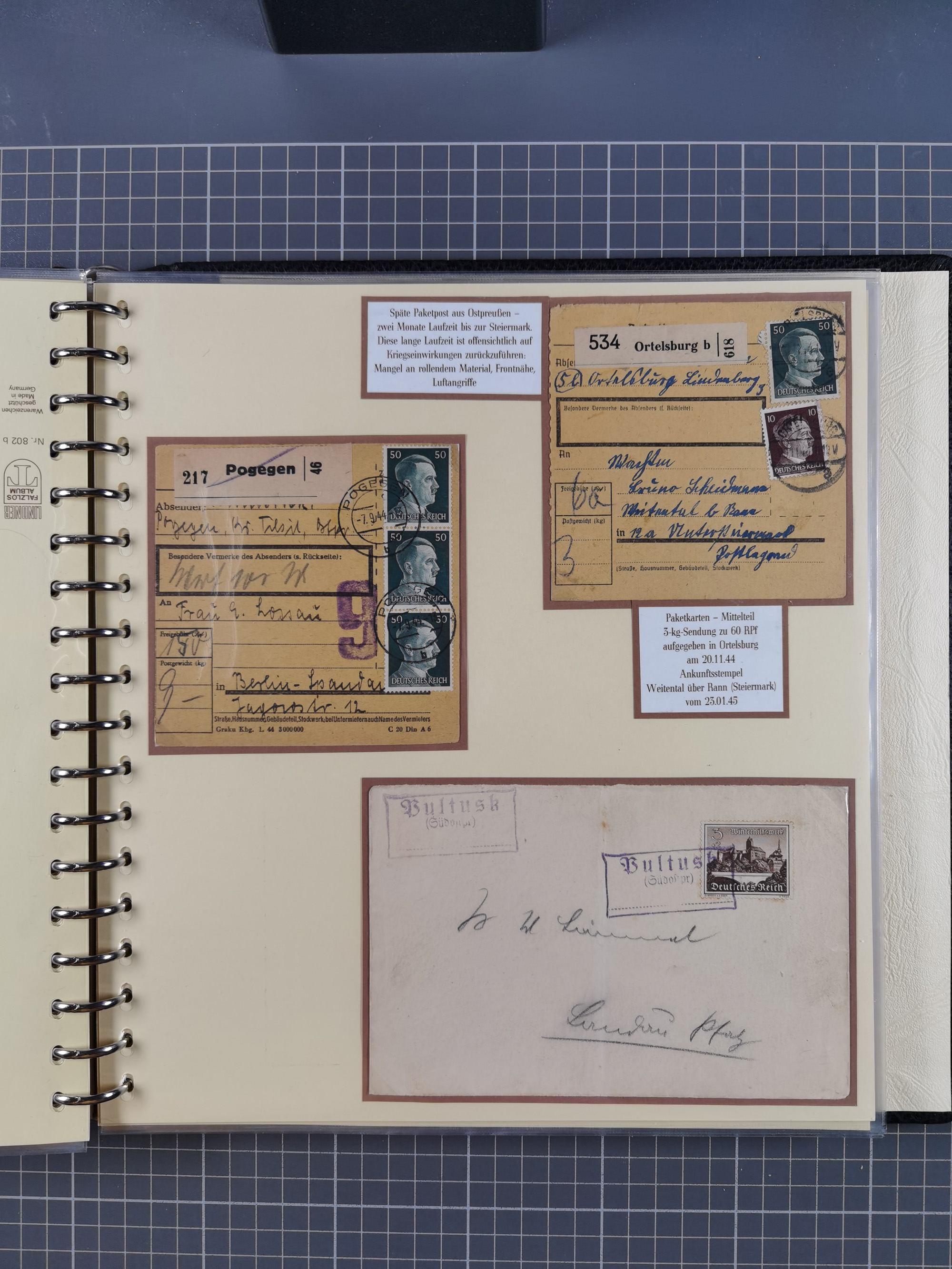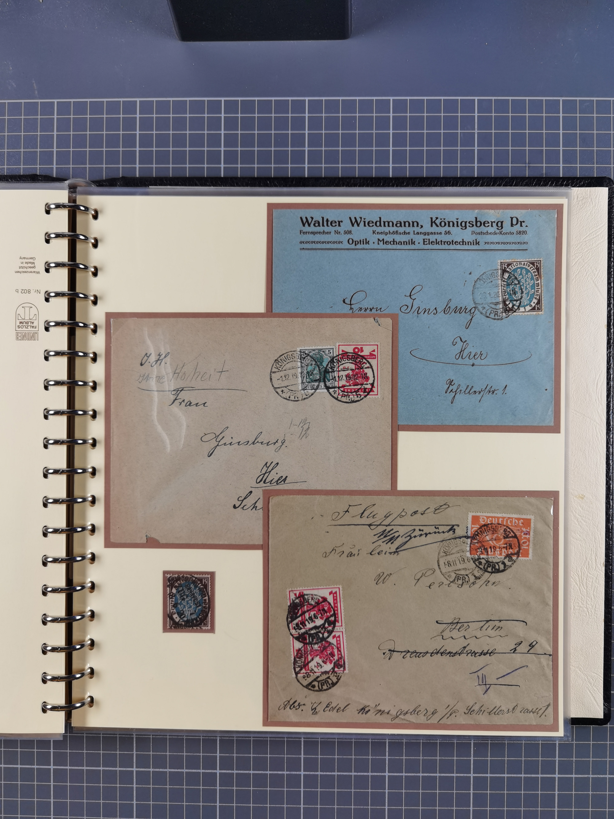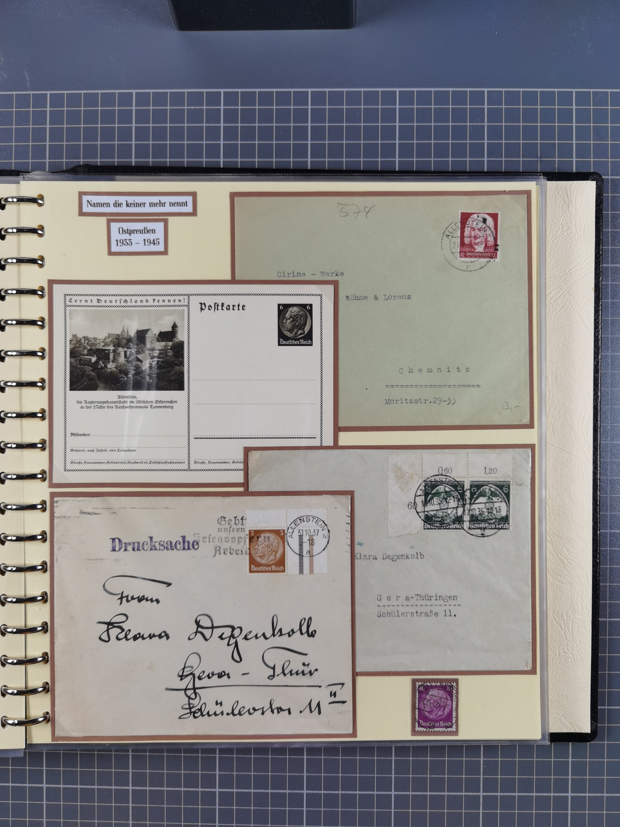 1865/1950 (ca.), Album mit 122 hochwertigen Belegen, diese einzeln vom Einlieferer beschrieben und nach Michel bewertet 15.000 €. Dazu ein Karton mit über 170 Briefen, Karten und Ganzsachen, dabei etliche interessante Belege, meist gute Erhaltung