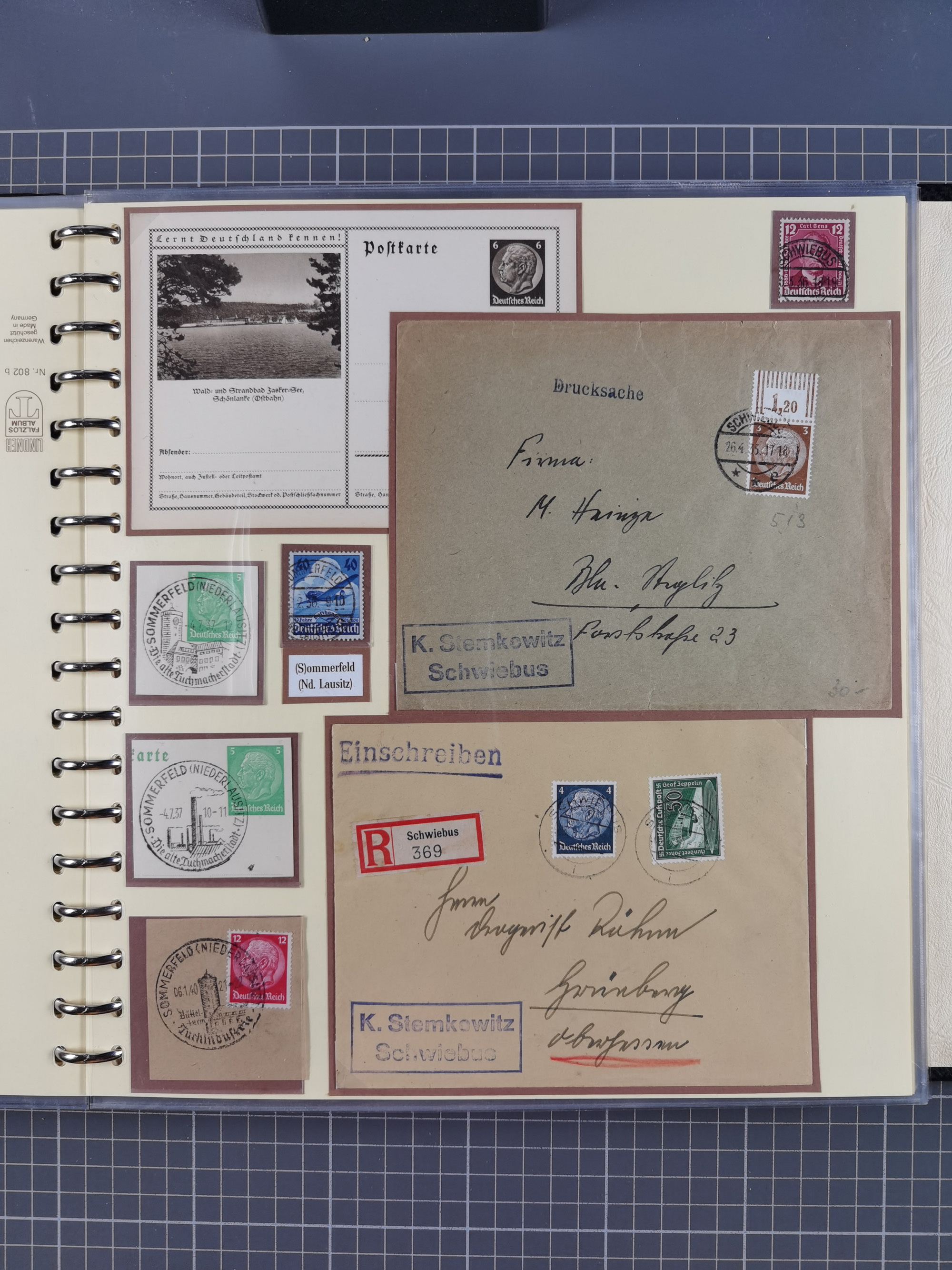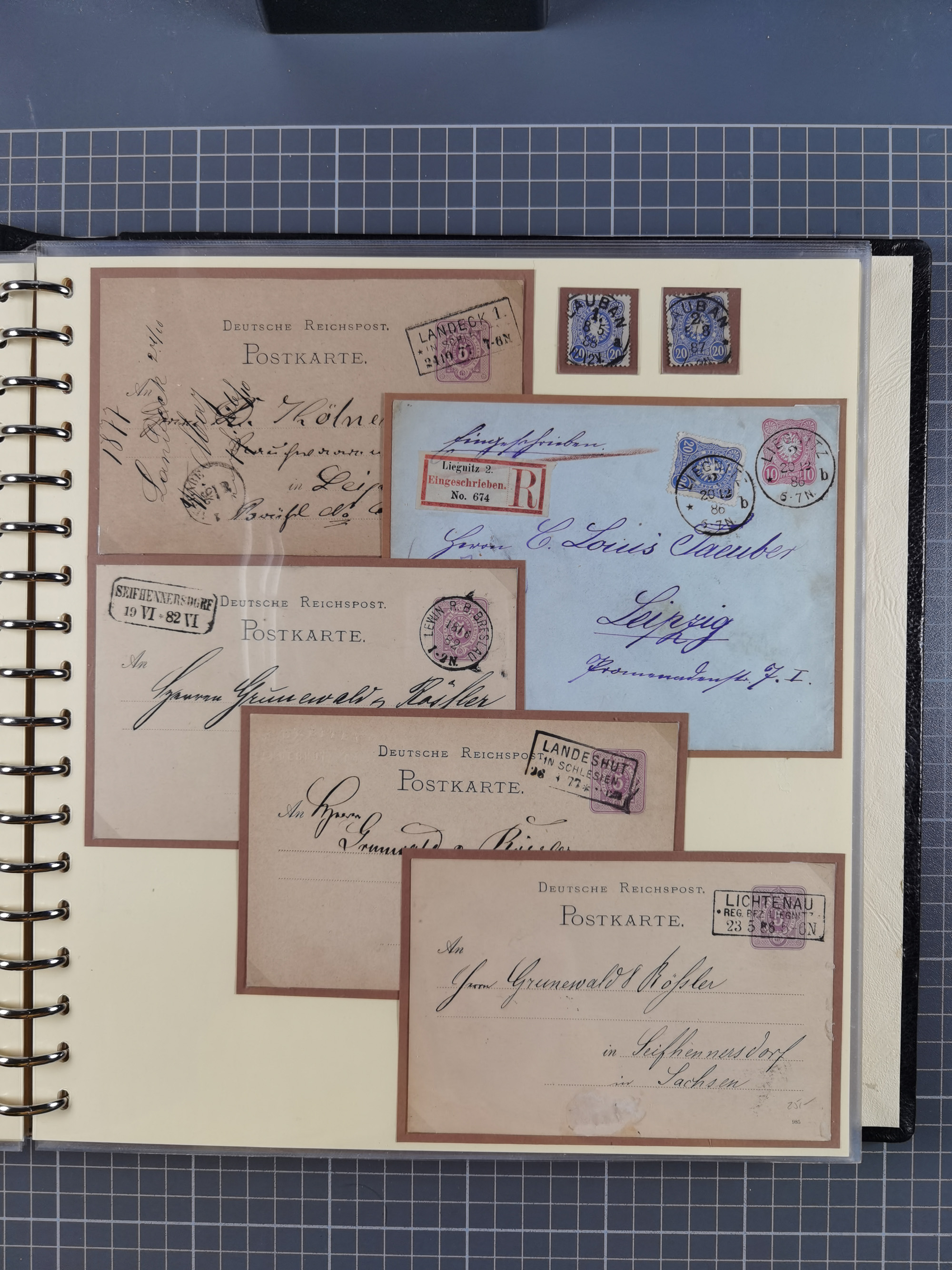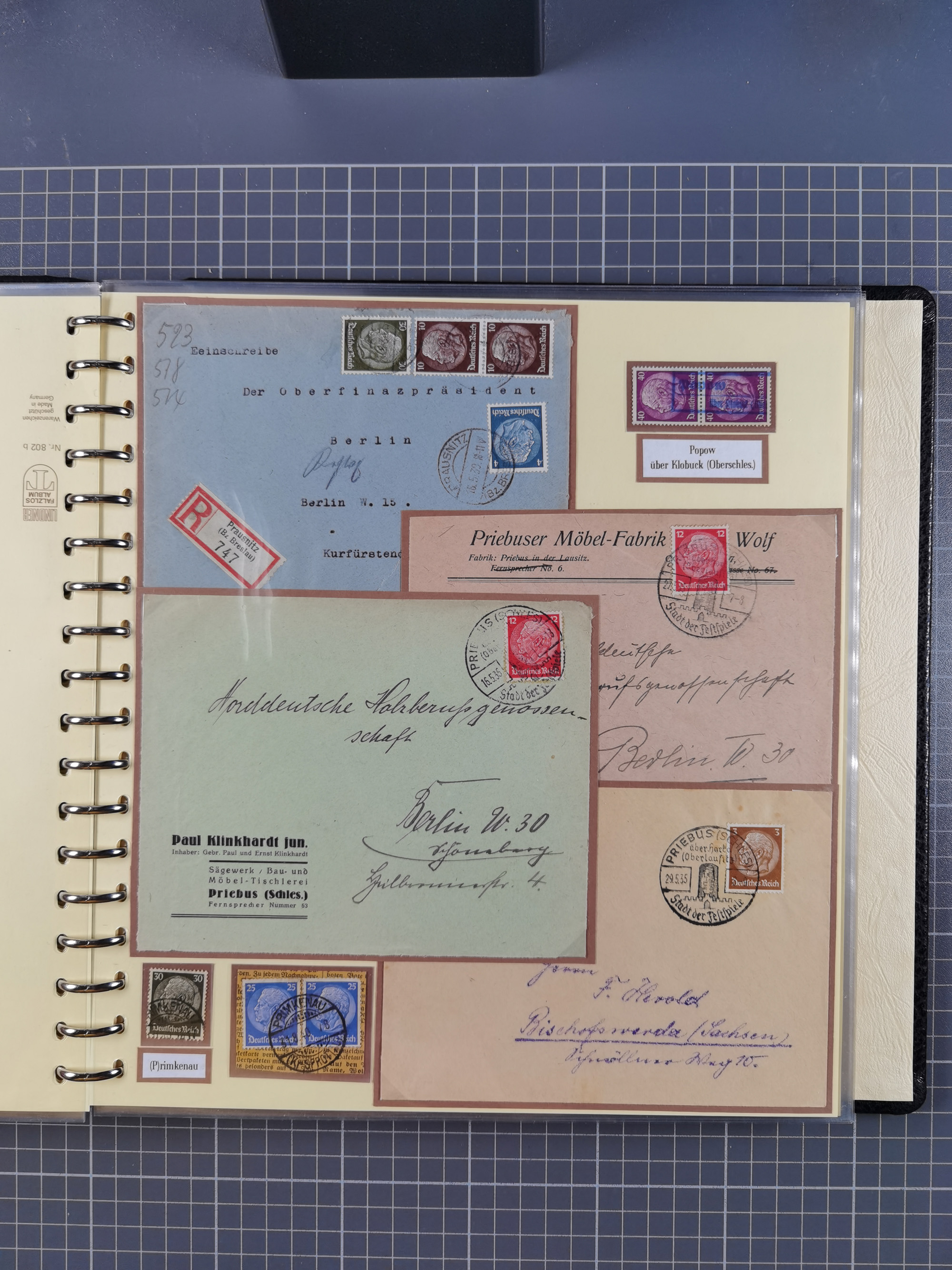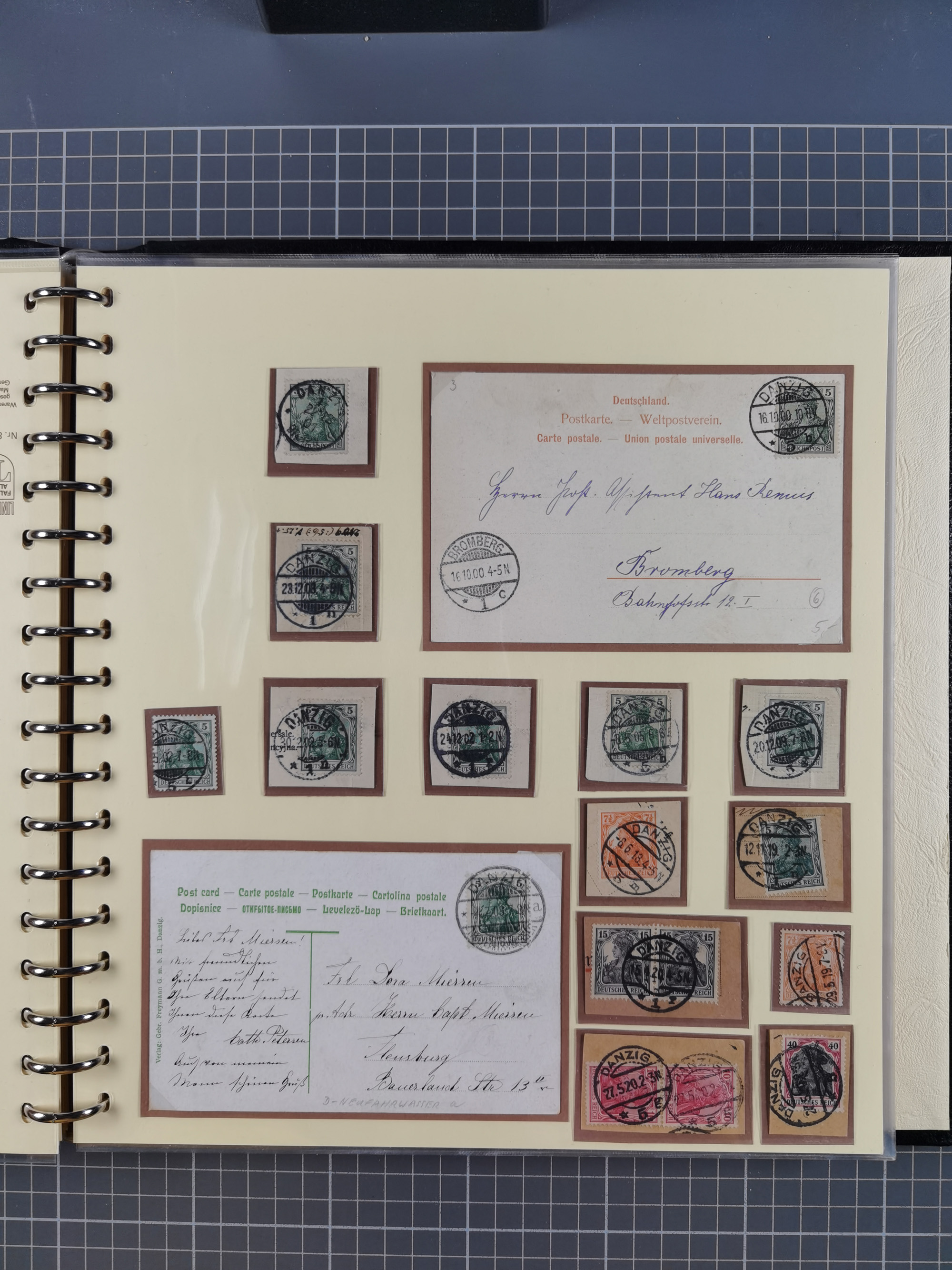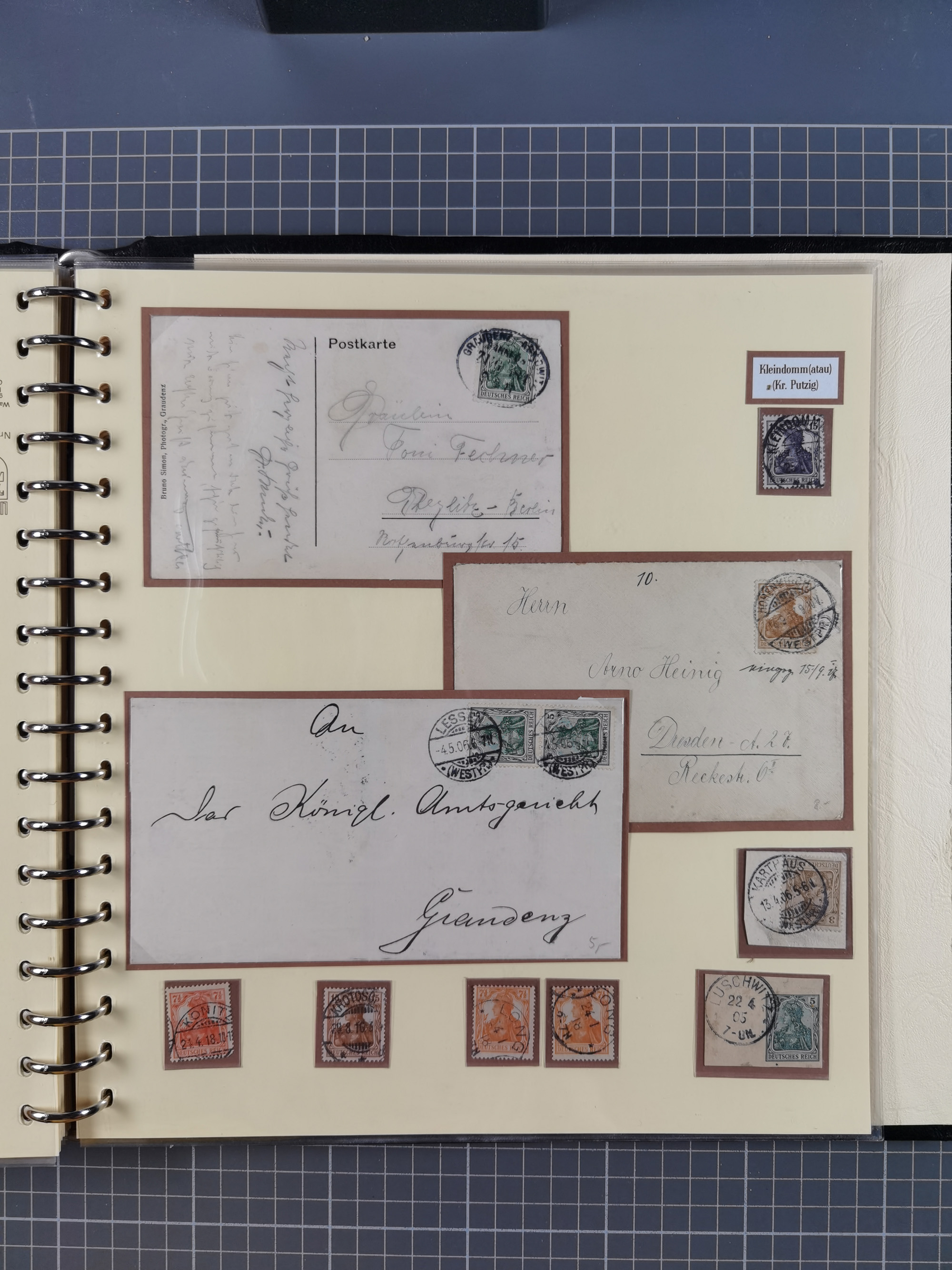1865/1950 (ca.), Album mit 122 hochwertigen Belegen, diese einzeln vom Einlieferer beschrieben und nach Michel bewertet 15.000 €. Dazu ein Karton mit über 170 Briefen, Karten und Ganzsachen, dabei etliche interessante Belege, meist gute Erhaltung