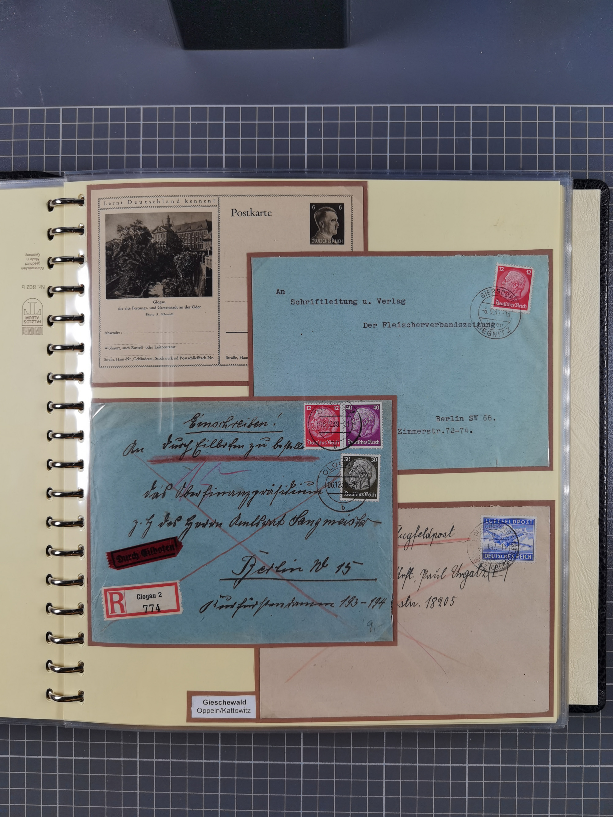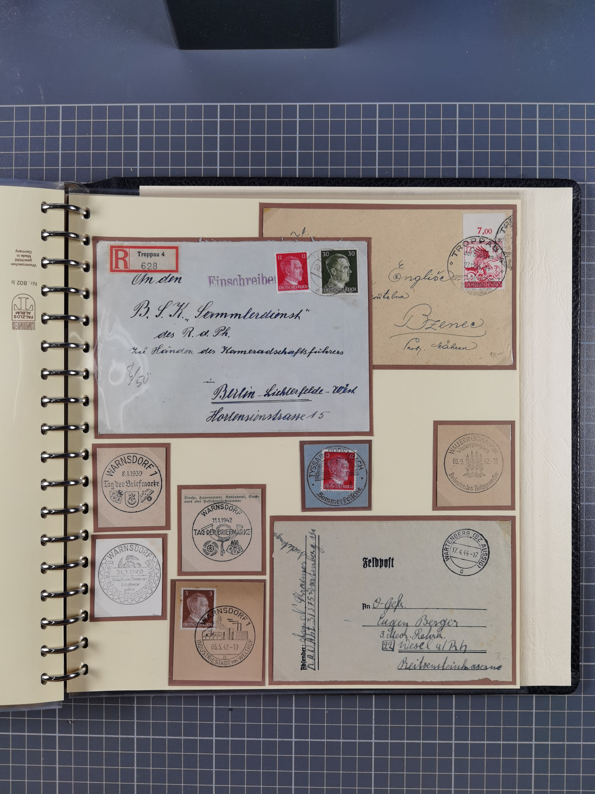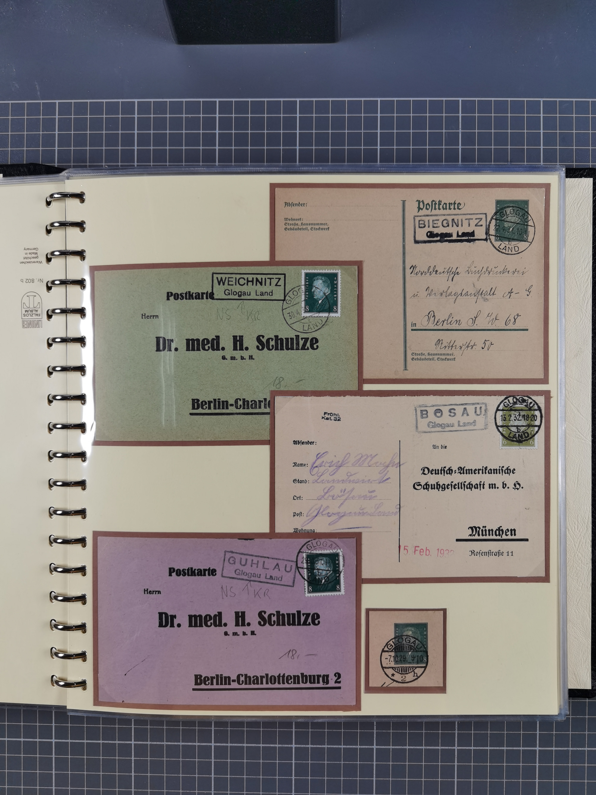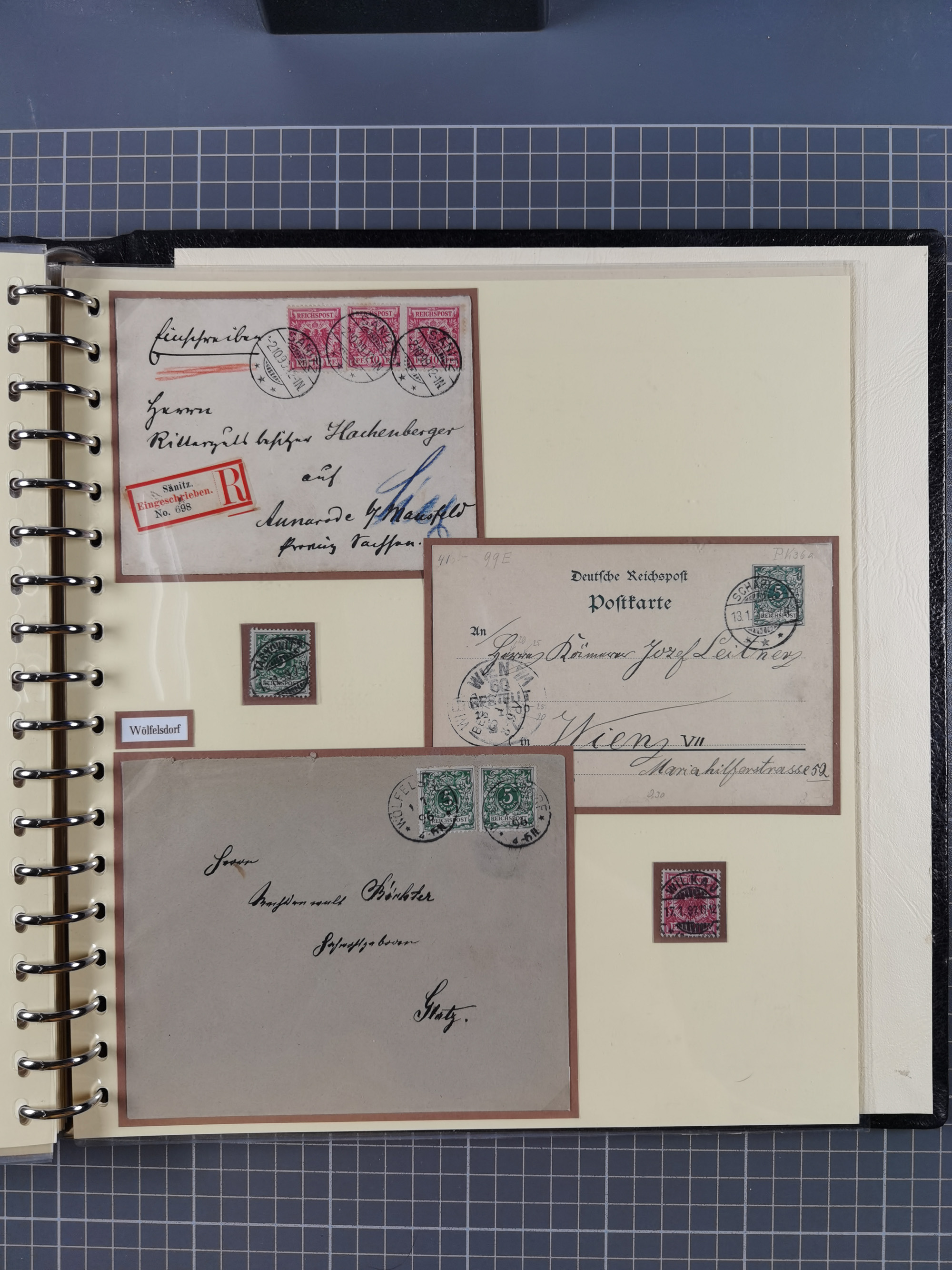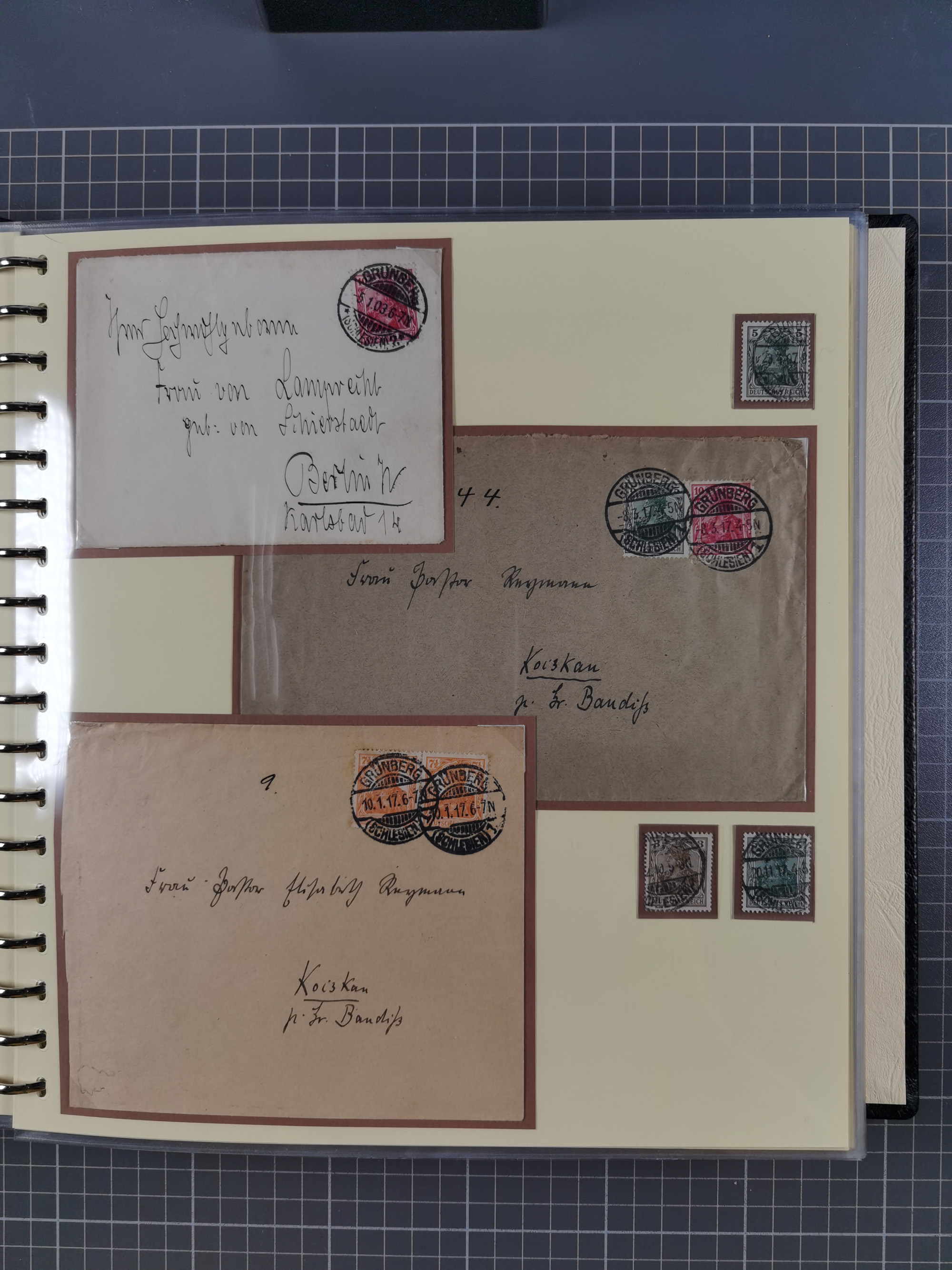 1865/1950 (ca.), Album mit 122 hochwertigen Belegen, diese einzeln vom Einlieferer beschrieben und nach Michel bewertet 15.000 €. Dazu ein Karton mit über 170 Briefen, Karten und Ganzsachen, dabei etliche interessante Belege, meist gute Erhaltung