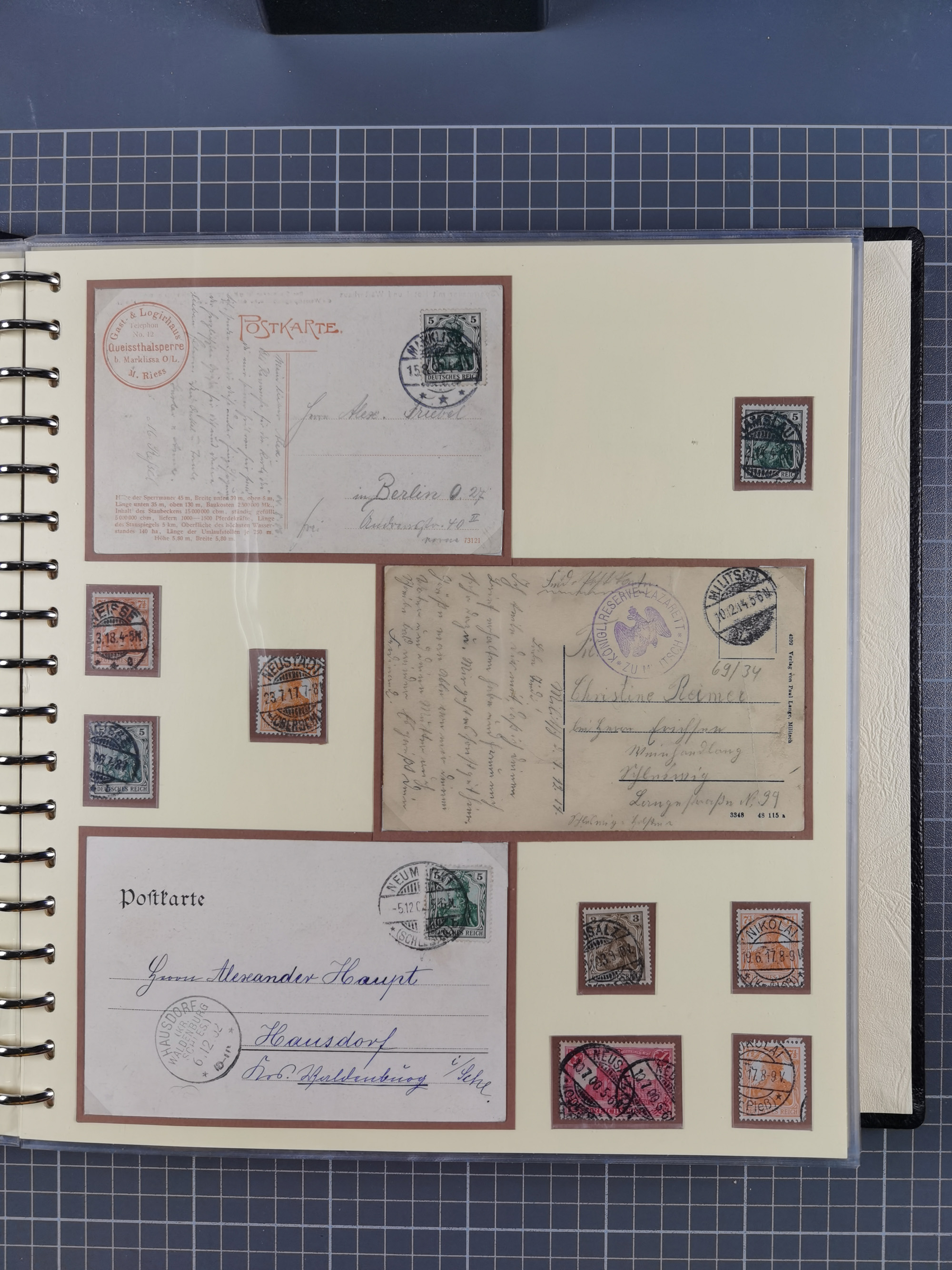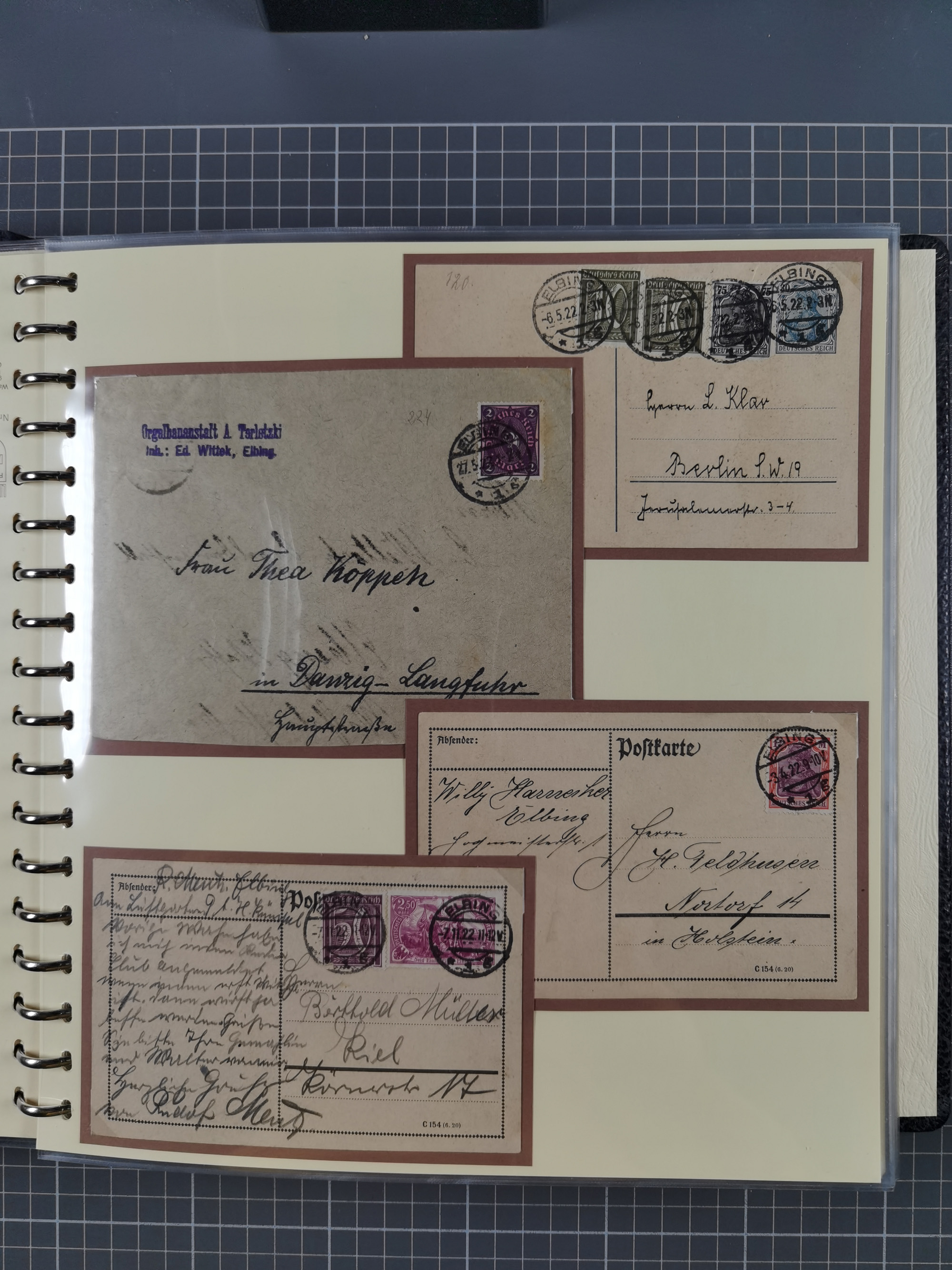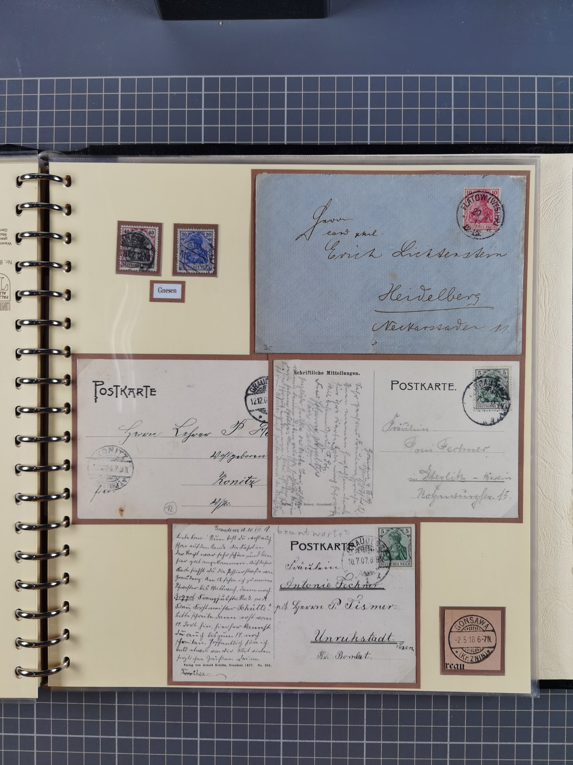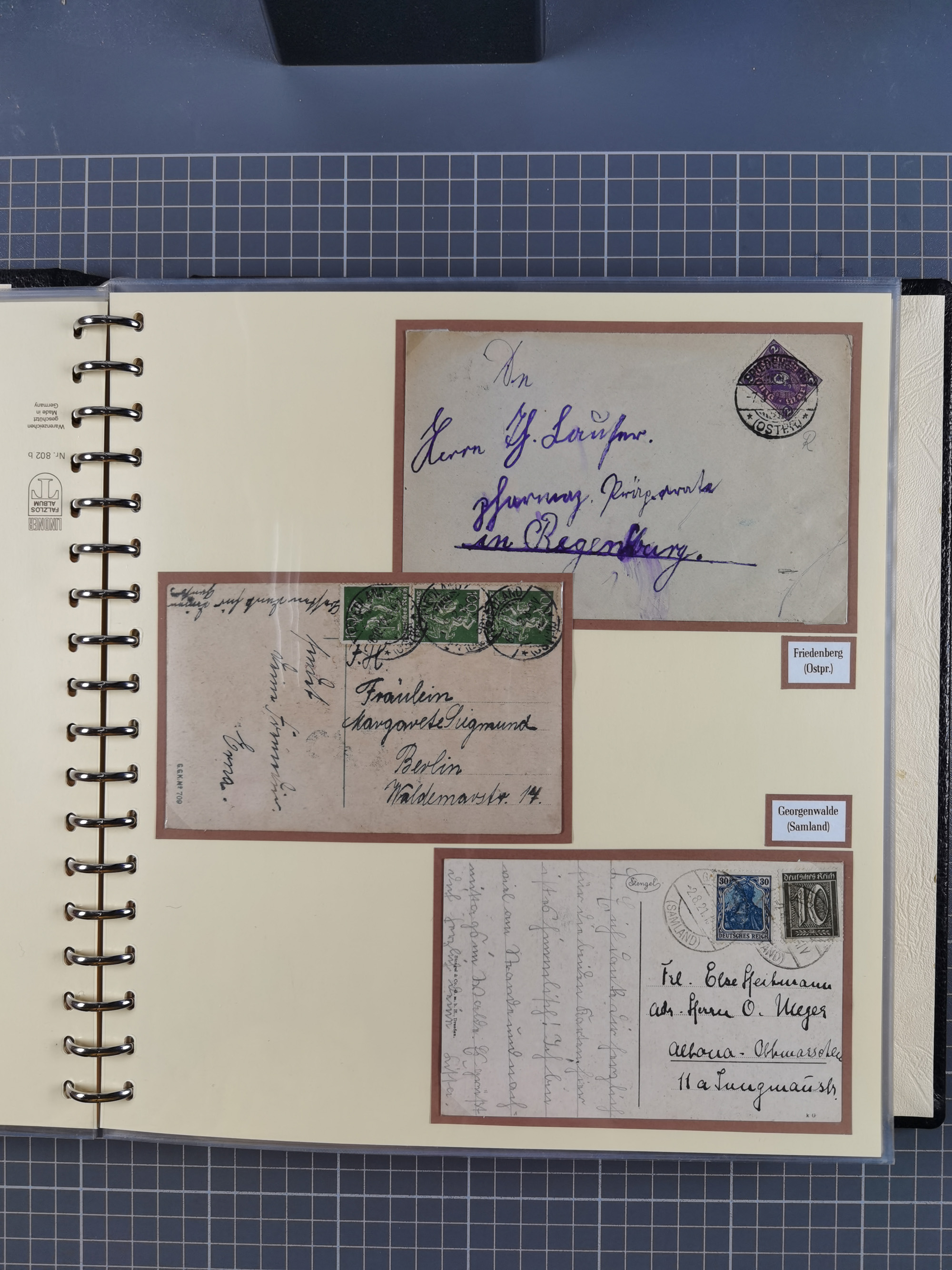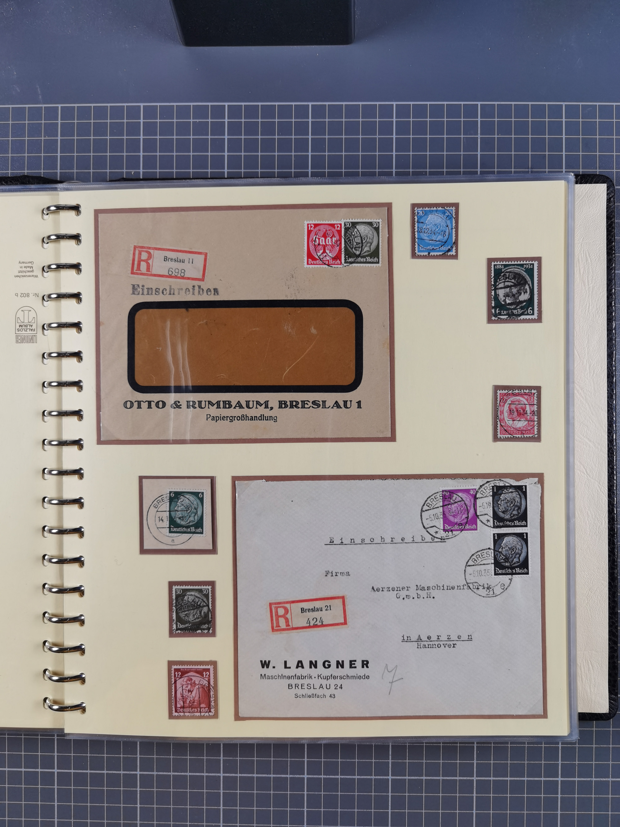 1865/1950 (ca.), Album mit 122 hochwertigen Belegen, diese einzeln vom Einlieferer beschrieben und nach Michel bewertet 15.000 €. Dazu ein Karton mit über 170 Briefen, Karten und Ganzsachen, dabei etliche interessante Belege, meist gute Erhaltung