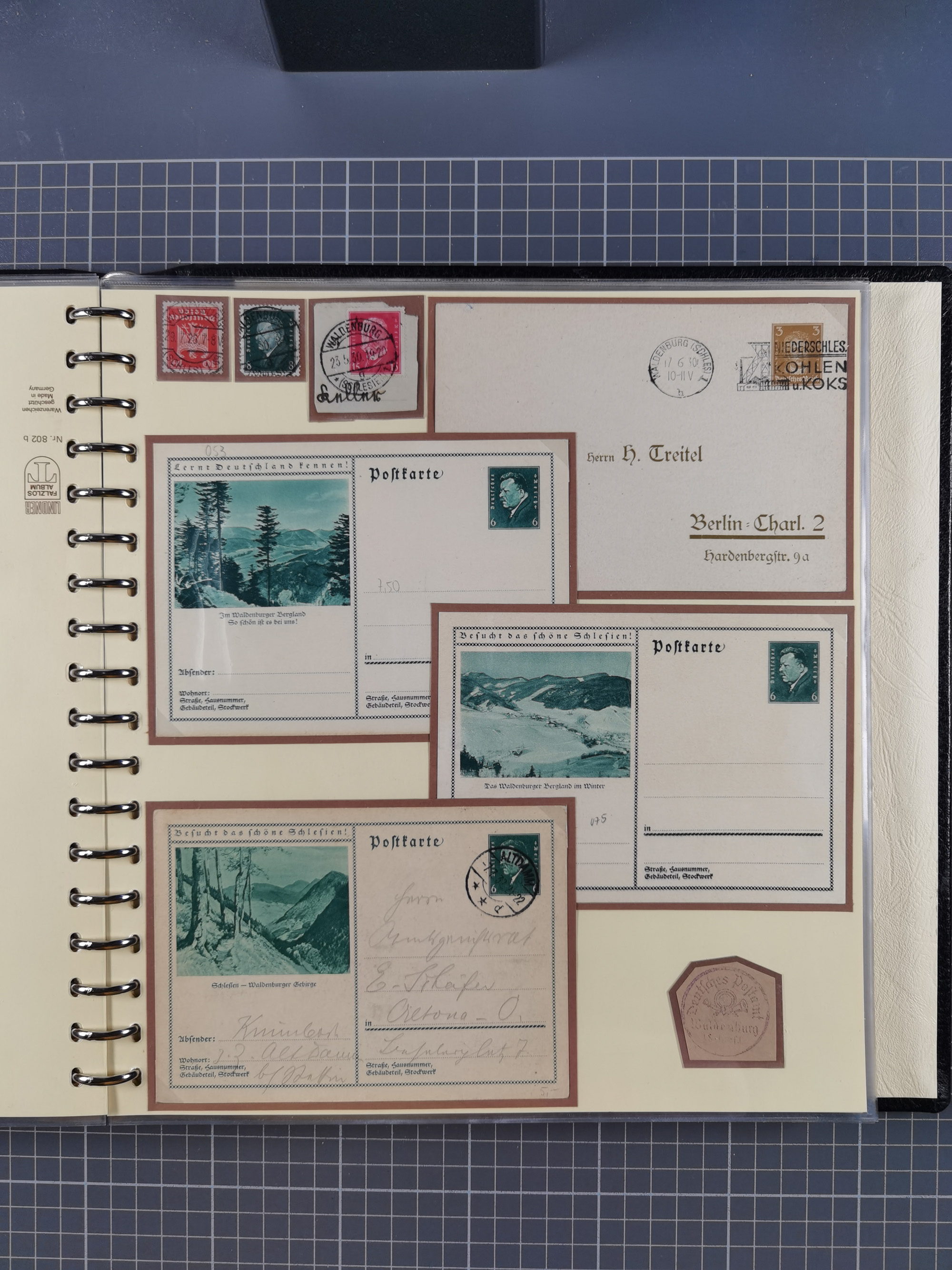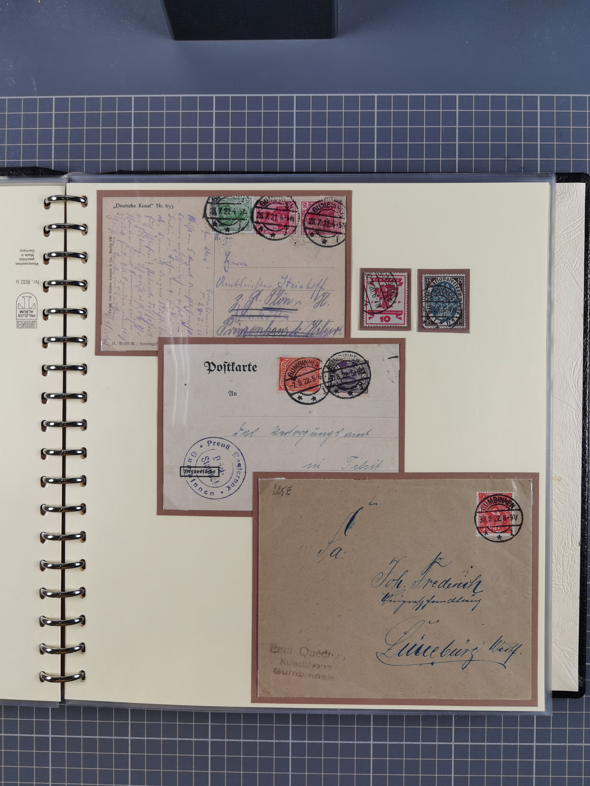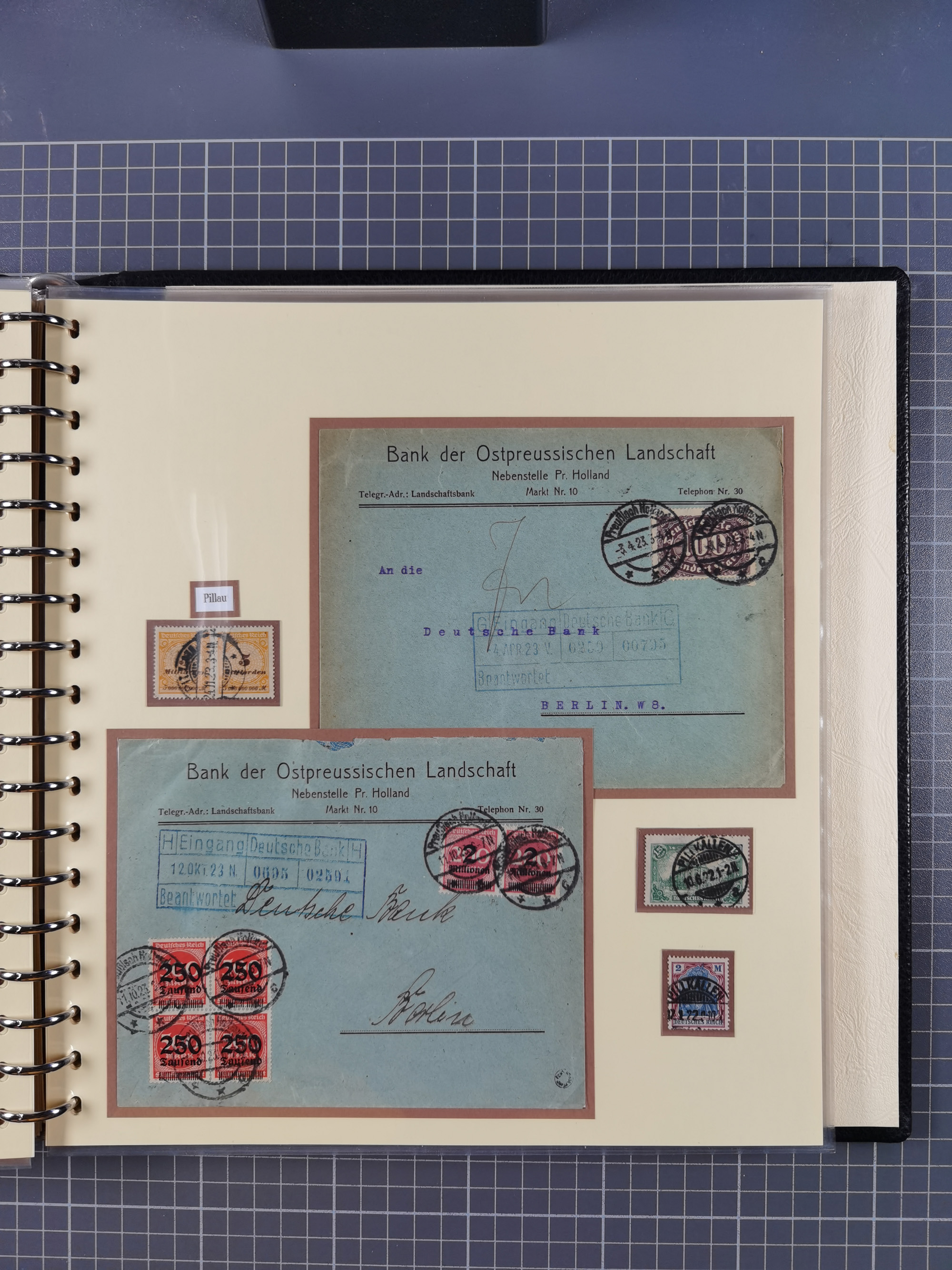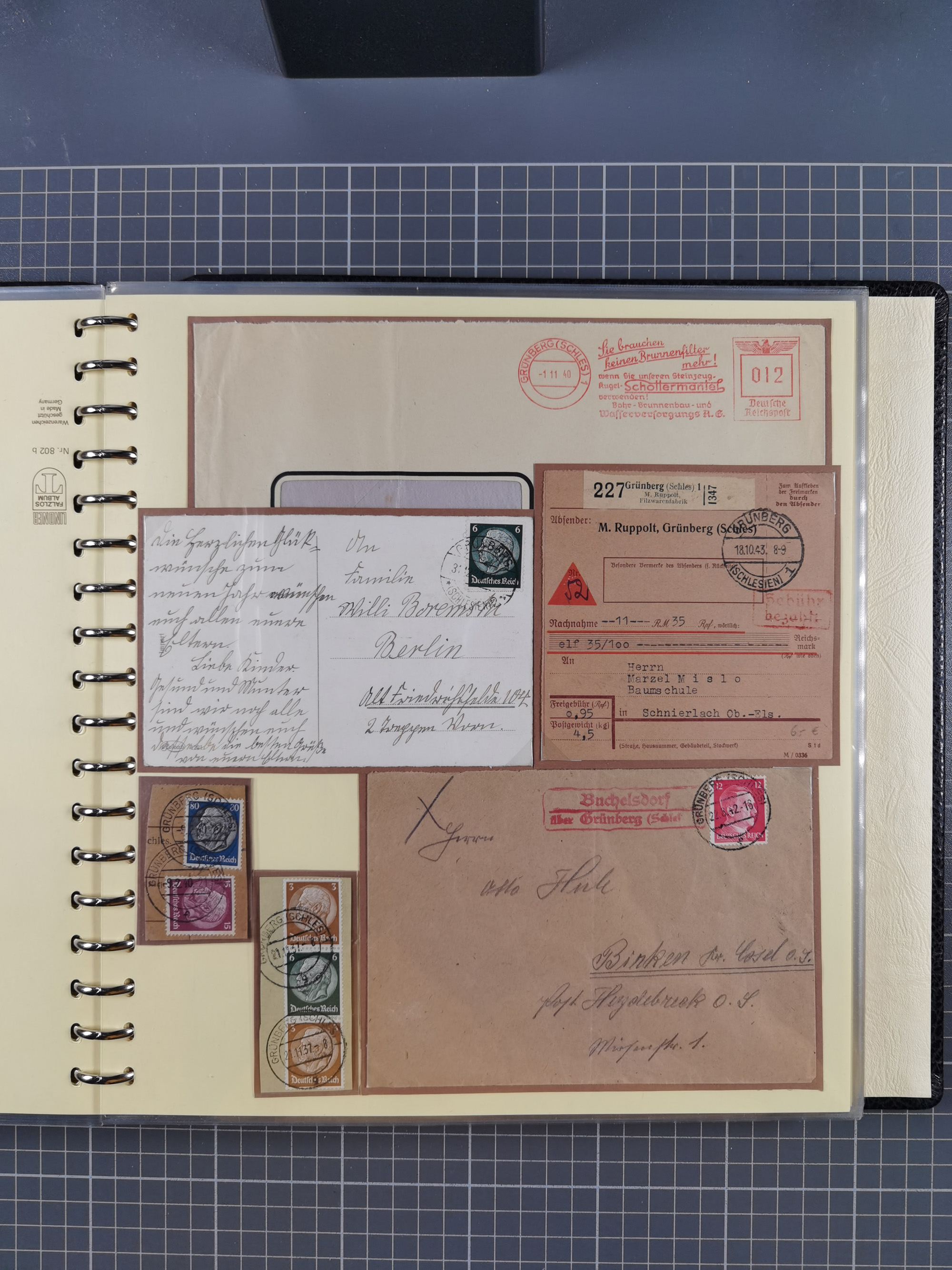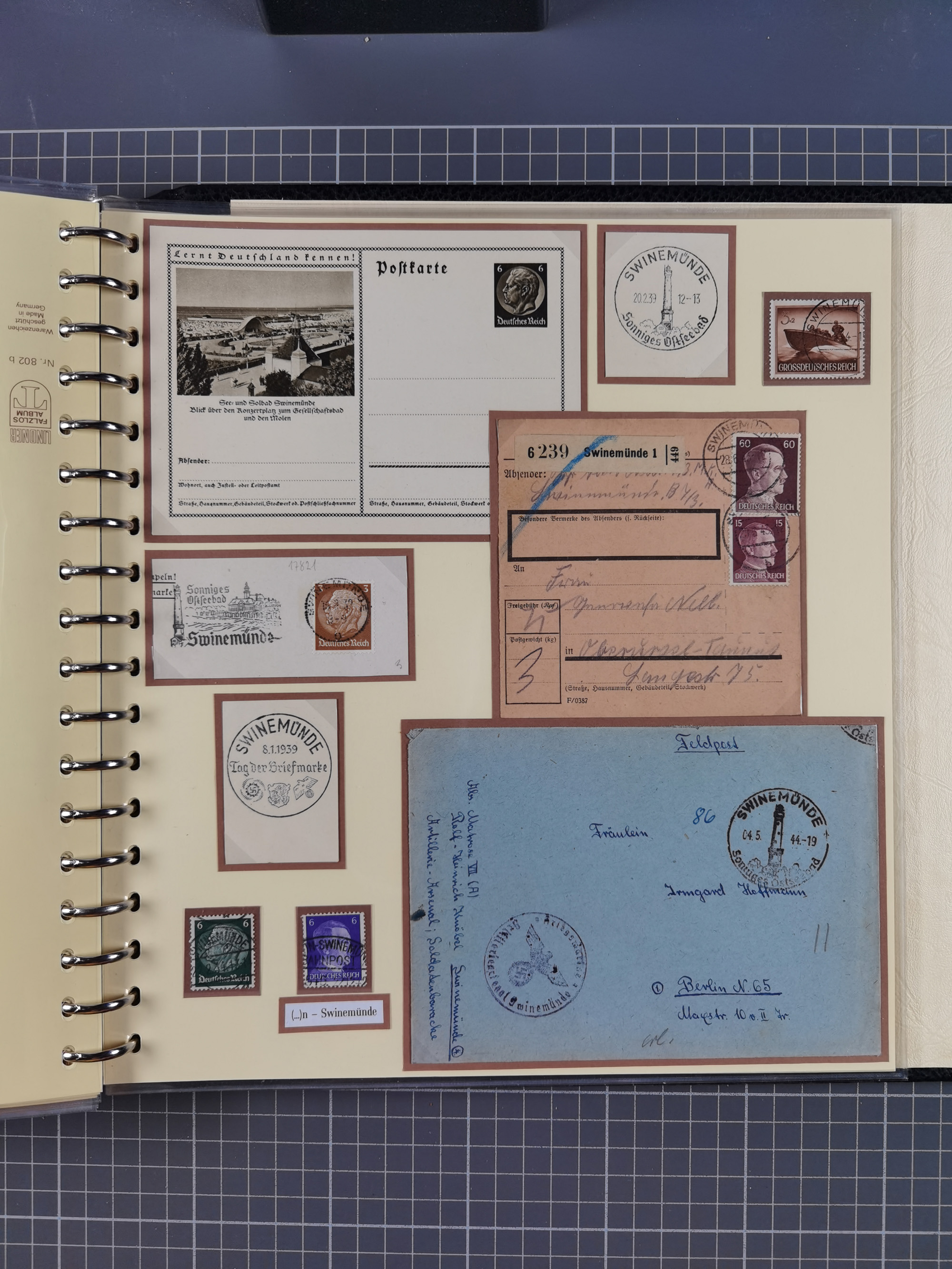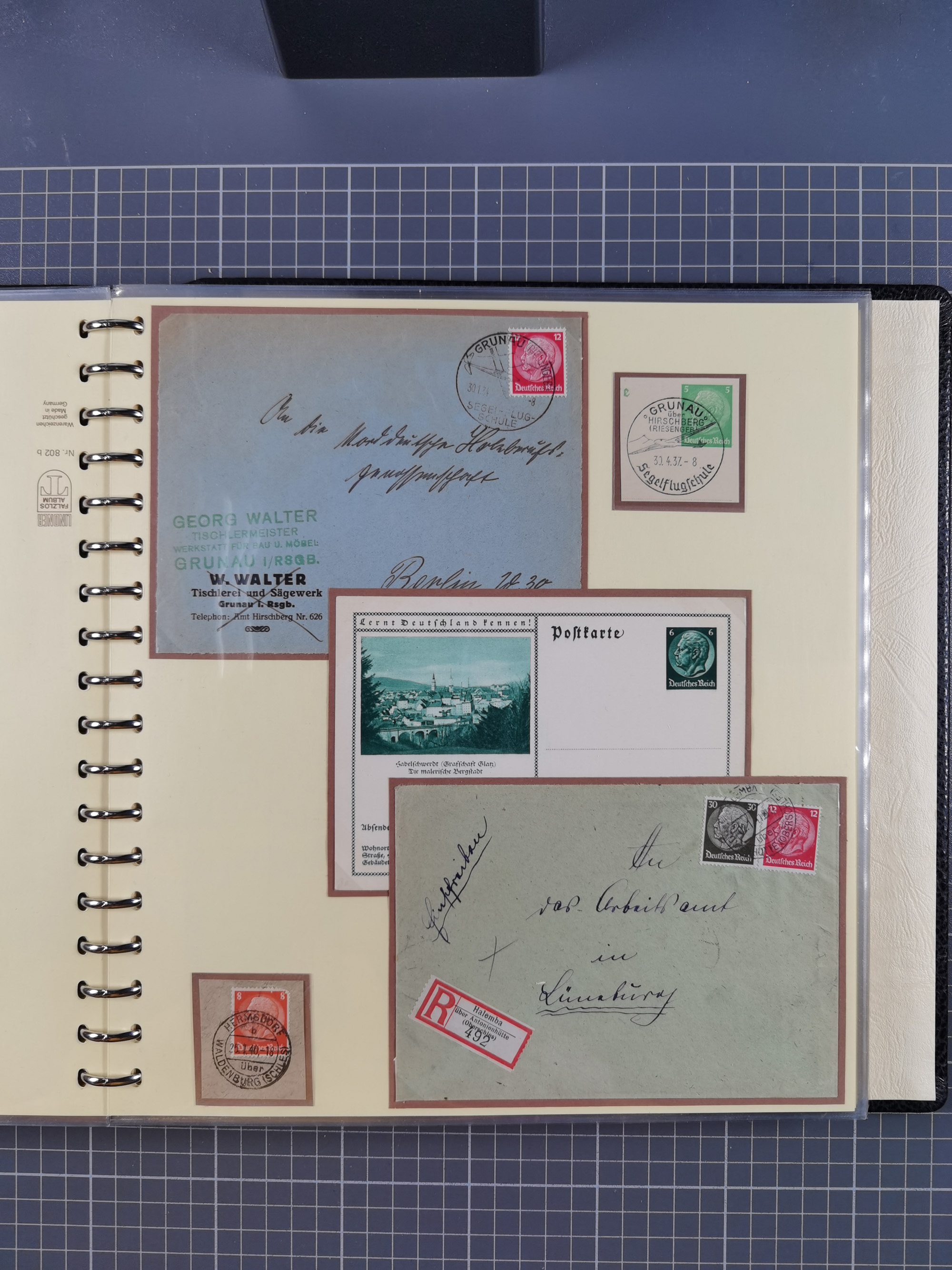 1865/1950 (ca.), Album mit 122 hochwertigen Belegen, diese einzeln vom Einlieferer beschrieben und nach Michel bewertet 15.000 €. Dazu ein Karton mit über 170 Briefen, Karten und Ganzsachen, dabei etliche interessante Belege, meist gute Erhaltung