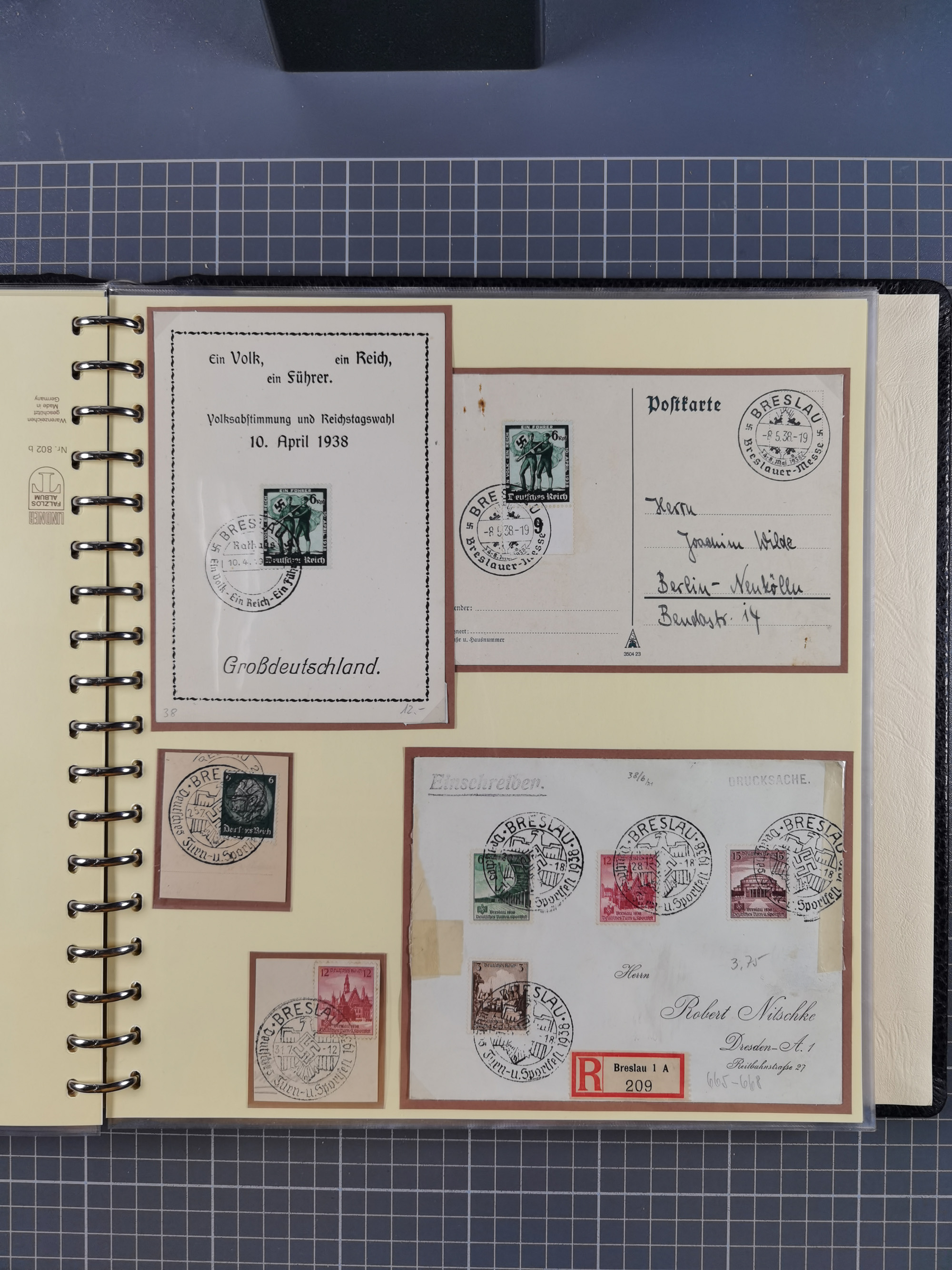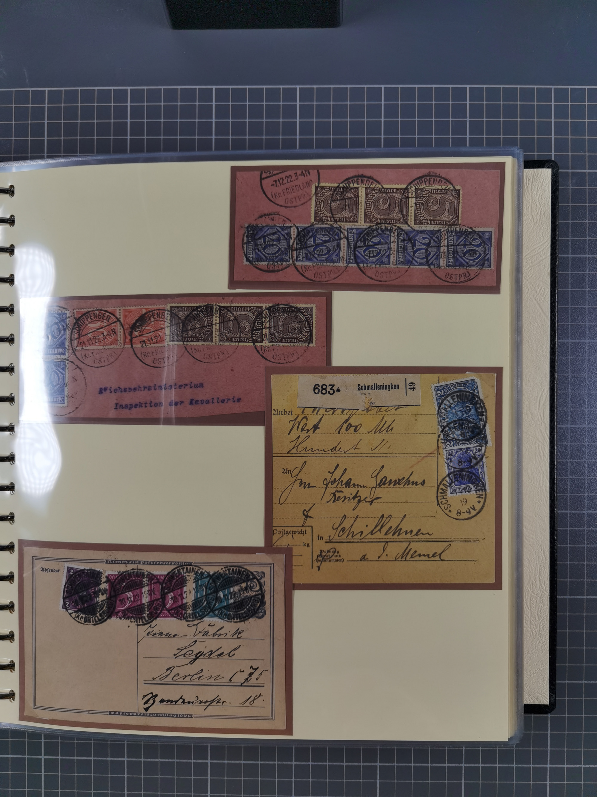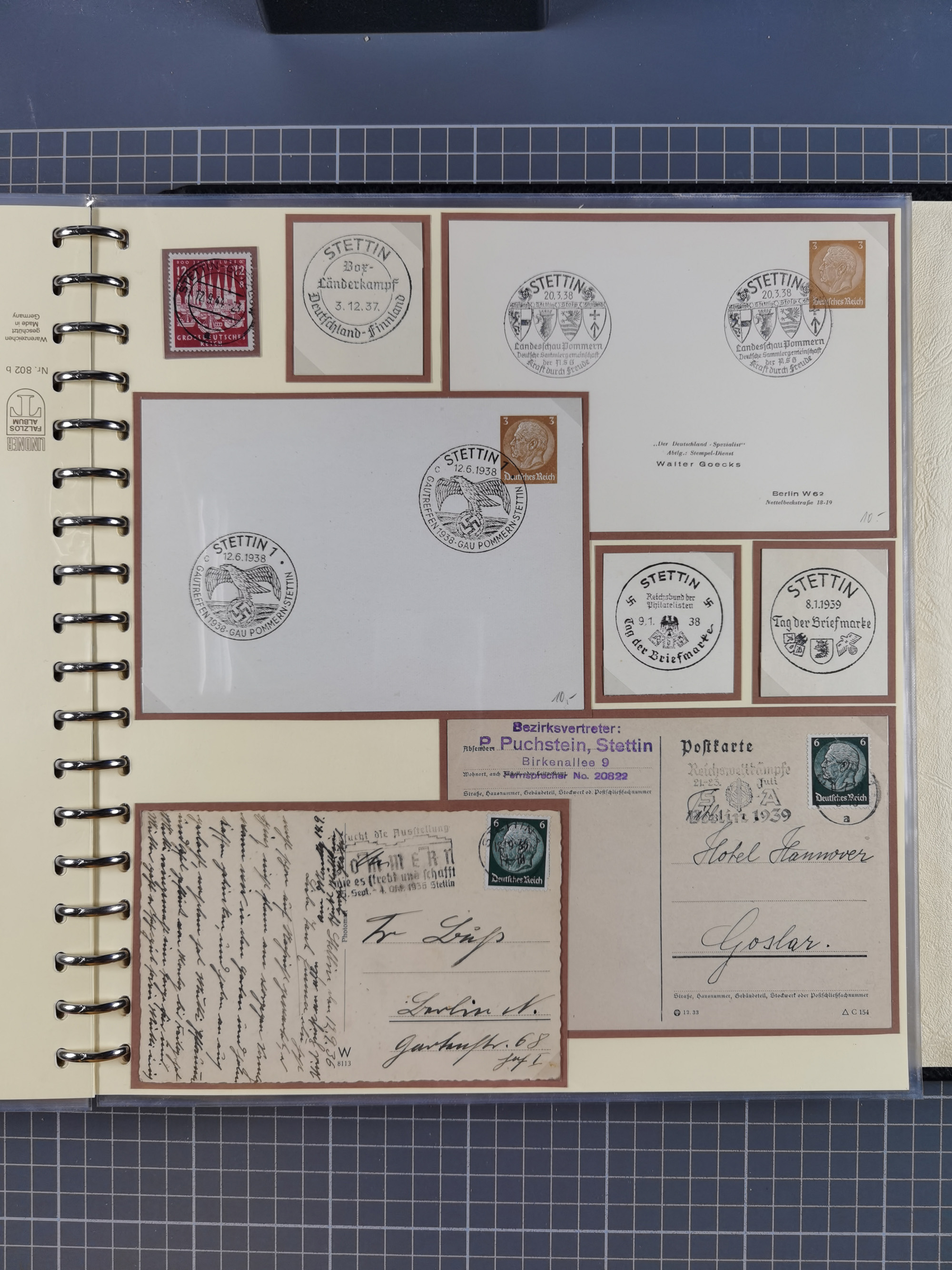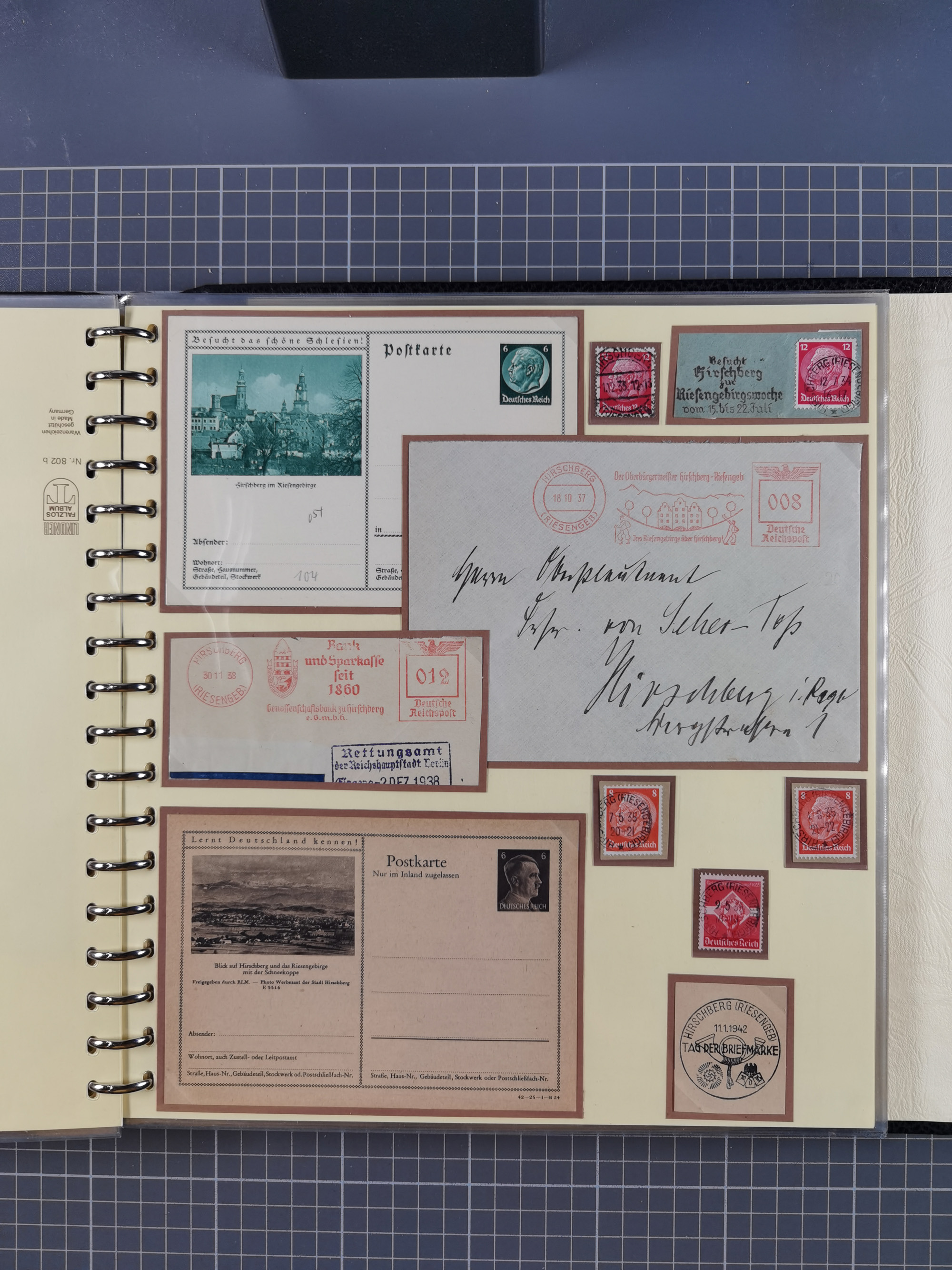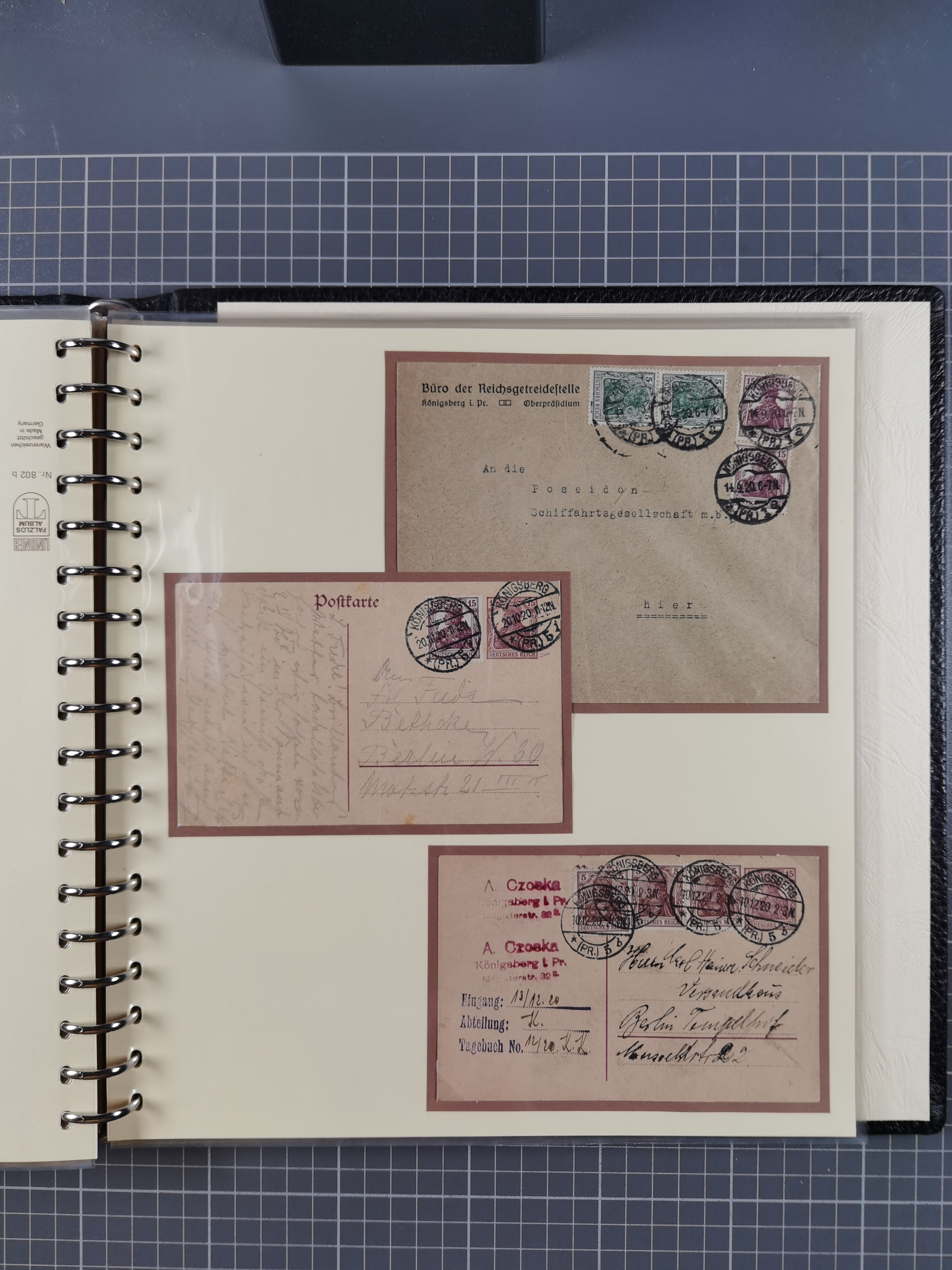 1865/1950 (ca.), Album mit 122 hochwertigen Belegen, diese einzeln vom Einlieferer beschrieben und nach Michel bewertet 15.000 €. Dazu ein Karton mit über 170 Briefen, Karten und Ganzsachen, dabei etliche interessante Belege, meist gute Erhaltung