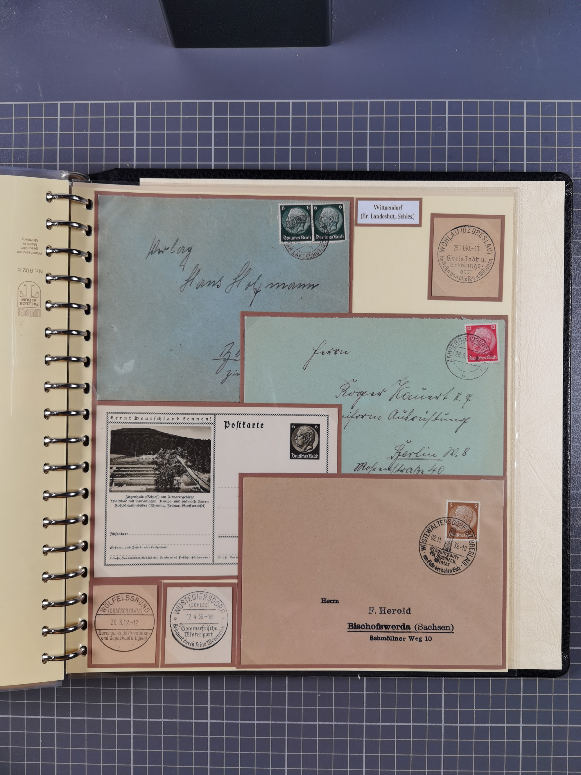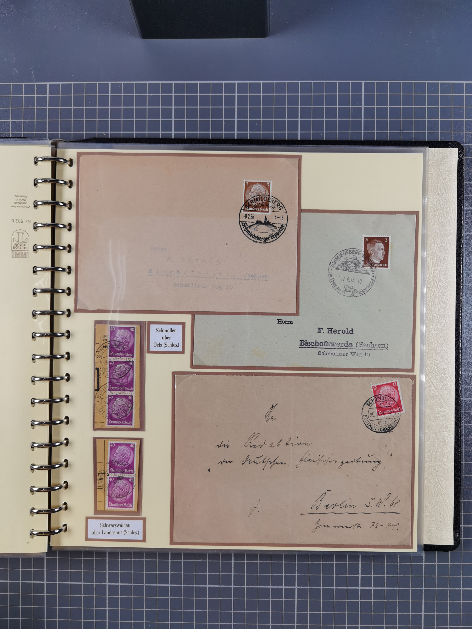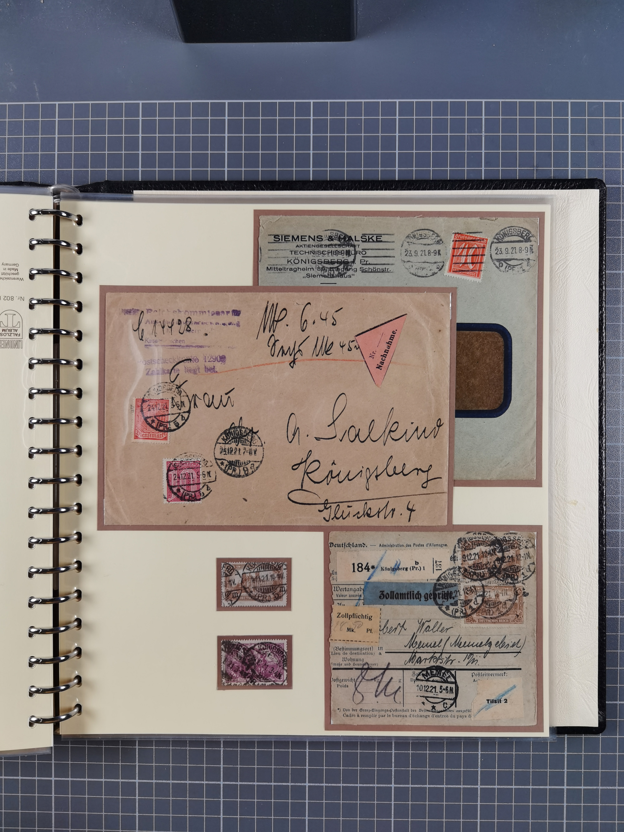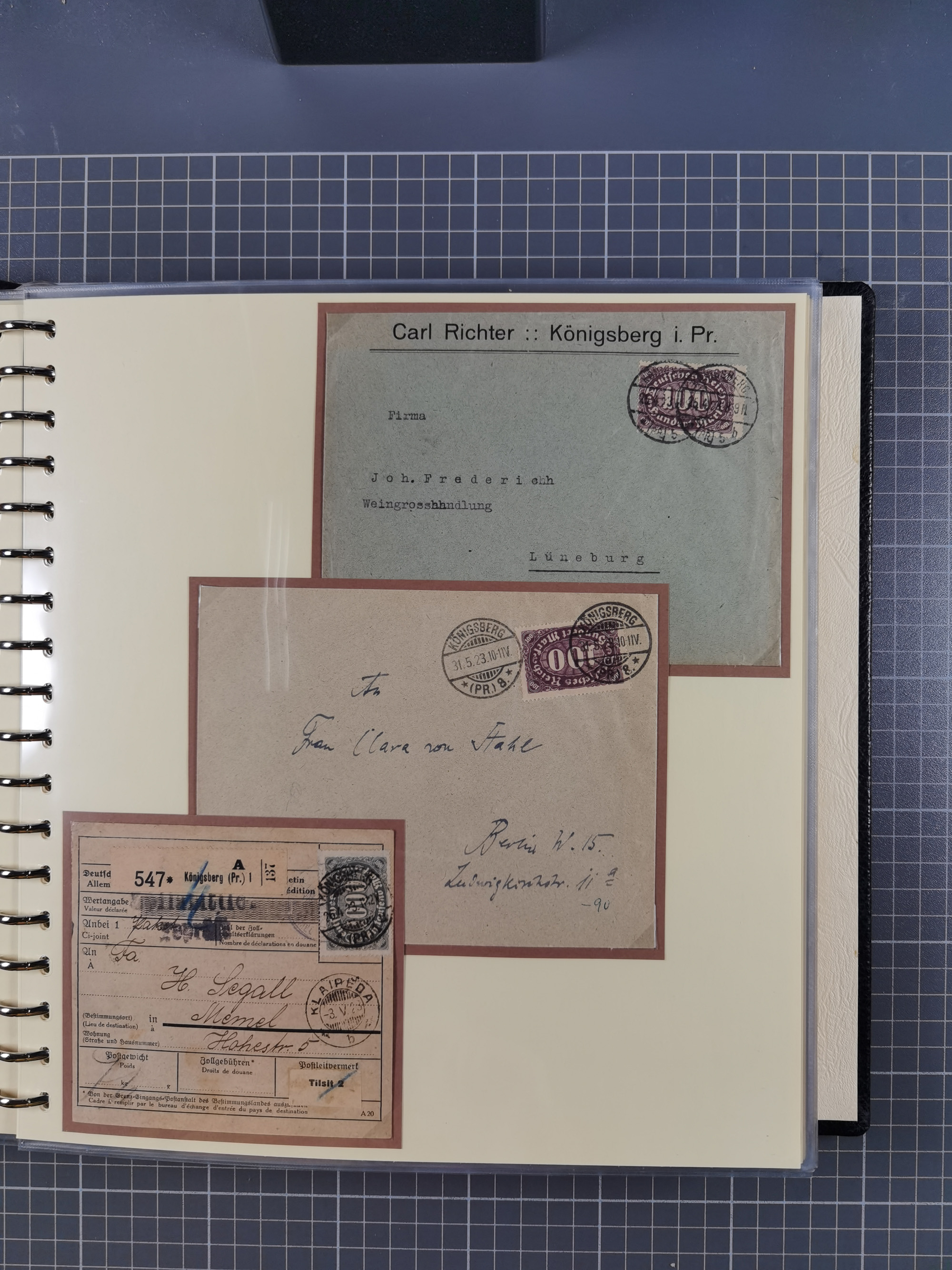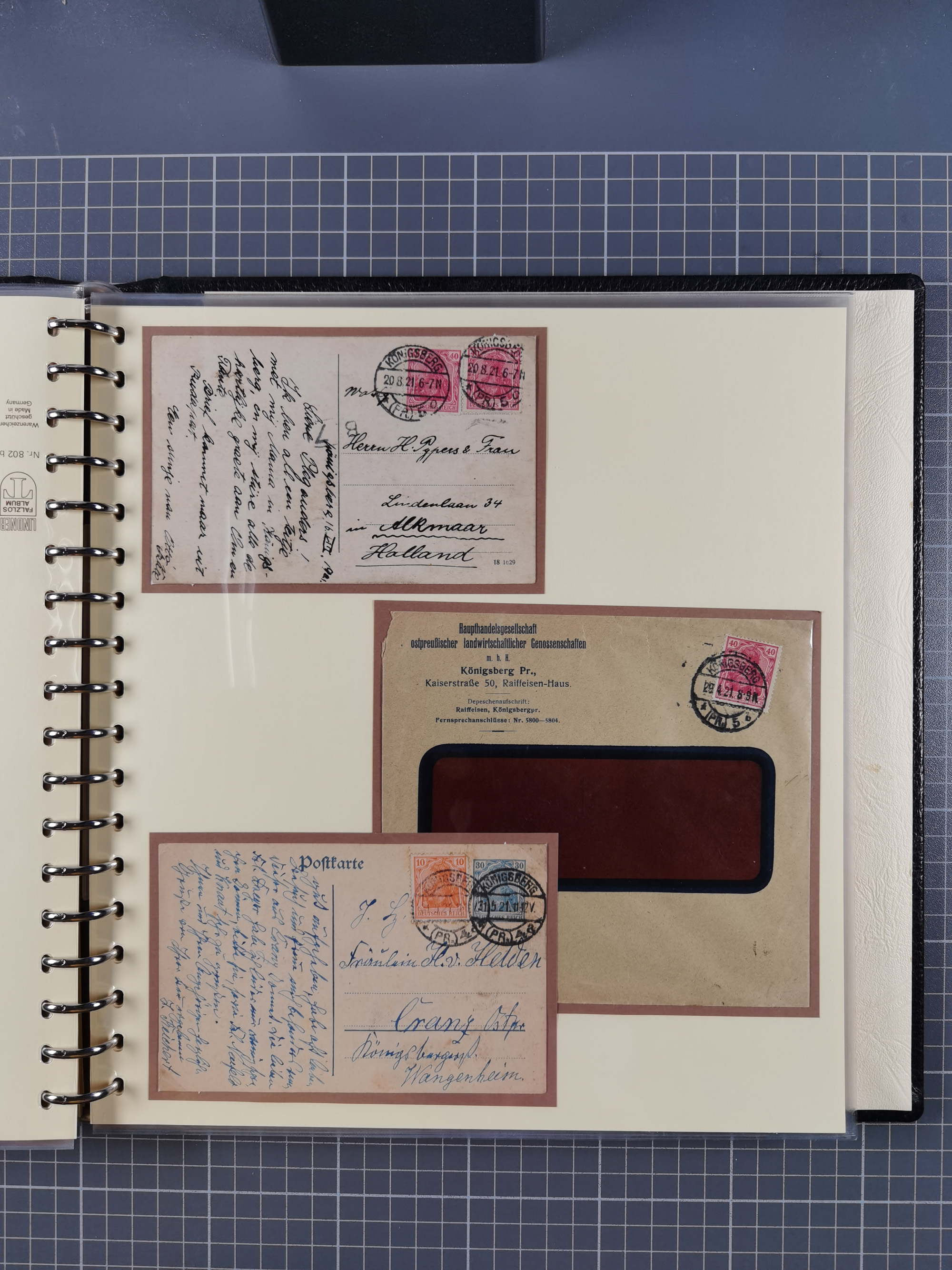1865/1950 (ca.), Album mit 122 hochwertigen Belegen, diese einzeln vom Einlieferer beschrieben und nach Michel bewertet 15.000 €. Dazu ein Karton mit über 170 Briefen, Karten und Ganzsachen, dabei etliche interessante Belege, meist gute Erhaltung
